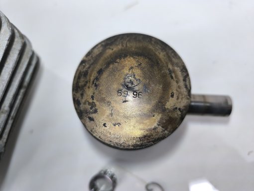 Cylinder silnika MZ ETZ 250 z tłokiem(zamiennik węgierski) wymiar 69.96 – drugi szlif. Żeberka całe, gwint tłumika super. Gładź w cylindrze ładna, lekki próg wyczuwalny. Ogólnie ładny przyzwoity.