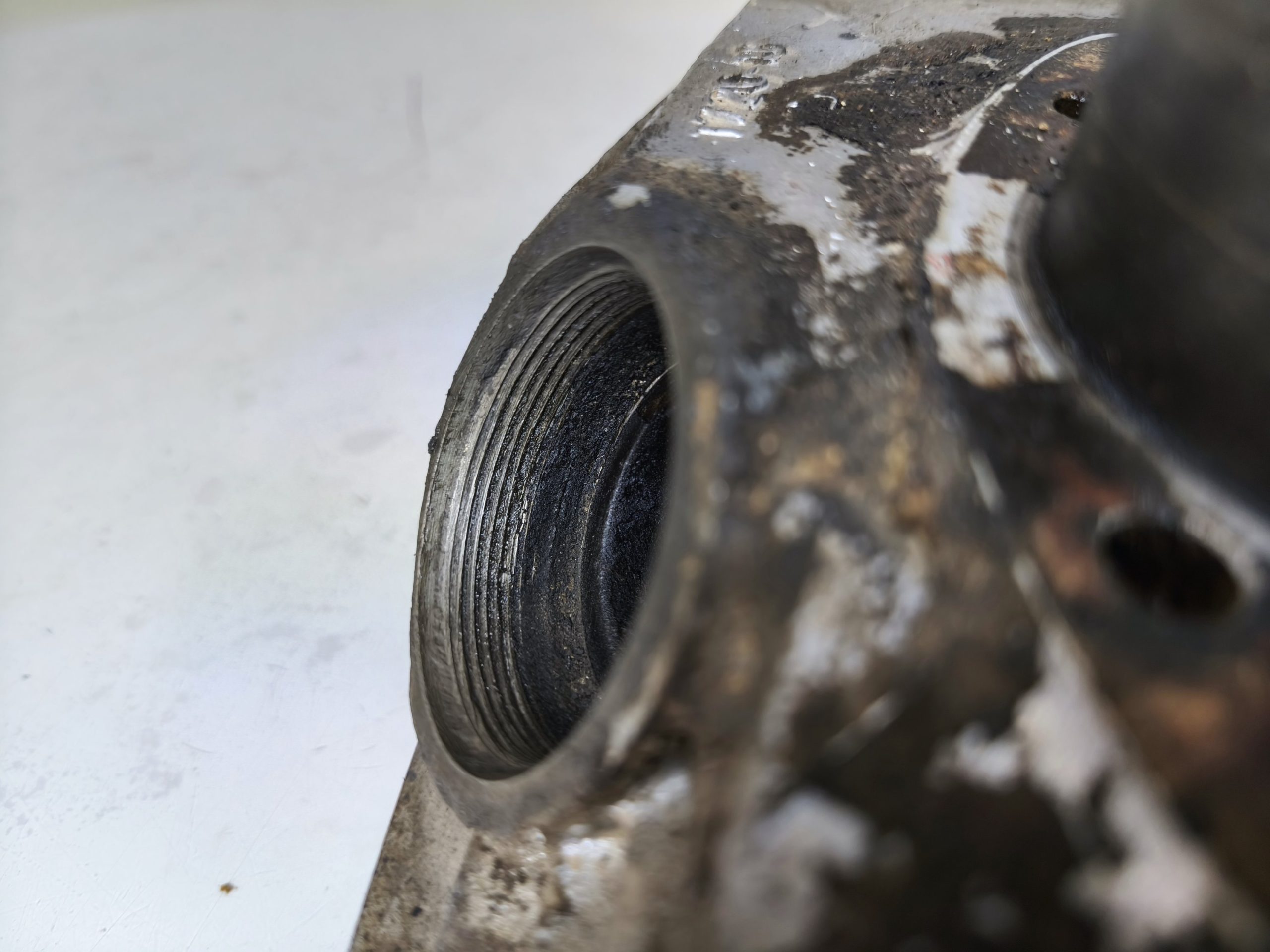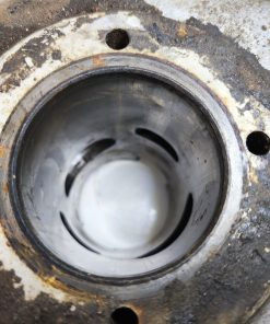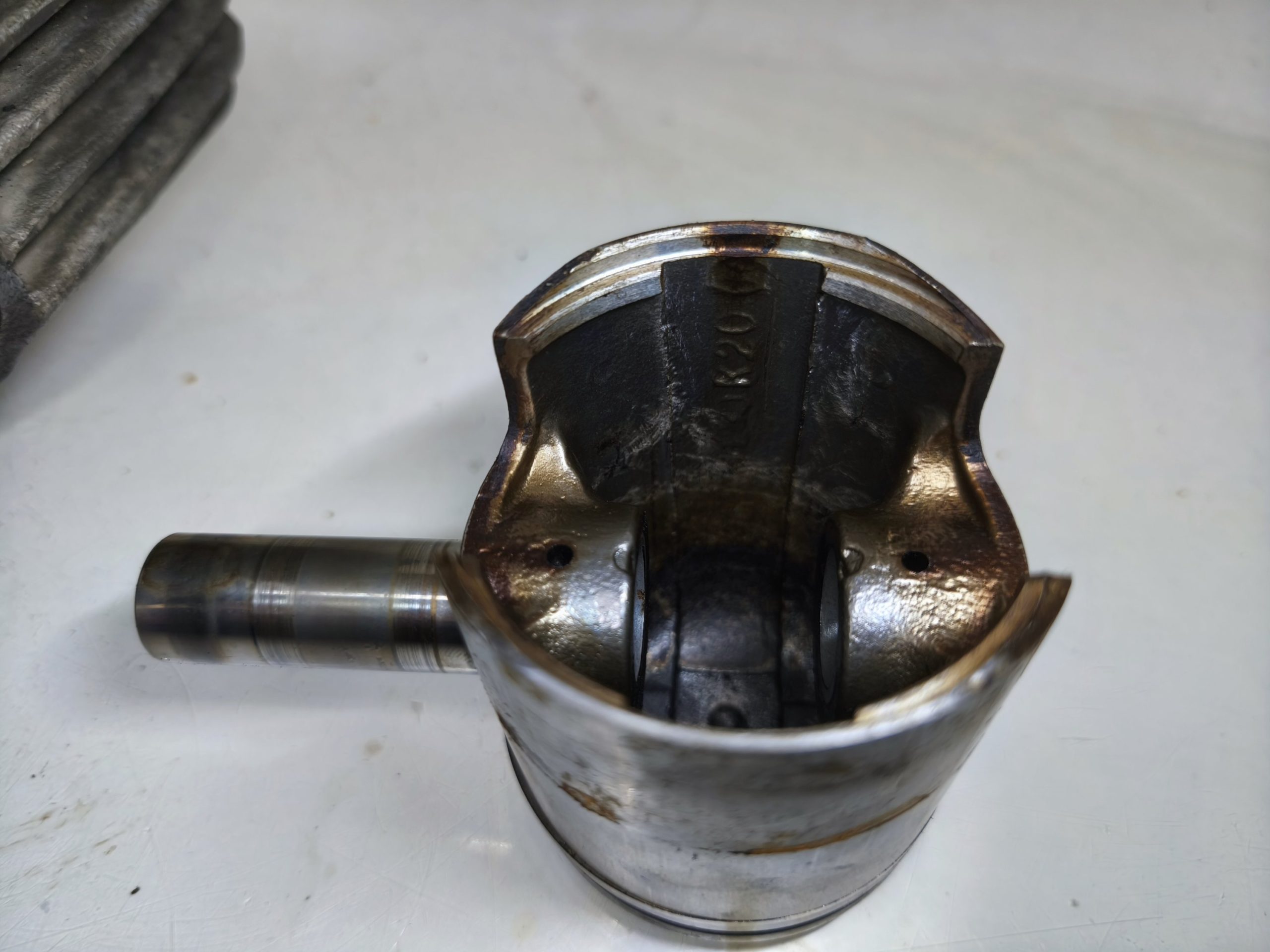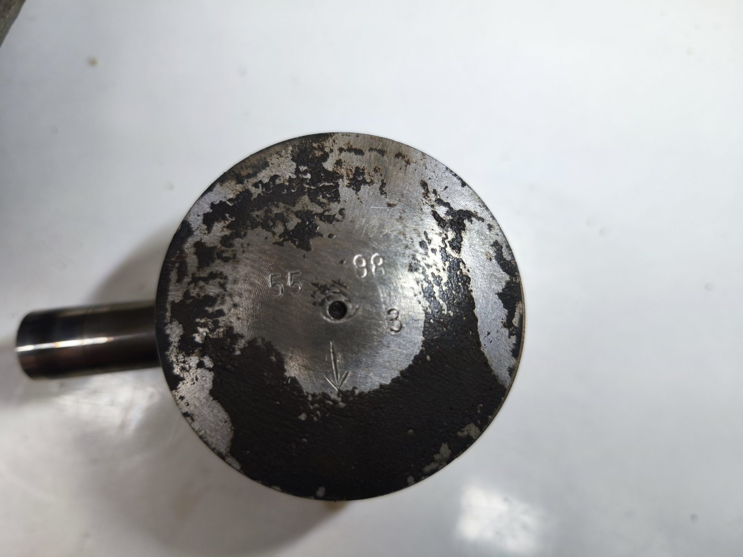 Cylinder silnika MZ TS 150 wymiar 55.98 – tłok oryginalny K20. Gładź w cylindrze bez większych rys w miarę ładna, praktycznie bez progu jedynie można by powierzchnię przehonowac. Żeberka całe. Gwint tłumika ładny.