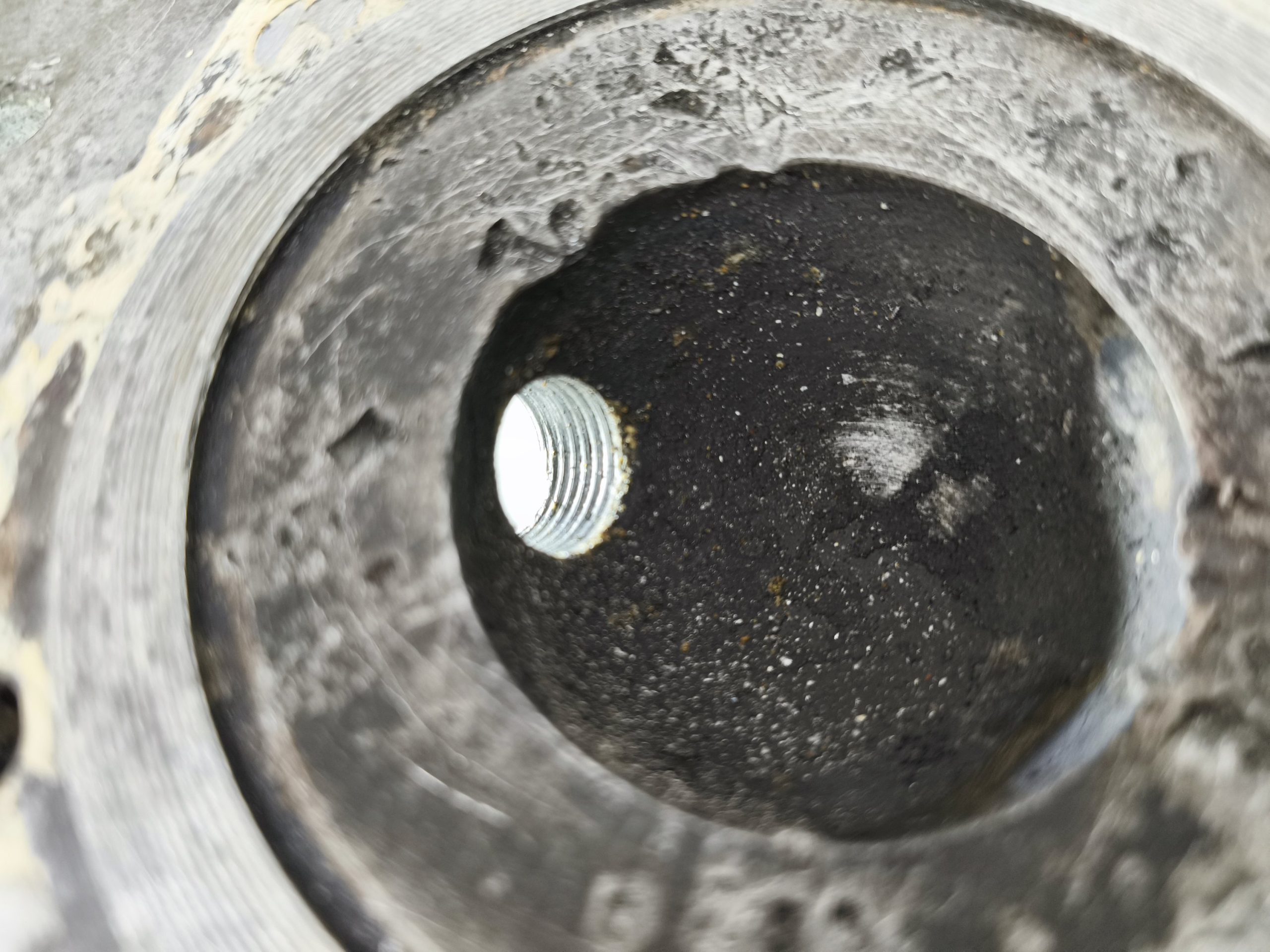 Głowica silnika MZ TS 250. Stan przyzwoity lecz do naprawy jest gwint świecy który jest już w bardzo słabym stanie.