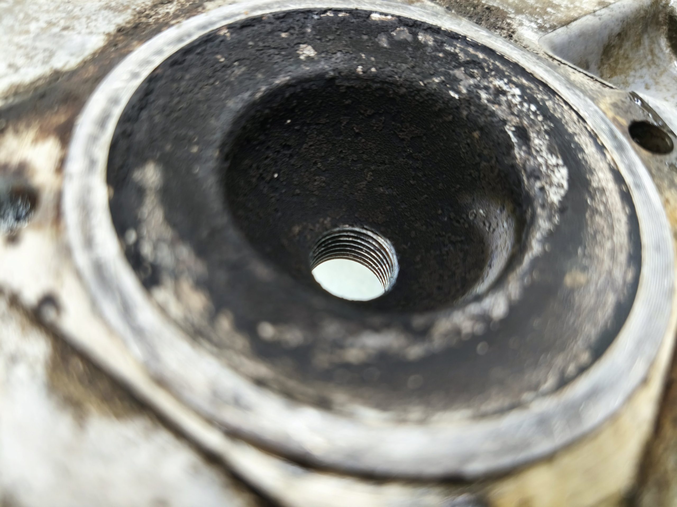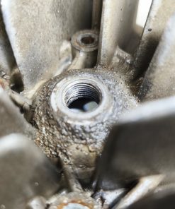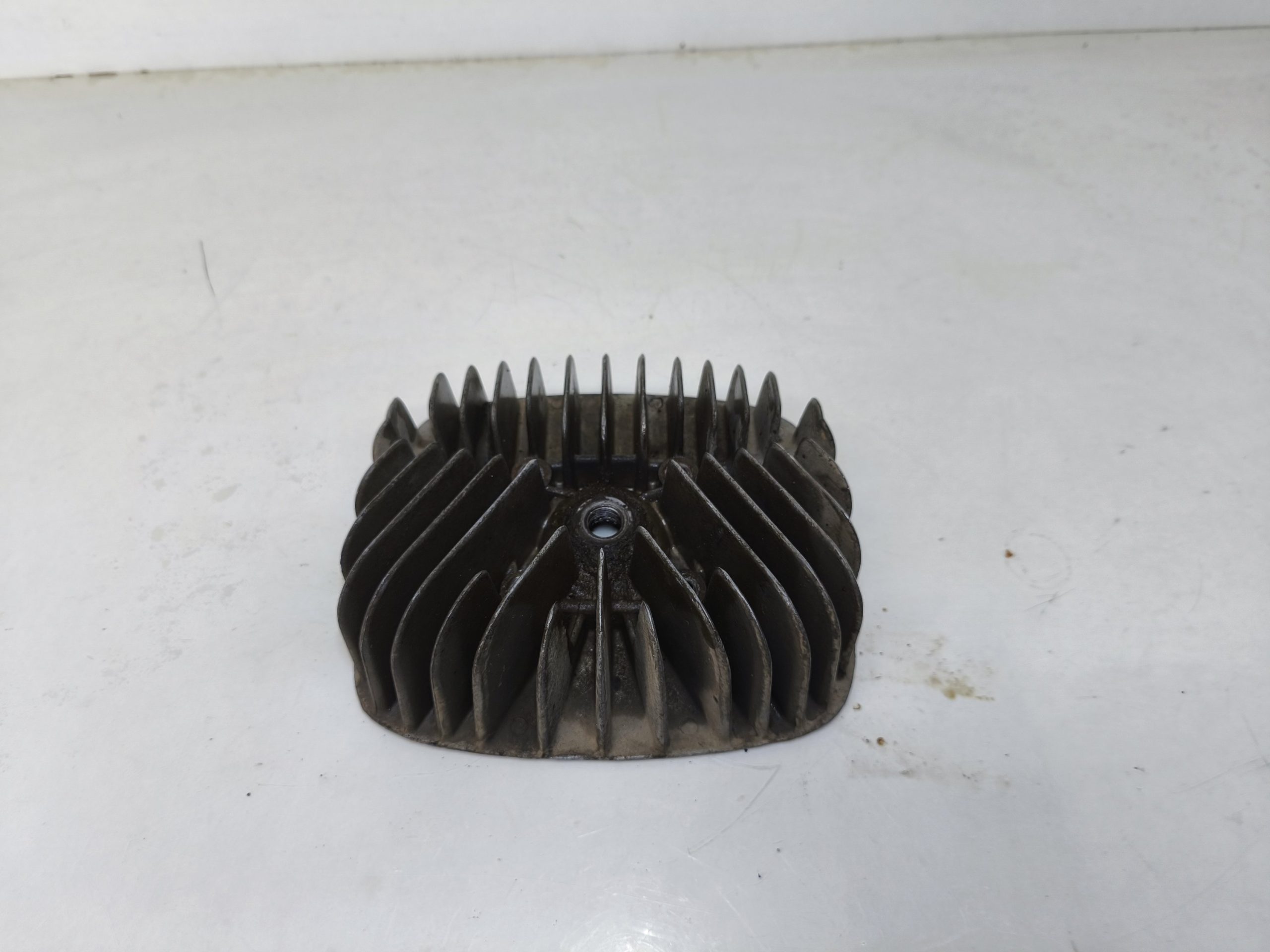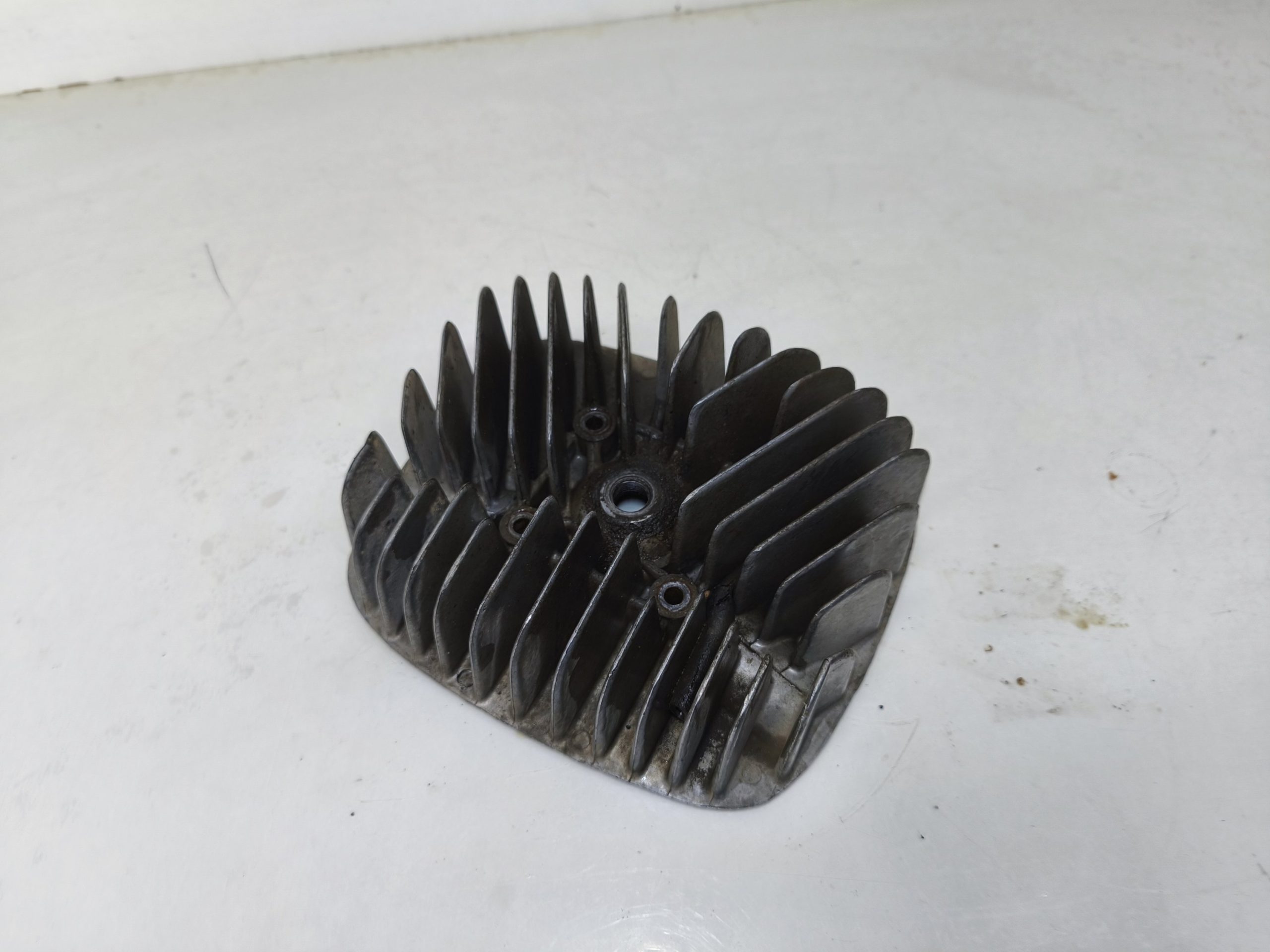 Głowica silnika MZ TS 150. Gwint świecy w super stanie. Żeberka całe, jedno małe ukruszenie widoczne na jednym ze zdjęć.