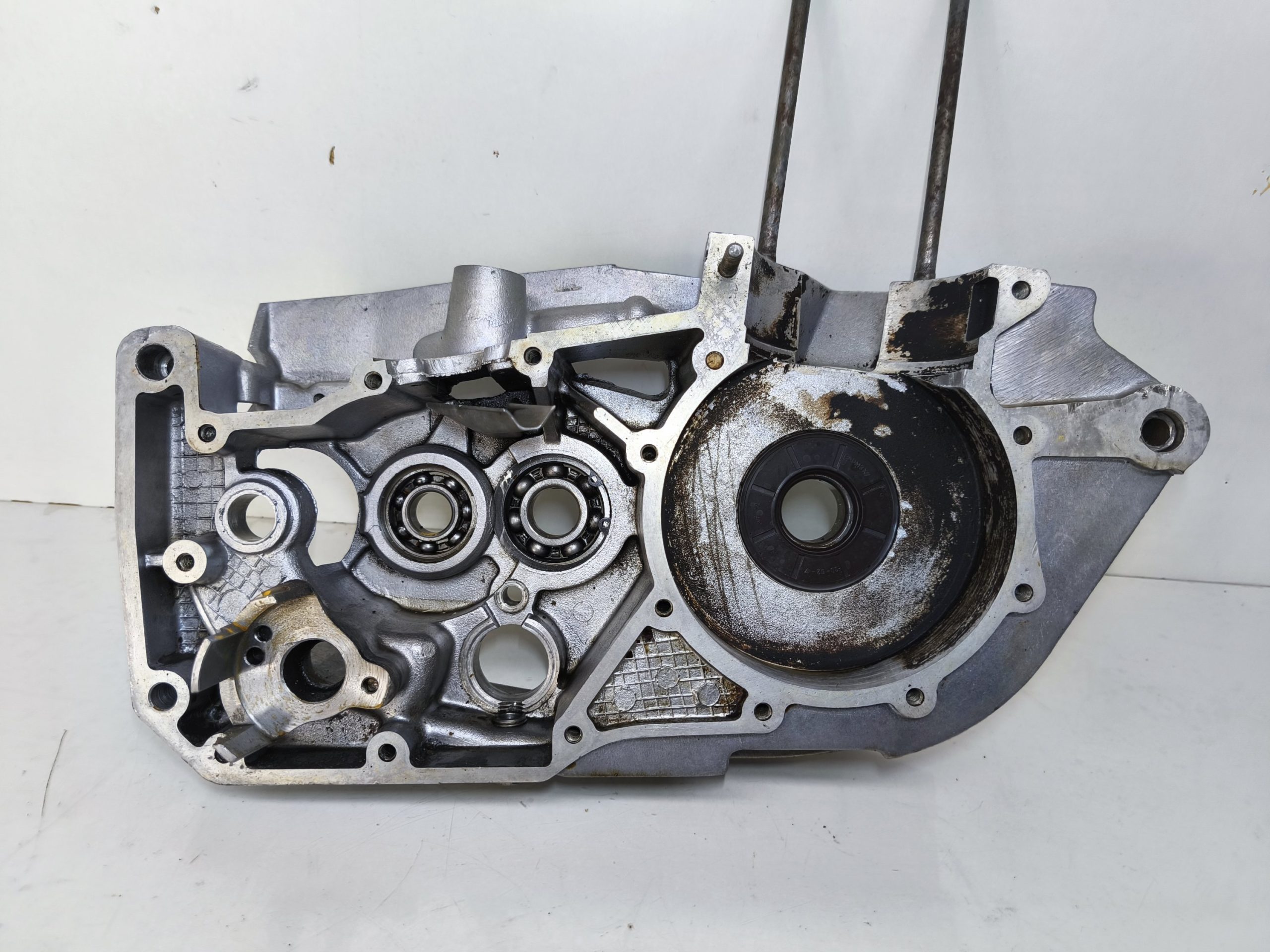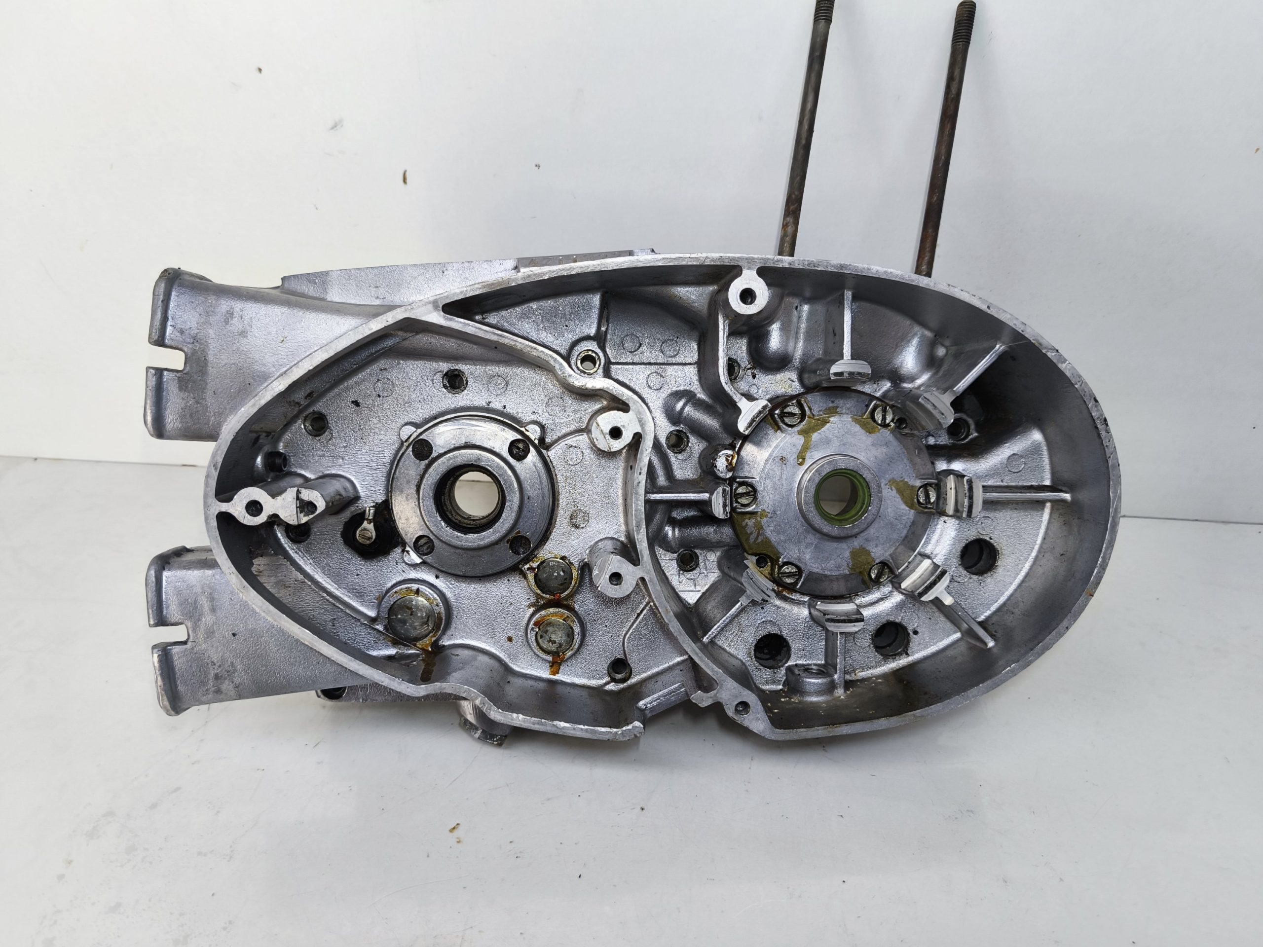Kartery silnika MZ ES 250/2 Trophy silnik 19 KM. Kartery w przyzwoitym stanie, przylgnie dobre. Widać lekkie ślady poprzednich rozbiórek. Miejsce na pierścienie Segera ok. Gwinty wyglądają dobrze.