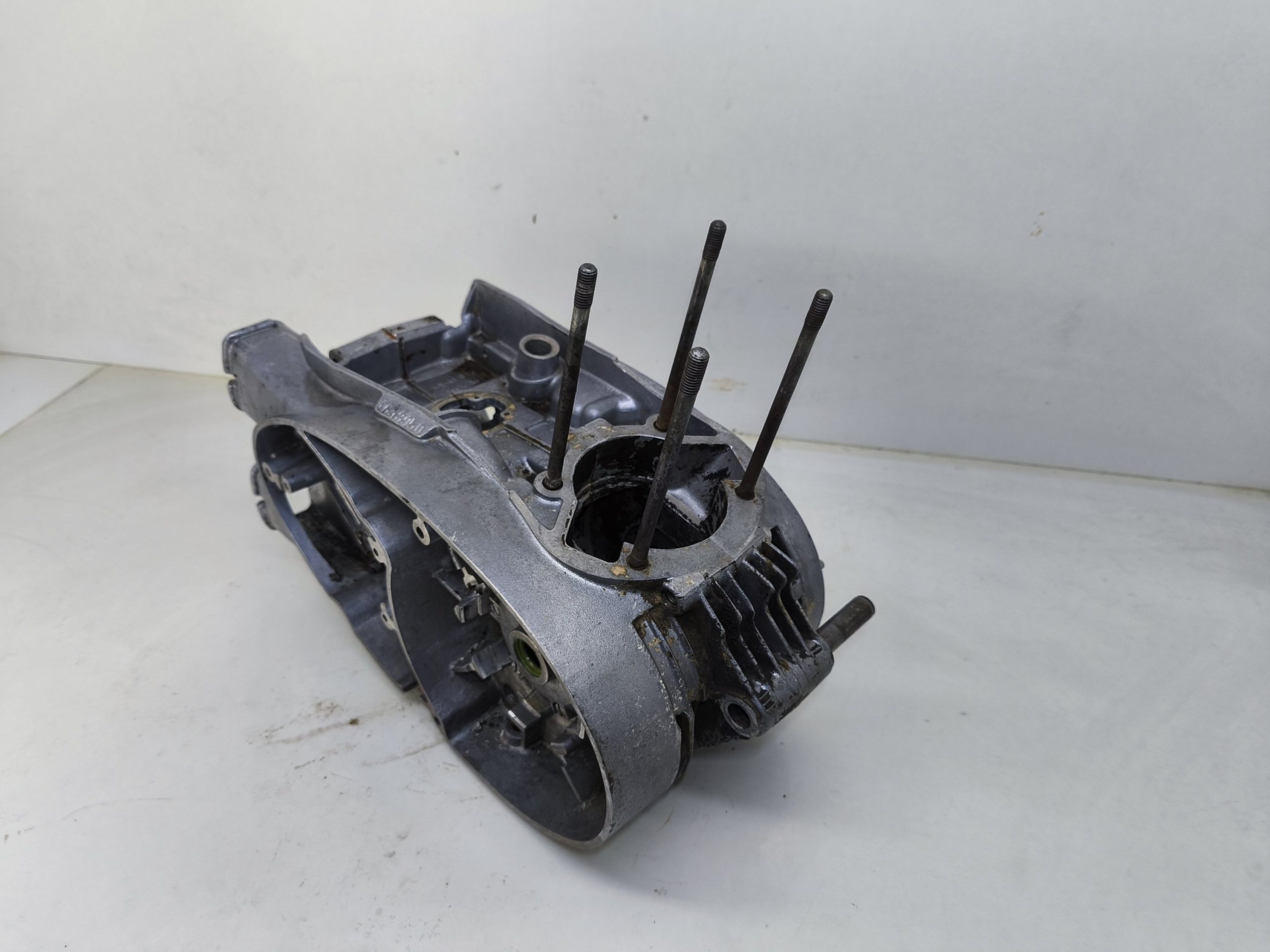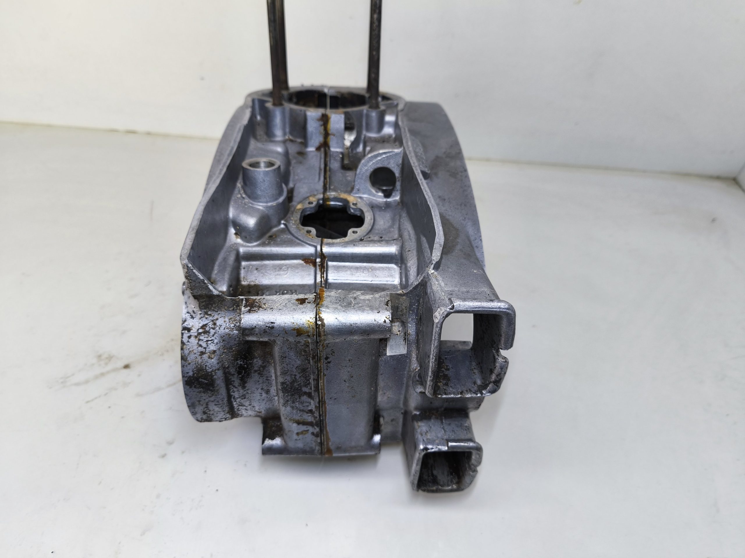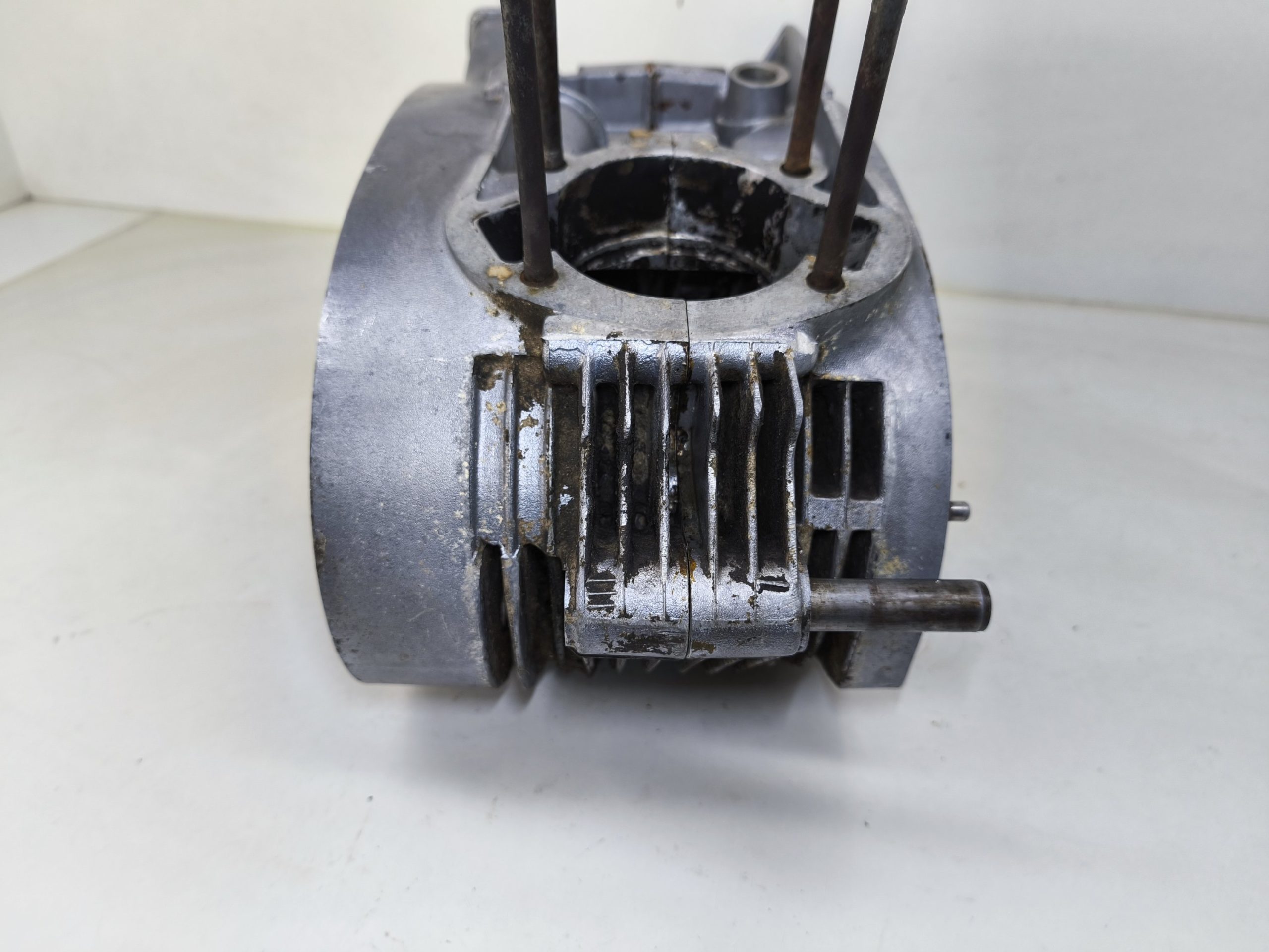 Kartery silnika MZ ES 250/2 Trophy wersja 19 KM. Kartery zachowane w bardzo ładnym stanie. Minimalne ślady wcześniejszych rozbiórek. Gwinty ok, miejsca na pierścienie Segera ok. Przylgnie wyglądają dobrze. Komora łańcucha wygląda ok.