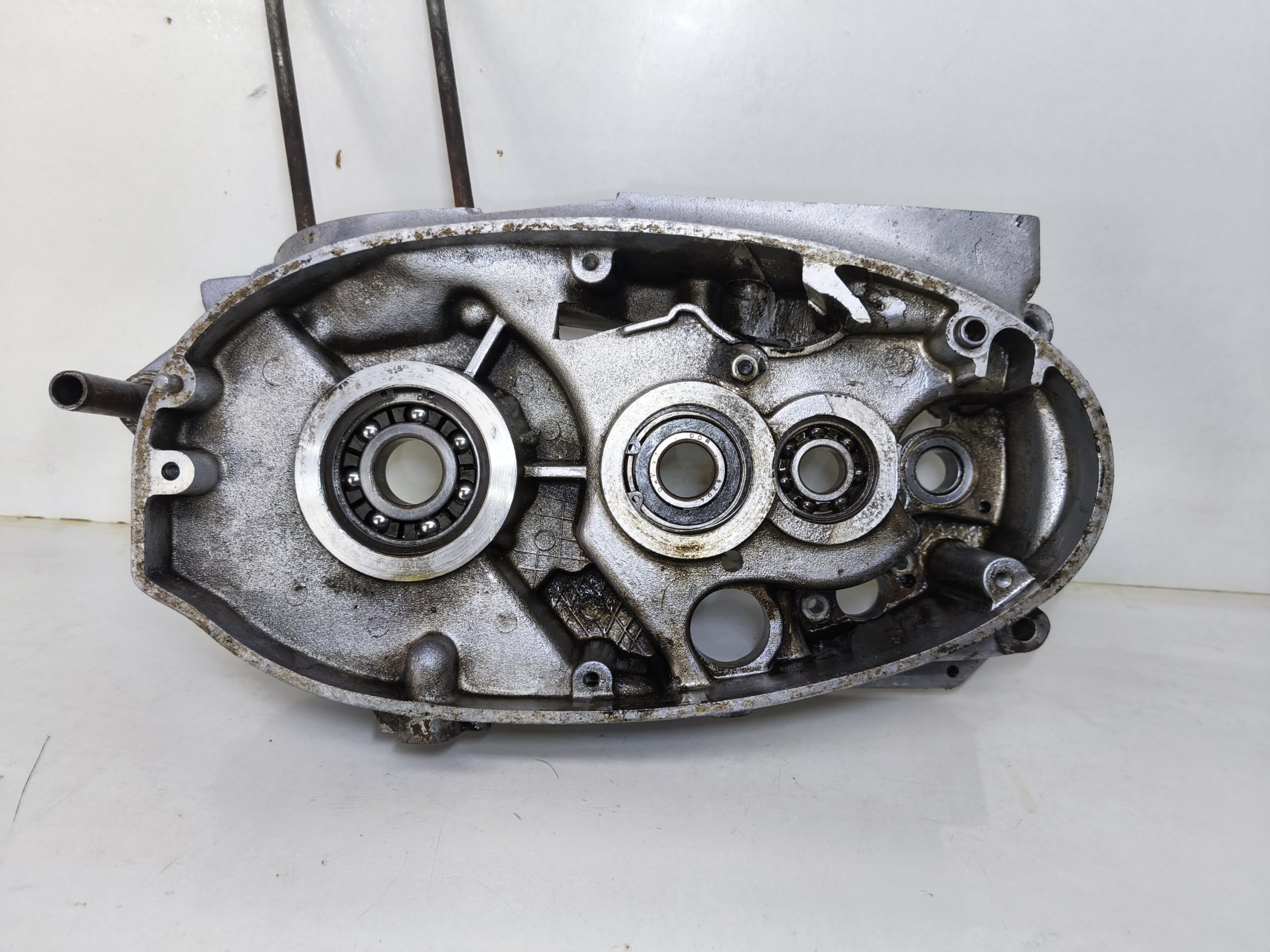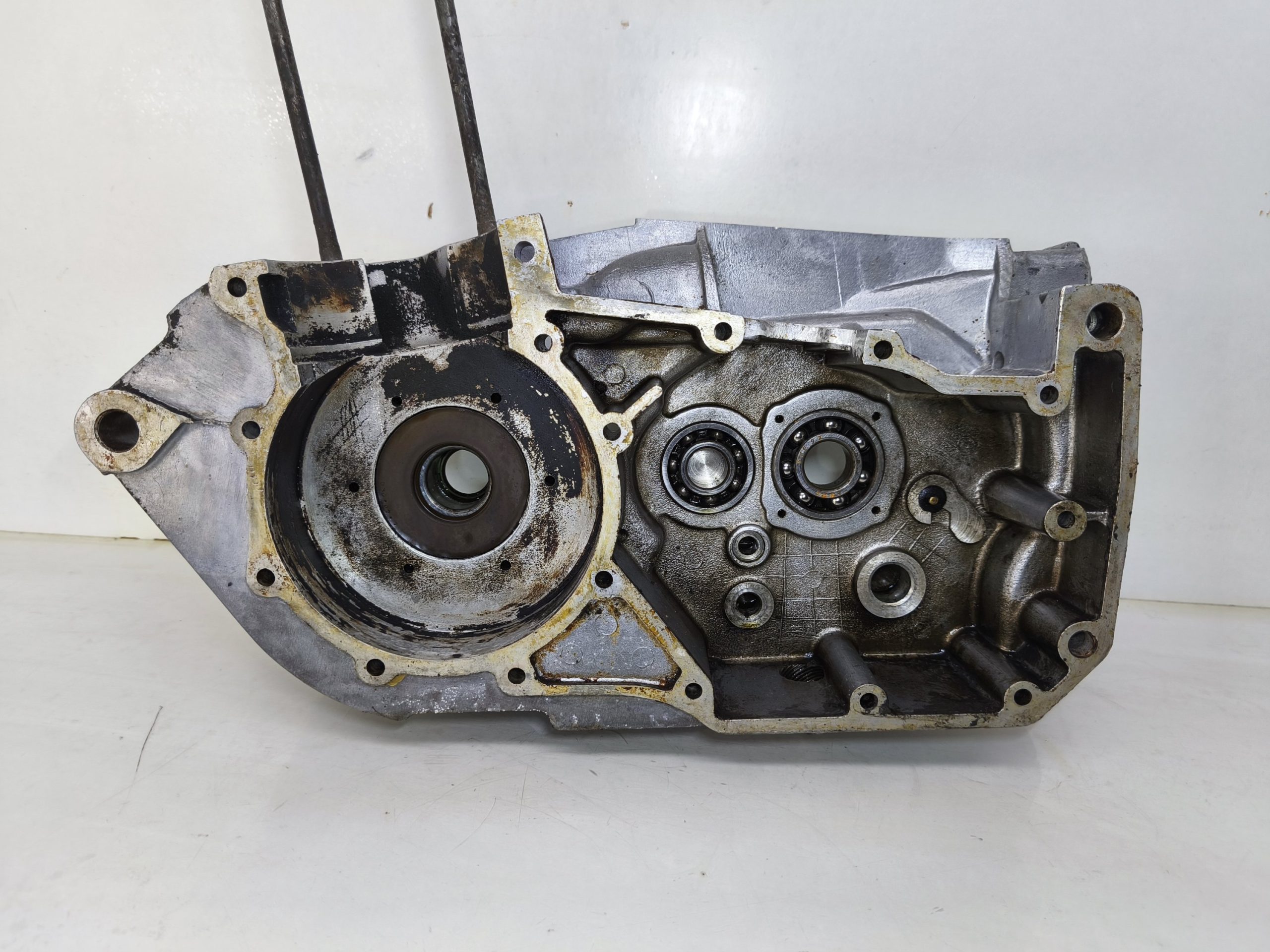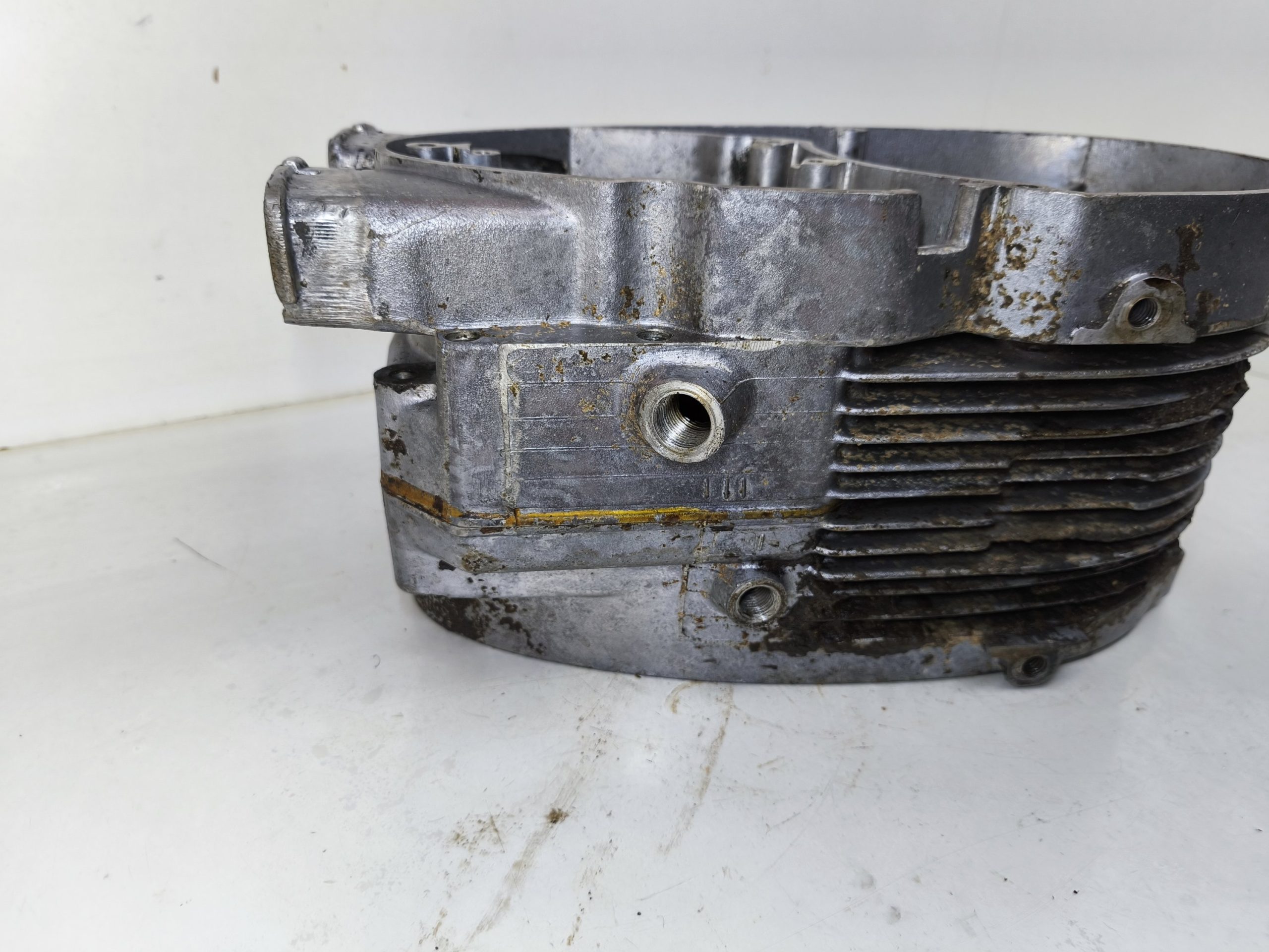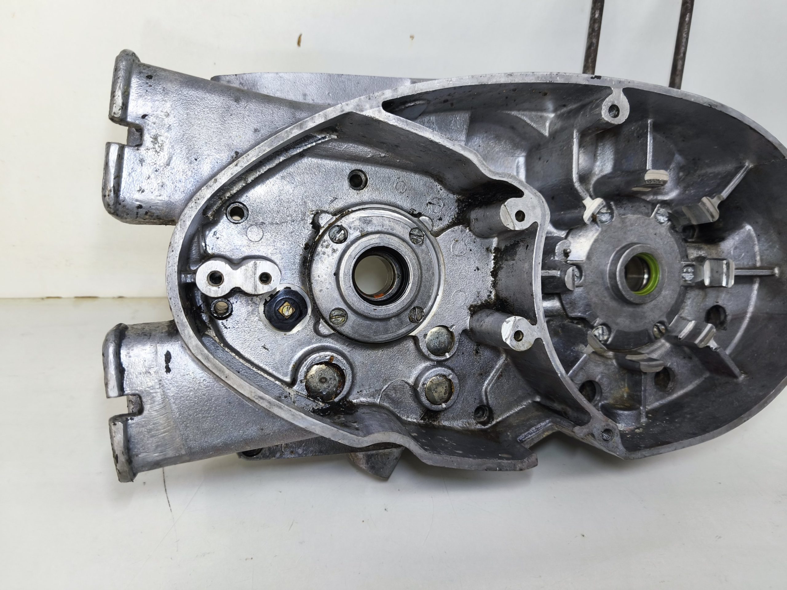 Kartery silnika MZ ES 250/2 Trophy wersja 19 KM. Kartery zachowane w bardzo ładnym stanie. Minimalne ślady wcześniejszych rozbiórek. Gwinty ok, miejsca na pierścienie Segera ok. Przylgnie wyglądają dobrze. Komora łańcucha wygląda ok.