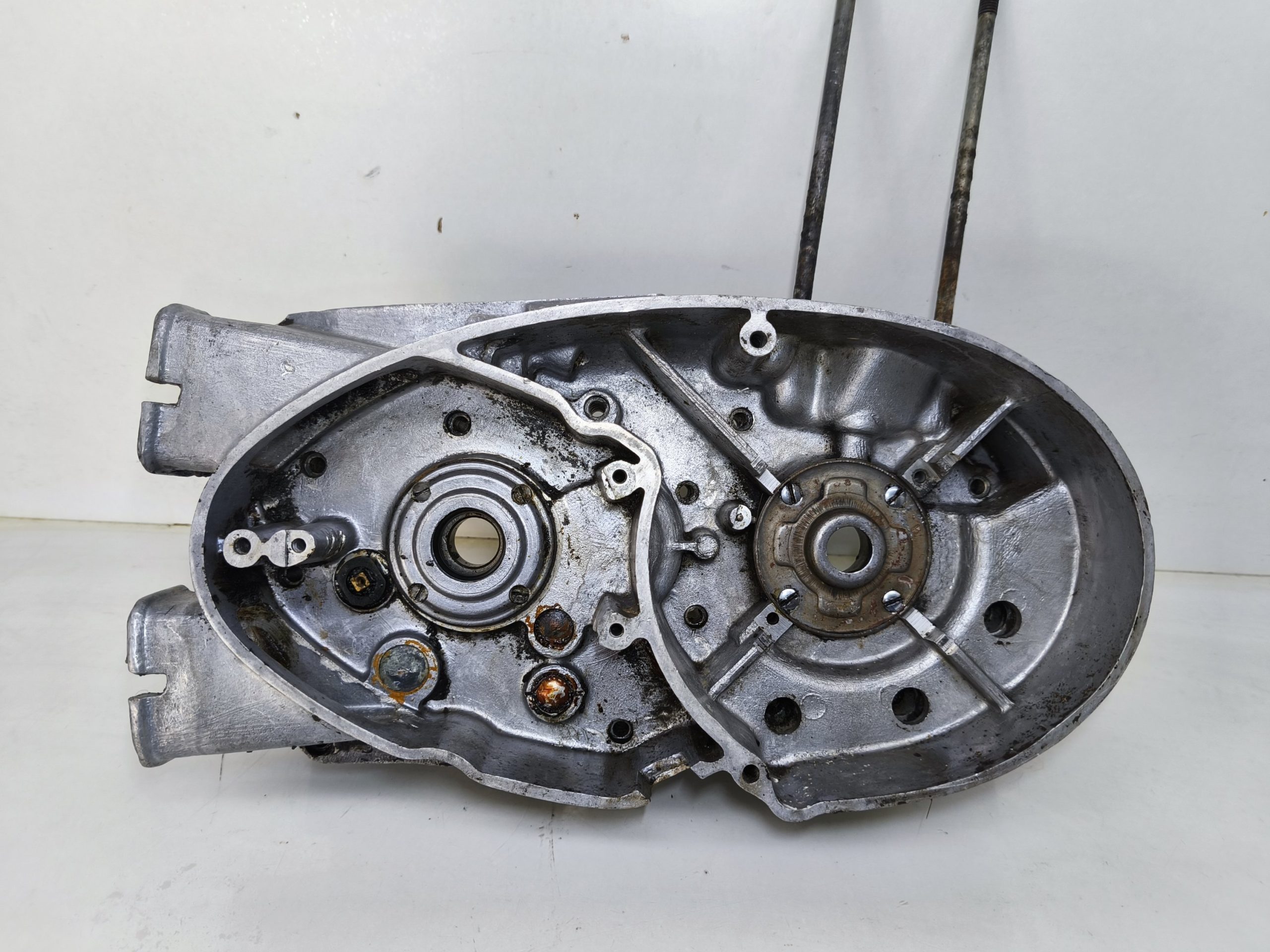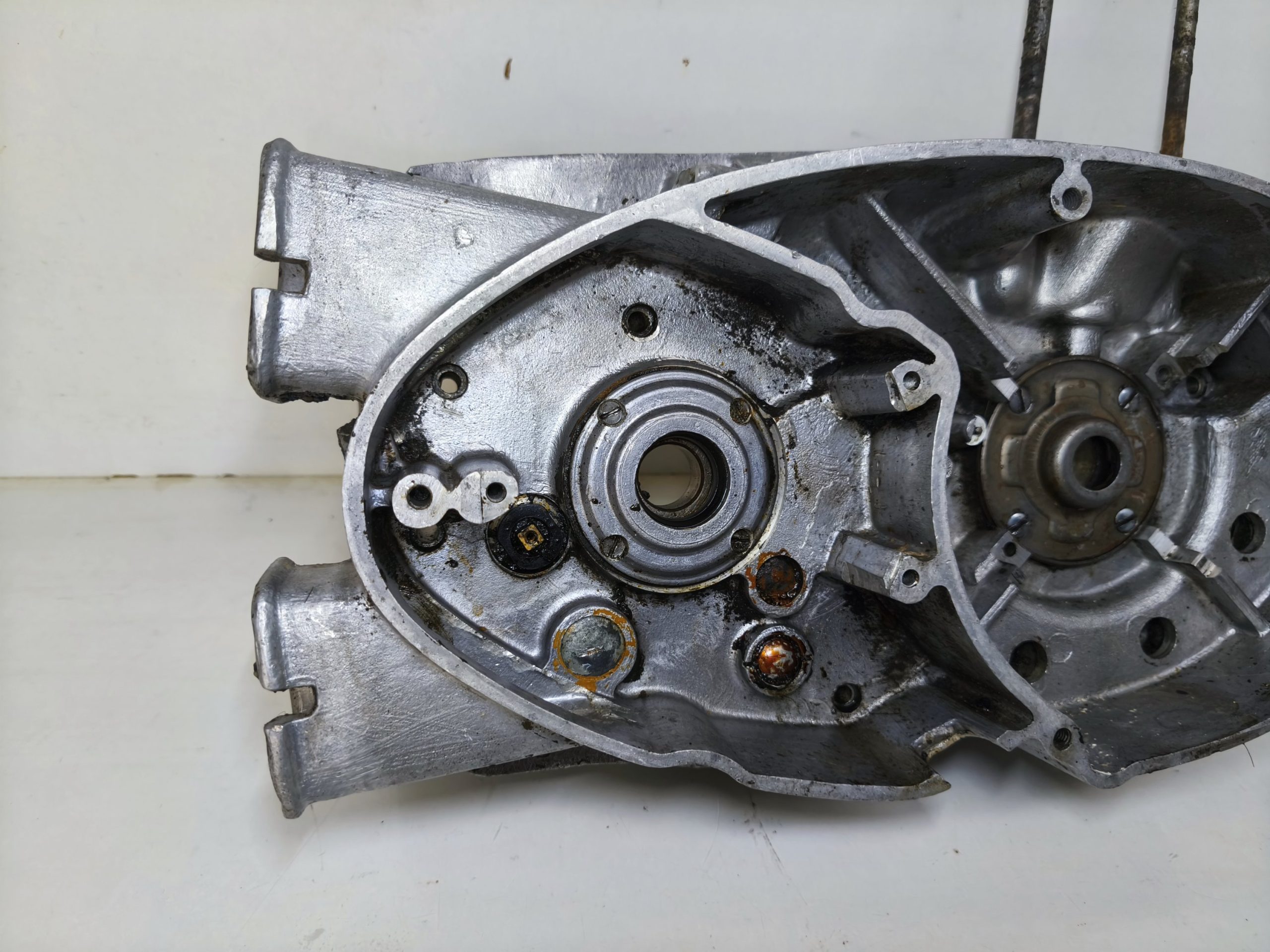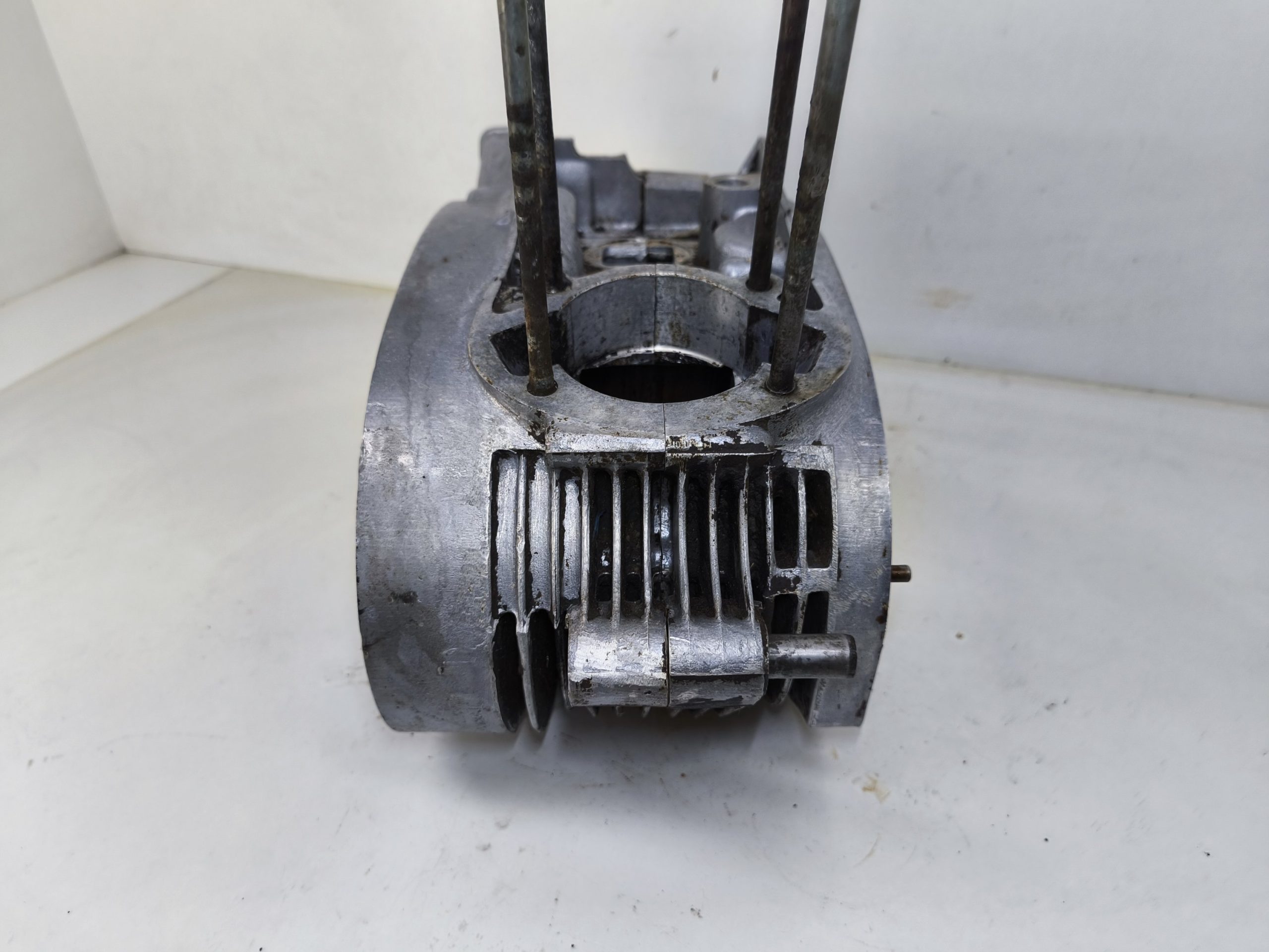 Kartery silnika MZ ES 250 Jaskółka Zerówka. W dobrym stanie, małe ślady wcześniejszych rozbiórek. Gwinty ok, miejsca pierścieni Segera ok. Przylgnie ładne. Mocowania pod szpilki ok, komora łańcucha wygląda dobrze.
