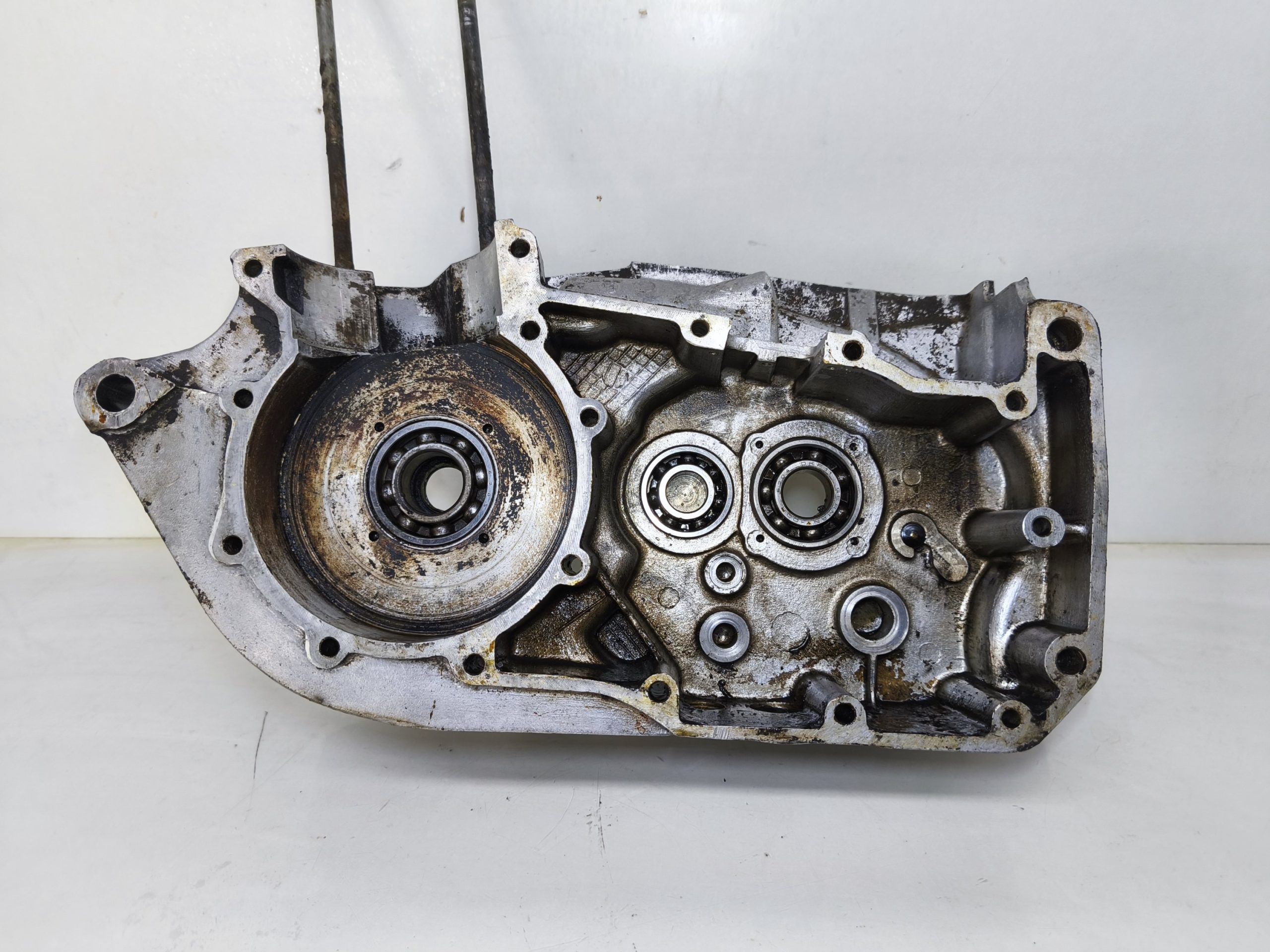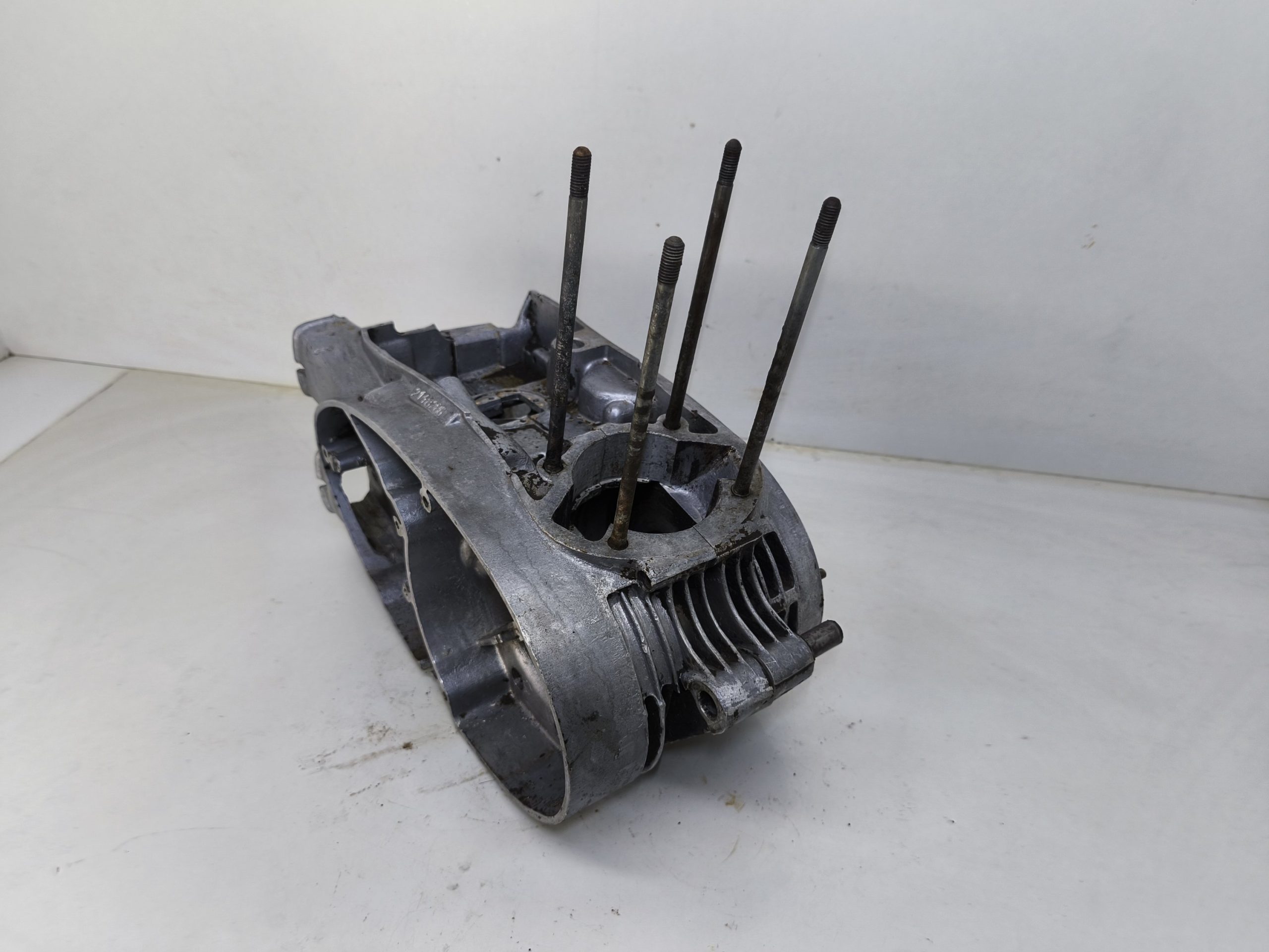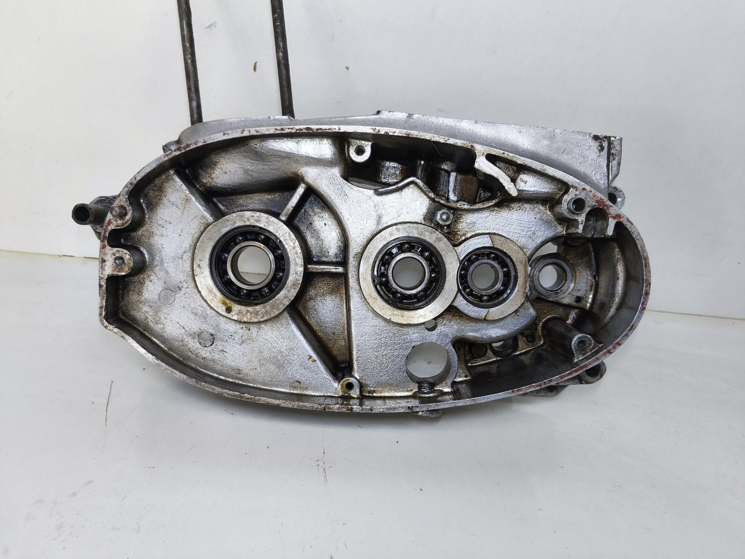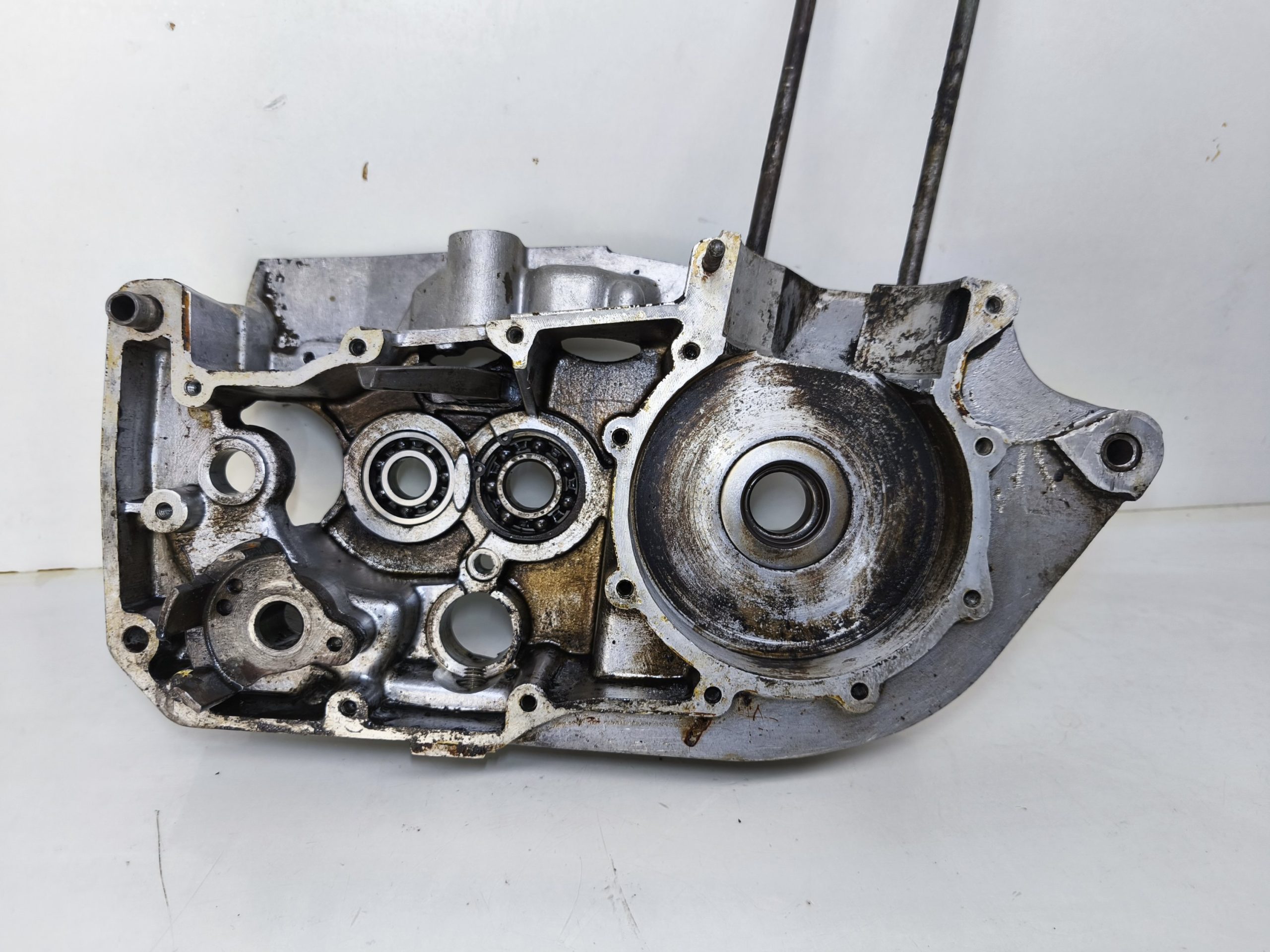 Kartery silnika MZ ES 250 Jaskółka Zerówka. W dobrym stanie, małe ślady wcześniejszych rozbiórek. Gwinty ok, miejsca pierścieni Segera ok. Przylgnie ładne. Mocowania pod szpilki ok, komora łańcucha wygląda dobrze.
