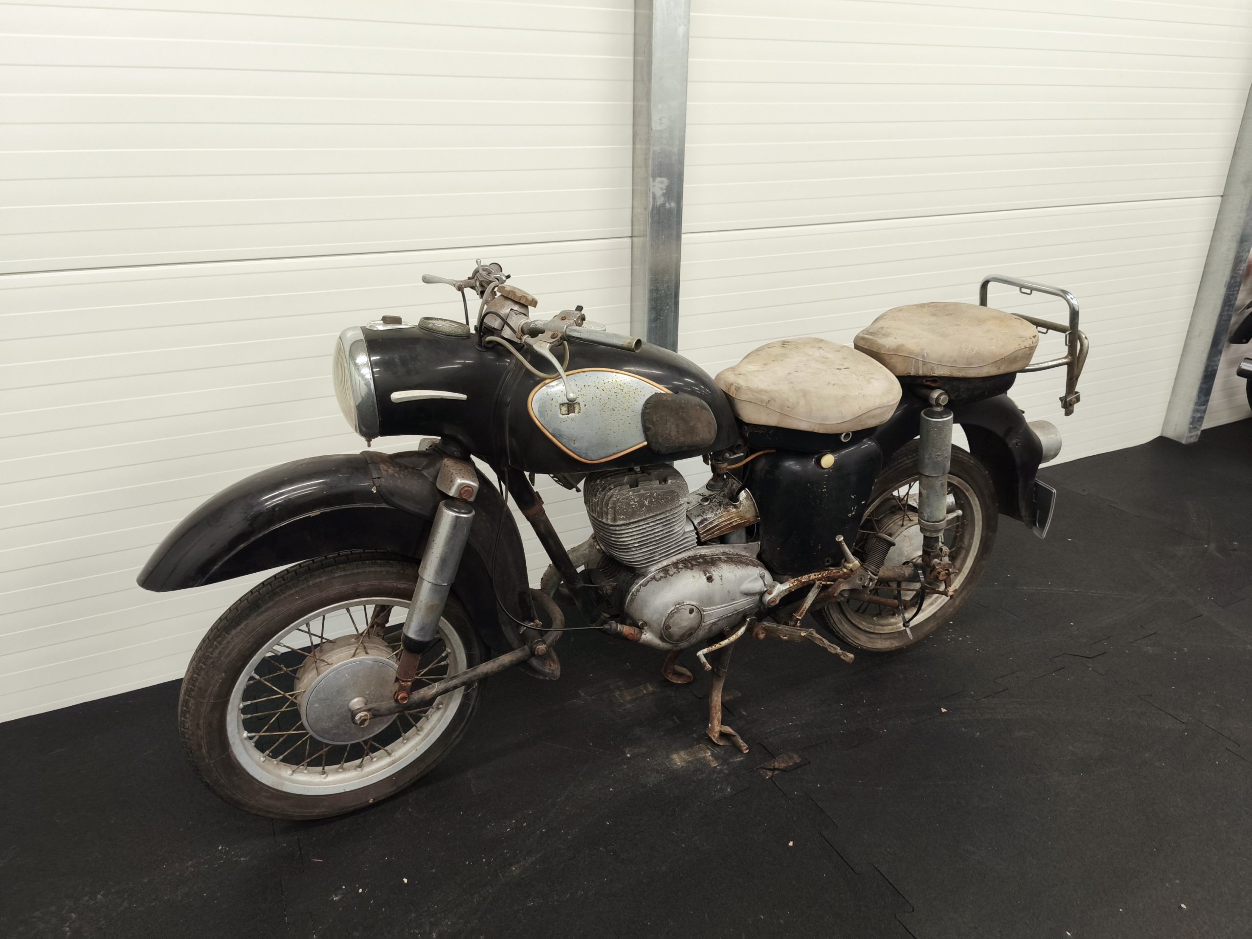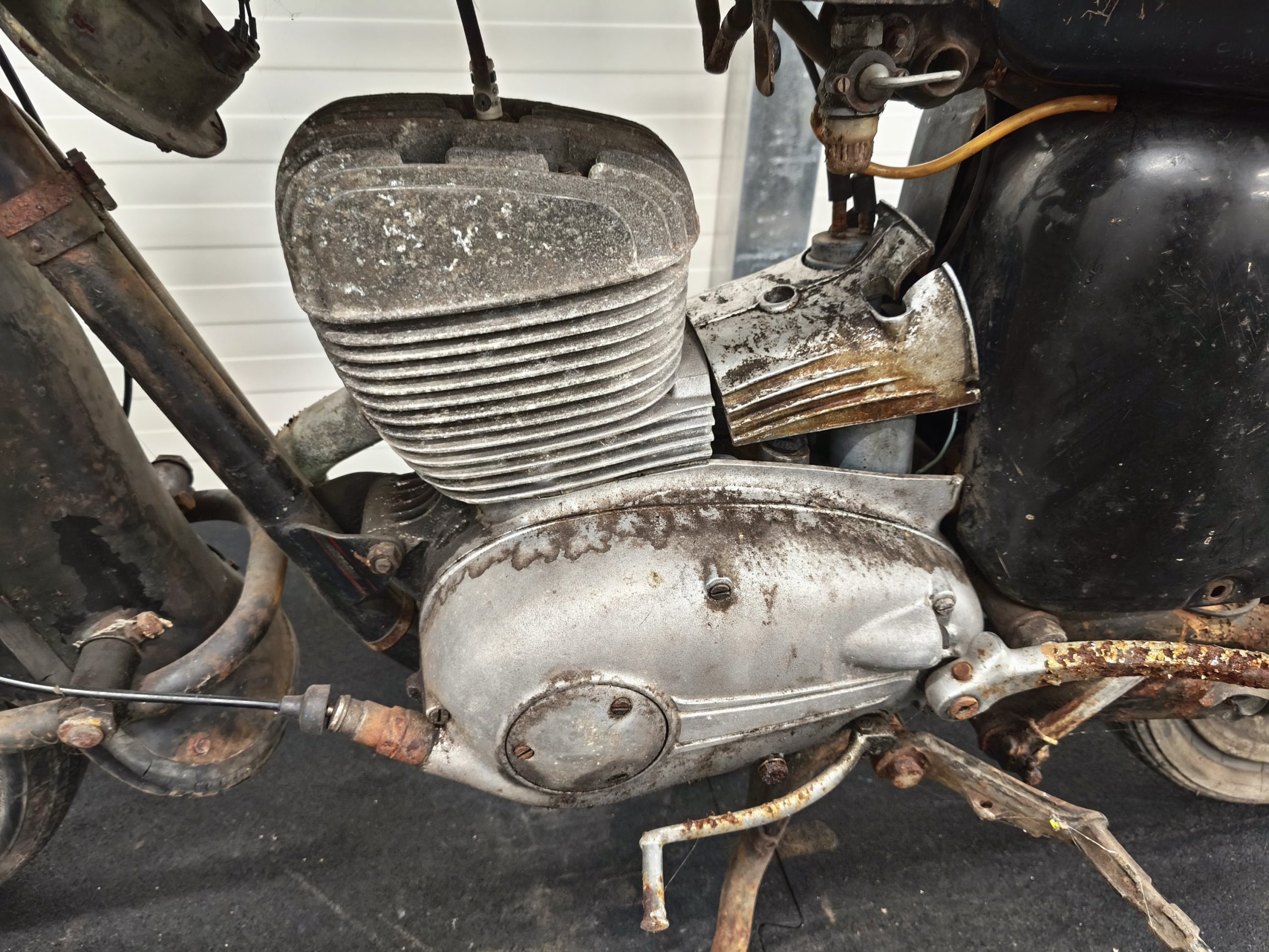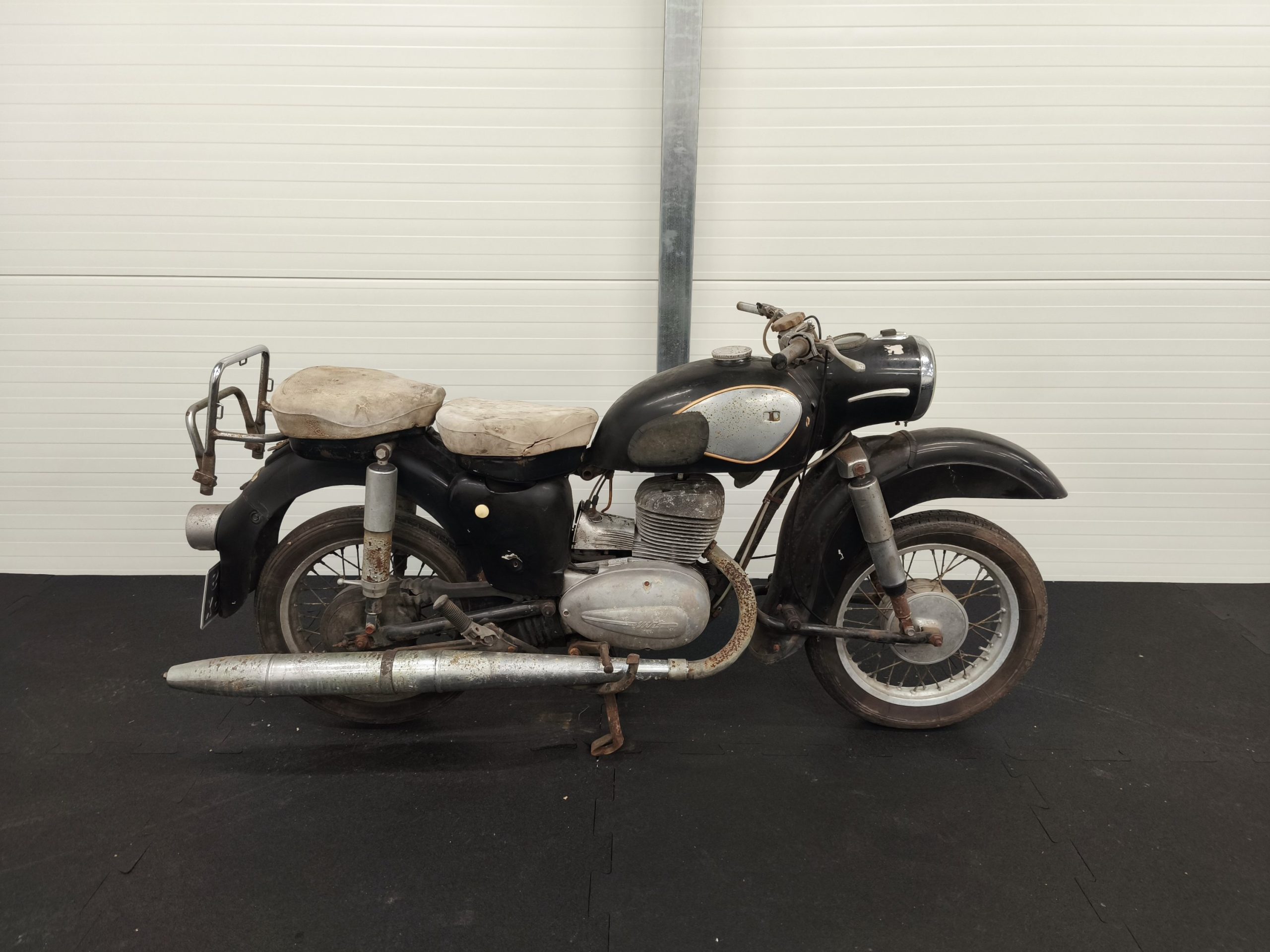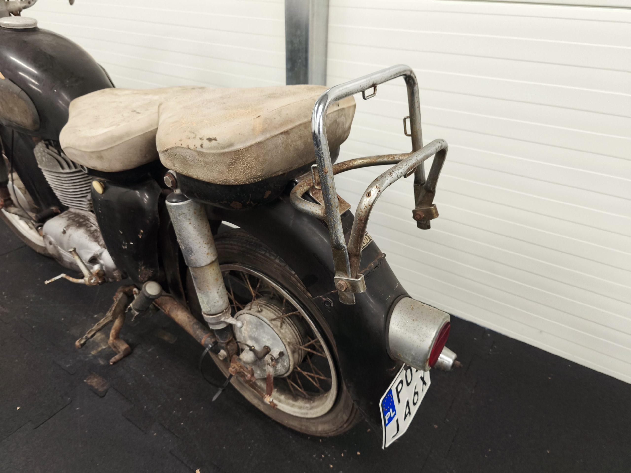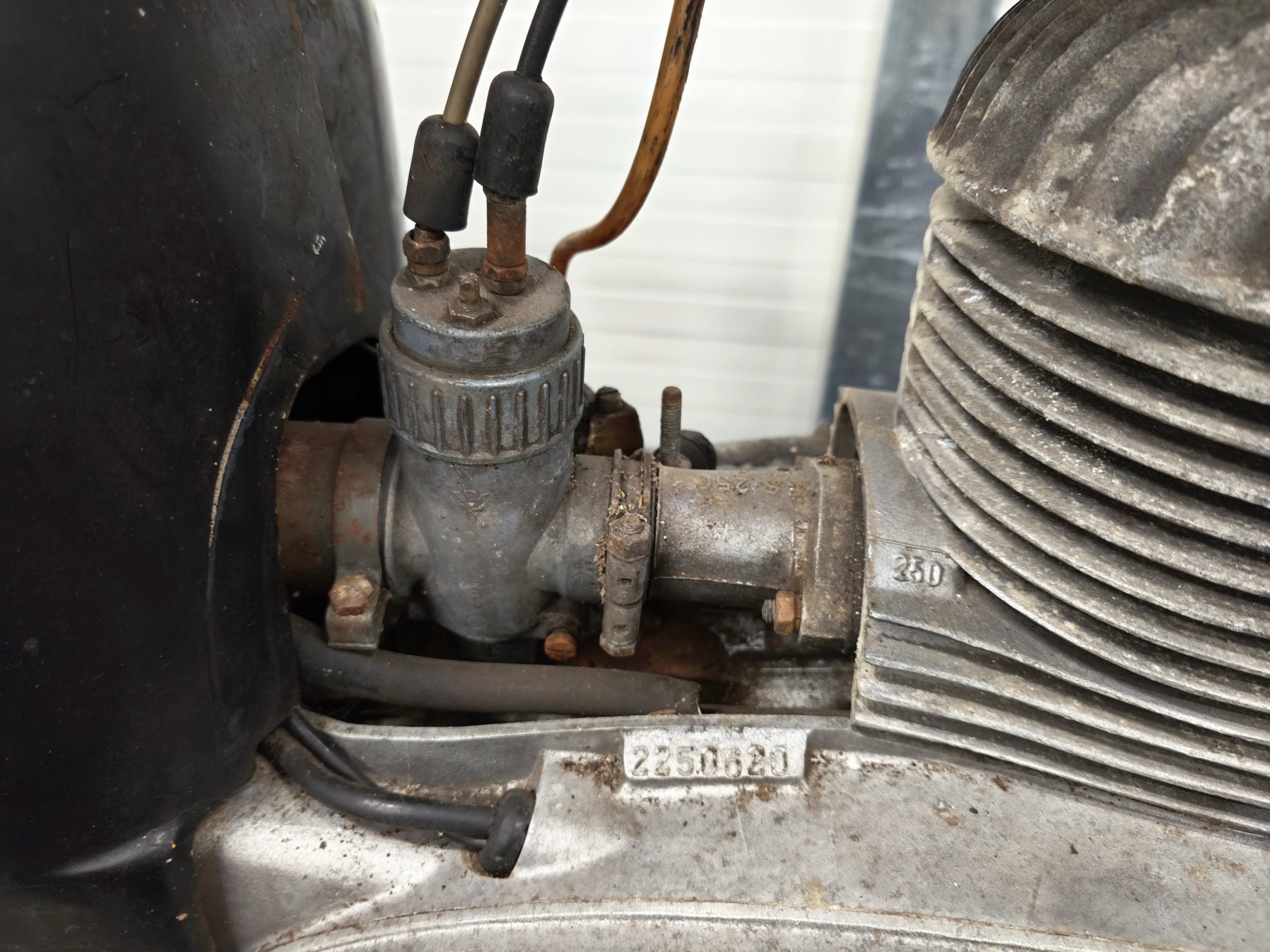 Silnik oryginał ES 250/1 kartery od numeru 22.. pokrywał się numerem ze starym dowodem rejestracyjnym. Silnik jest kompletny – jednak przyłapany prawdopodobnie na tłoku, po wciśnięciu dźwigni sprzęgła kopniak się obraca. Oryginalny gaźnik, prądnica oryginalna z przyspieszaczem zapłonu. Po tylu latach nieużytkowania sprzedaje z przeznaczeniem do rewizji – remontu silnika.
