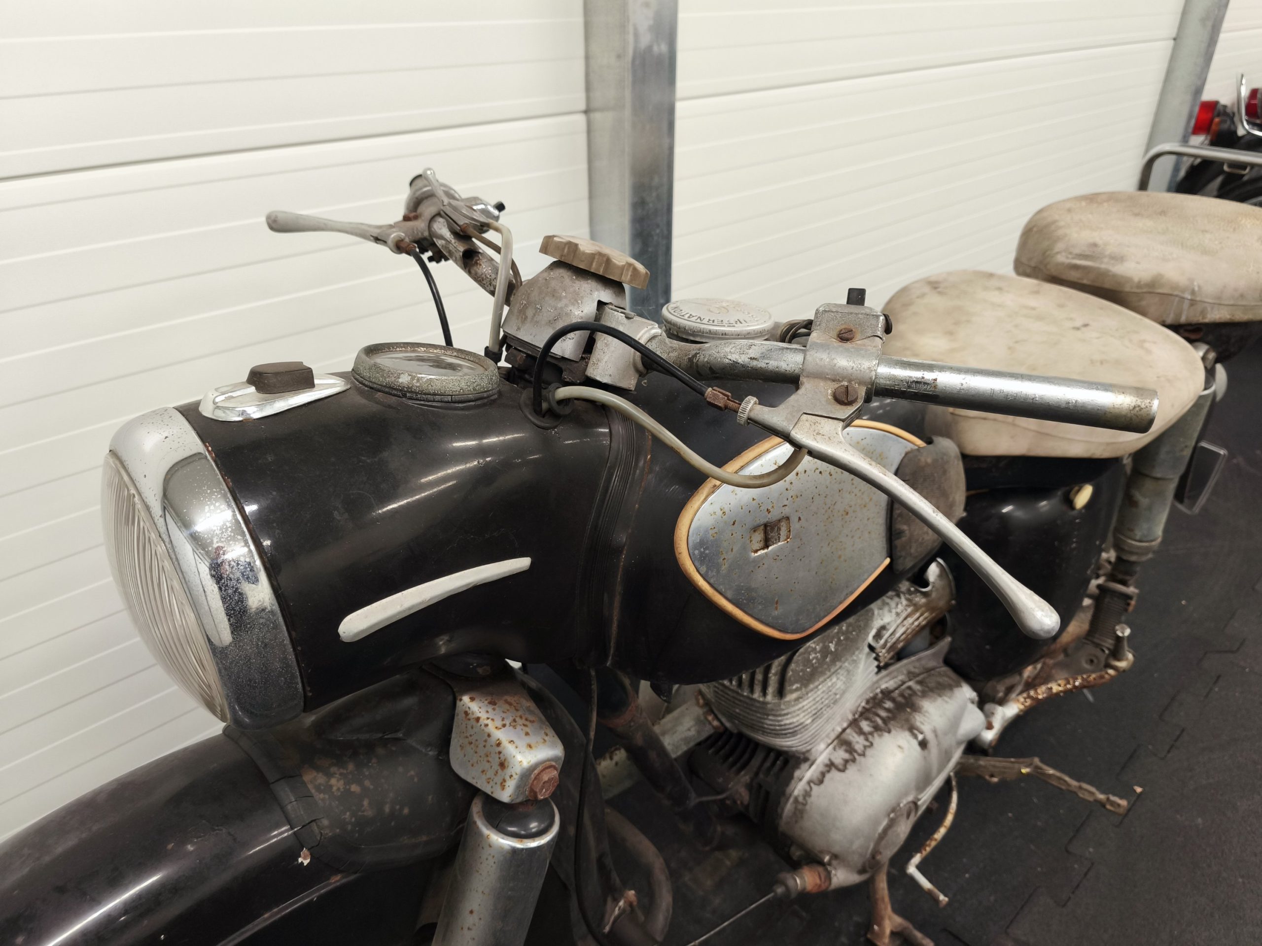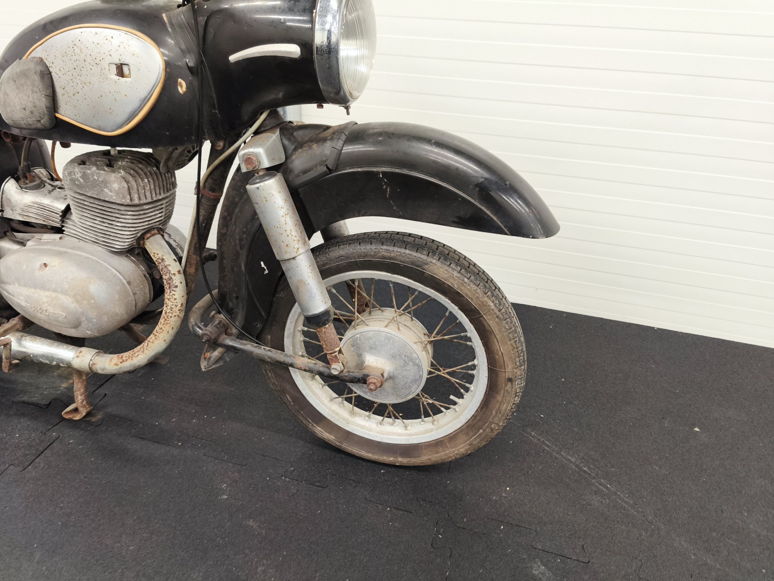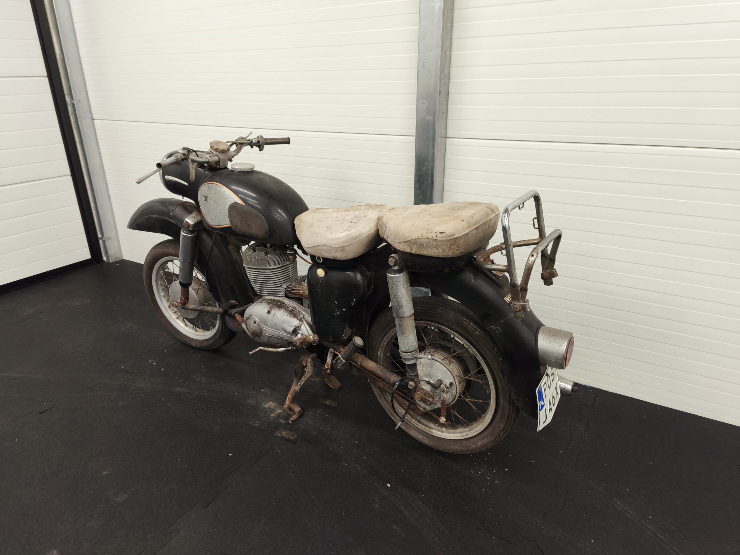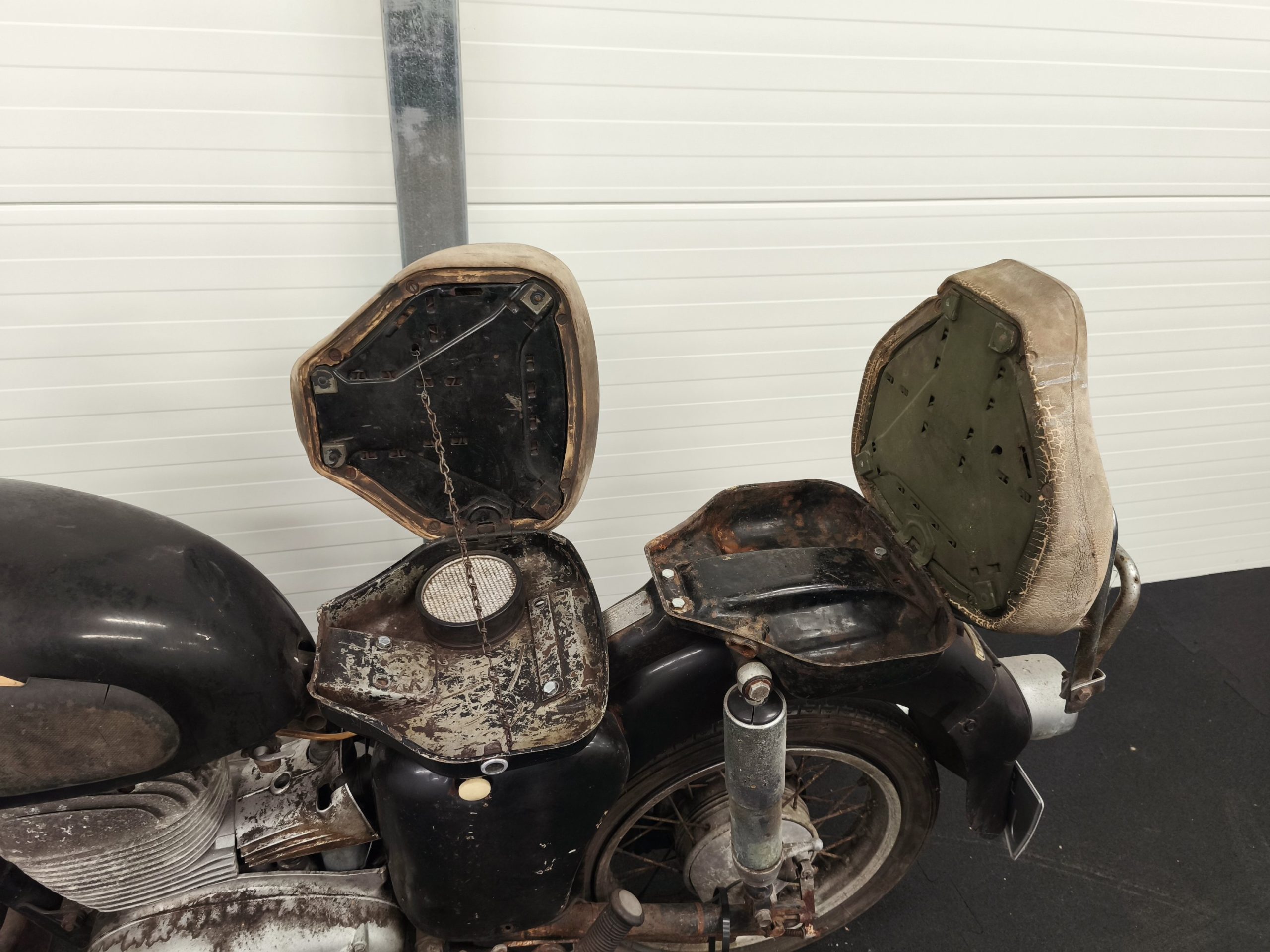 Silnik oryginał ES 250/1 kartery od numeru 22.. pokrywał się numerem ze starym dowodem rejestracyjnym. Silnik jest kompletny – jednak przyłapany prawdopodobnie na tłoku, po wciśnięciu dźwigni sprzęgła kopniak się obraca. Oryginalny gaźnik, prądnica oryginalna z przyspieszaczem zapłonu. Po tylu latach nieużytkowania sprzedaje z przeznaczeniem do rewizji – remontu silnika.