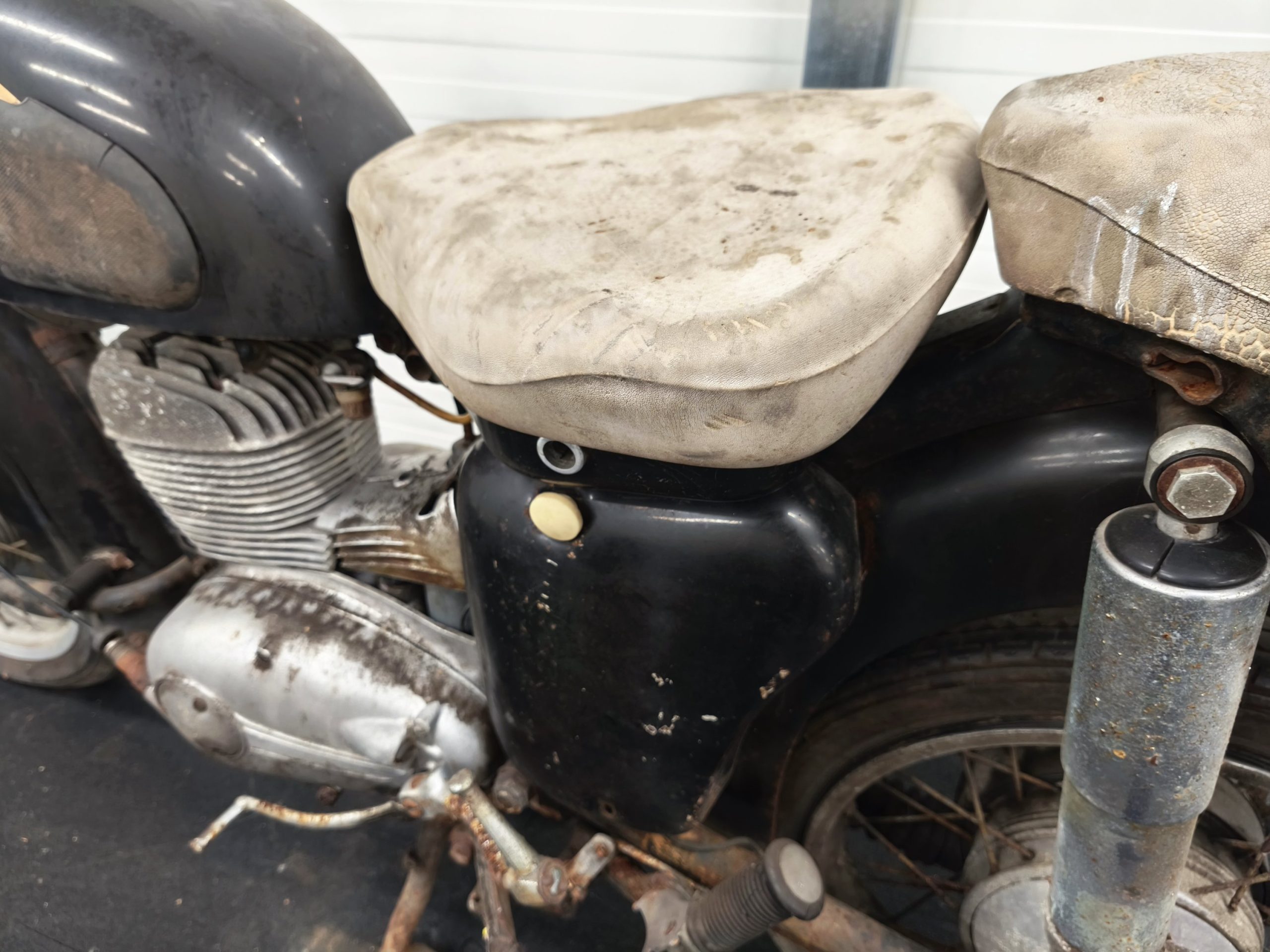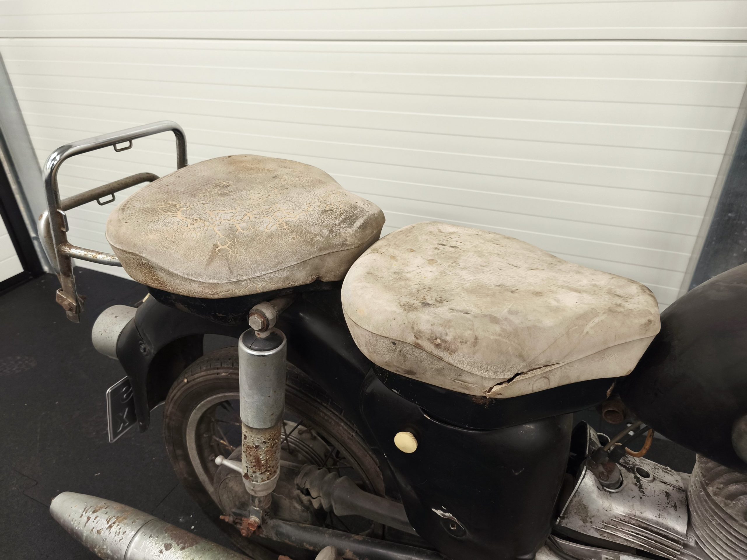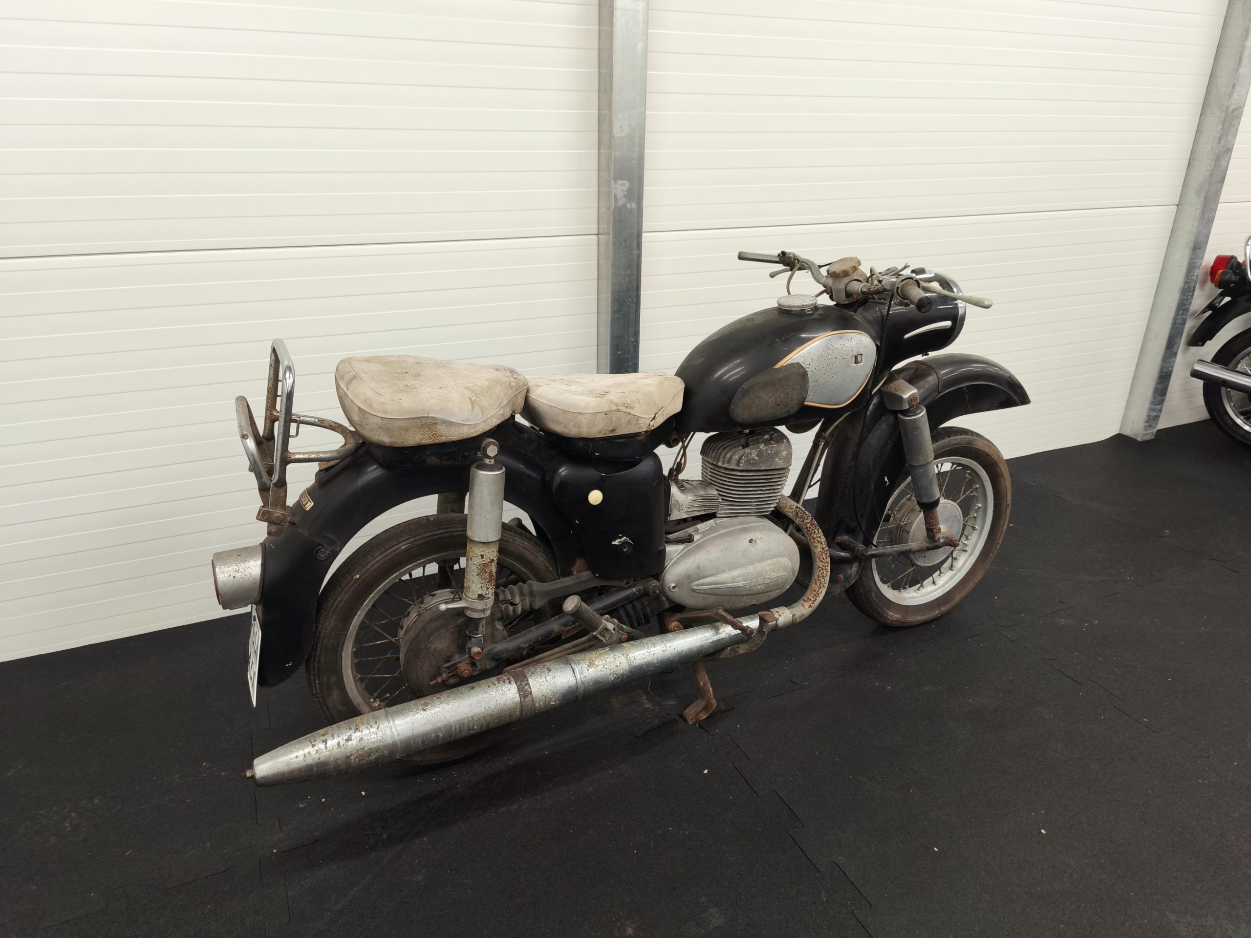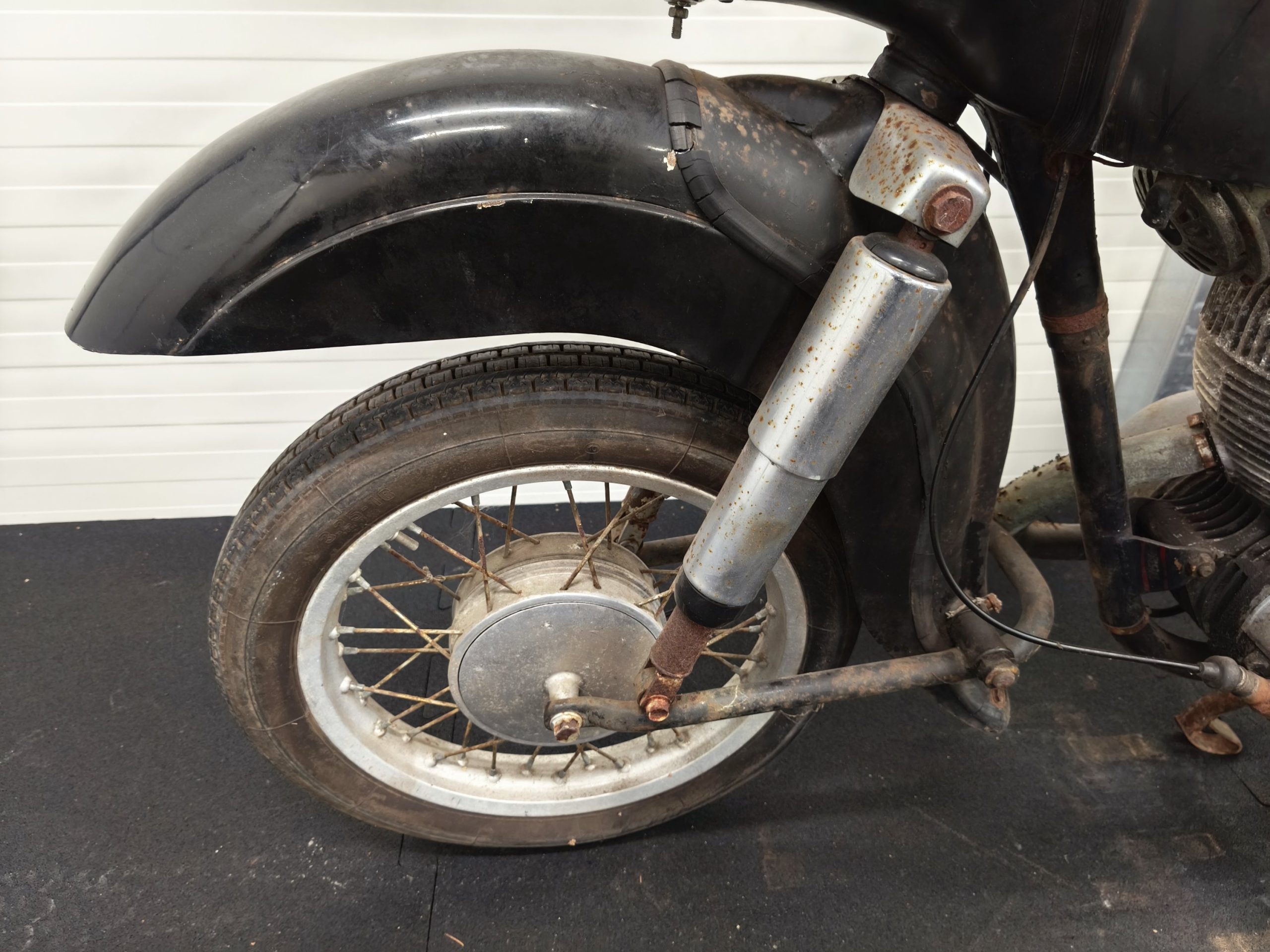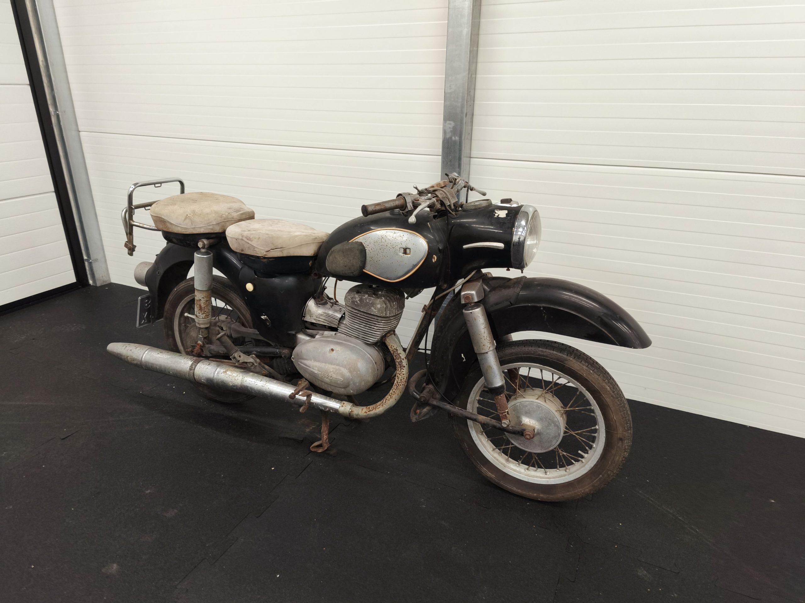 Silnik oryginał ES 250/1 kartery od numeru 22.. pokrywał się numerem ze starym dowodem rejestracyjnym. Silnik jest kompletny – jednak przyłapany prawdopodobnie na tłoku, po wciśnięciu dźwigni sprzęgła kopniak się obraca. Oryginalny gaźnik, prądnica oryginalna z przyspieszaczem zapłonu. Po tylu latach nieużytkowania sprzedaje z przeznaczeniem do rewizji – remontu silnika.