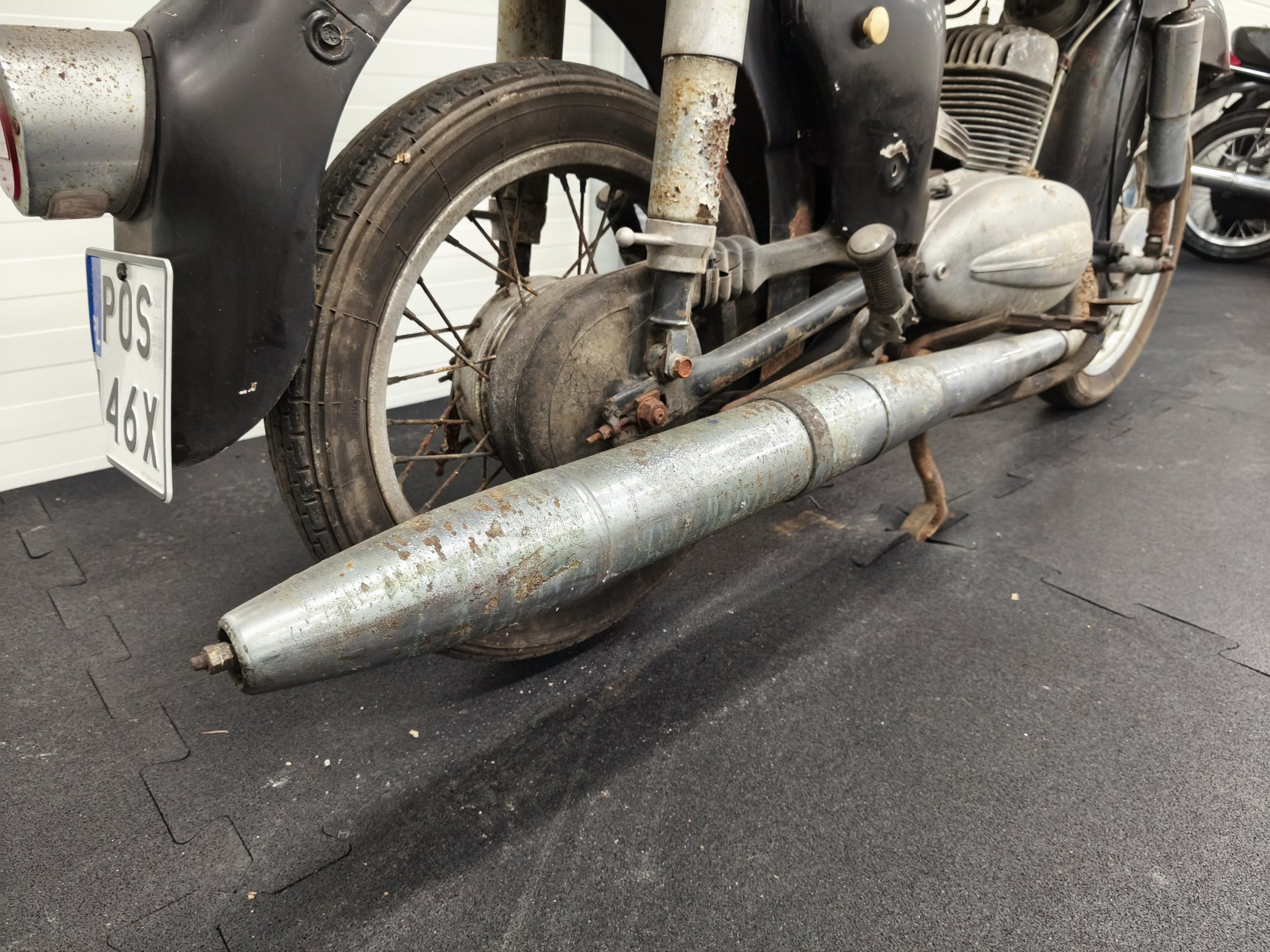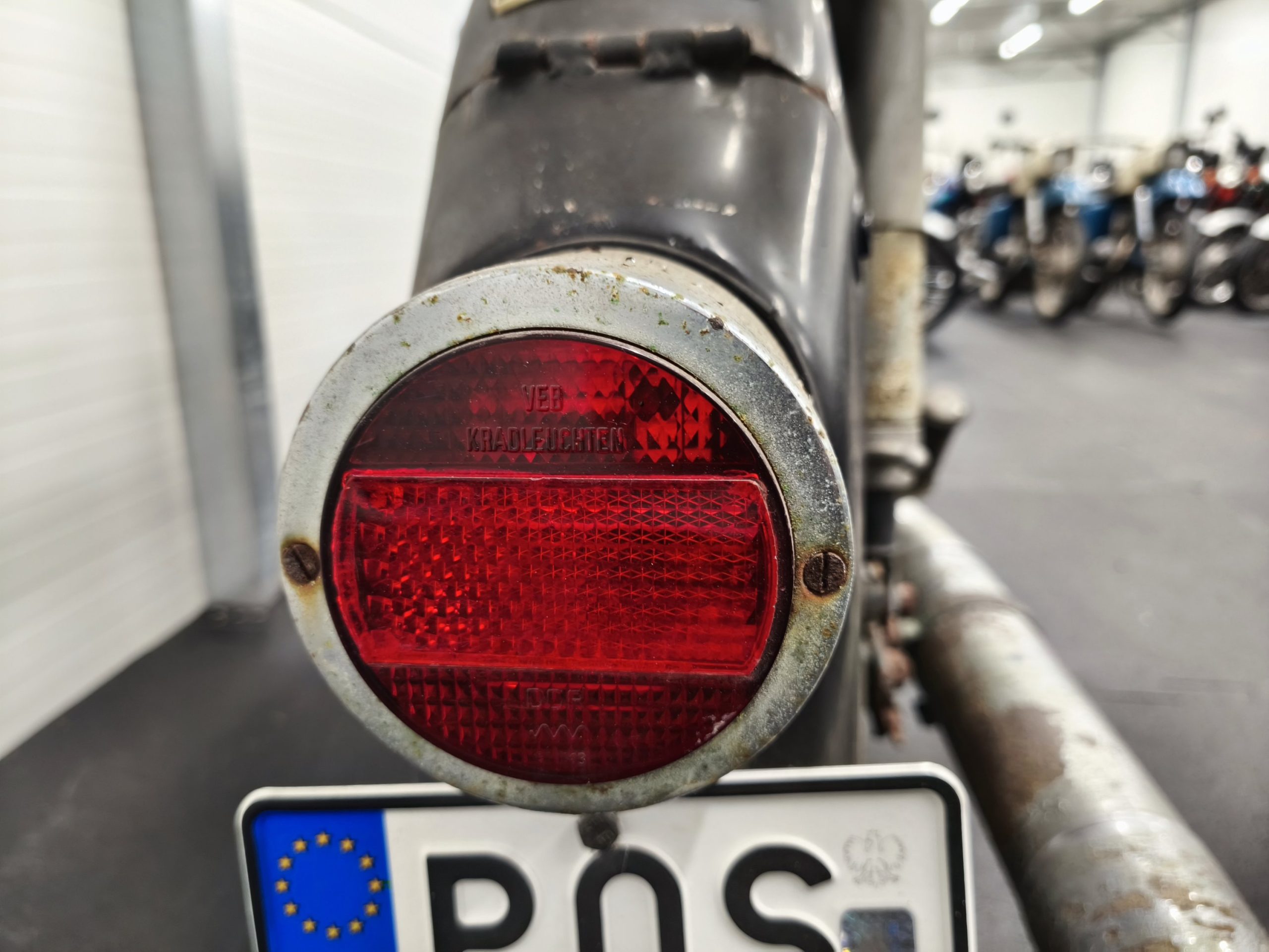 MZ kupiona przeze mnie w Niemczech kilka lat temu. Maszyna jest kompletna niemal w 100 procentach i jest z jednego kawałka. W motocyklu znajduje się oryginalny licznik czy takie smaczki jak osłona łańcucha czy korek zbiornika paliwa. Jaskółka była już kiedyś lakierowana przez poprzedniego właściciela w latach 90-tych. Jest to super baza do renowacji pod względem kompletności i oryginalności części.