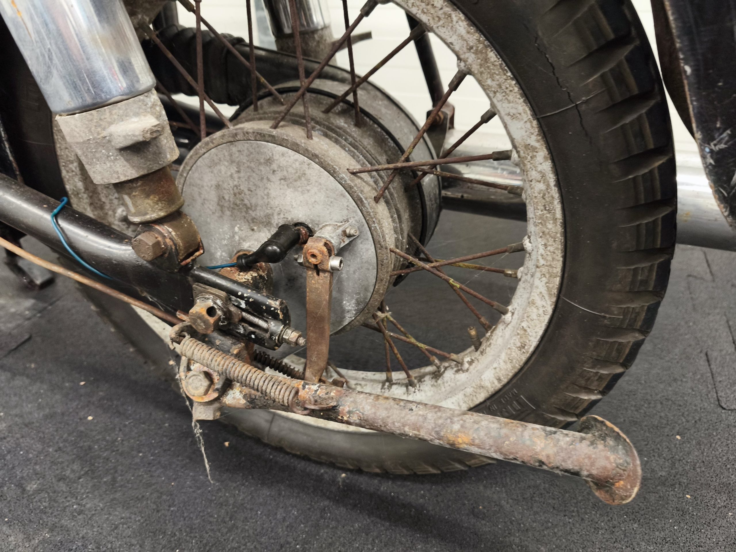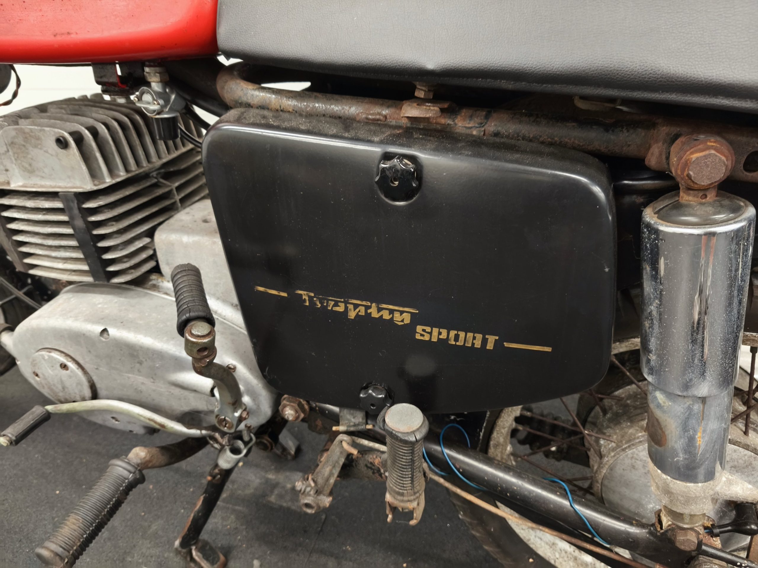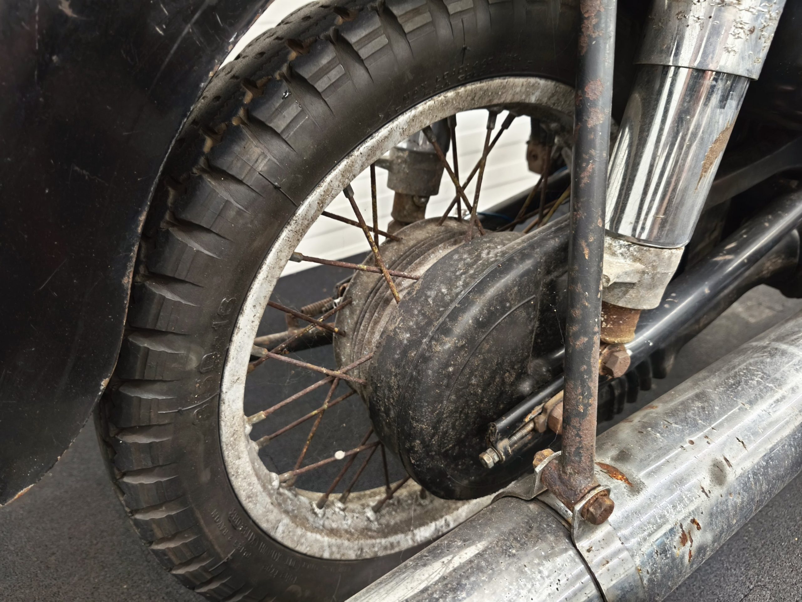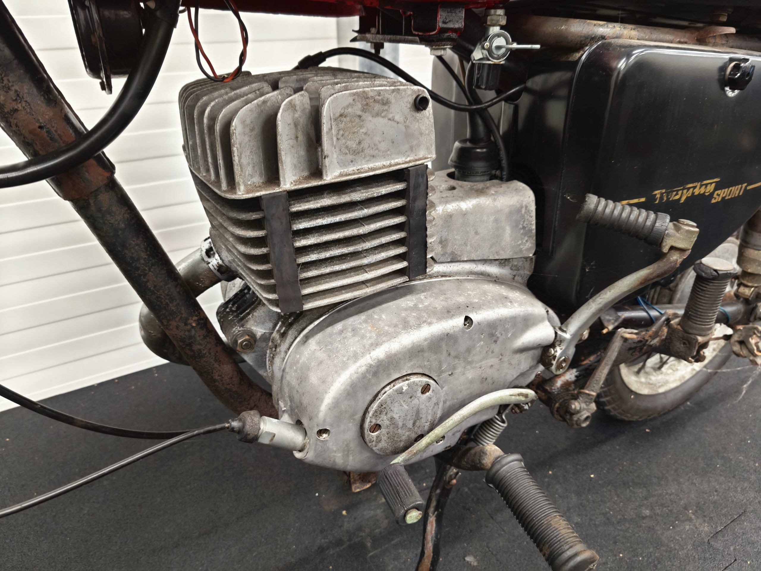 Silnik motocykla jest numerycznie zgodny z danymi ze starego dowodu – maszyna z jednego kawałka. Zewnętrznie silnik nie nosi śladów zniszczeń i możliwe że nie był wcześniej rozpoławiany. Choć cylinder jest od modelu TS 250 więc góra silnika mogła być ruszona. Ku naszemu zdziwieniu po załączeniu akumulatora – elektryka działa a na świecy pojawiła się iskra. Po paru kopnięciach maszyna odpaliła – silnik na wolnych obrotach pracował dość przyzwoicie, niestety po kilku miesiącach przy kolejnej próbie odpalenia, maszyna nie zagadała – na te chwilę pojazd nie odpala. W motocyklu sklejone prawdopodobnie jest sprzęgło. Silnik należy traktować jako do remontu.