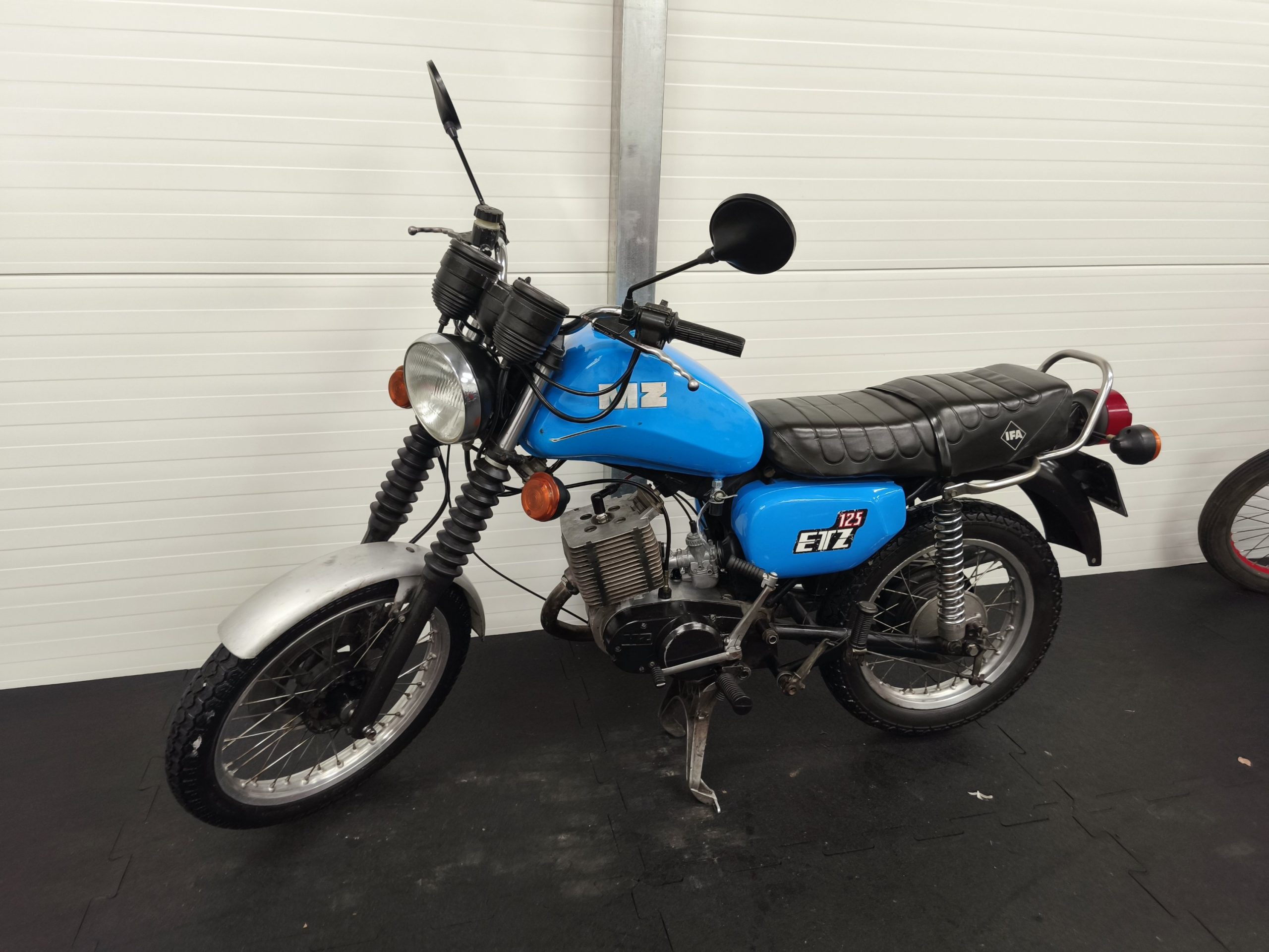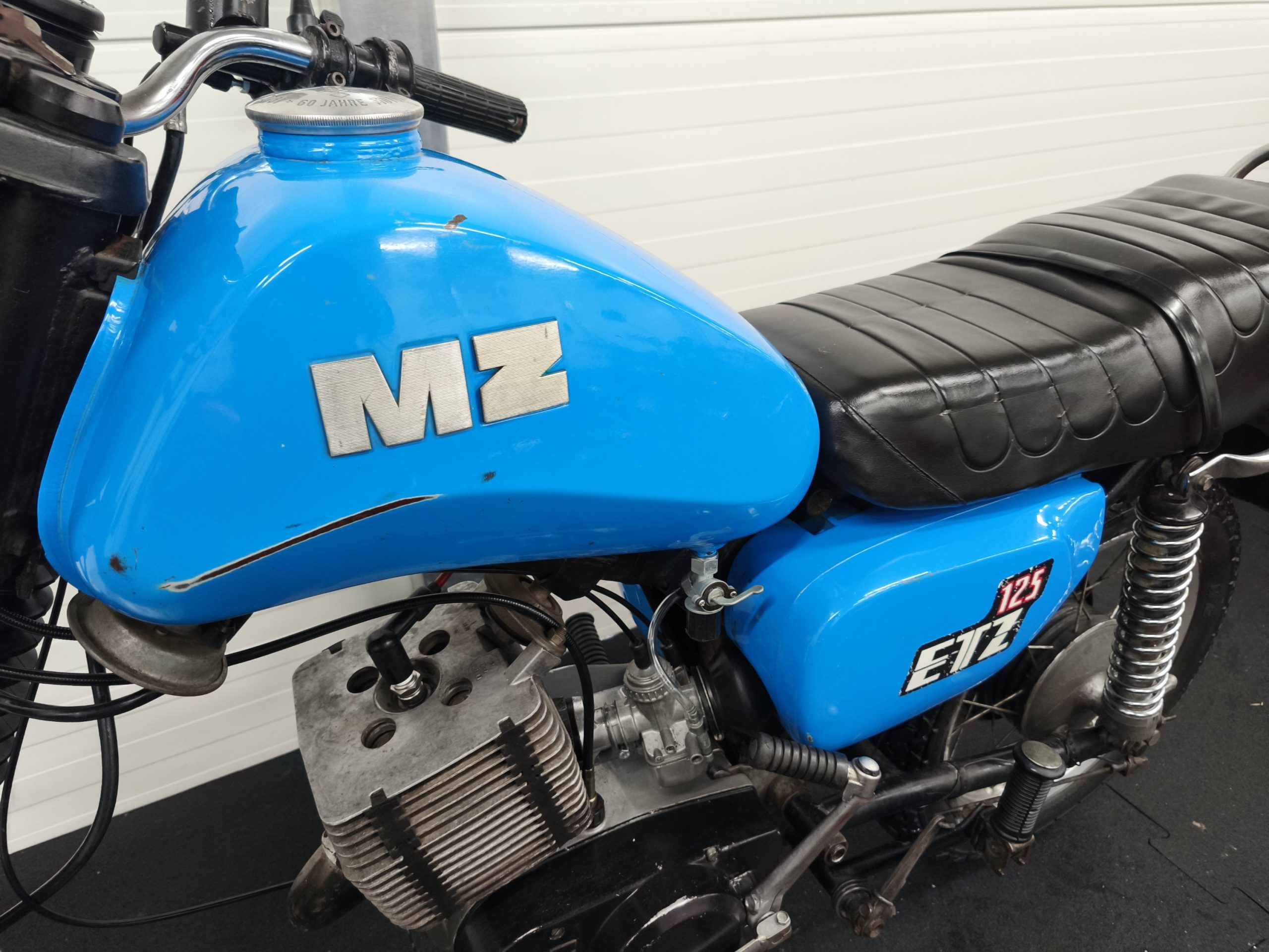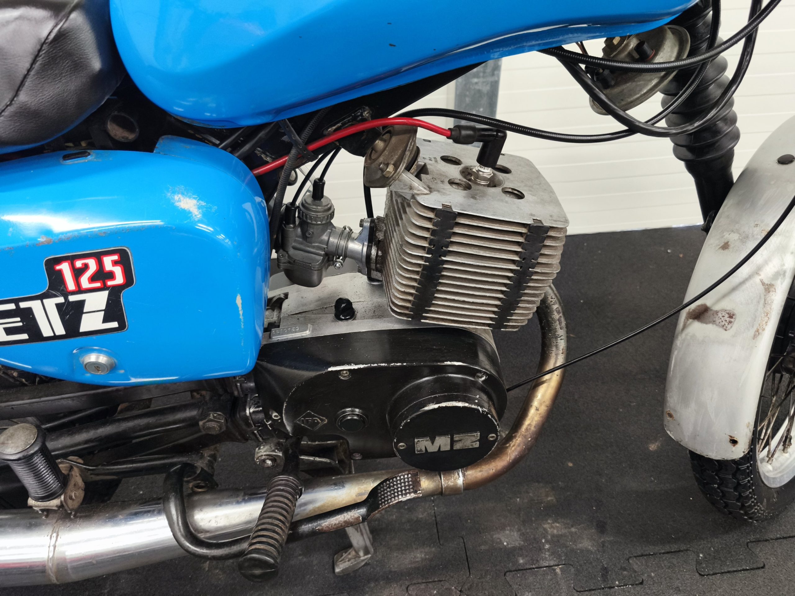 Silnik to oryginalna jednostka ETZ 125. Gaźnik 22n2-2, głowica oraz cylinder o pojemności 125 – oryginał. W silniku znajduje się zapłon platynowy. Motocykl po wizycie u Mechanika – wymienione zostały: uszczelniacze, tarczki sprzęgła, olej w silniku a także łożyska na wale. Gaźnik po myjce ultradźwiękowej. Zostały przeprowadzone regulacje zapłonu oraz gaźnika. Na te chwilę motocykl ładnie odpala. Dobrze pracuje na wolnych obrotach, ładnie wkręca się na wysokie obroty. MZ-tką odbyliśmy jazdy próbne – sprzęgło działa, biegi wchodzą. Maszyna zbiera się dość ładnie – sprzedawana jest z hasłem: „jeździć, obserwować”.