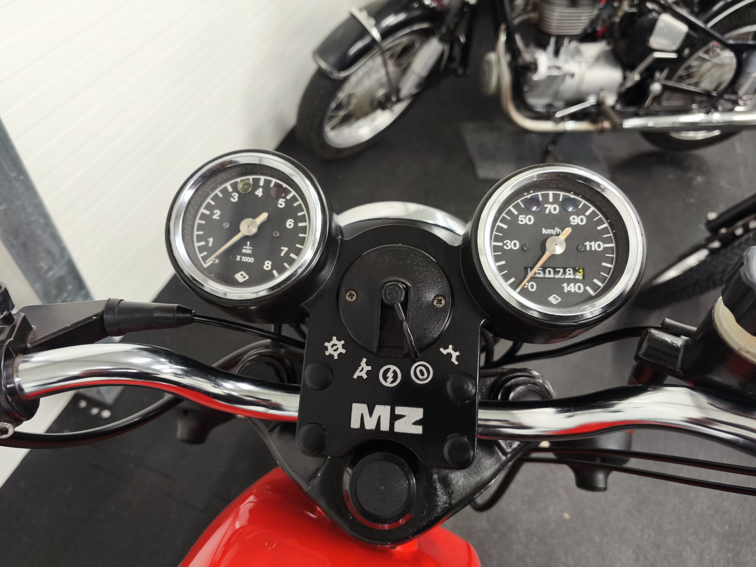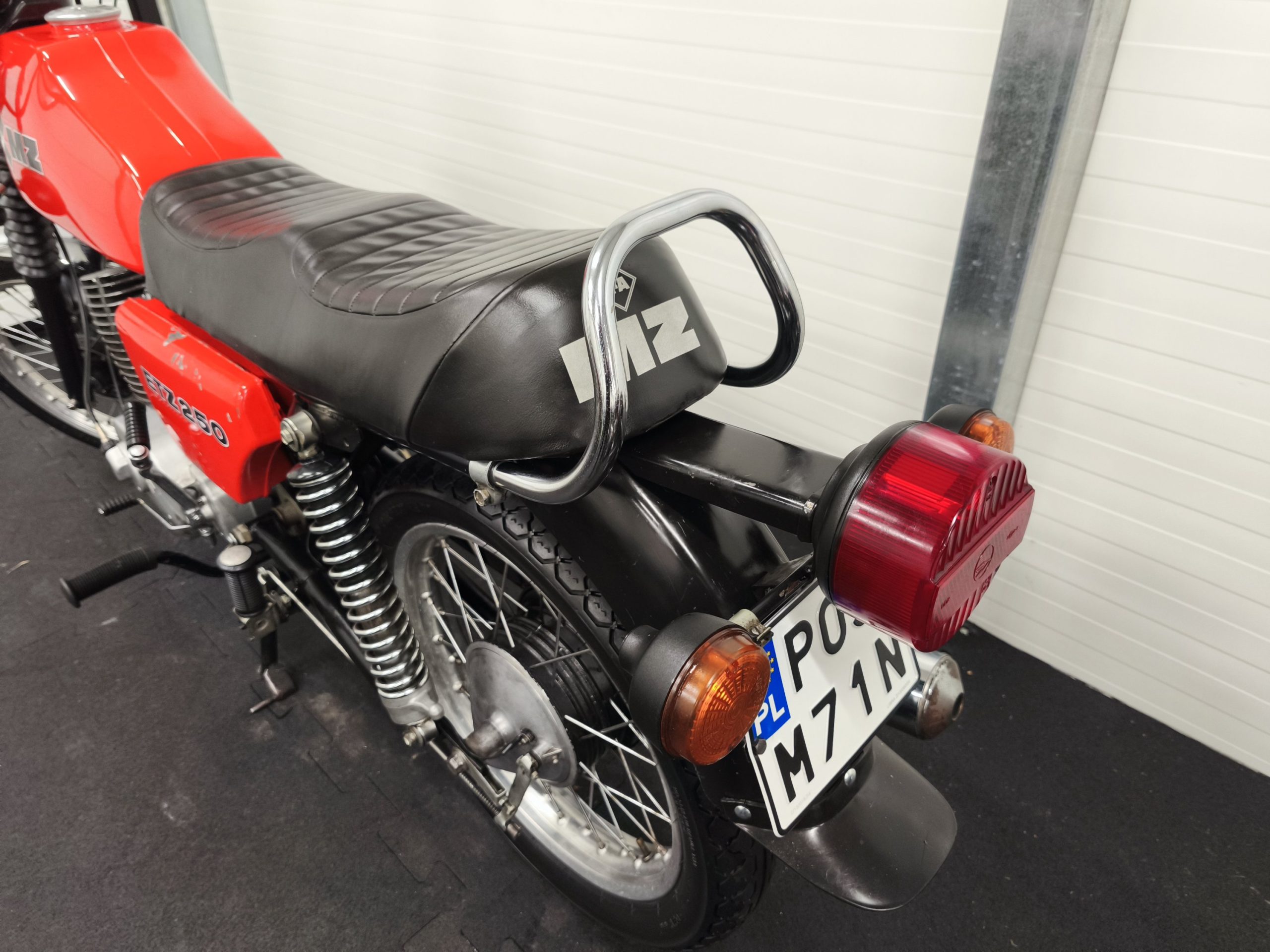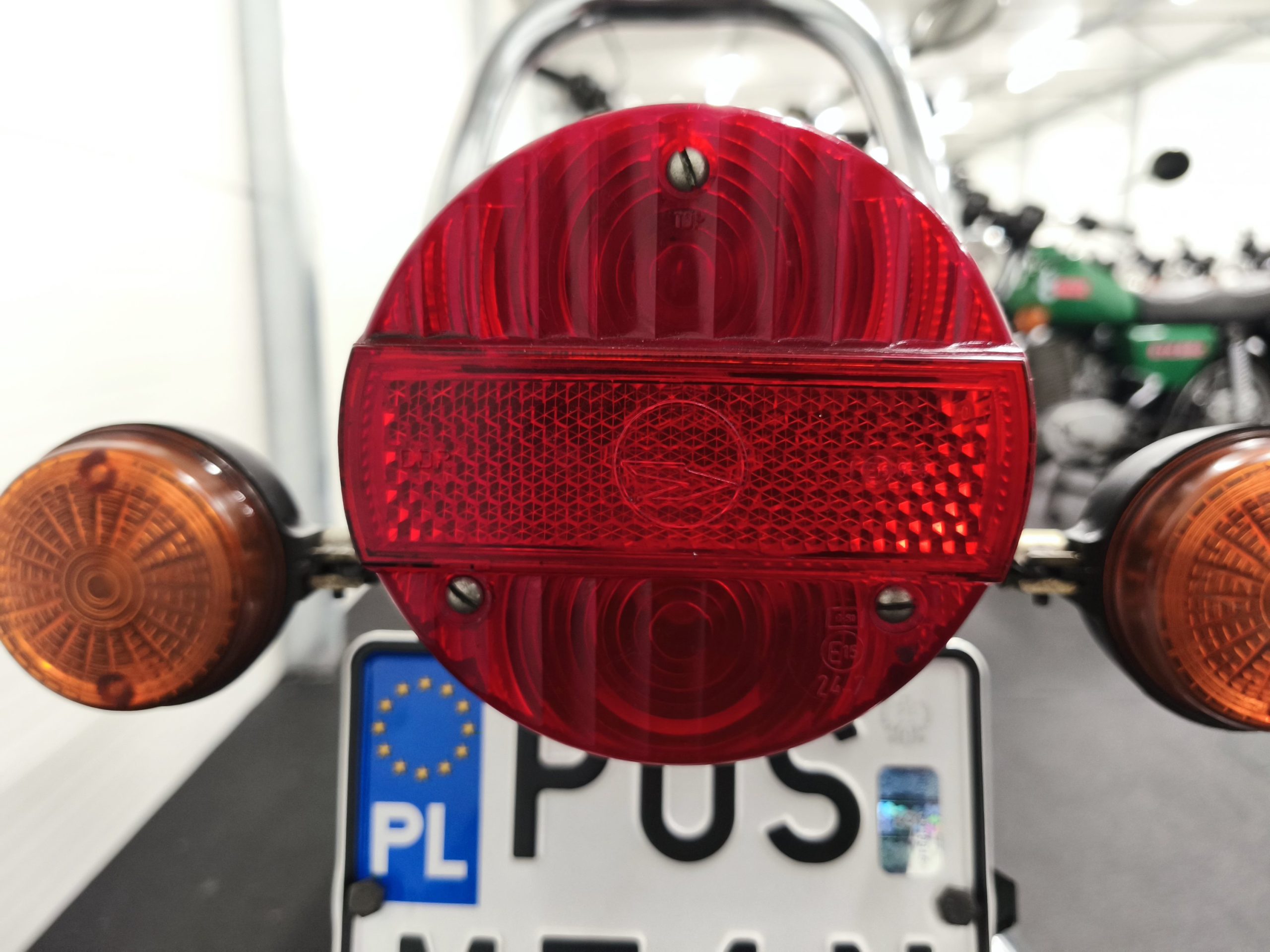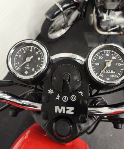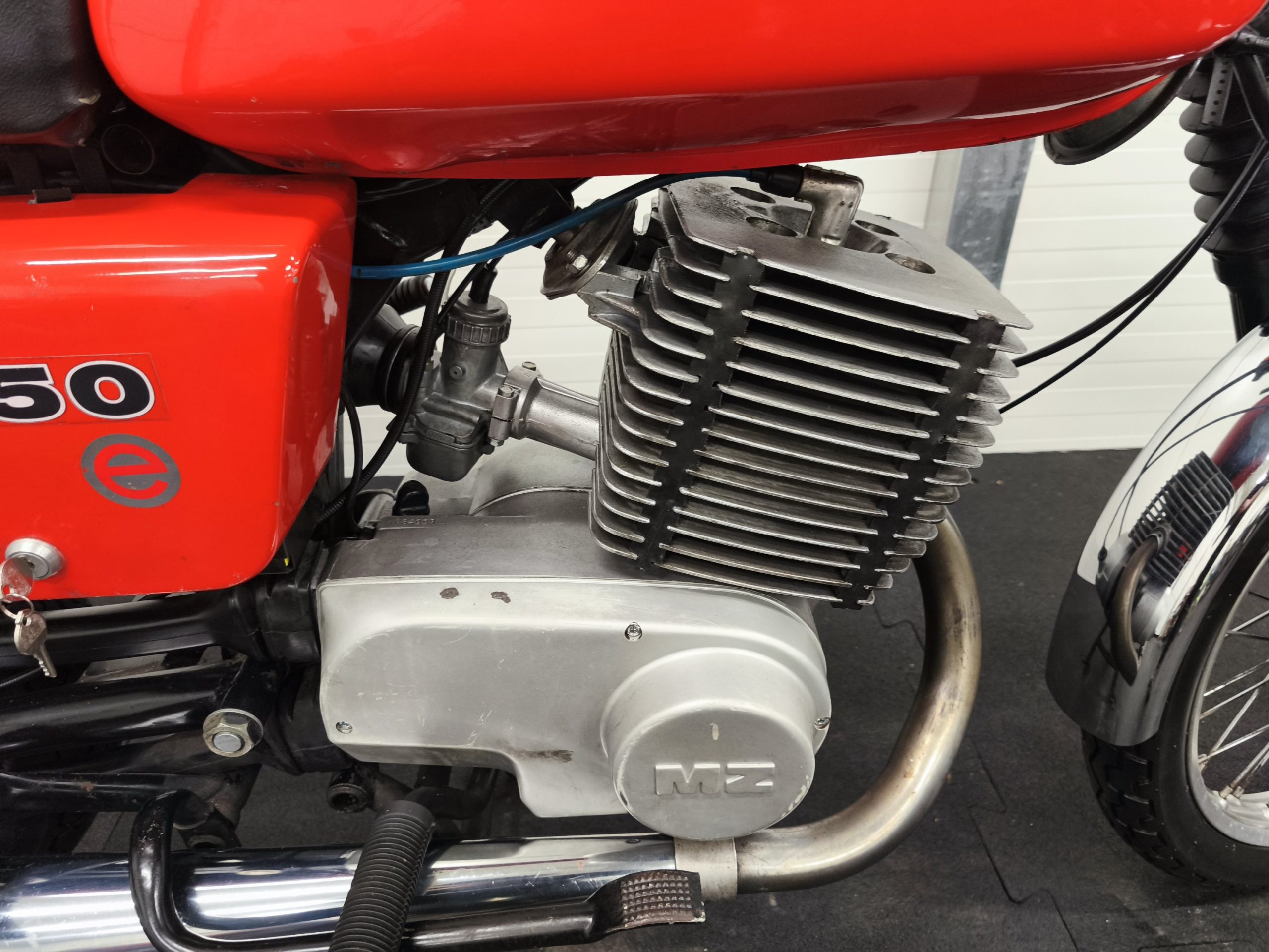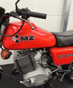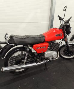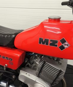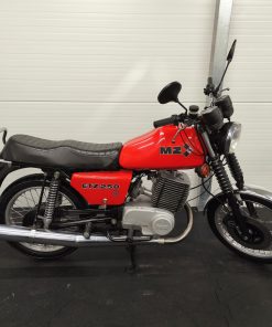 Motocykl zakupiony w Niemczech. Zachowany jest w oryginalnym lakierze oraz w super kompletności pod względem oryginalności części. Lampy, kierunkowskazy, klakson – oryginał – elektryka sprawna. Pięknie zachowane siedzenie. Przedni błotnik chromowany. Zawieszenie przednie po regeneracji. Pompka hamulcowa oraz zacisk oryginalne – sprawne. Bardzo ładnie zachowane felgi (rzadkość w MZ). Pod siedzeniem oryginalna pompka do kół, oraz fabryczny zestaw kluczy naprawczych. Ładnie zachowany tłumik z którego wydobywa się przepiękny dźwięk.