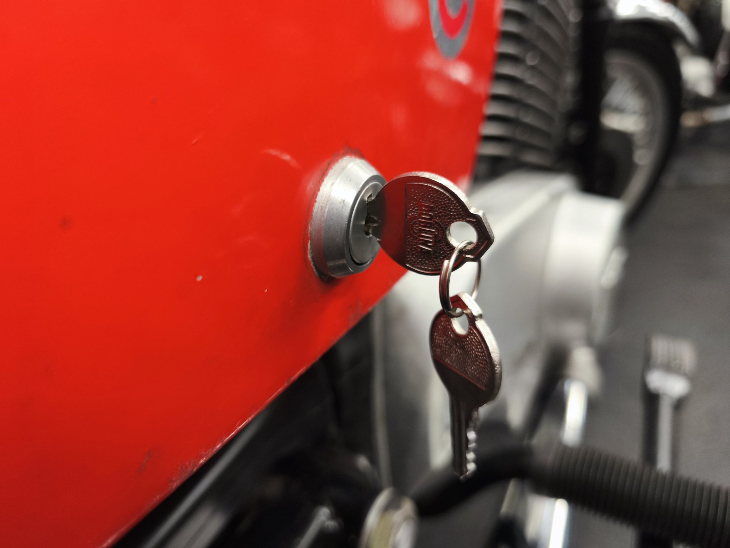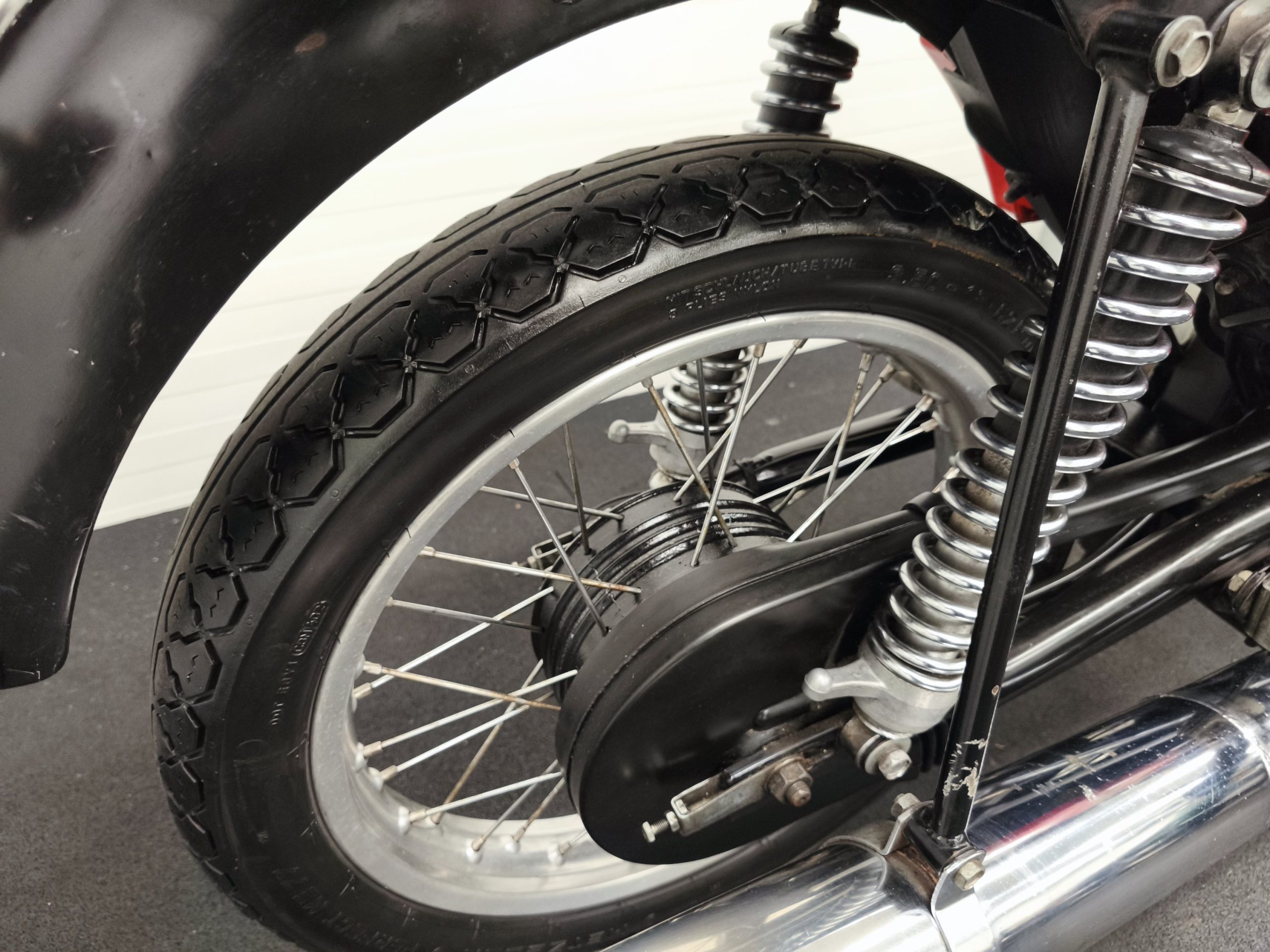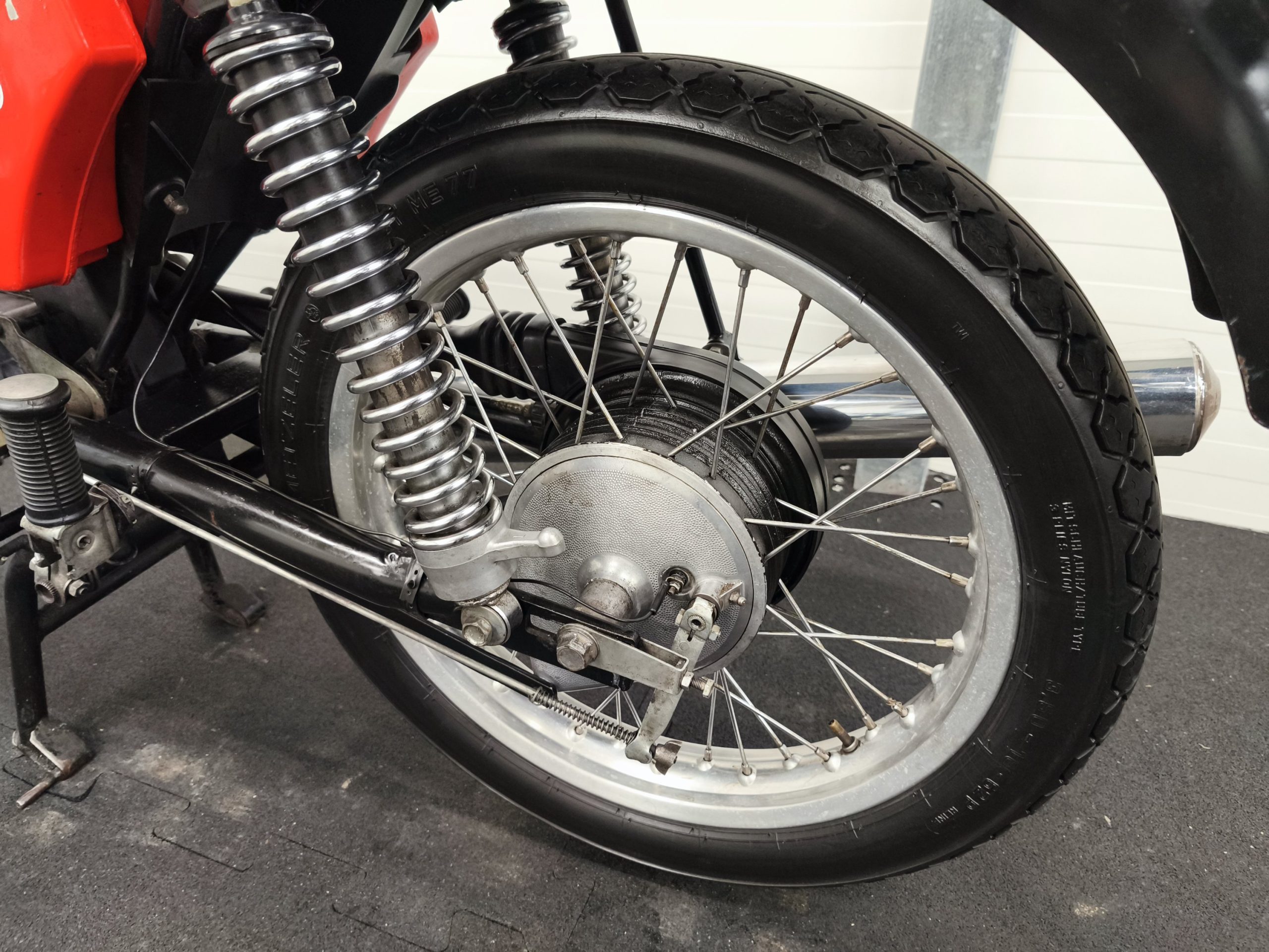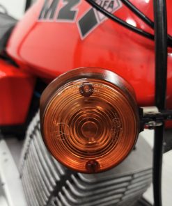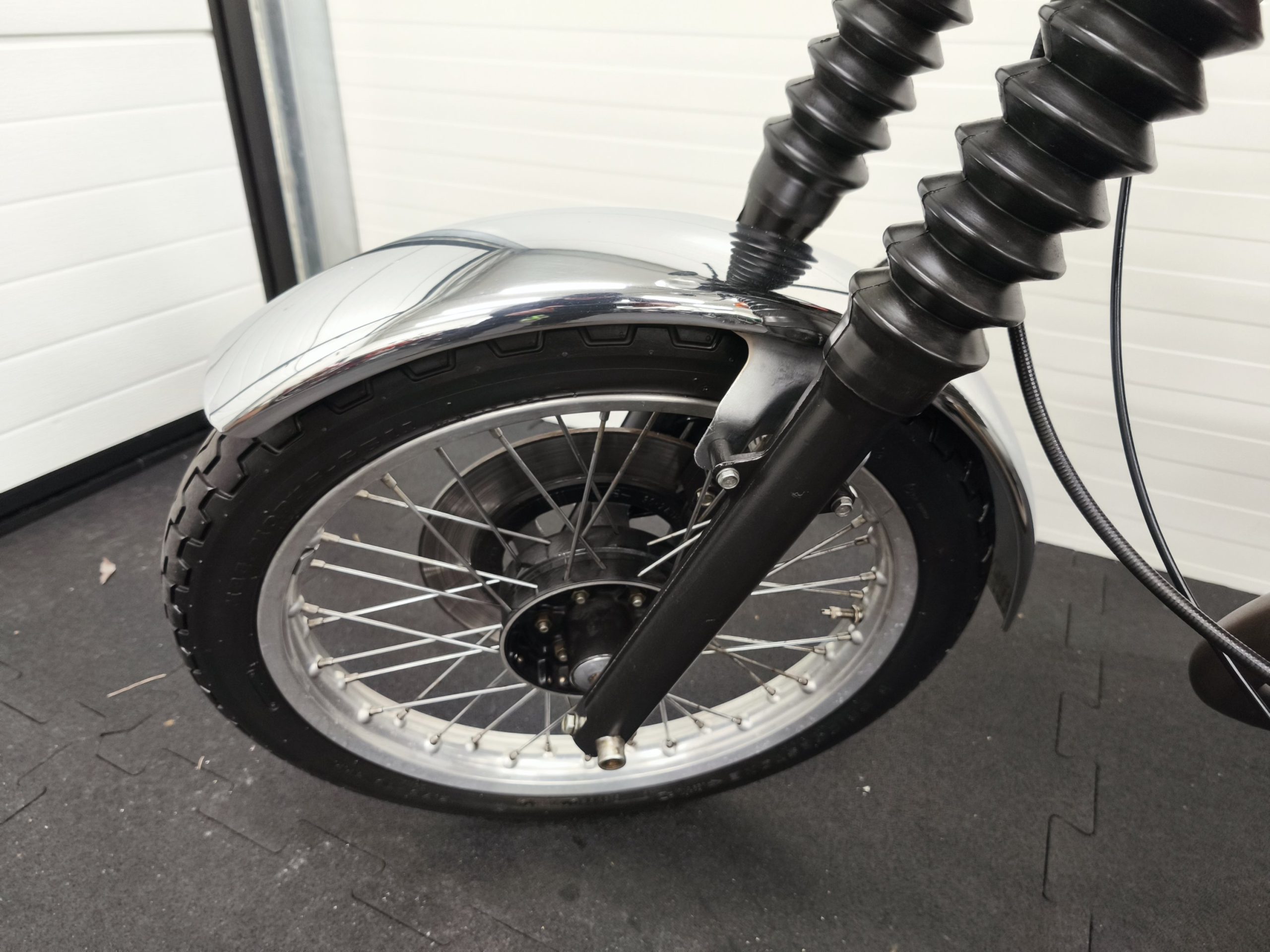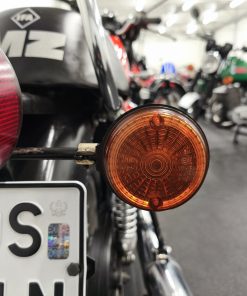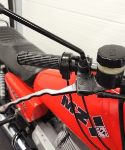 Motocykl zakupiony w Niemczech. Zachowany jest w oryginalnym lakierze oraz w super kompletności pod względem oryginalności części. Lampy, kierunkowskazy, klakson – oryginał – elektryka sprawna. Pięknie zachowane siedzenie. Przedni błotnik chromowany. Zawieszenie przednie po regeneracji. Pompka hamulcowa oraz zacisk oryginalne – sprawne. Bardzo ładnie zachowane felgi (rzadkość w MZ). Pod siedzeniem oryginalna pompka do kół, oraz fabryczny zestaw kluczy naprawczych. Ładnie zachowany tłumik z którego wydobywa się przepiękny dźwięk.