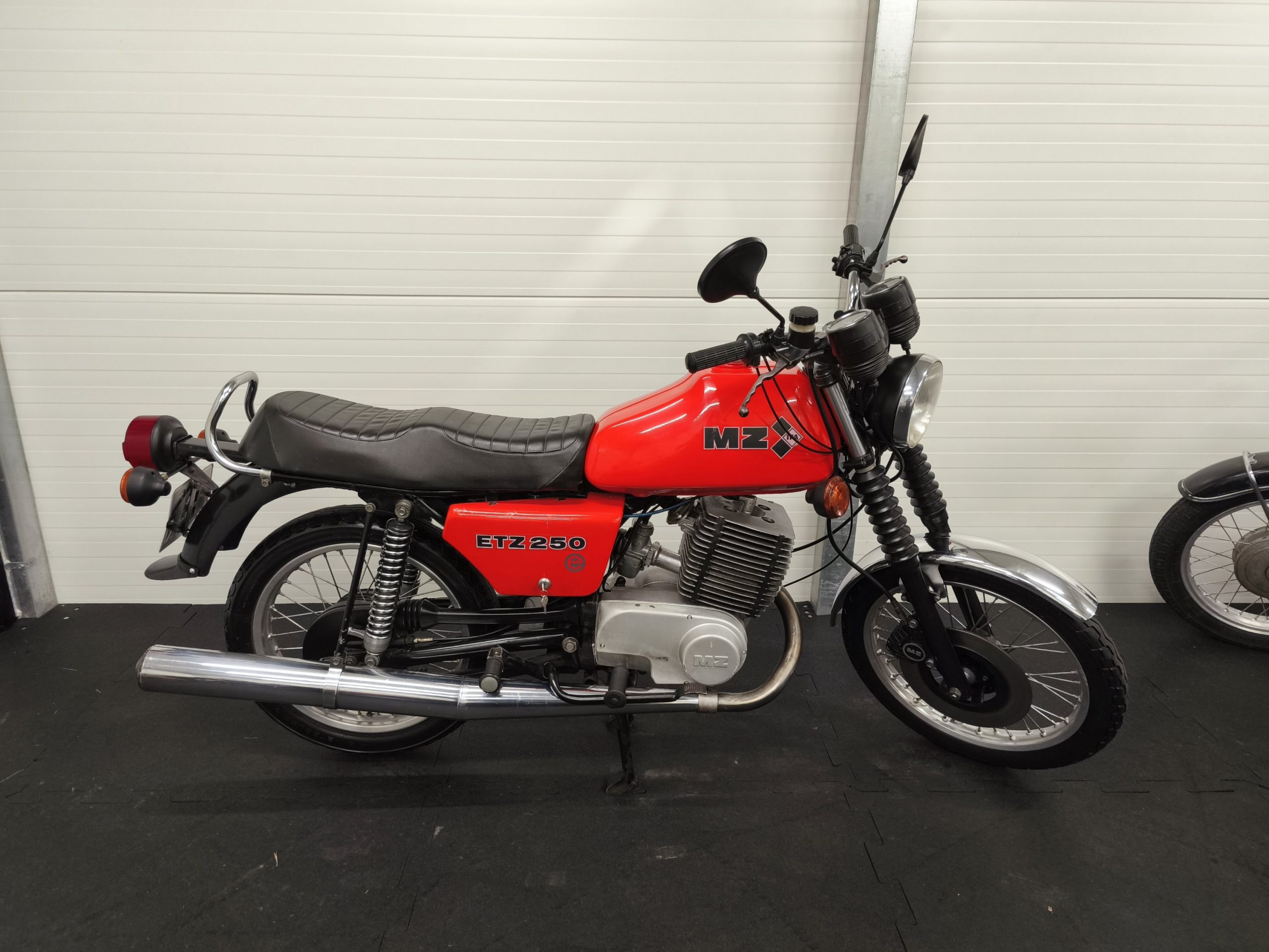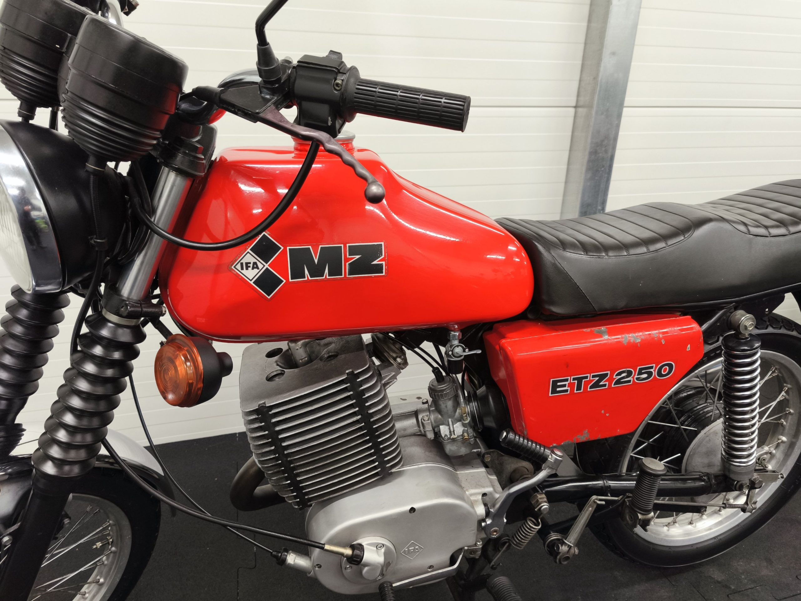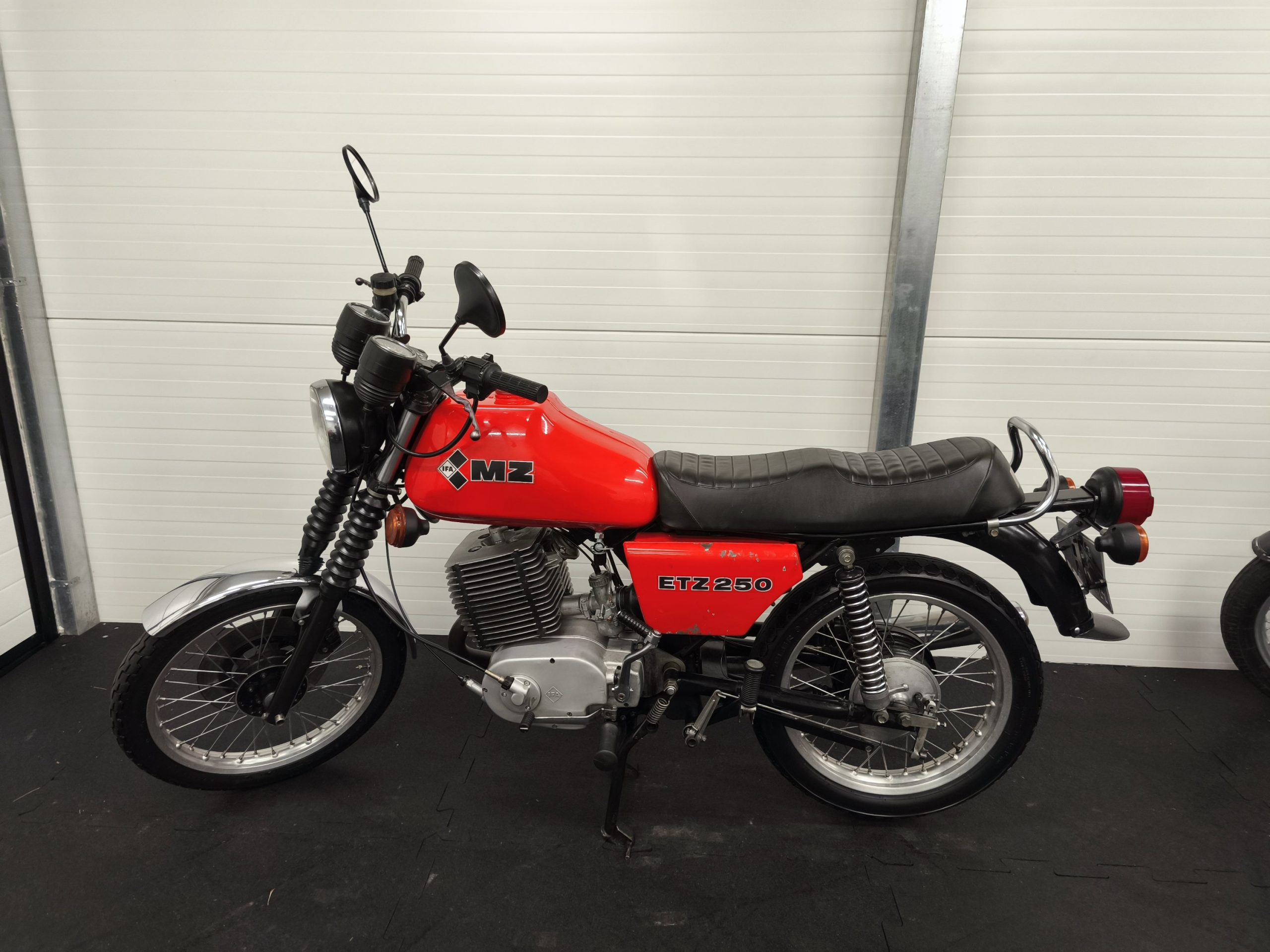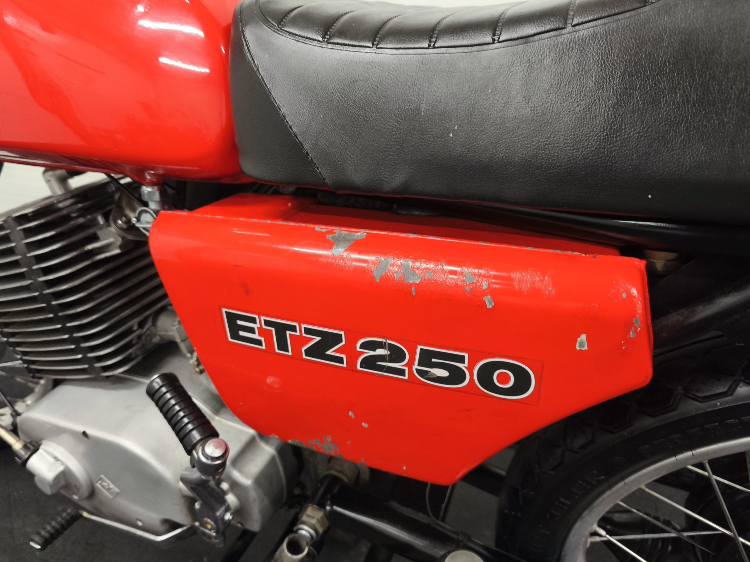 Silnik to oryginalna jednostka ETZ 250 z zapłonem elektronicznym typu A. W momencie zakupu motocykl był „odpalający” jednak wymagał serwisu. Trafił zatem do Mechanika, wymienione zostały: tarczki sprzęgła, uszczelniacze, olej w silniku. Gaźnik po myjce ultradźwiękowej. Aktualnie motocykl odpala od przysłowiowego „strzała”. Silnik ma mocną kompresję – poprzedni właściciel wykonał szlif cylindra. Maszyna po regulacjach pięknie pracuje na wolnych obrotach, ładnie wkręca się na wysokie obroty. Motocyklem odbyłem jazdę próbną – sprzęgło działa, biegi wchodzą. Aktualnie MZ sprzedawana z hasłem „jeździć, obserwować”