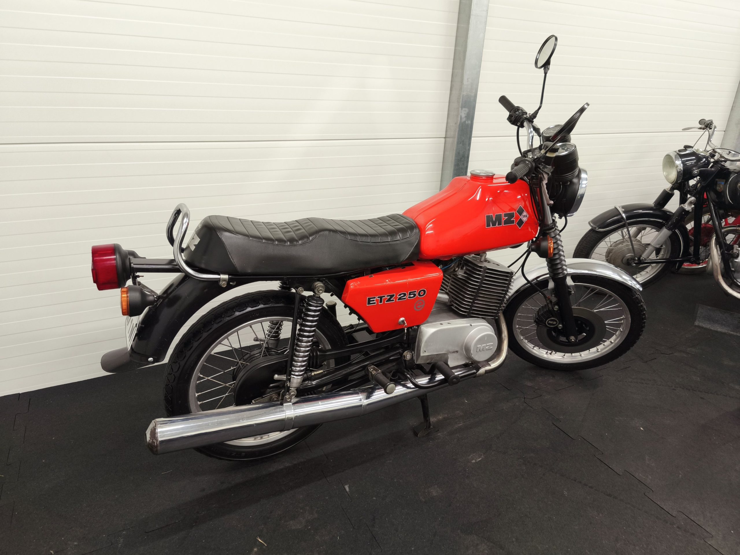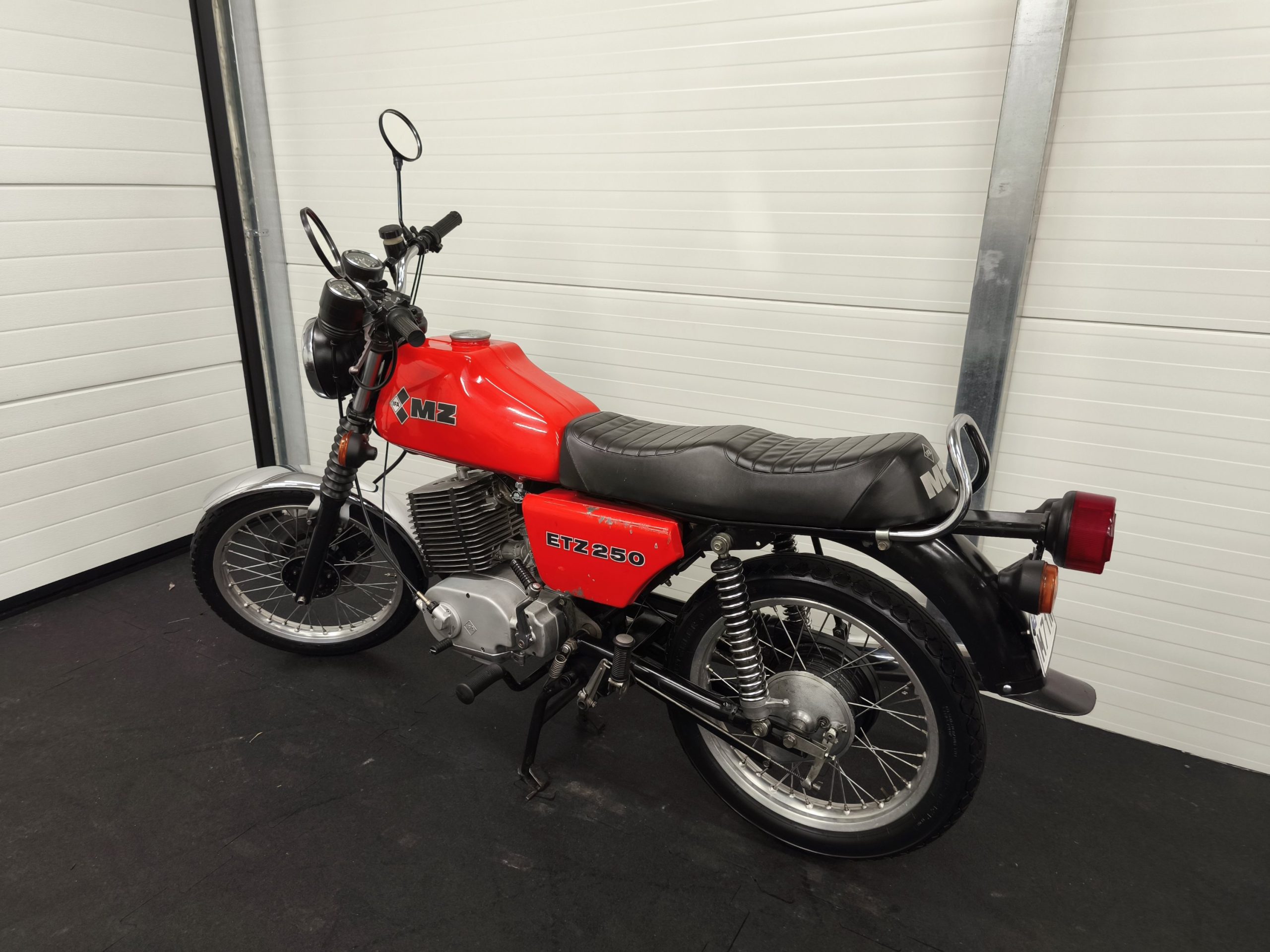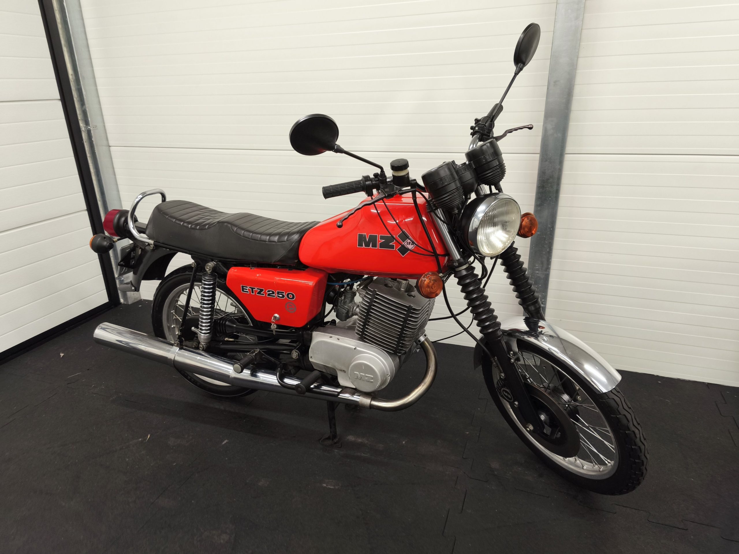 Silnik to oryginalna jednostka ETZ 250 z zapłonem elektronicznym typu A. W momencie zakupu motocykl był „odpalający” jednak wymagał serwisu. Trafił zatem do Mechanika, wymienione zostały: tarczki sprzęgła, uszczelniacze, olej w silniku. Gaźnik po myjce ultradźwiękowej. Aktualnie motocykl odpala od przysłowiowego „strzała”. Silnik ma mocną kompresję – poprzedni właściciel wykonał szlif cylindra. Maszyna po regulacjach pięknie pracuje na wolnych obrotach, ładnie wkręca się na wysokie obroty. Motocyklem odbyłem jazdę próbną – sprzęgło działa, biegi wchodzą. Aktualnie MZ sprzedawana z hasłem „jeździć, obserwować”
