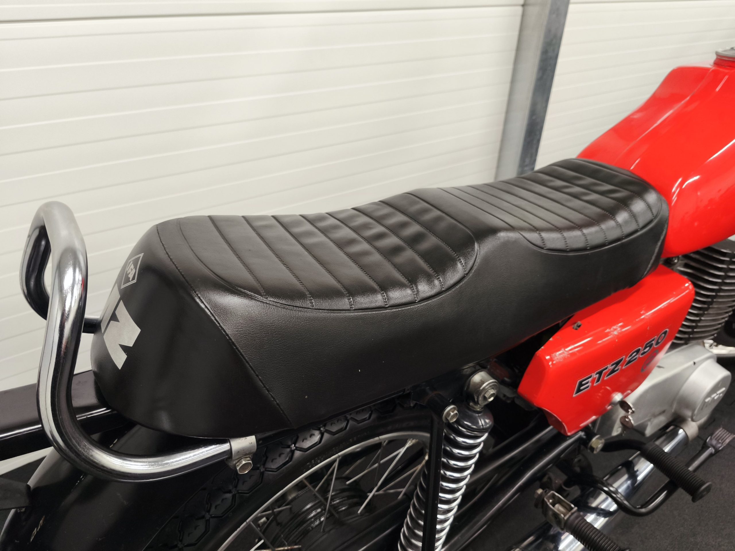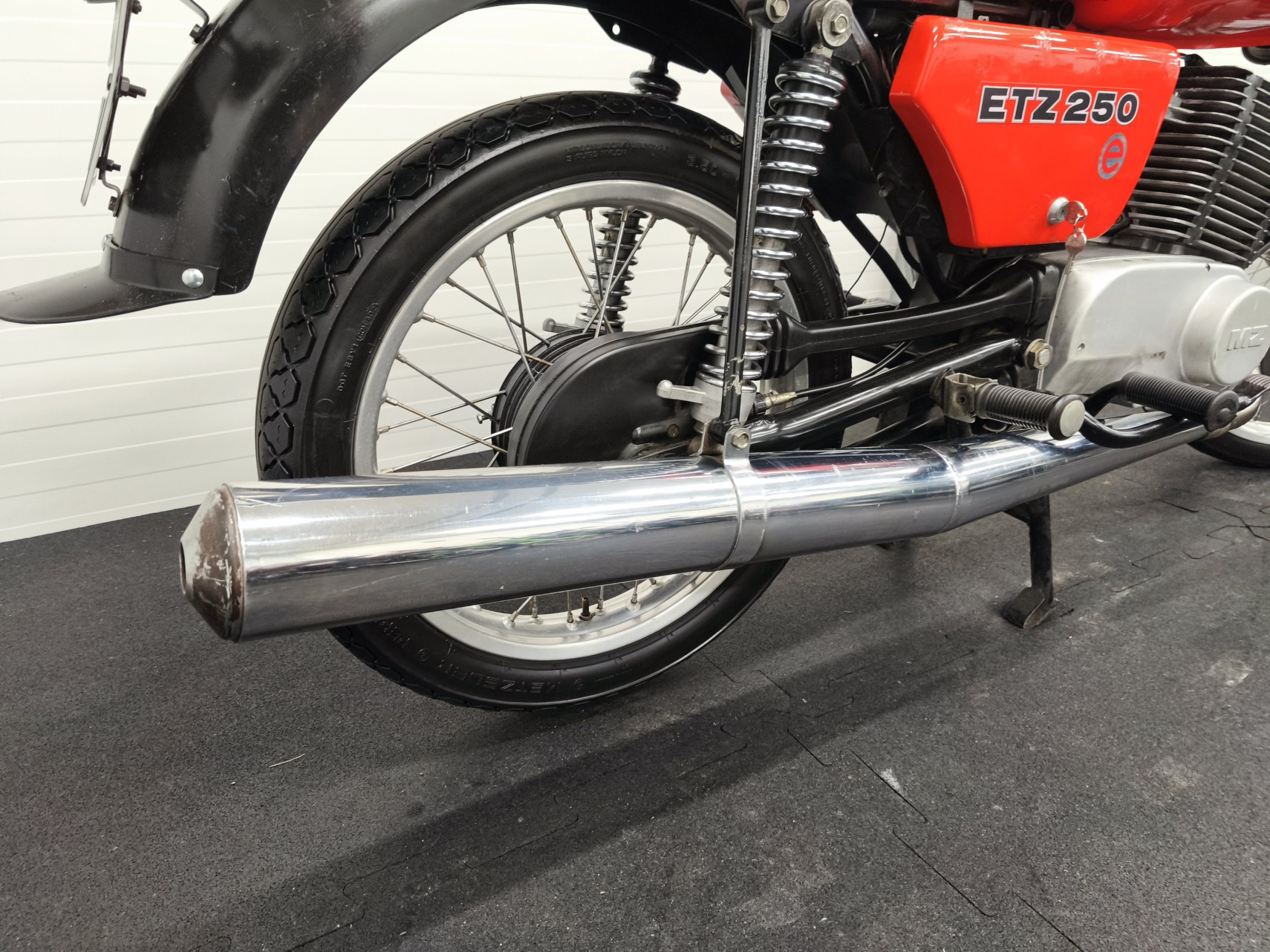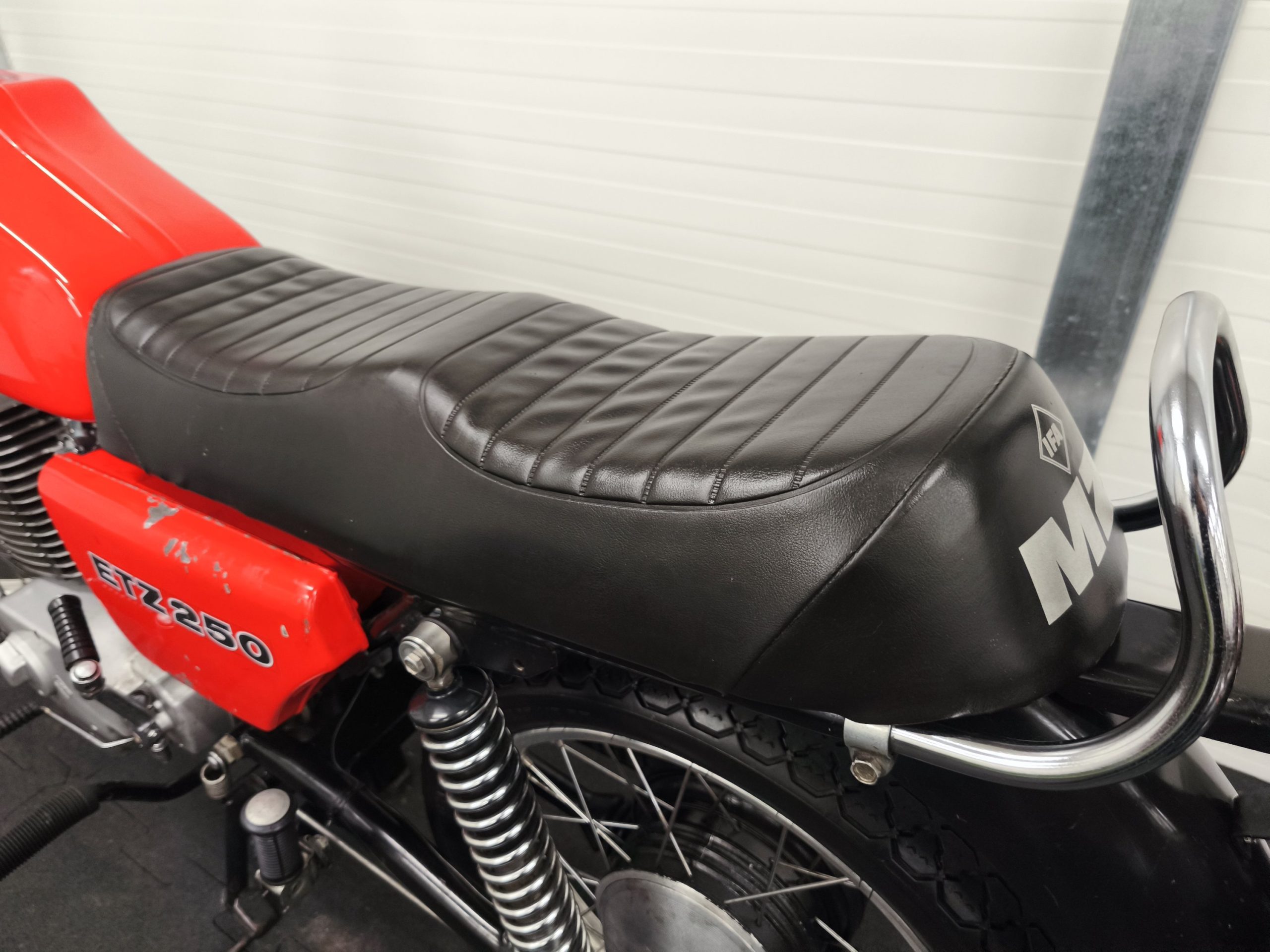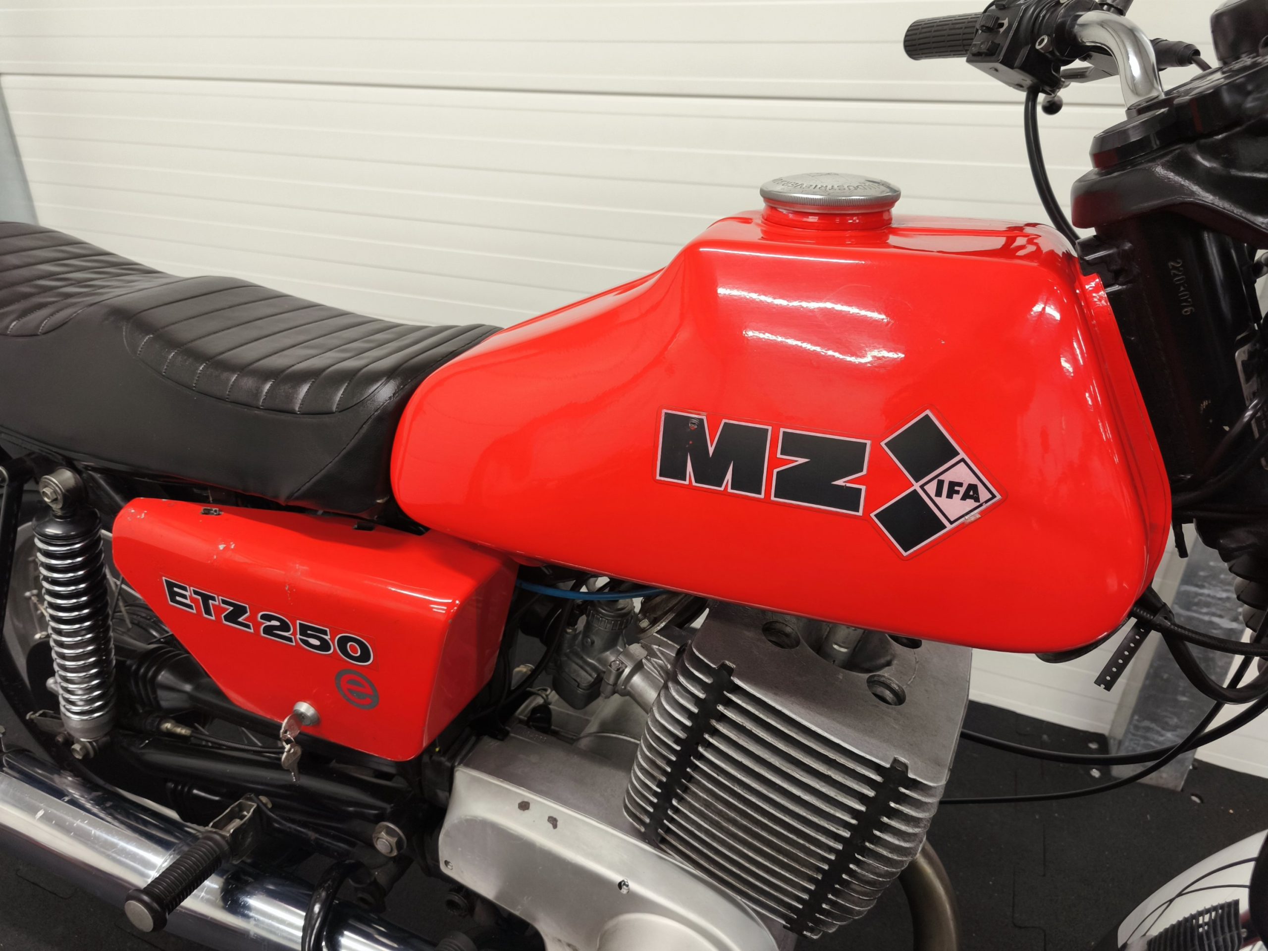 Silnik to oryginalna jednostka ETZ 250 z zapłonem elektronicznym typu A. W momencie zakupu motocykl był „odpalający” jednak wymagał serwisu. Trafił zatem do Mechanika, wymienione zostały: tarczki sprzęgła, uszczelniacze, olej w silniku. Gaźnik po myjce ultradźwiękowej. Aktualnie motocykl odpala od przysłowiowego „strzała”. Silnik ma mocną kompresję – poprzedni właściciel wykonał szlif cylindra. Maszyna po regulacjach pięknie pracuje na wolnych obrotach, ładnie wkręca się na wysokie obroty. Motocyklem odbyłem jazdę próbną – sprzęgło działa, biegi wchodzą. Aktualnie MZ sprzedawana z hasłem „jeździć, obserwować”
