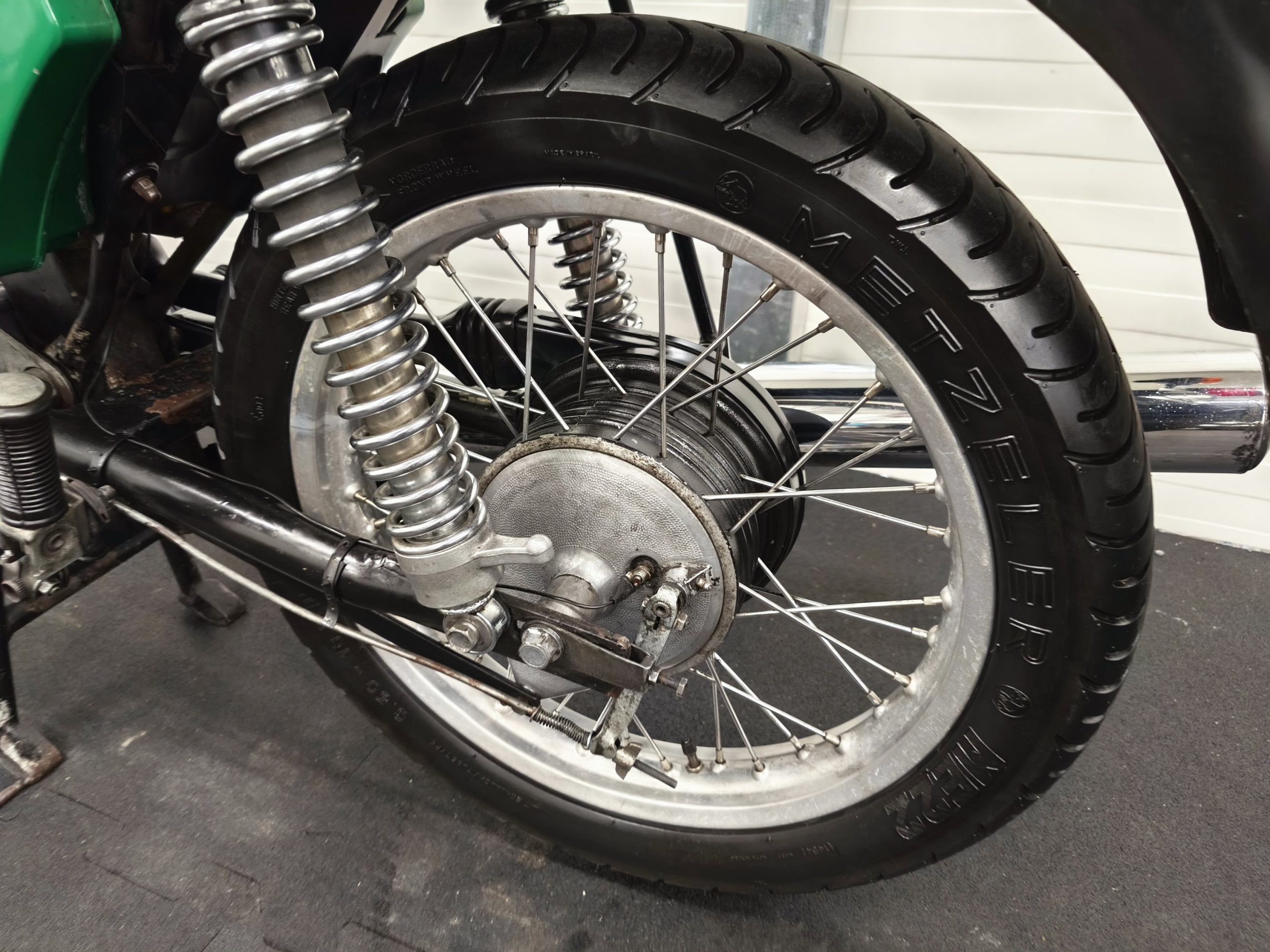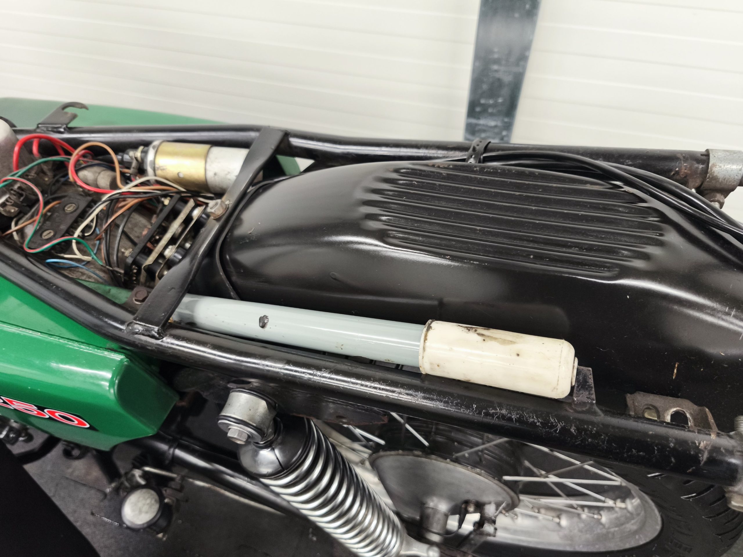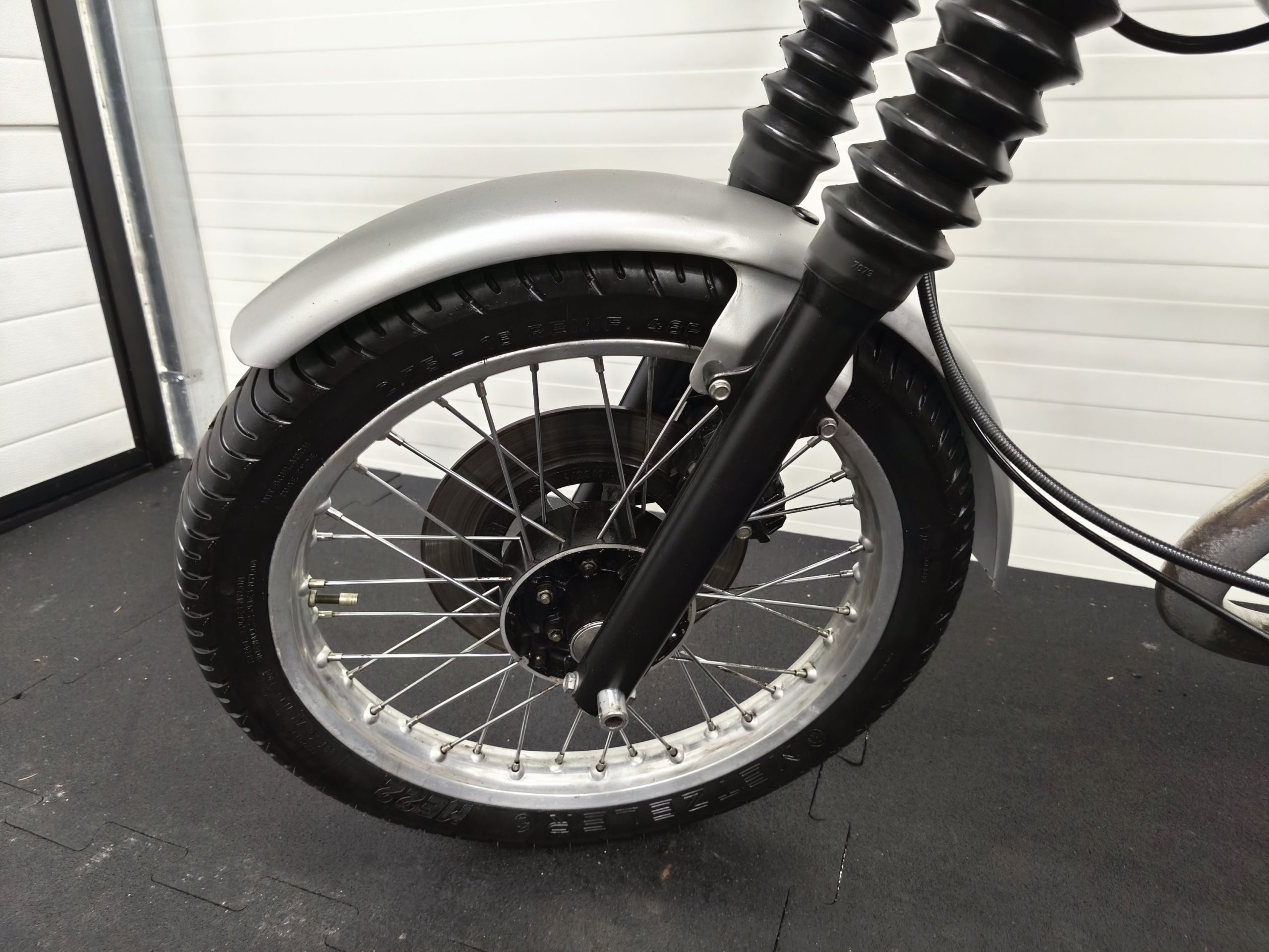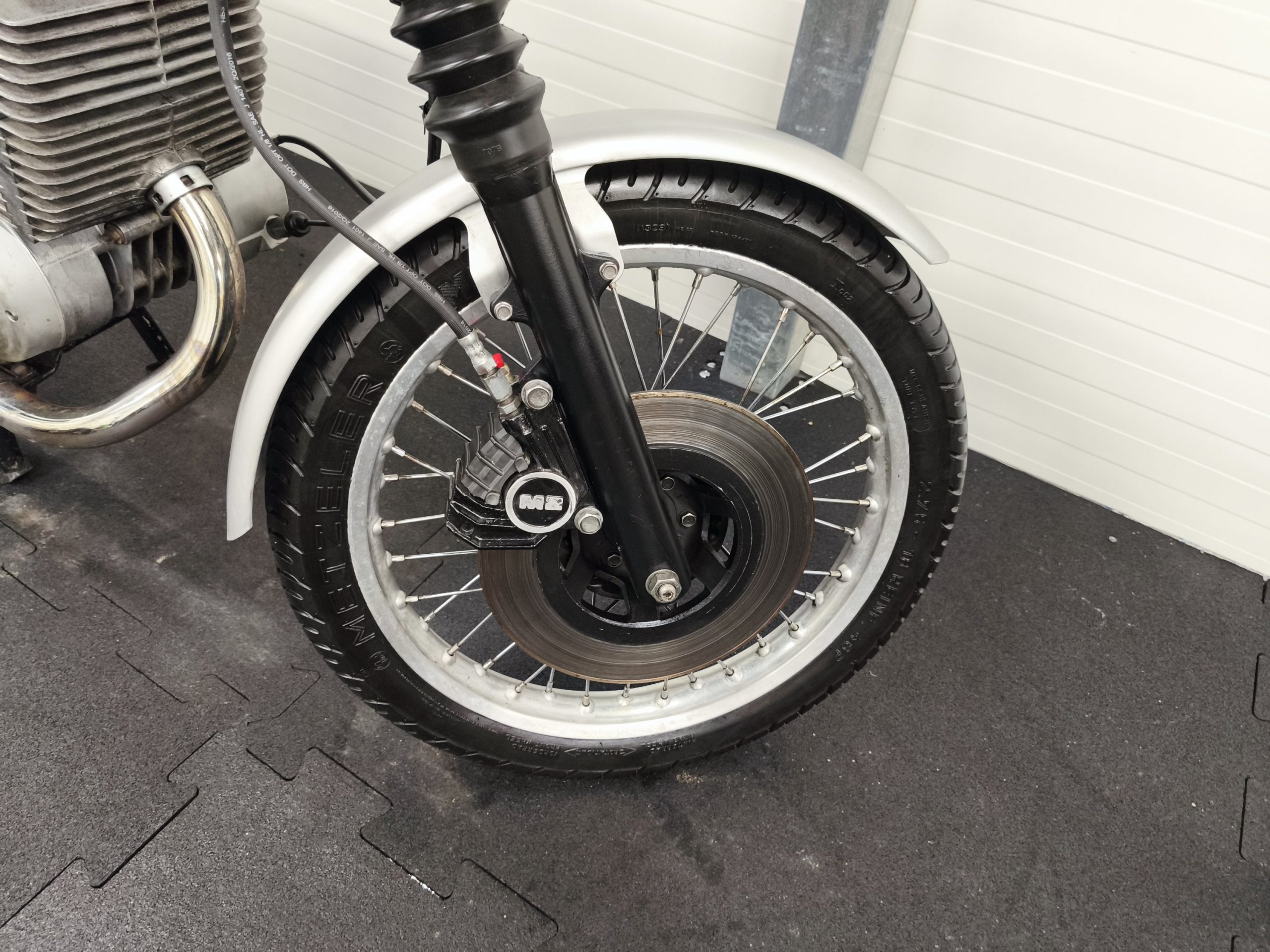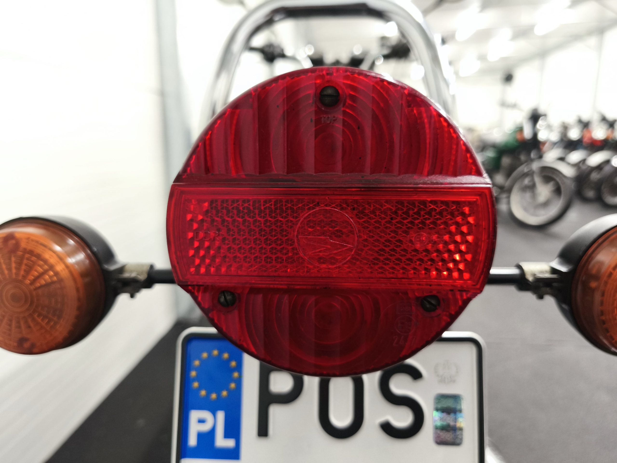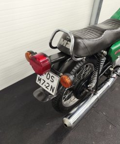 Motocykl zakupiony z Niemiec. Maszyna zachowana w oryginalnym lakierze oraz w wysokiej kompletności pod względem oryginalności części. Lampy, kierunkowskazy, klakson – oryginał, elektryka sprawna. Zawieszenie przednie po regeneracji. Pompka hamulcowa, zacisk – sprawne. Bardzo ładne siedzenie. Pod siedzeniem znajduje się oryginalna pompka do kół oraz zestaw kluczy naprawczych.