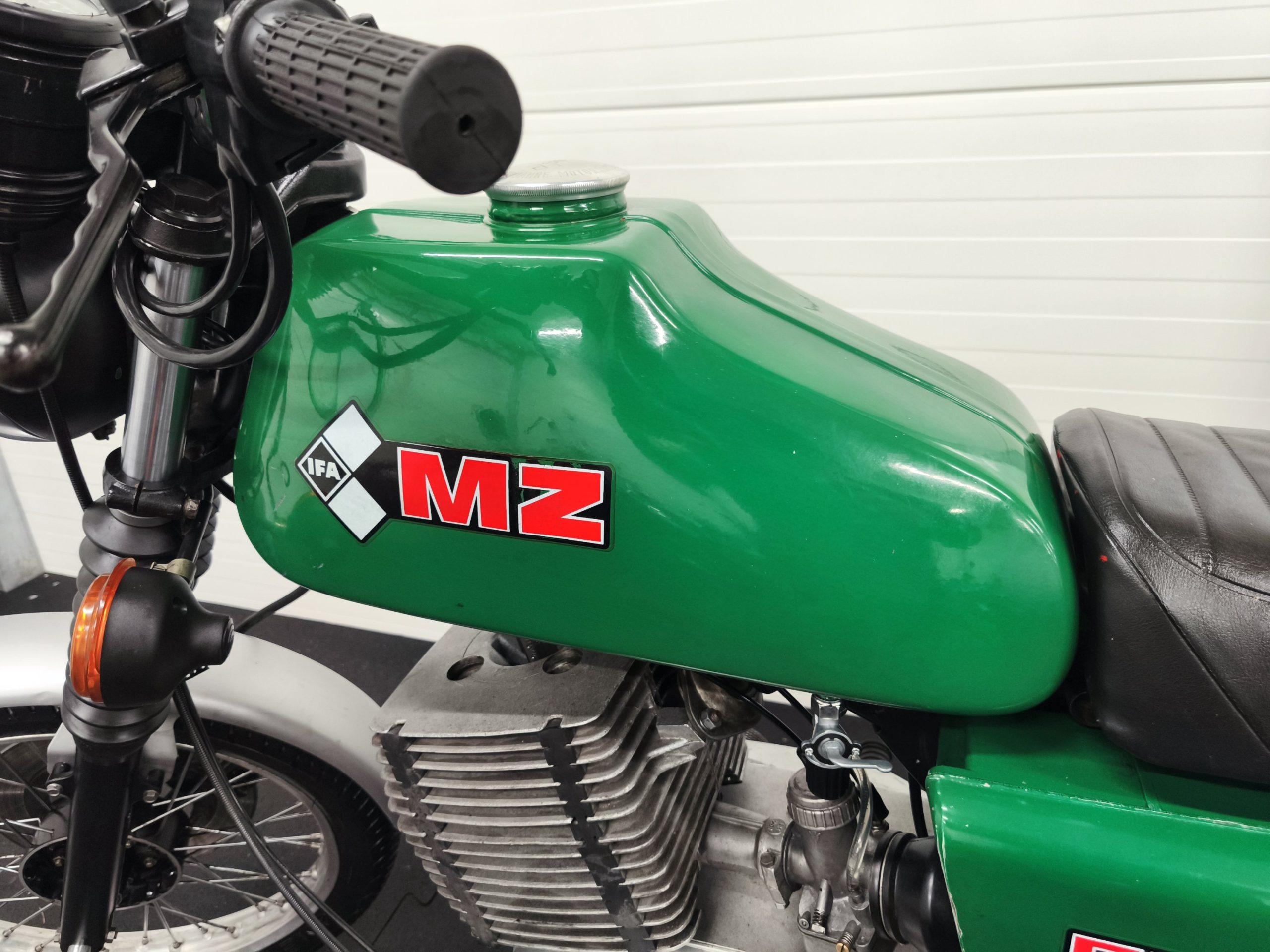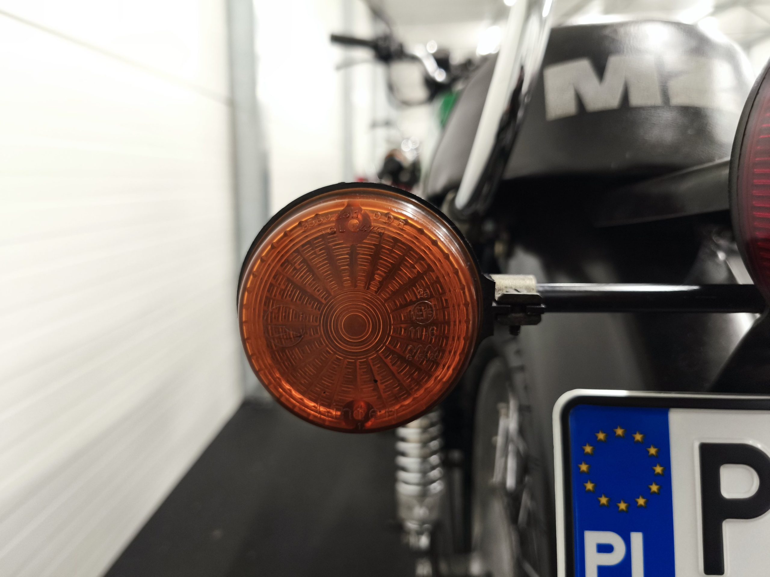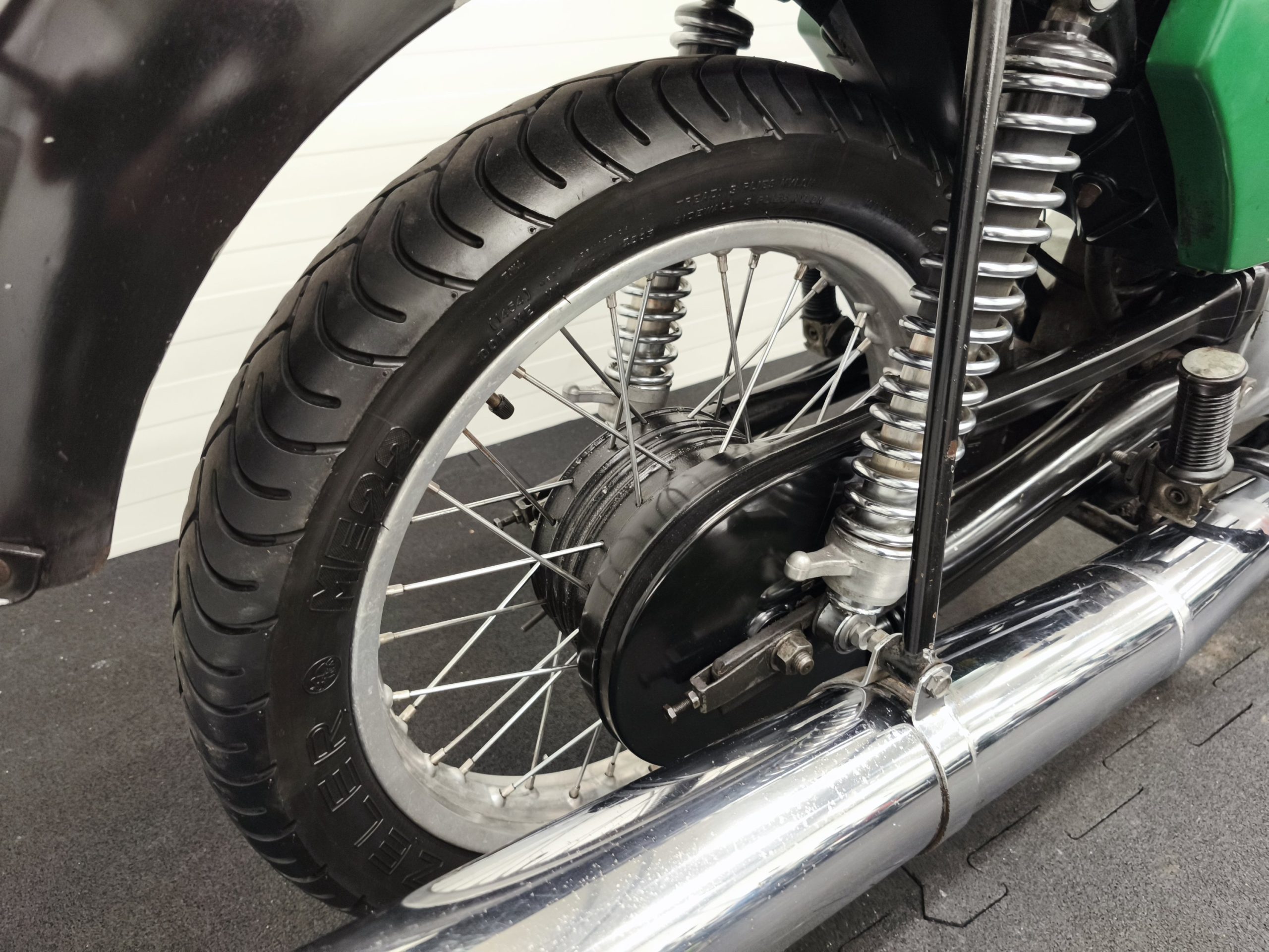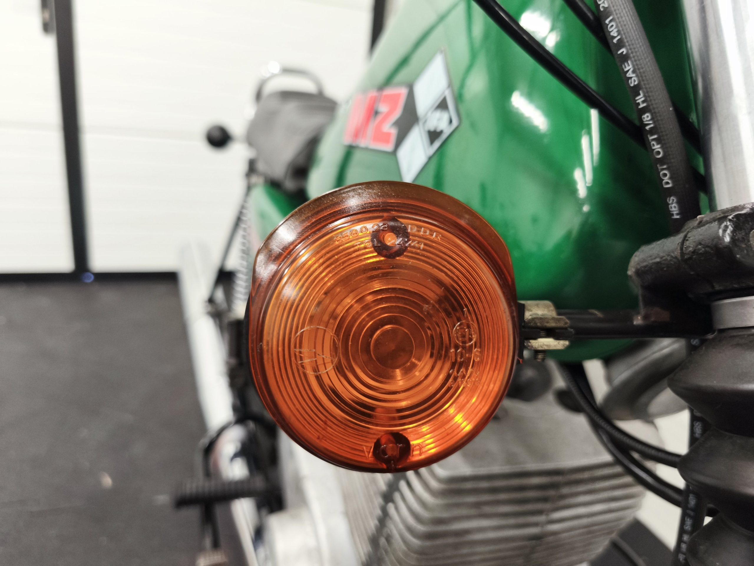 Motocykl zakupiony z Niemiec. Maszyna zachowana w oryginalnym lakierze oraz w wysokiej kompletności pod względem oryginalności części. Lampy, kierunkowskazy, klakson – oryginał, elektryka sprawna. Zawieszenie przednie po regeneracji. Pompka hamulcowa, zacisk – sprawne. Bardzo ładne siedzenie. Pod siedzeniem znajduje się oryginalna pompka do kół oraz zestaw kluczy naprawczych.