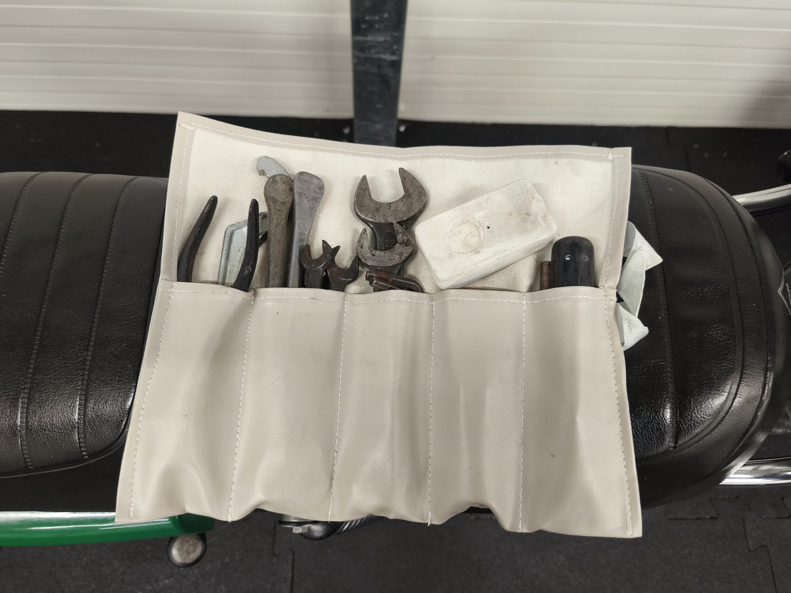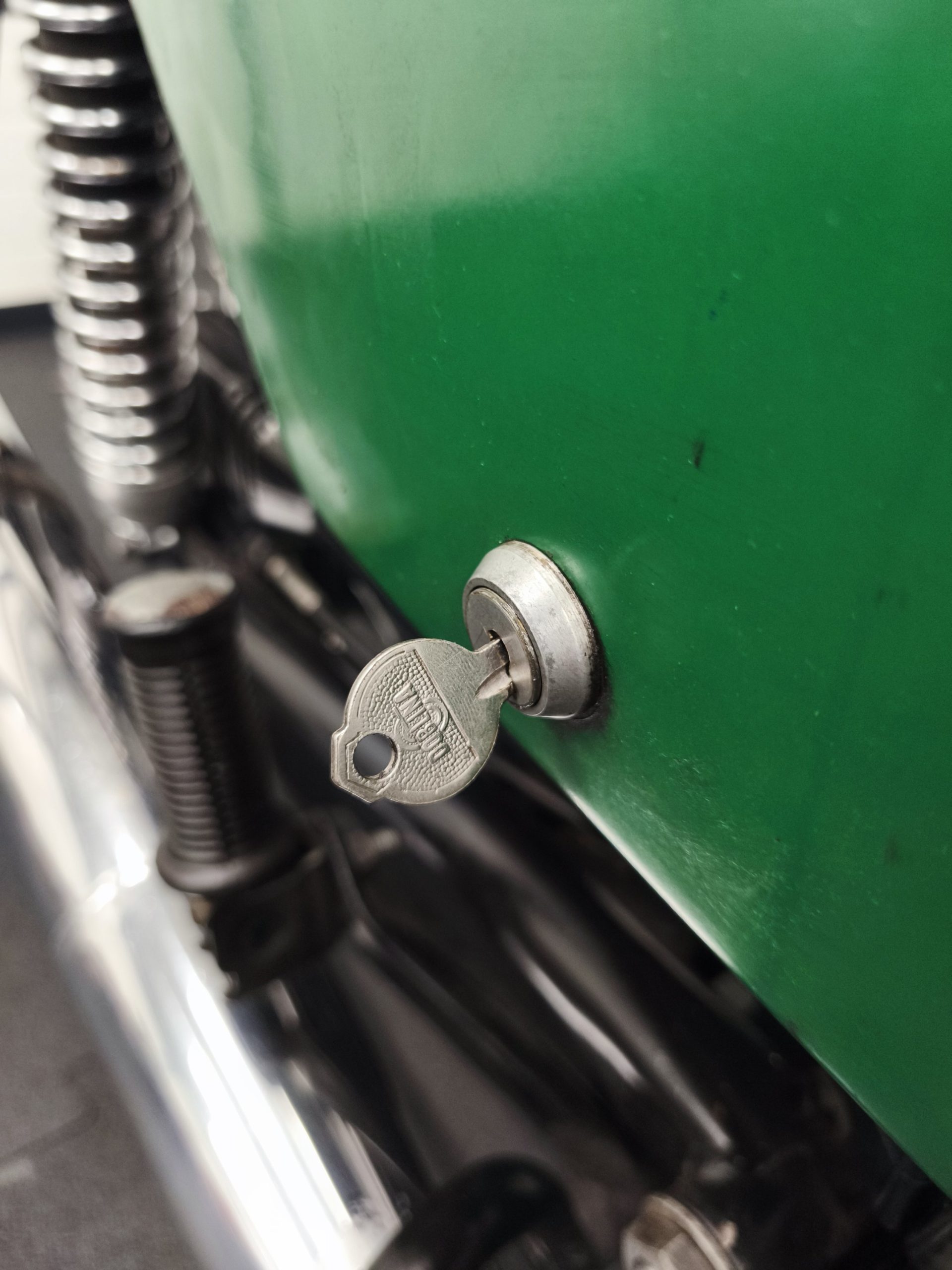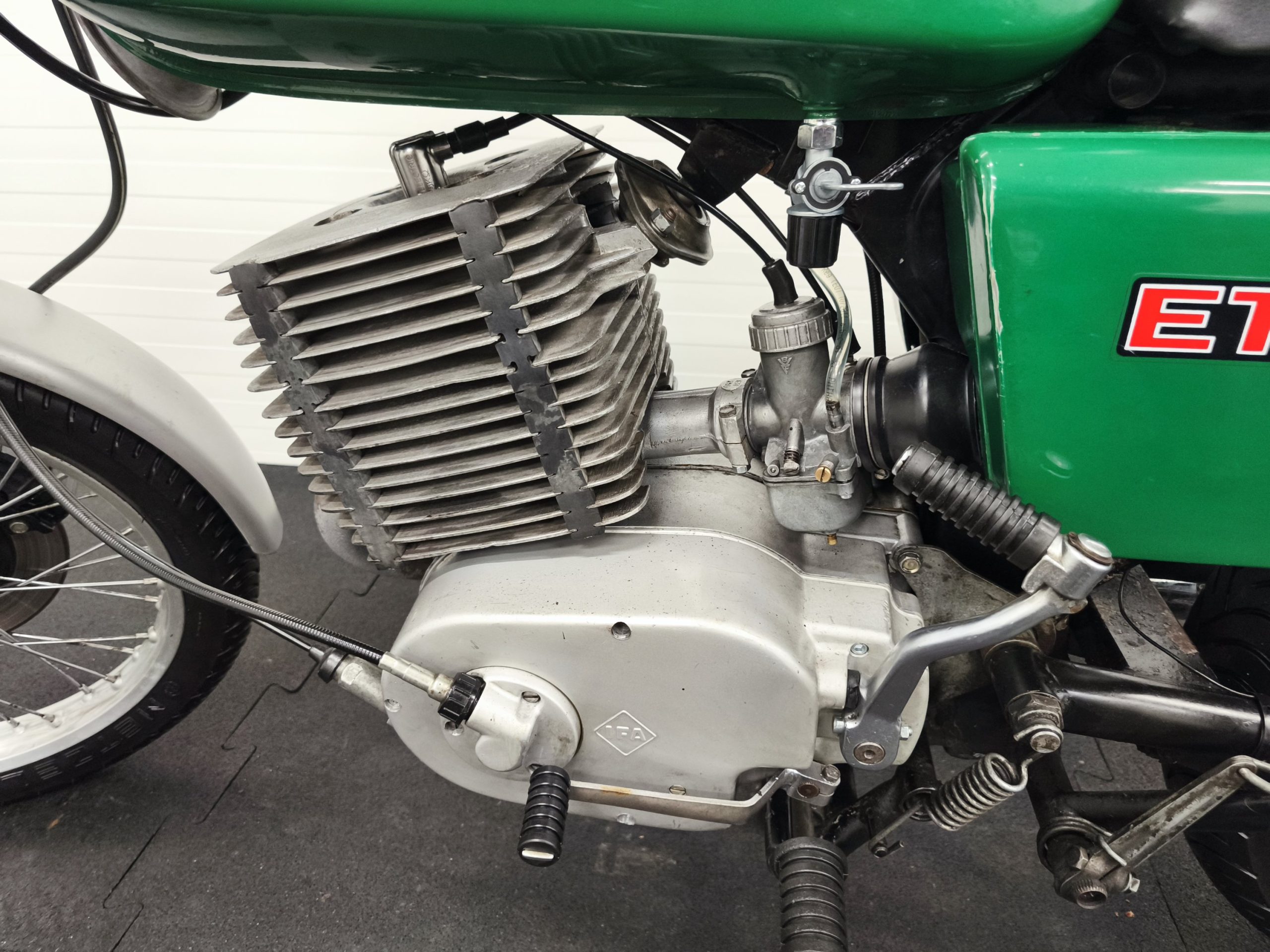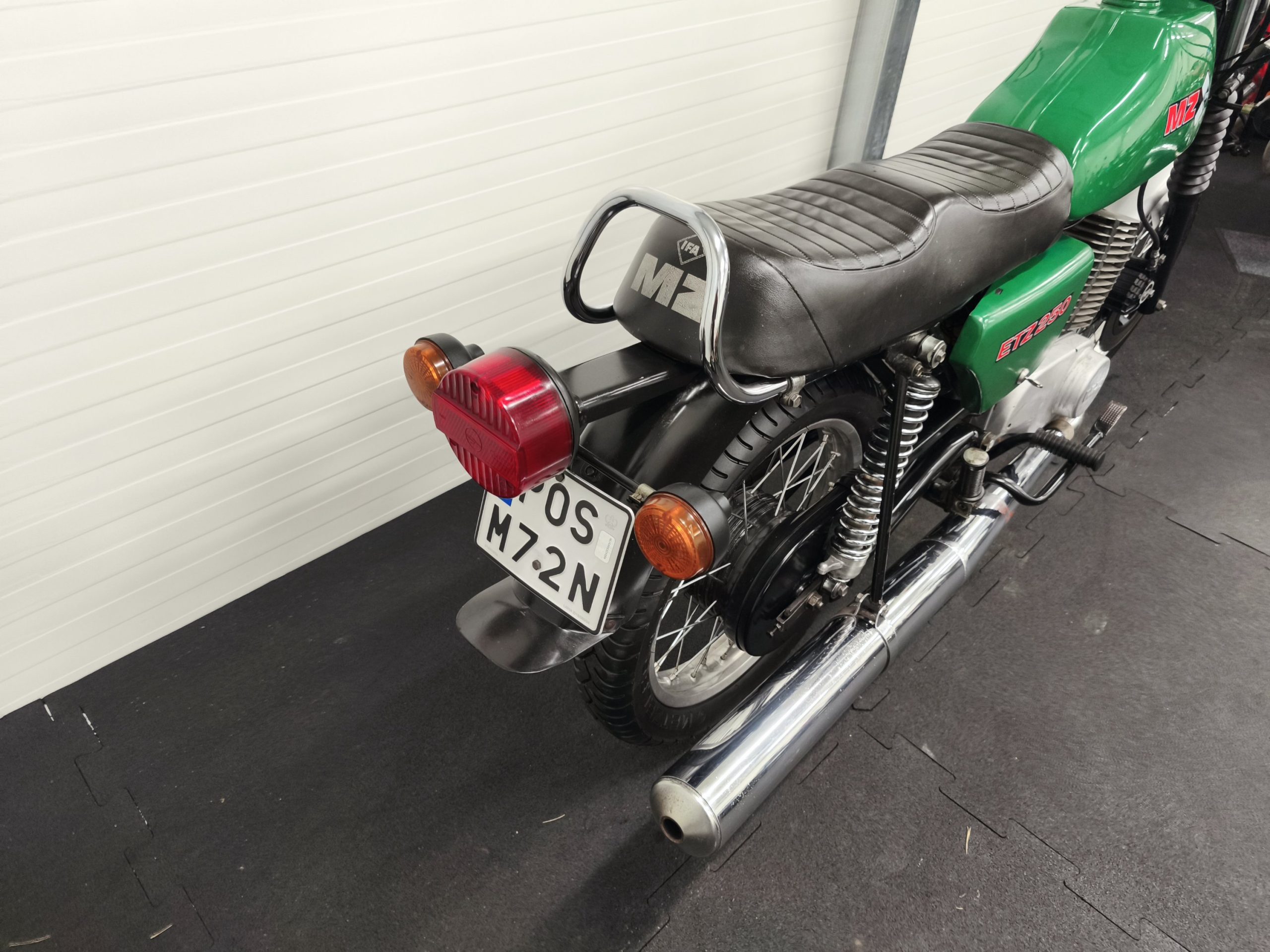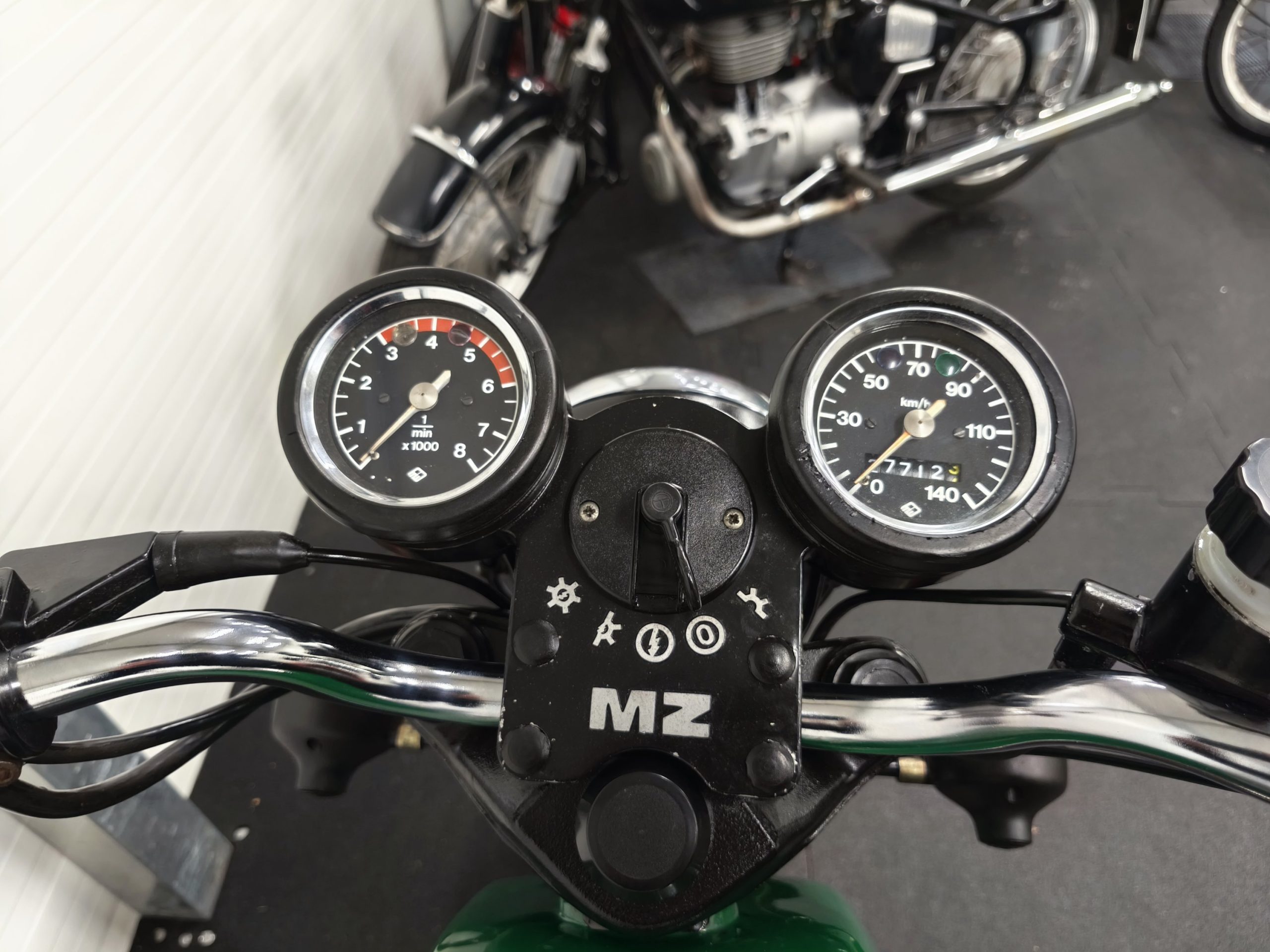 Motocykl zakupiony z Niemiec. Maszyna zachowana w oryginalnym lakierze oraz w wysokiej kompletności pod względem oryginalności części. Lampy, kierunkowskazy, klakson – oryginał, elektryka sprawna. Zawieszenie przednie po regeneracji. Pompka hamulcowa, zacisk – sprawne. Bardzo ładne siedzenie. Pod siedzeniem znajduje się oryginalna pompka do kół oraz zestaw kluczy naprawczych.
