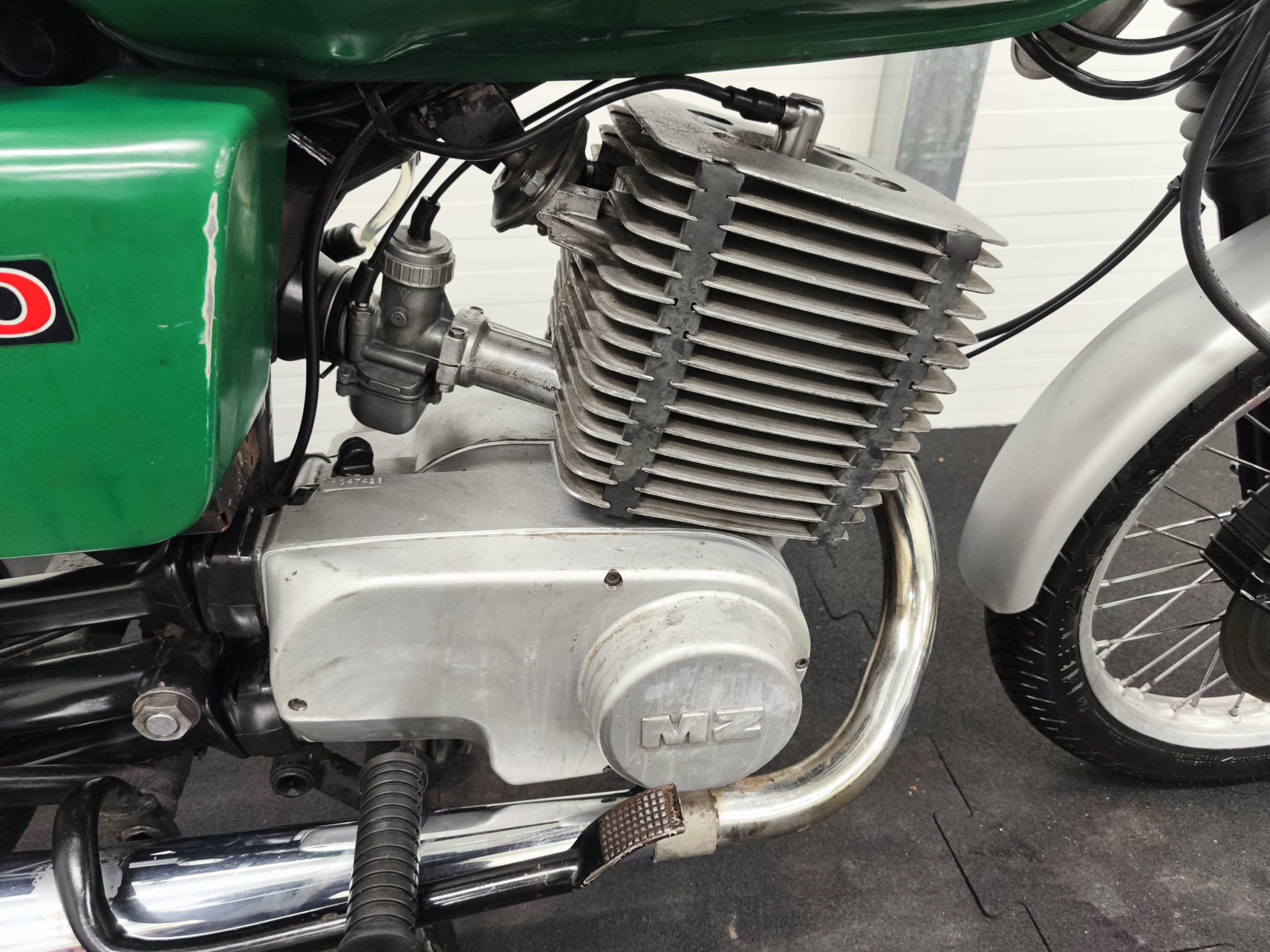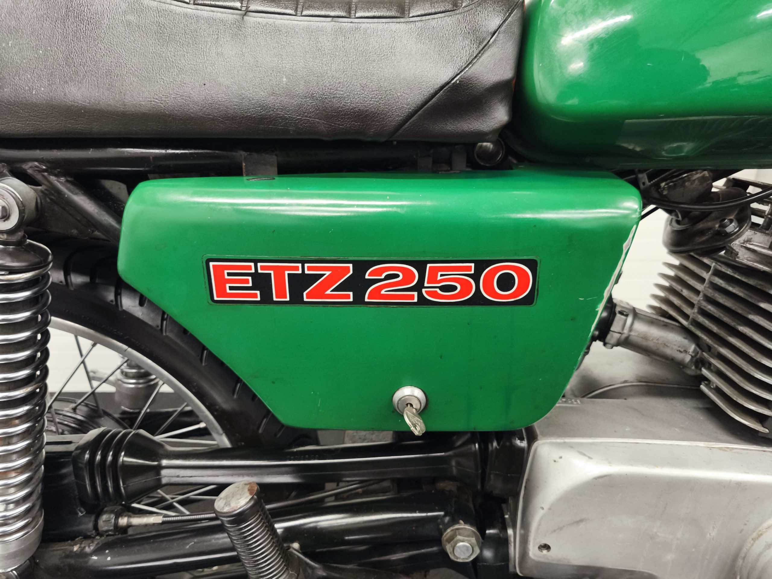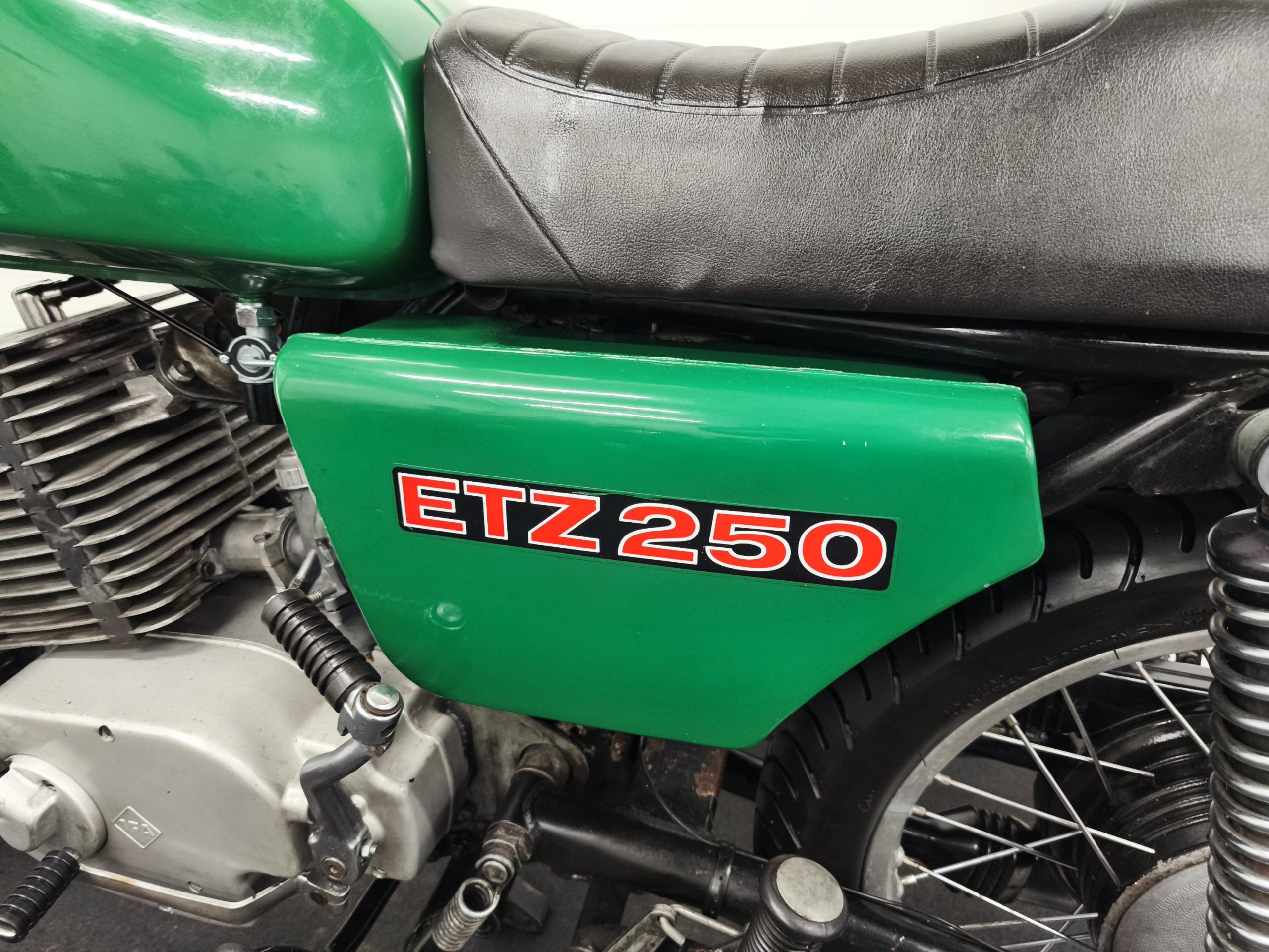 Silnik to oryginalna jednostka ETZ 250 z zapłonem platynowym. Maszyna po wizycie u Mechanika. Wymienione zostały: uszczelniacze, tarczki sprzęgła, olej w silniku. Gaźnik po myjce ultradźwiękowej. Po regulacji zapłonu oraz gaźnika maszyna odpala na przysłowiowy „kop”. Silnik ma dobrą kompresję – na wolnych obrotach pracuje ładnie, dobrze wkręca się na wysokie obroty. Motocyklem odbyłem jazdę próbną – biegi wchodzą, sprzęgło działa. Maszyna sprzedawana jest z hasłem: „jeździć, obserwować”.