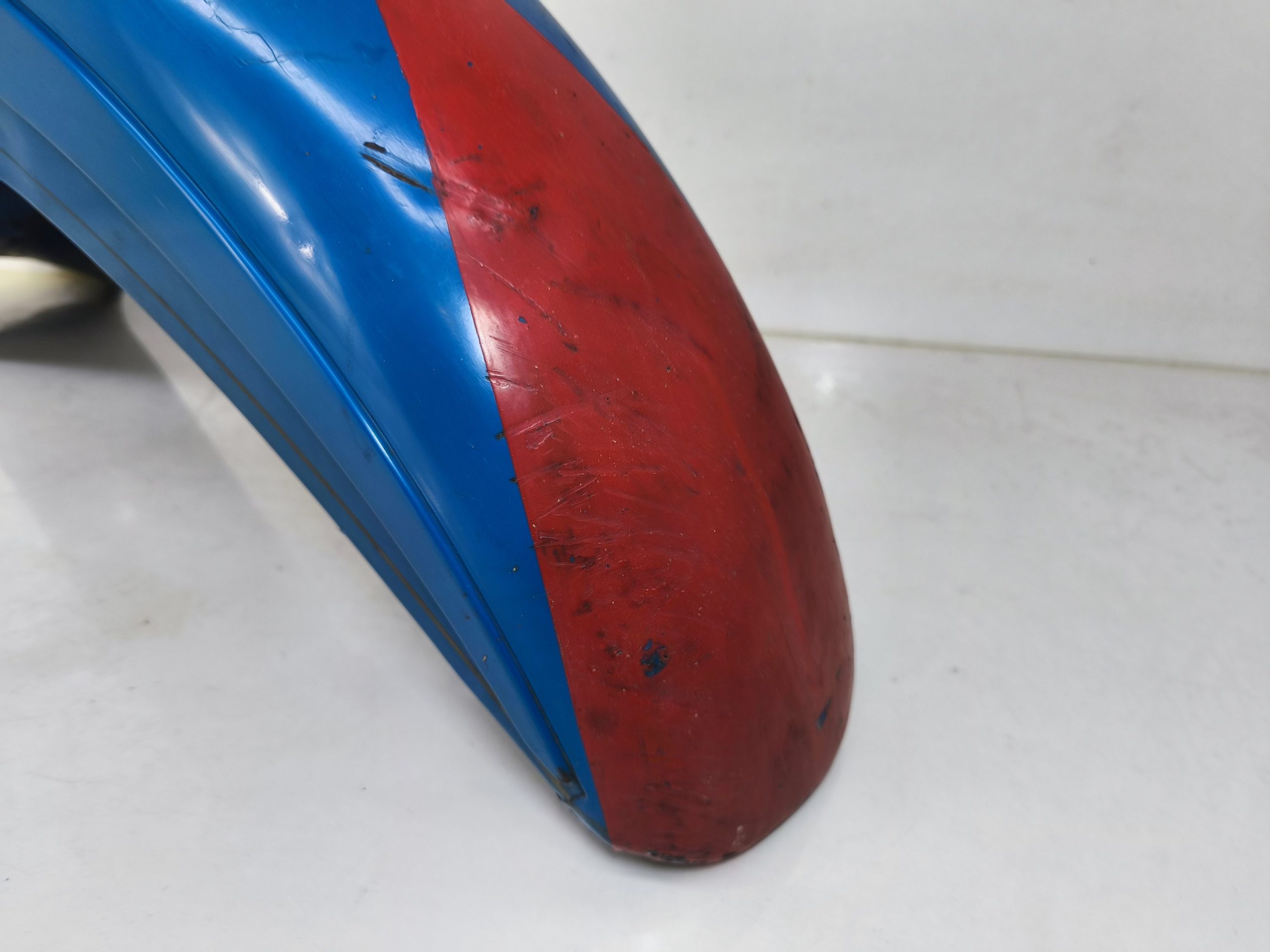 Błotnik przód przedni MZ ES 150 125 Trophy. Lakier za wyjątkiem koloru czerwonego zachowany jest w oryginale. Blacharsko zdrowy – wymaga lekkiego prostowania.