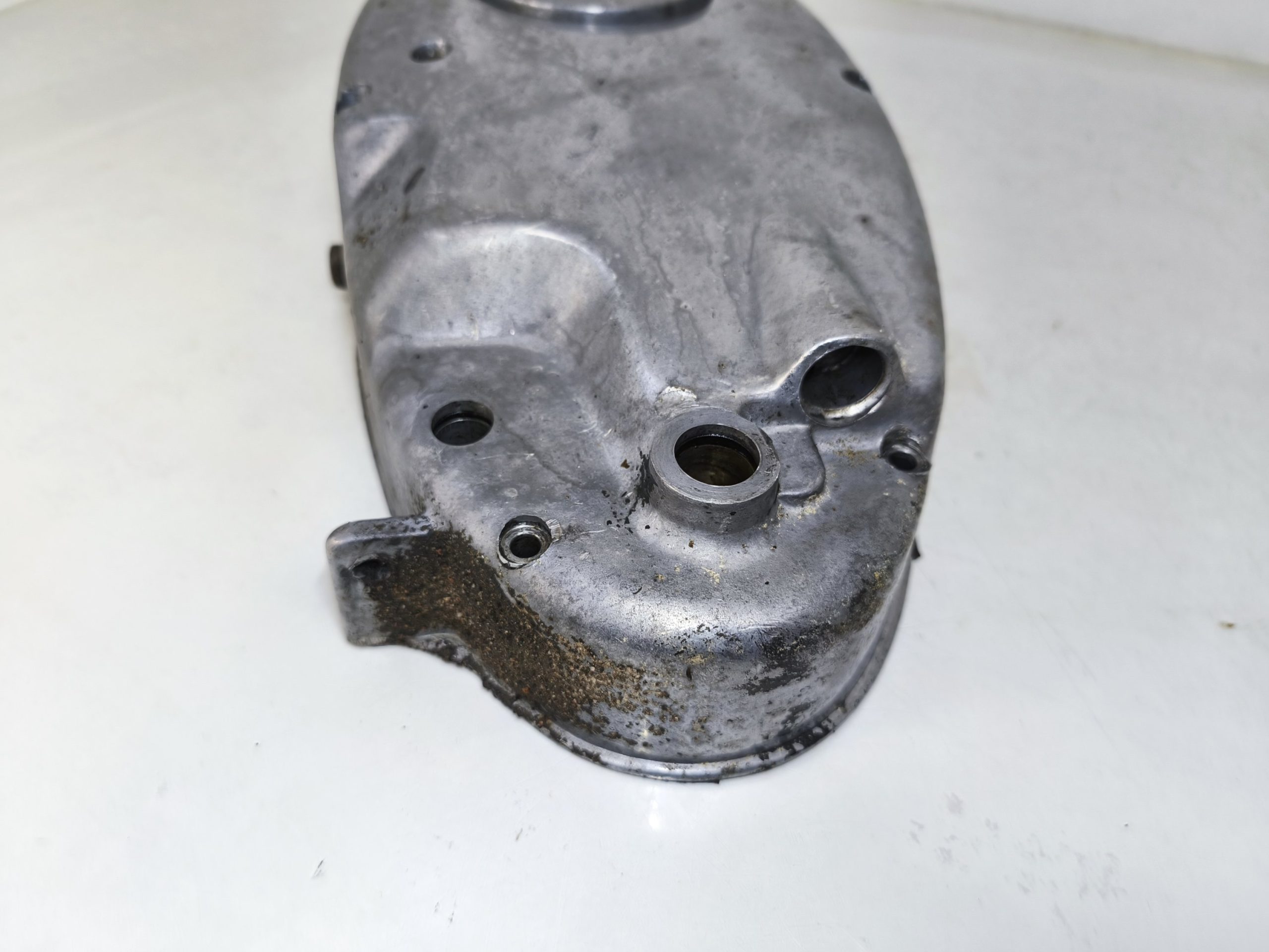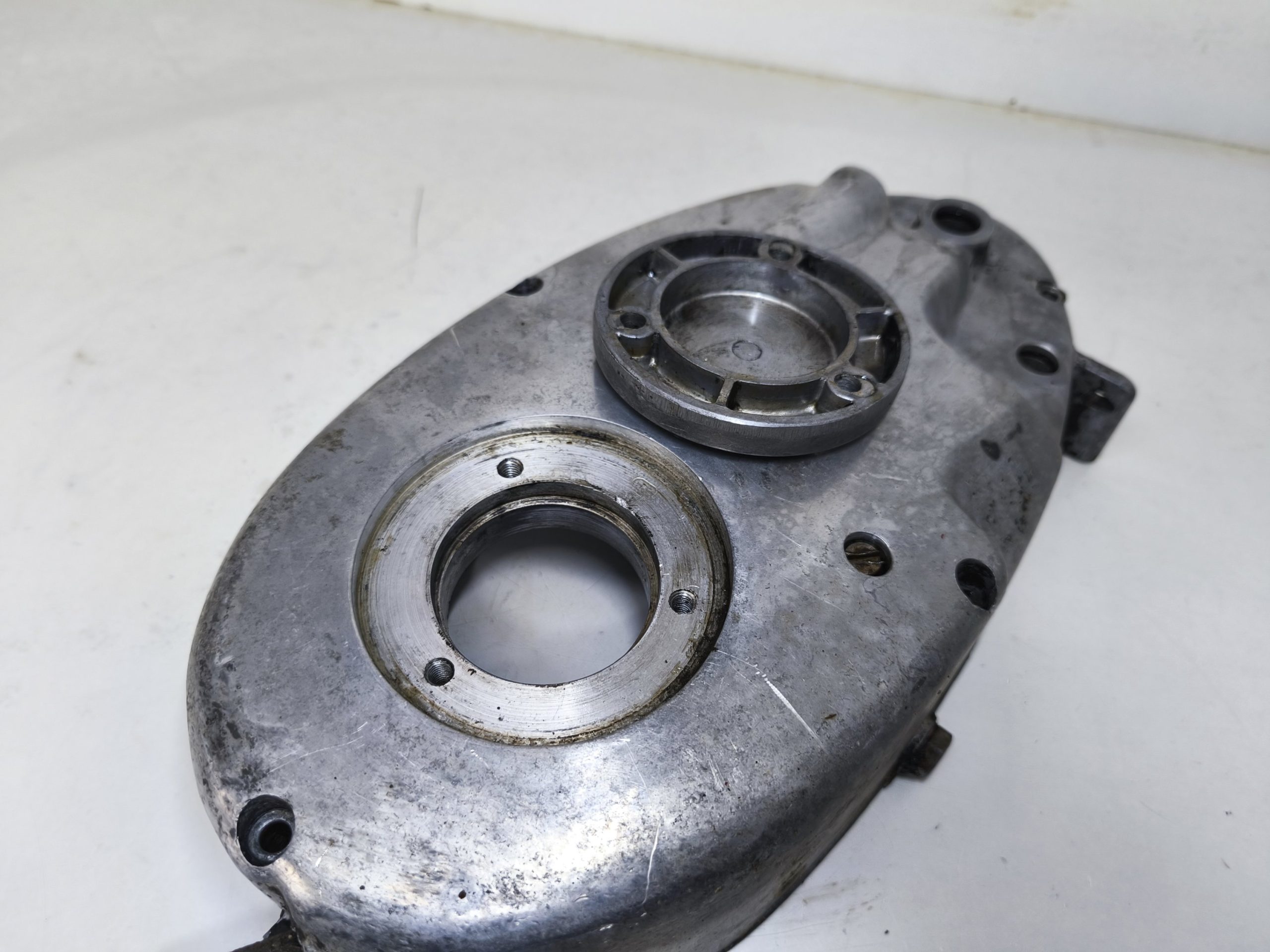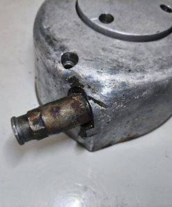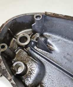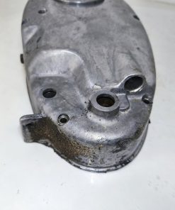 Pokrywa sprzęgła silnika MZ ES 250/2 Trophy. Gwinty małe ok, gwint tulejki również ładny. Pokrywa posiada dość sporą ryskę oraz przetarcia przy tulejce linki sprzęgła – raczej nie powinno mieć to wpływu na dalsze użytkowanie jednak przez to sprzedaje jak „uszkodzoną”.
