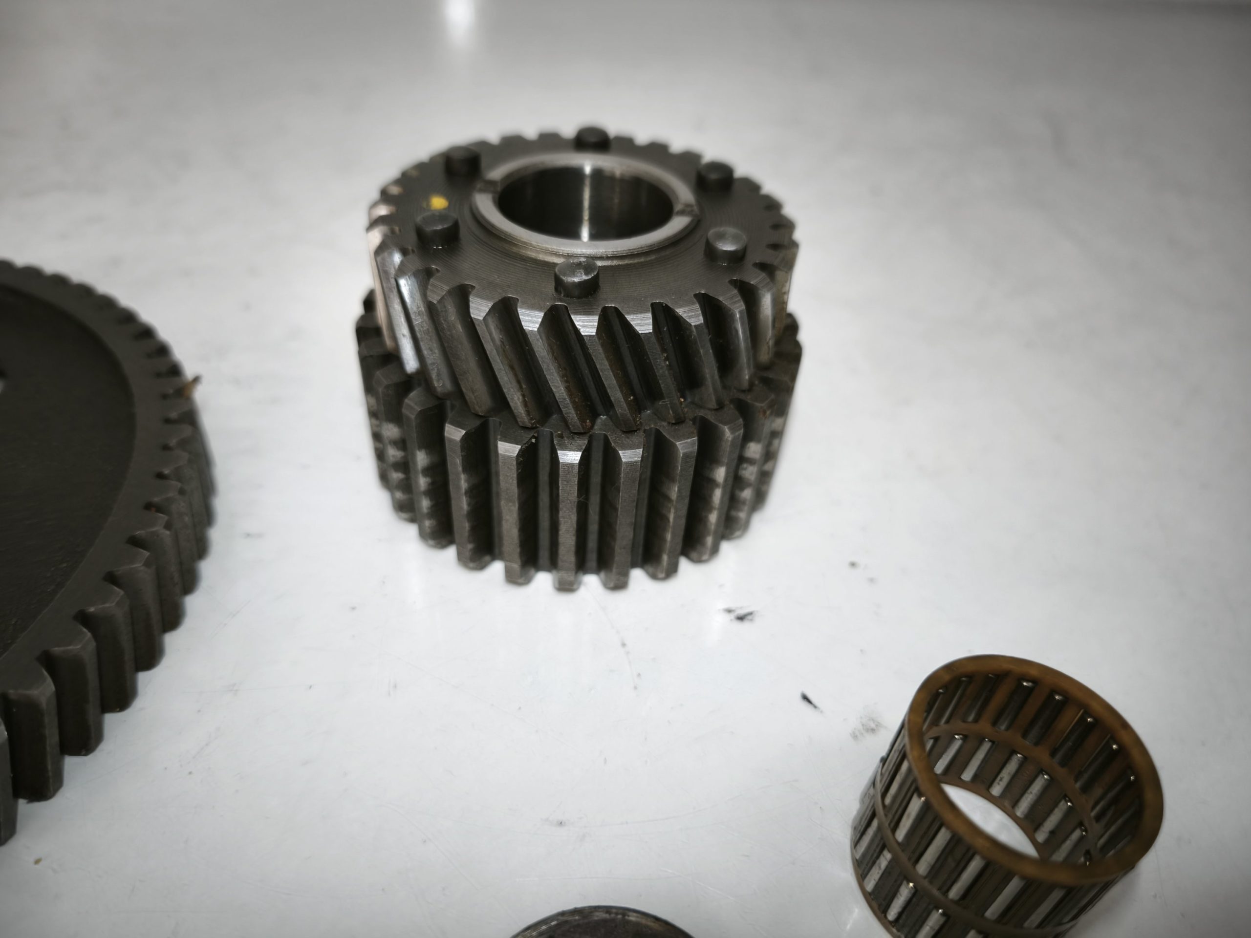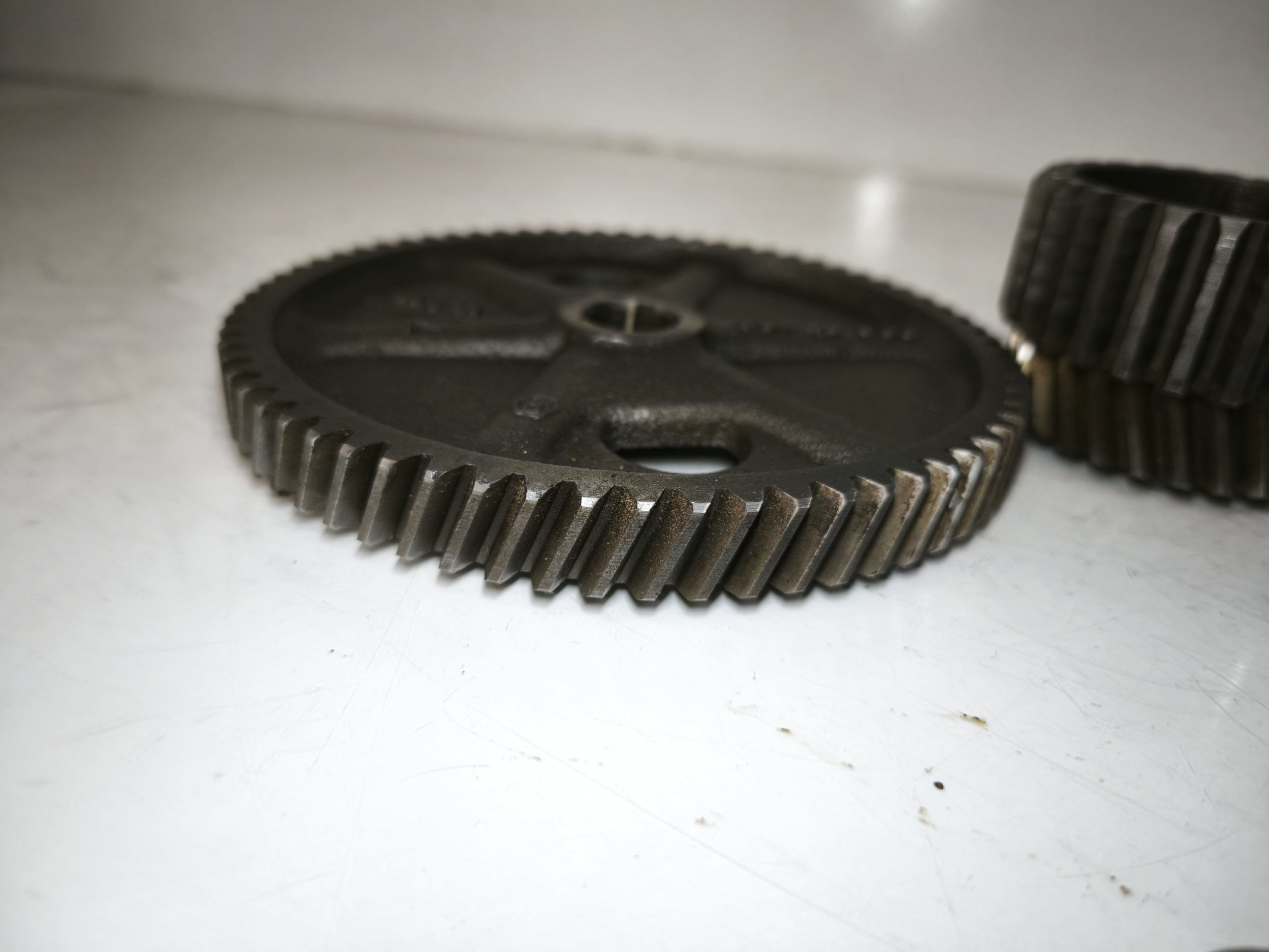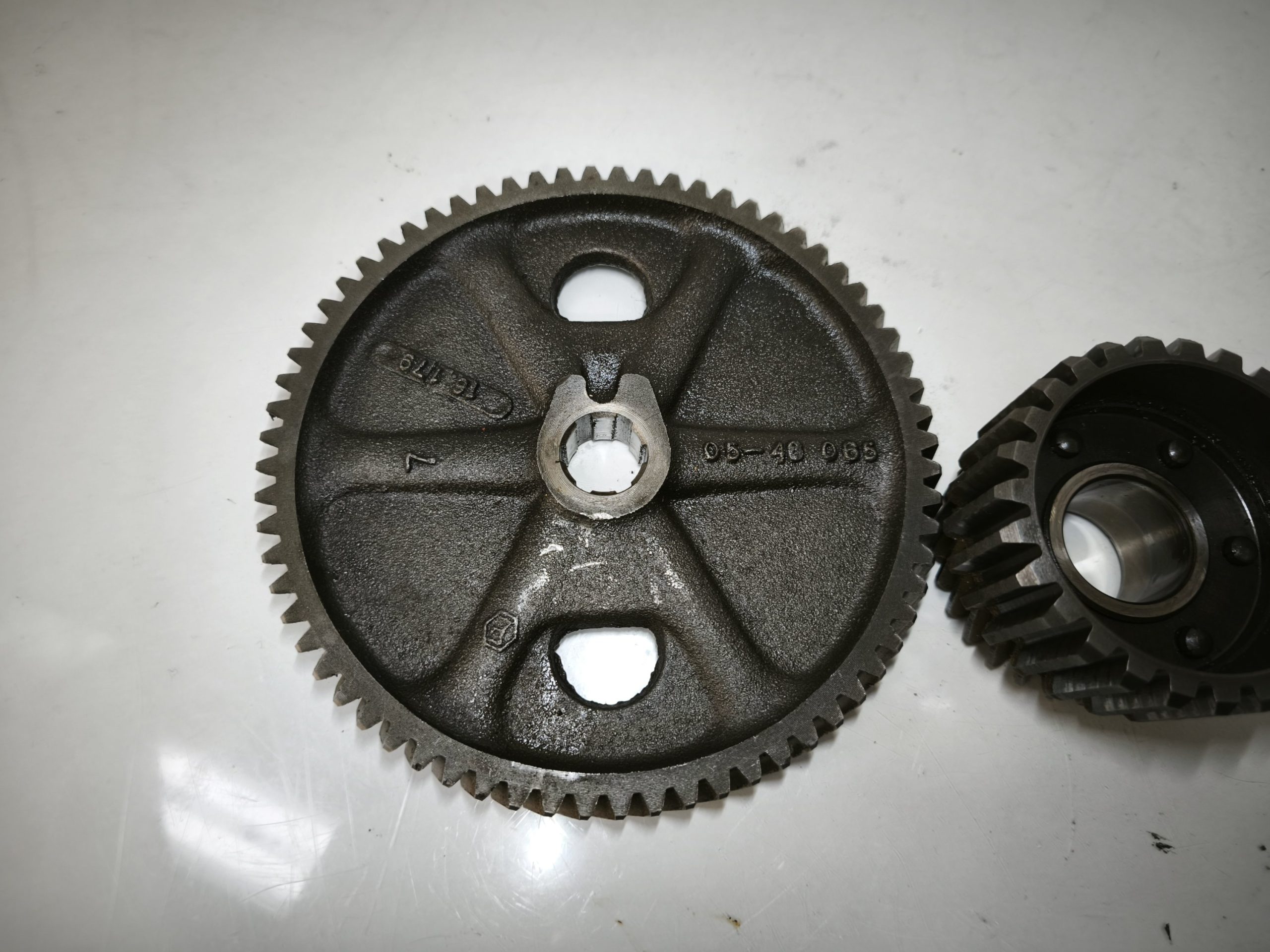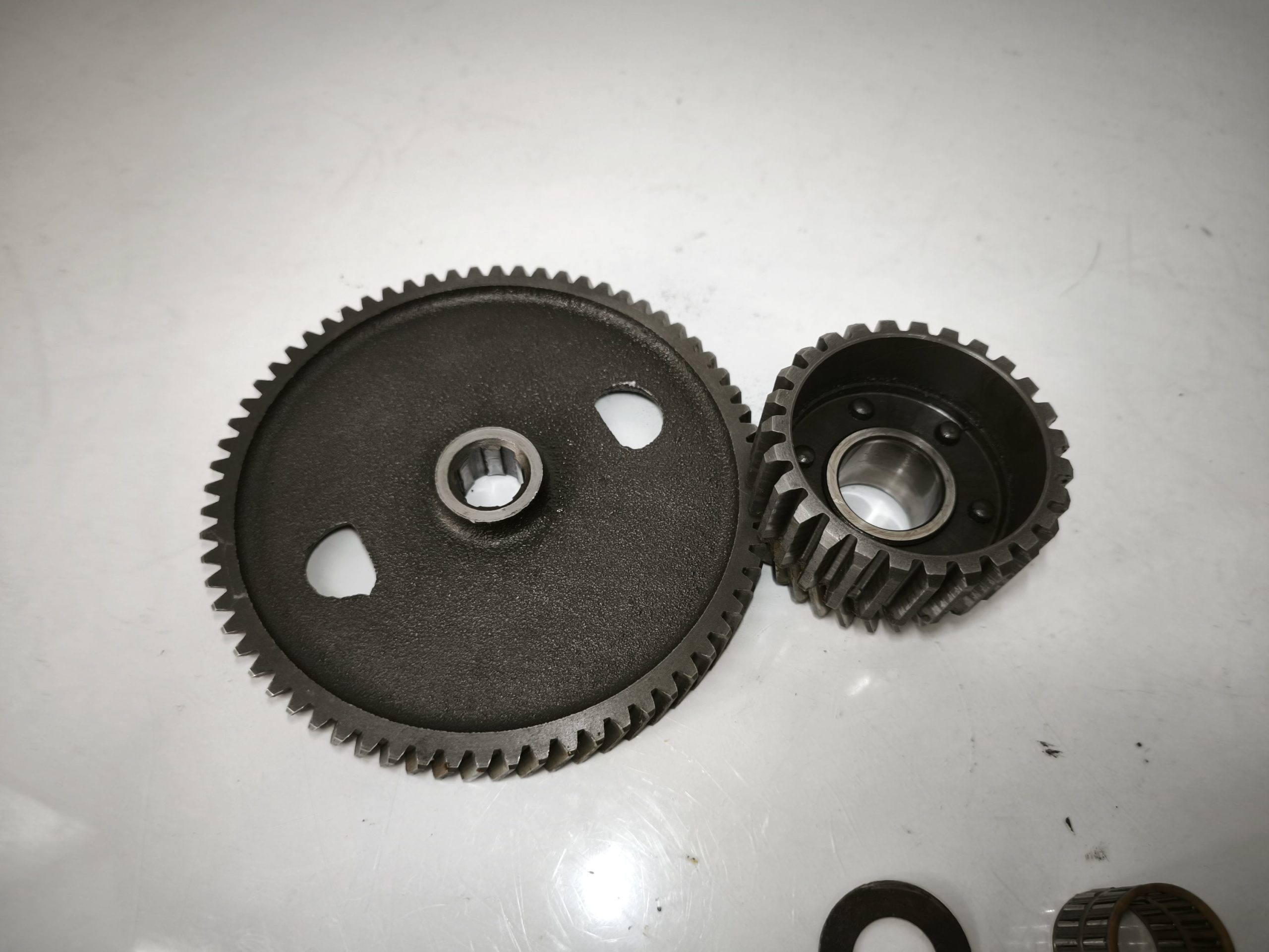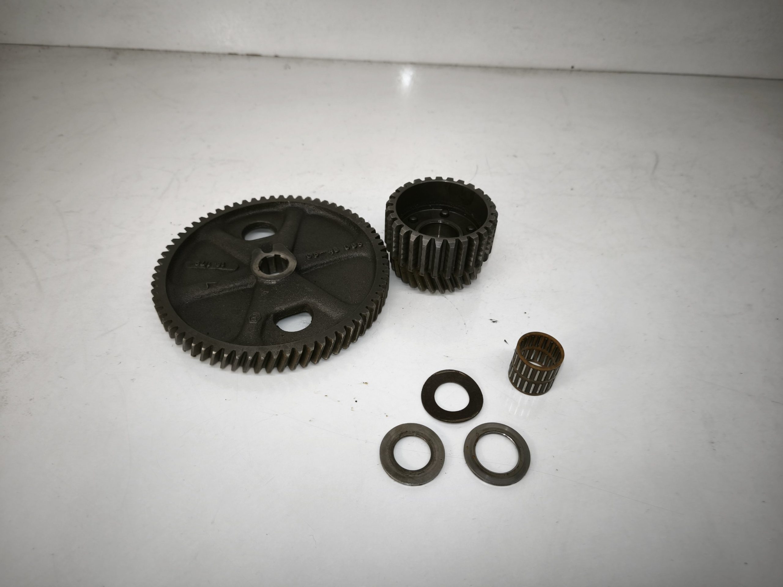 Przekładnia wstępna silnika MZ ETZ 250 251 301 MZ TS 250/1 koło talerzowe zabierak podkładki. Zęby całe, frezy przyzwoite. Małe koło bez luzu. Stan ładny.