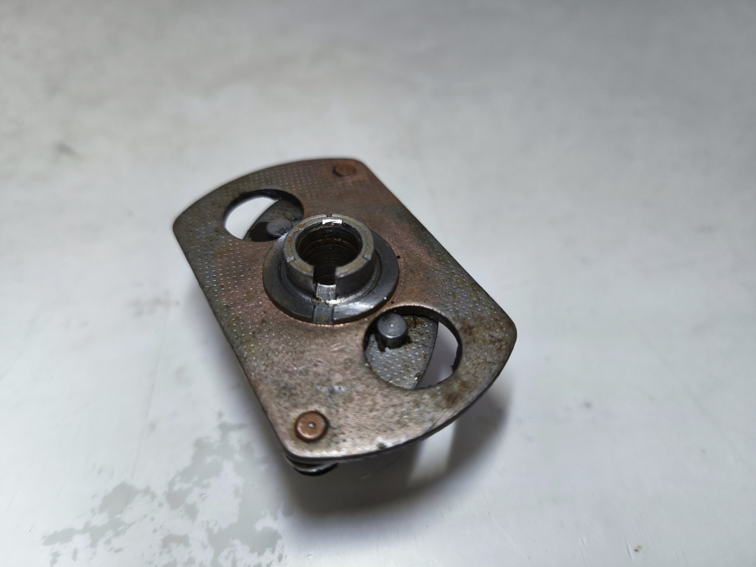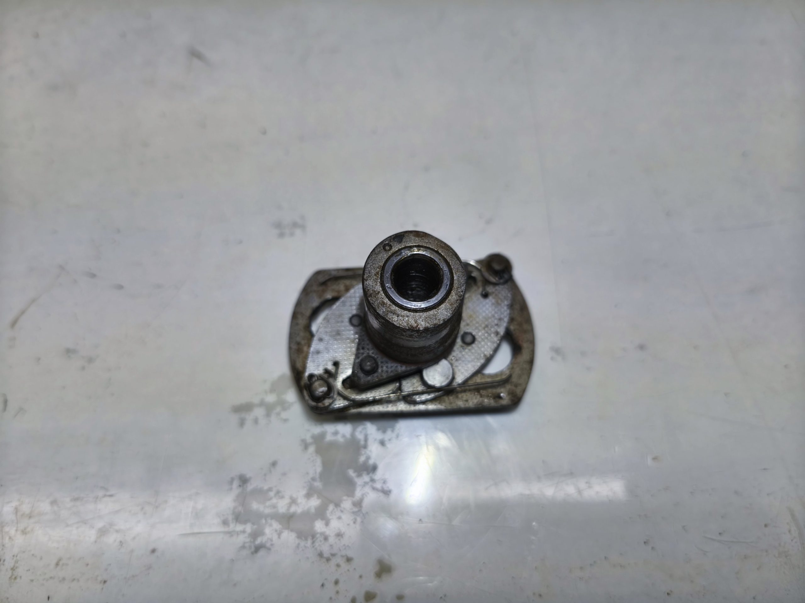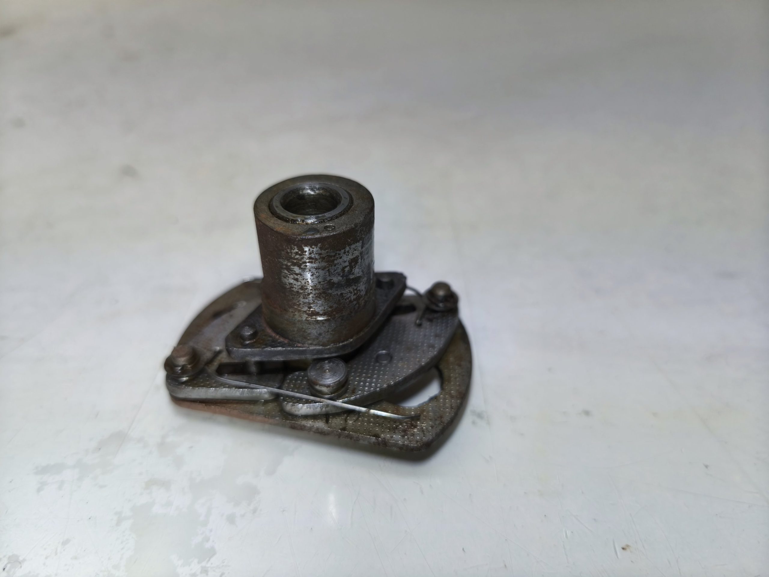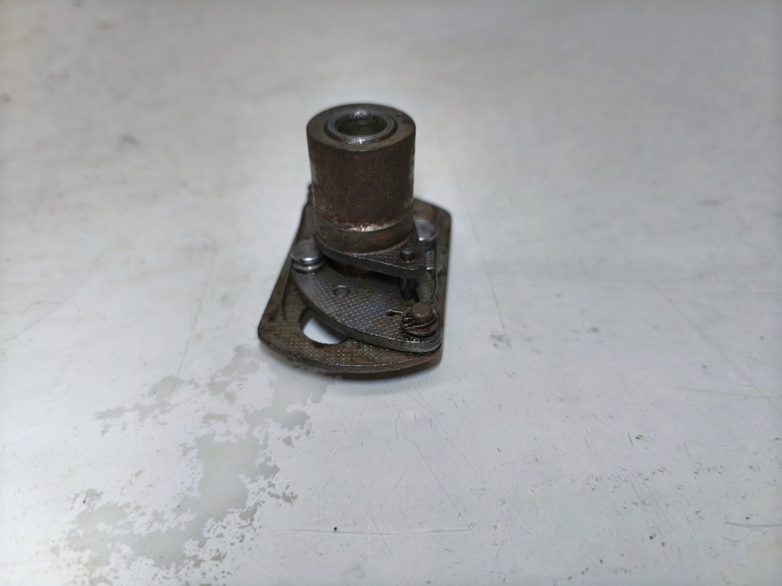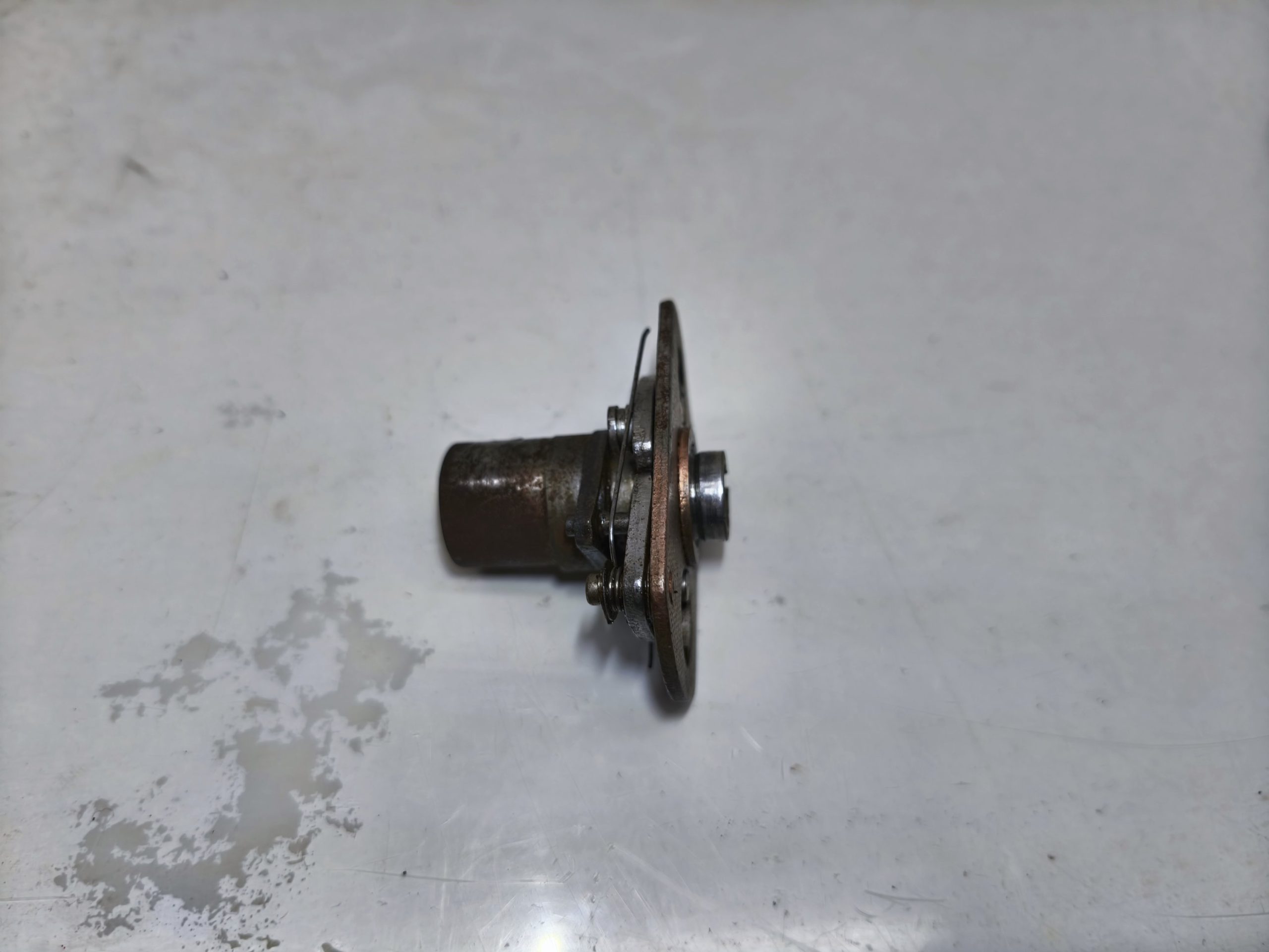 Przyśpieszacz zapłonu MZ ES 250/1 Jaskółka 250/2 Trophy. Stan ładny, działa z lekkością. Mocowanie krzywki ok. Blaszka lekko pofalowana – raczej nie będzie to miało wpływu na dalsze użytkowanie.