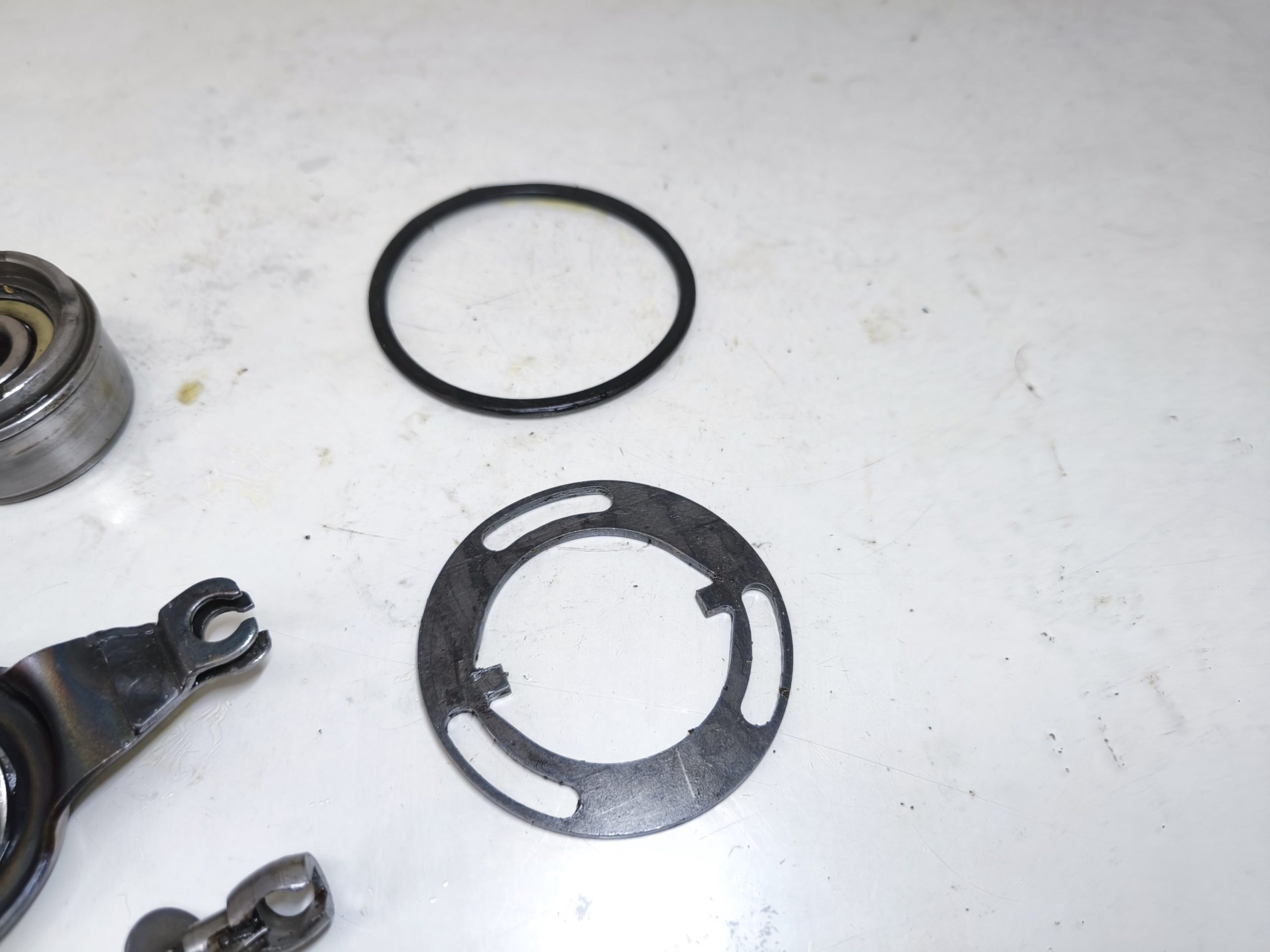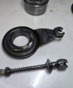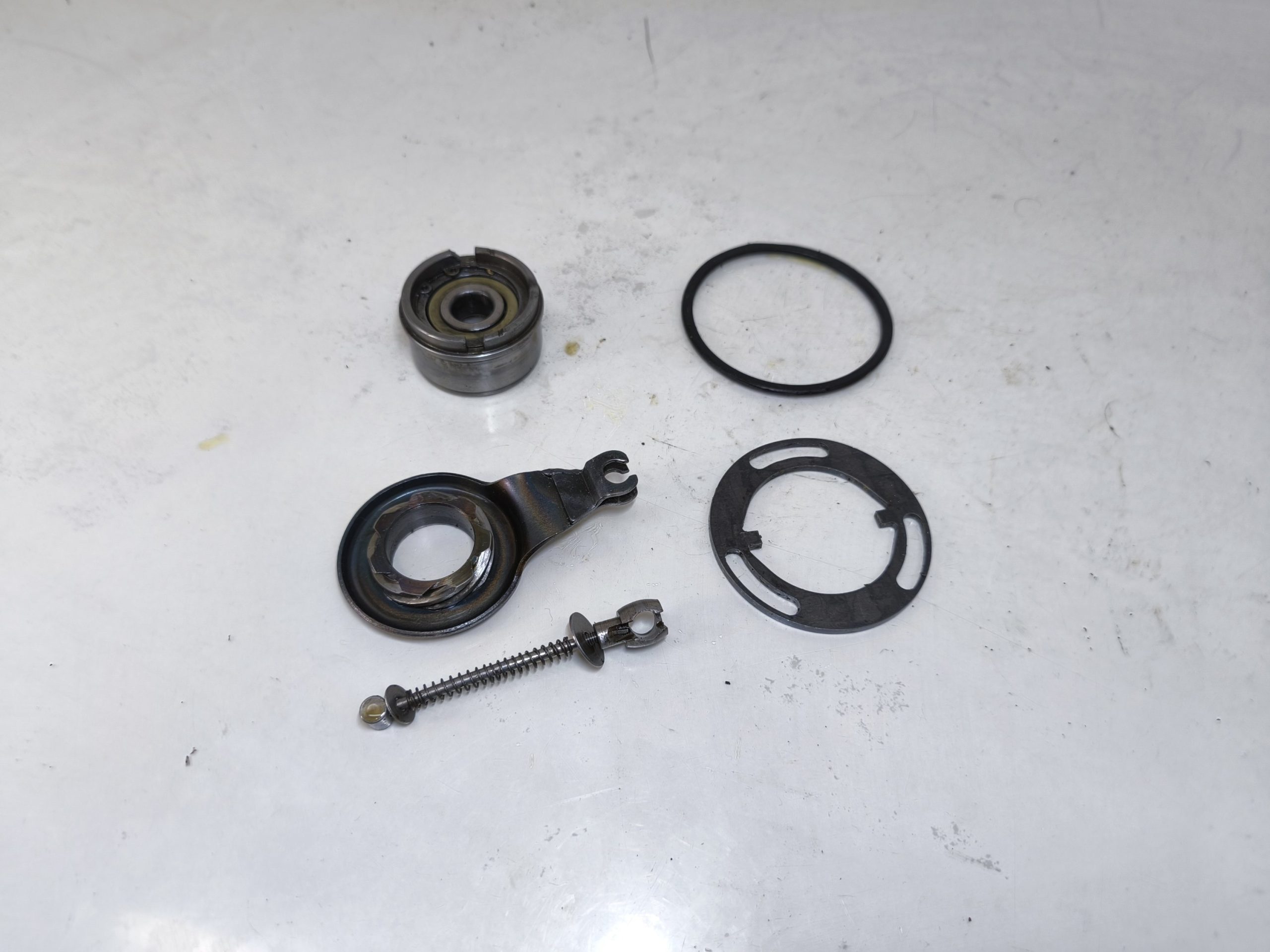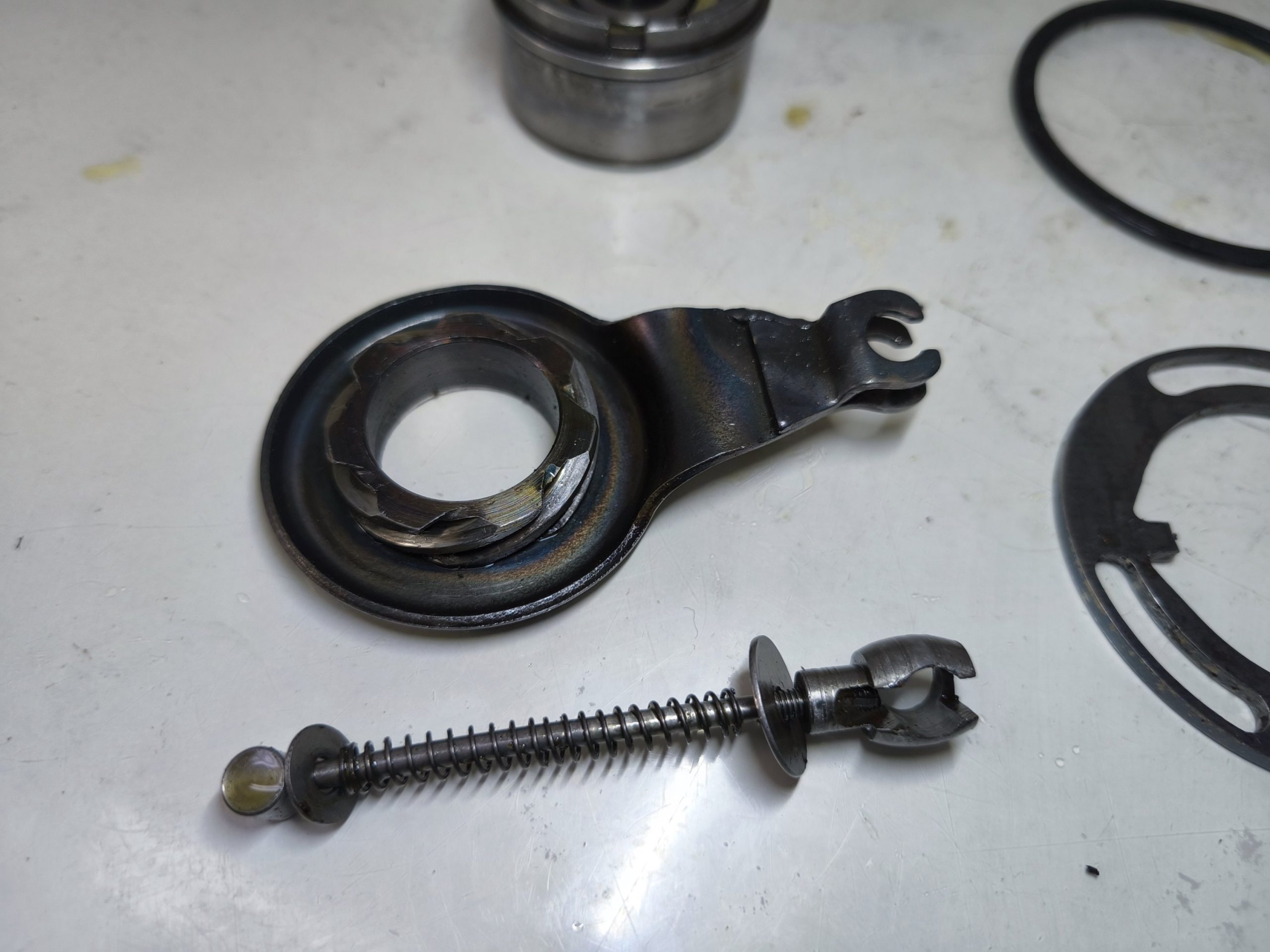 Regulacja napinacz sprzęgła MZ ETZ 250 251 301 TS 250/1. Stan przyzwoity – minimalne zużycie, ślimak działa. Zaczepy ładne. Wymaga porządnego czyszczenia.