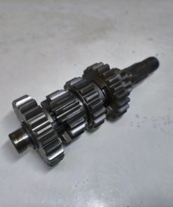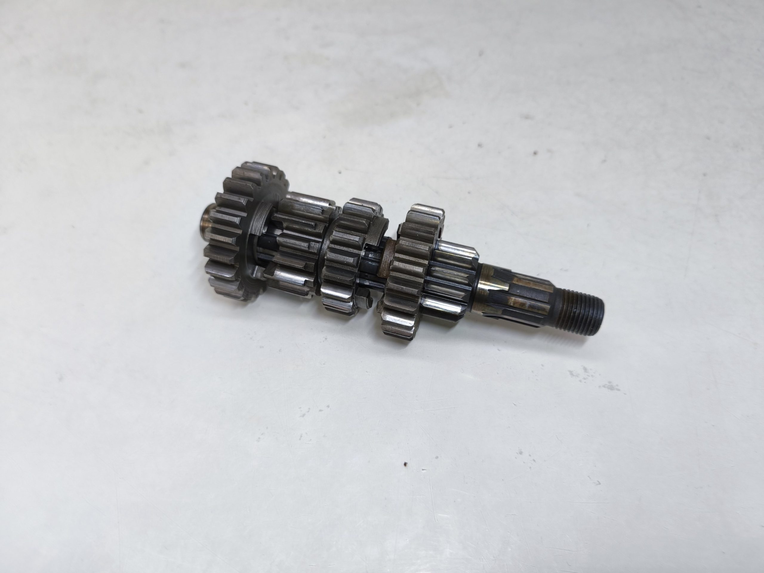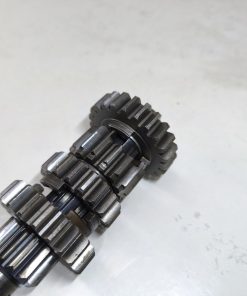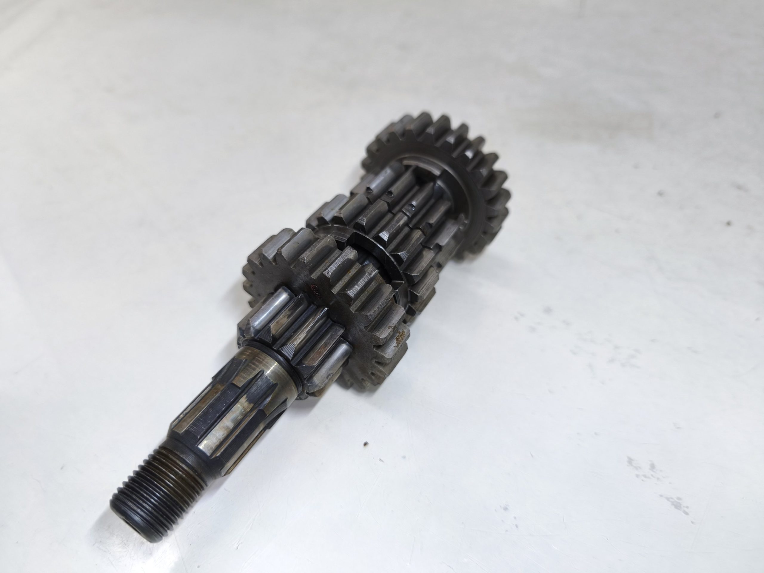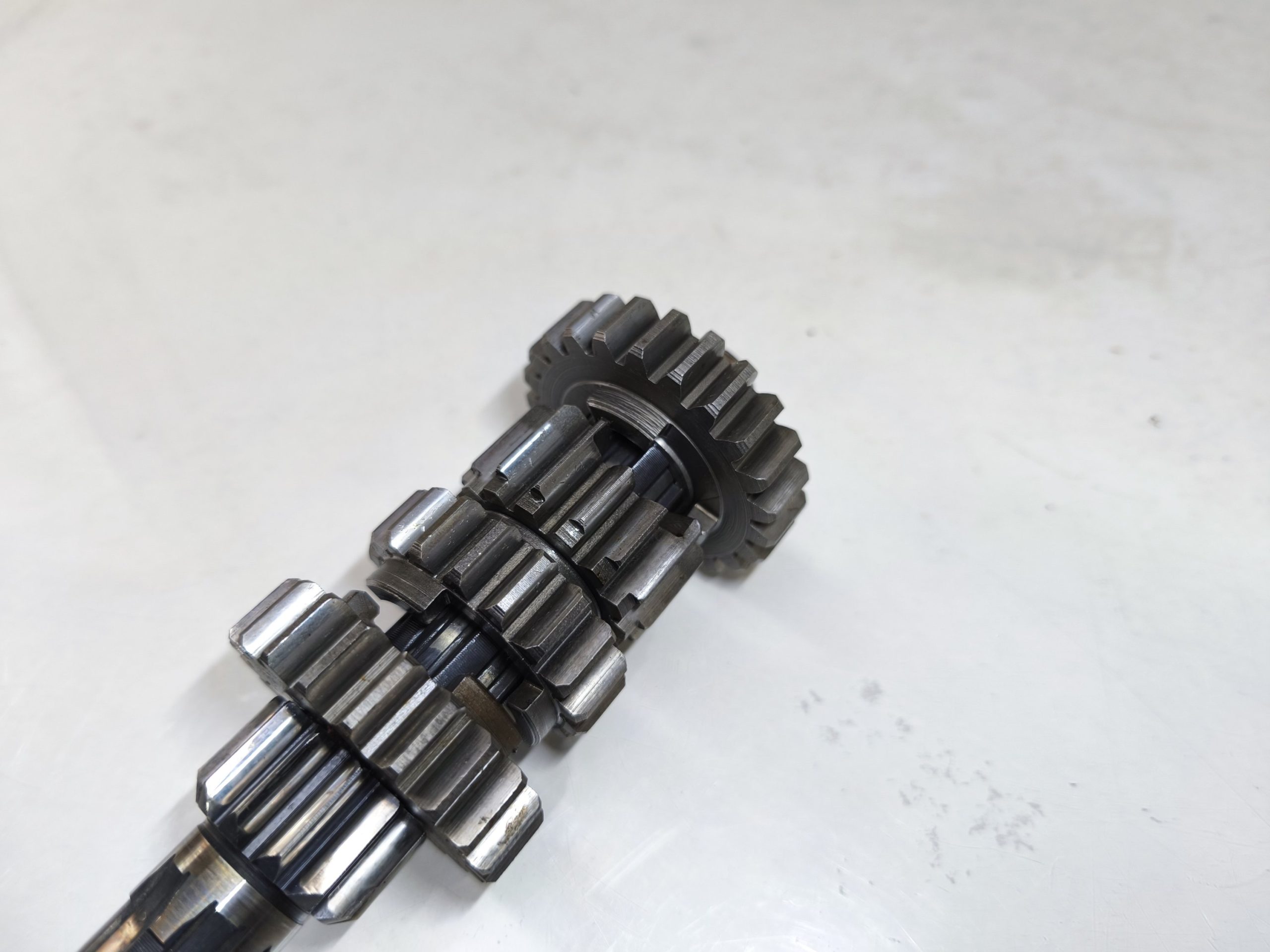 Skrzynia biegów – wałek sprzęgłowy MZ ETZ 250 251 301 TS 250/1. Na trybach zęby całe, frezy i gwint ok. Zęby kłowe w ładnym stanie. Delikatne uszczerbki zębach stałych wałka sprzęgłowego.