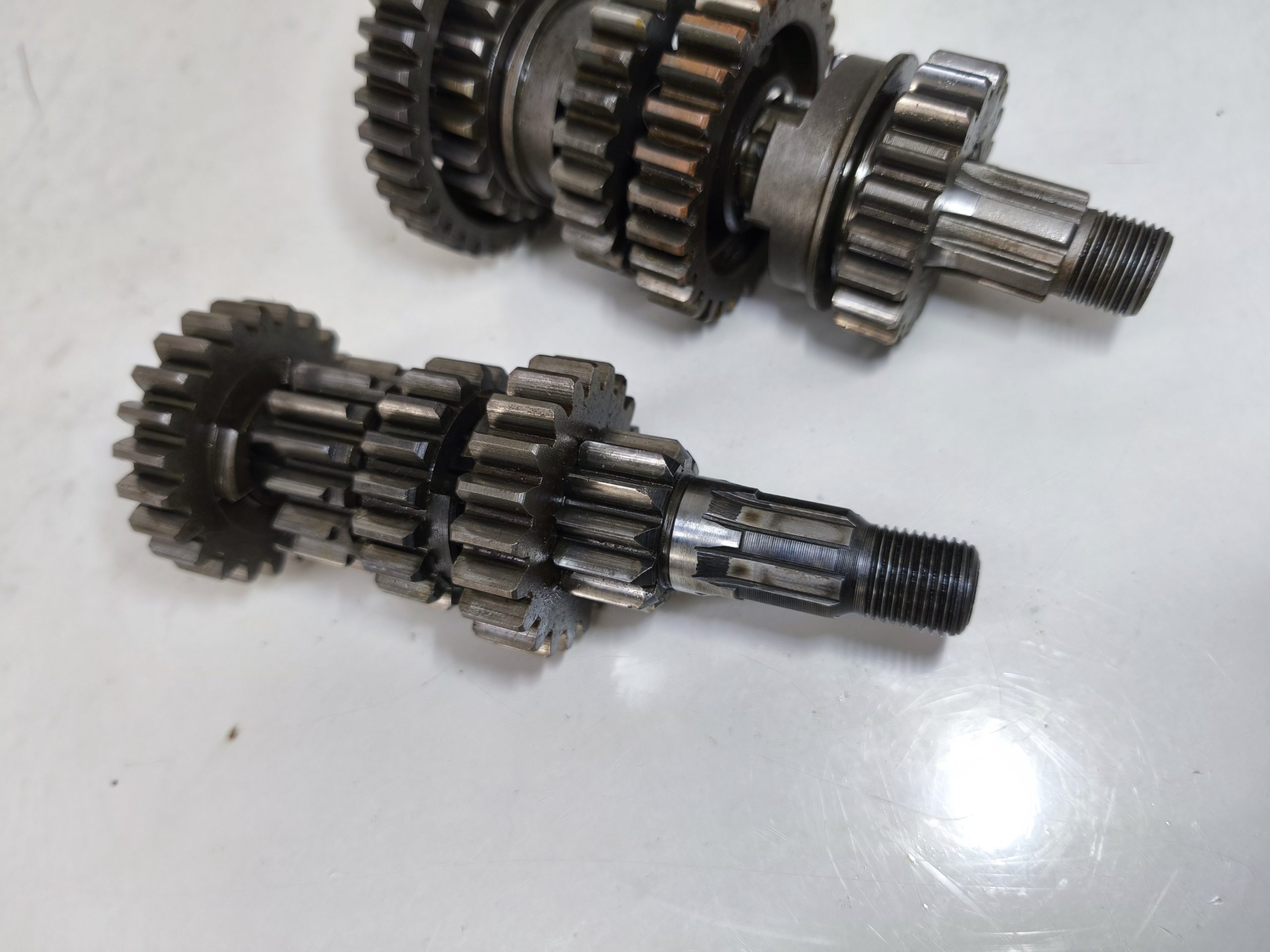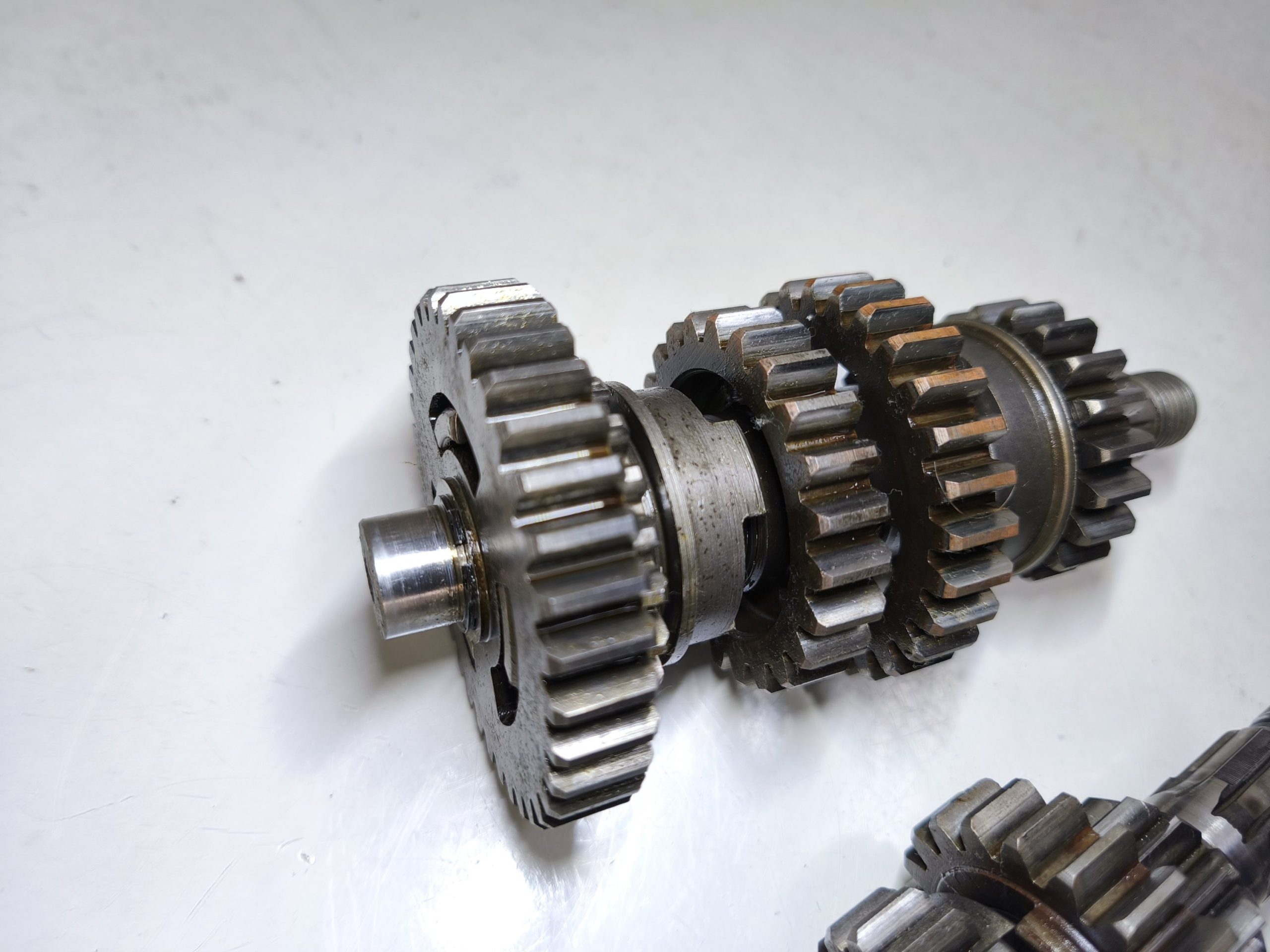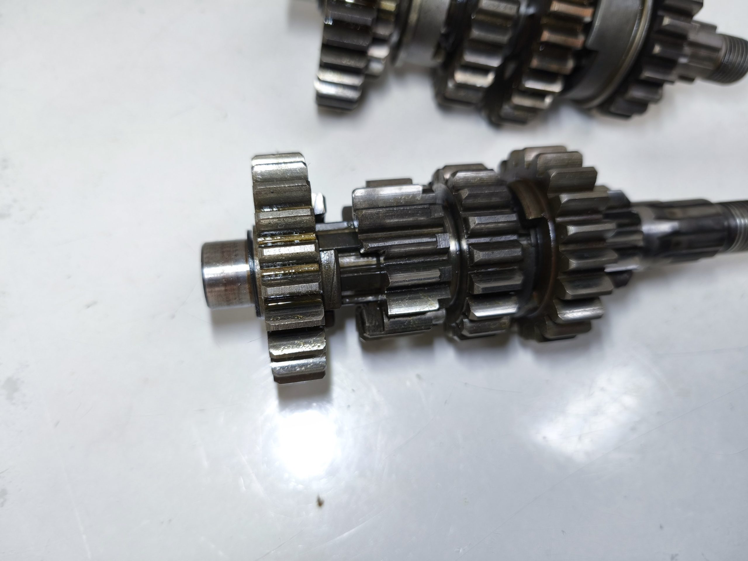 Skrzynia biegów MZ ETZ 250 251 301 TS 250/1 wałki tryby skrzyni biegów. Skrzynia w dość ładnym stanie. Zęby całe, tryby w ładnym stanie. Frezy oraz gwinty bardzo ładne. Zęby kłowe niemal na całości w dobrym stanie, na jednym trybie ciut gorsze – skrzynia raczej z małym przebiegiem.