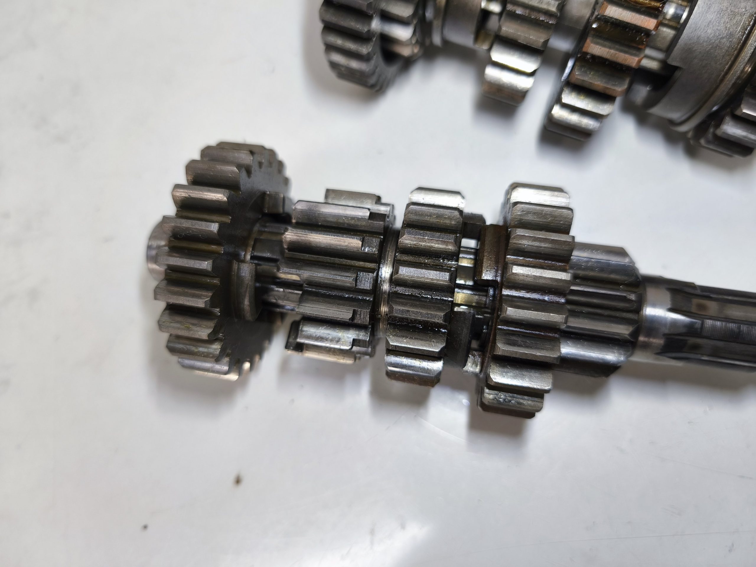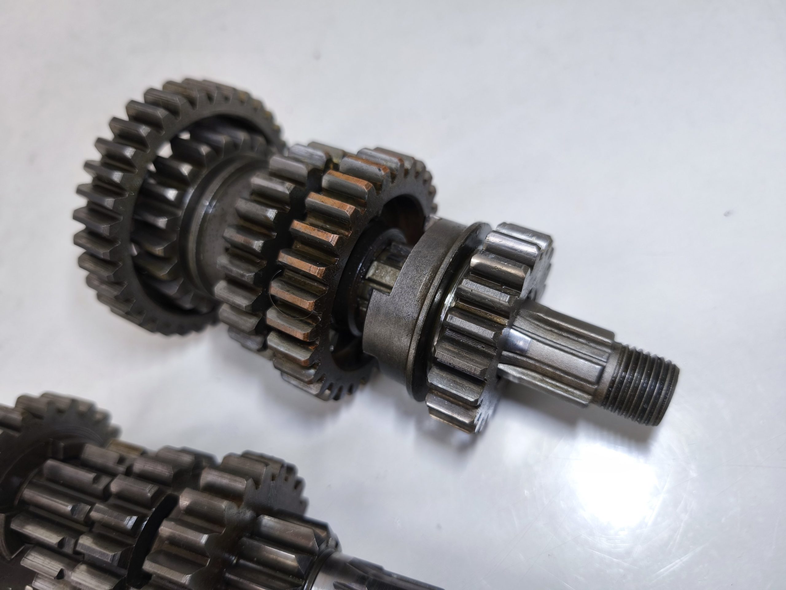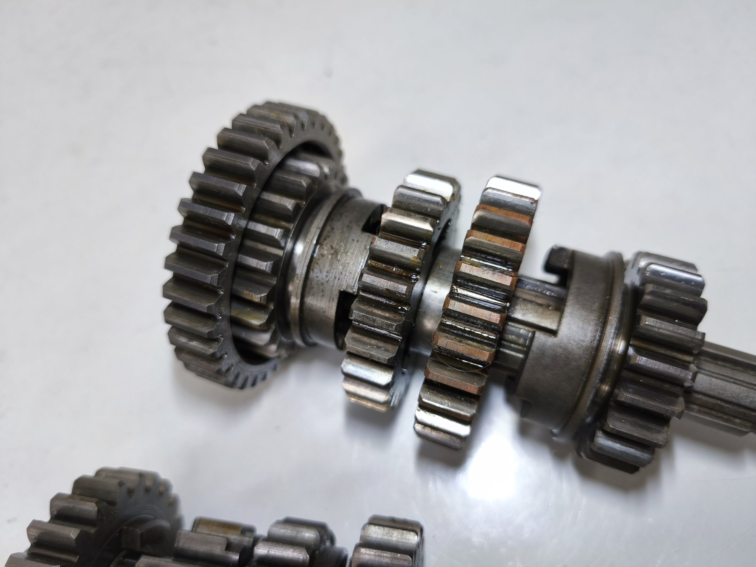 Skrzynia biegów MZ ETZ 250 251 301 TS 250/1 wałki tryby skrzyni biegów. Skrzynia w dość ładnym stanie. Zęby całe, tryby w ładnym stanie. Frezy oraz gwinty bardzo ładne. Zęby kłowe niemal na całości w dobrym stanie, na jednym trybie ciut gorsze – skrzynia raczej z małym przebiegiem.