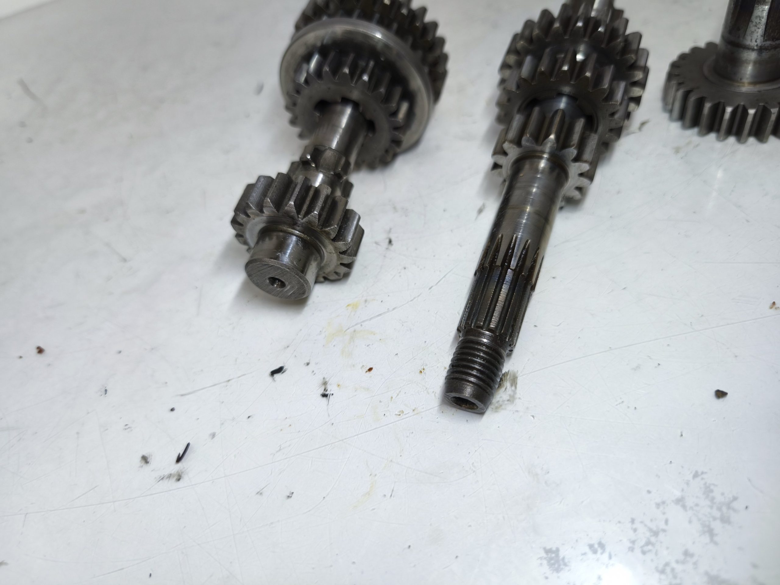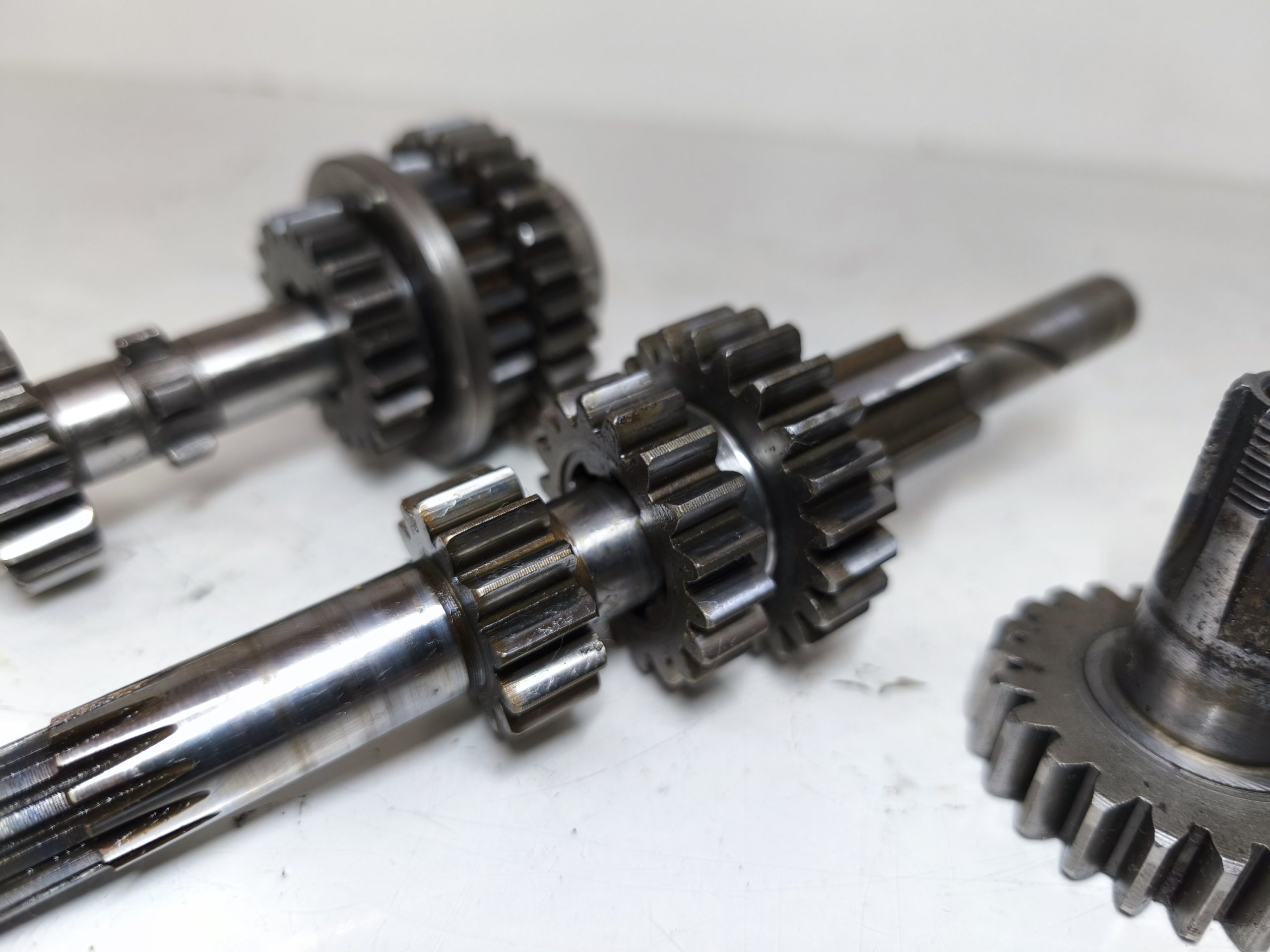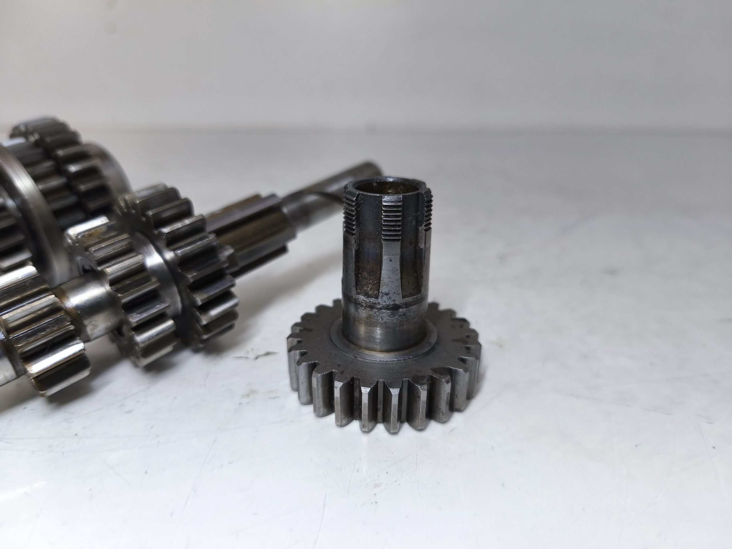 Skrzynia biegów MZ TS ES 125 150 wałki tryby tryb zdawczy. Zęby całe w dobrym stanie. Zęby kłowe w przyzwoitym stanie. Tryb zdawczy wygląda ładnie. Gwint ok, frezy ok.