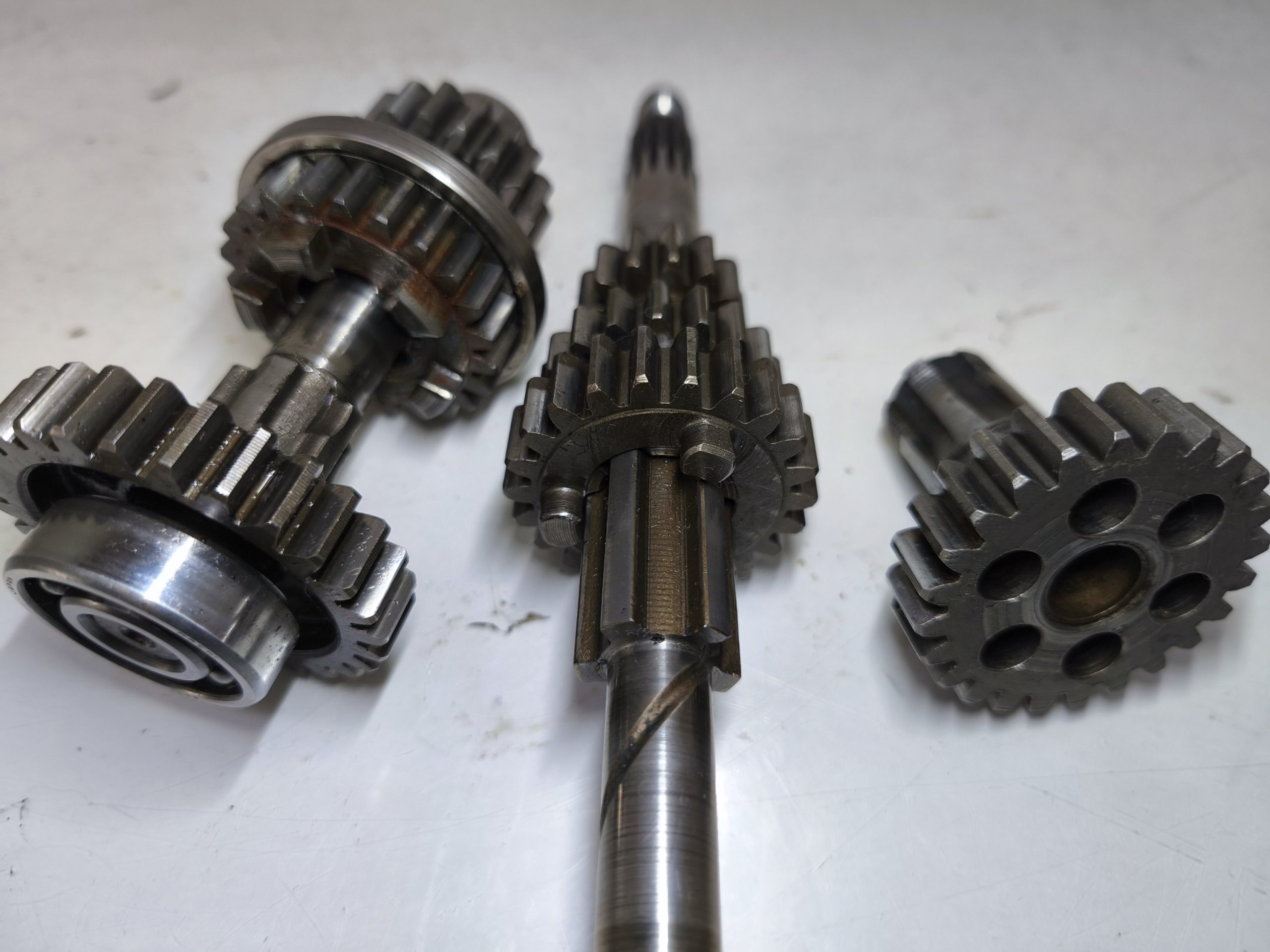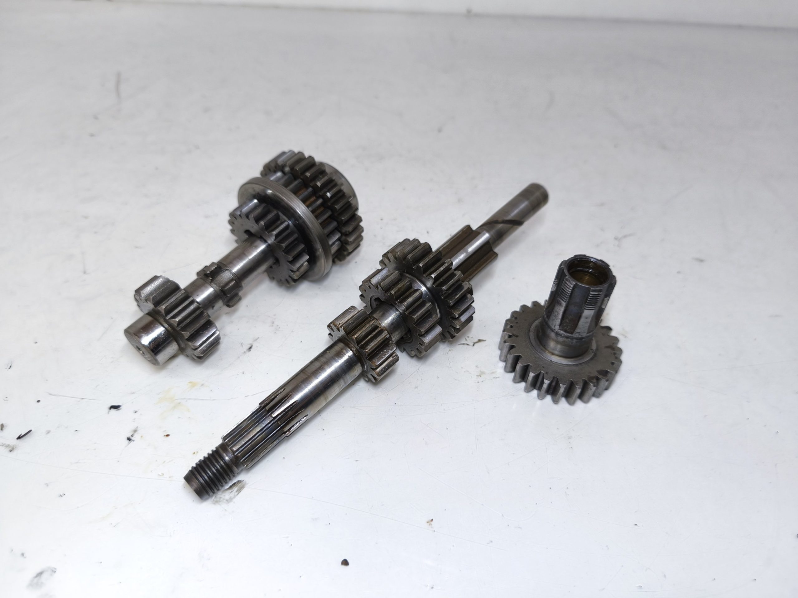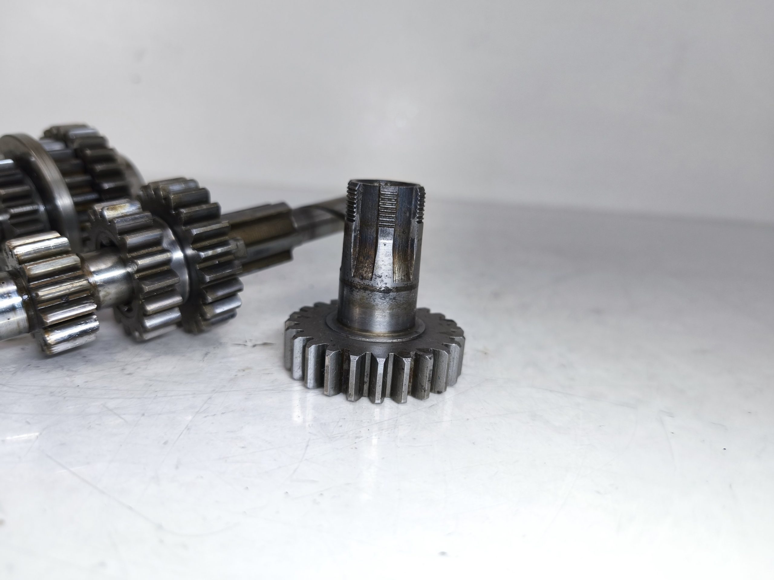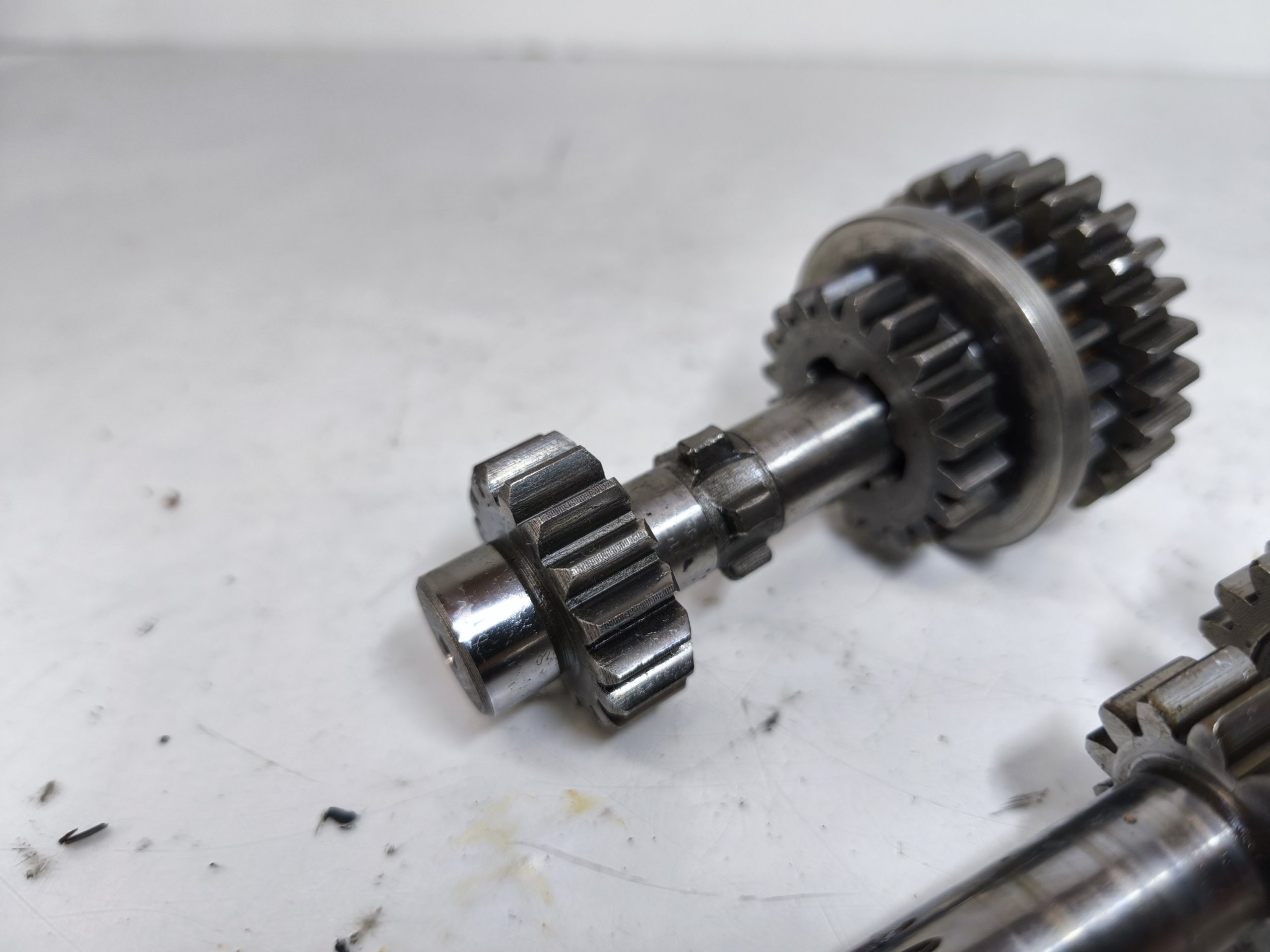 Skrzynia biegów MZ TS ES 125 150 wałki tryby tryb zdawczy. Zęby całe w dobrym stanie. Zęby kłowe w przyzwoitym stanie. Tryb zdawczy wygląda ładnie. Gwint ok, frezy ok.