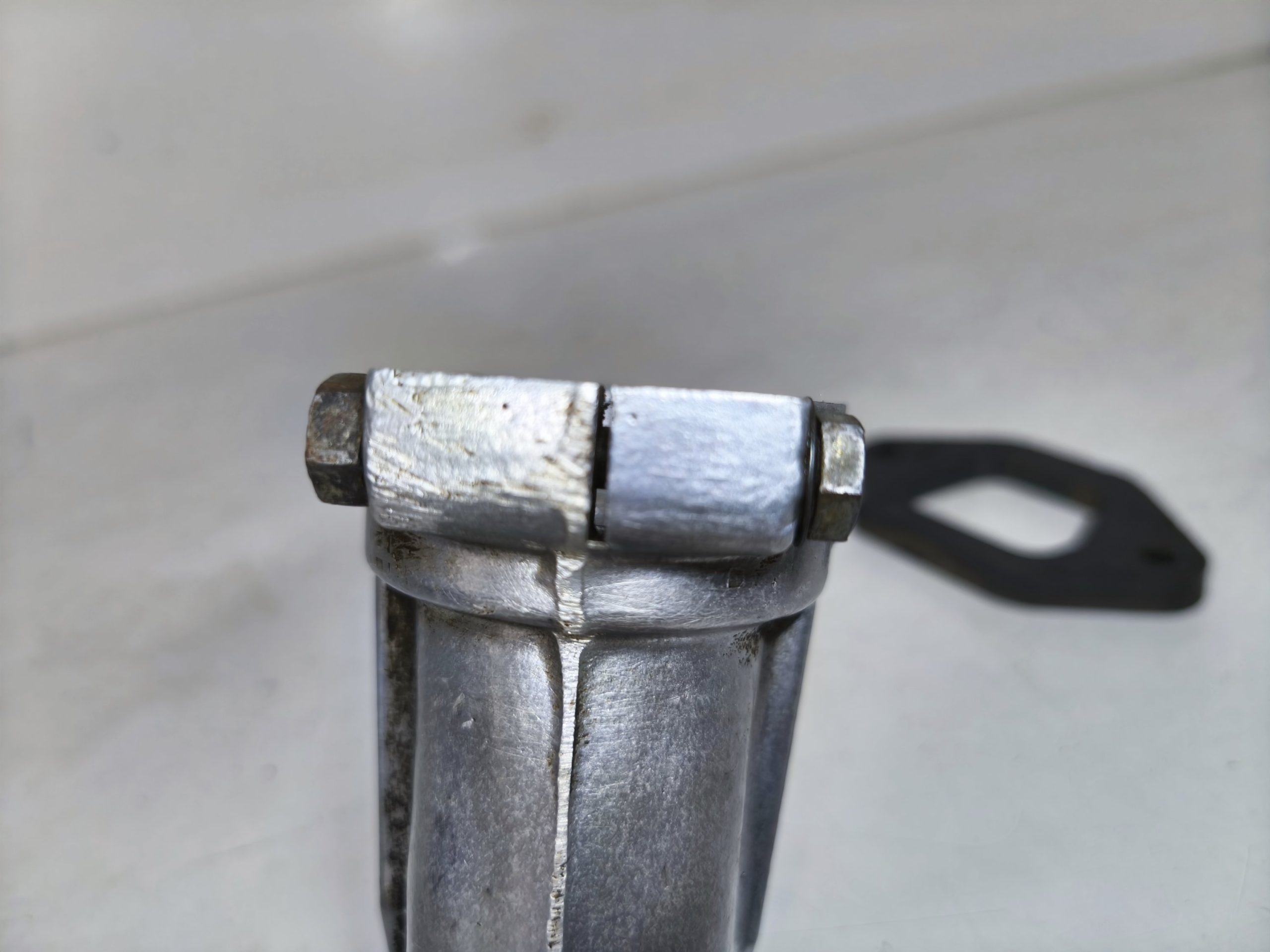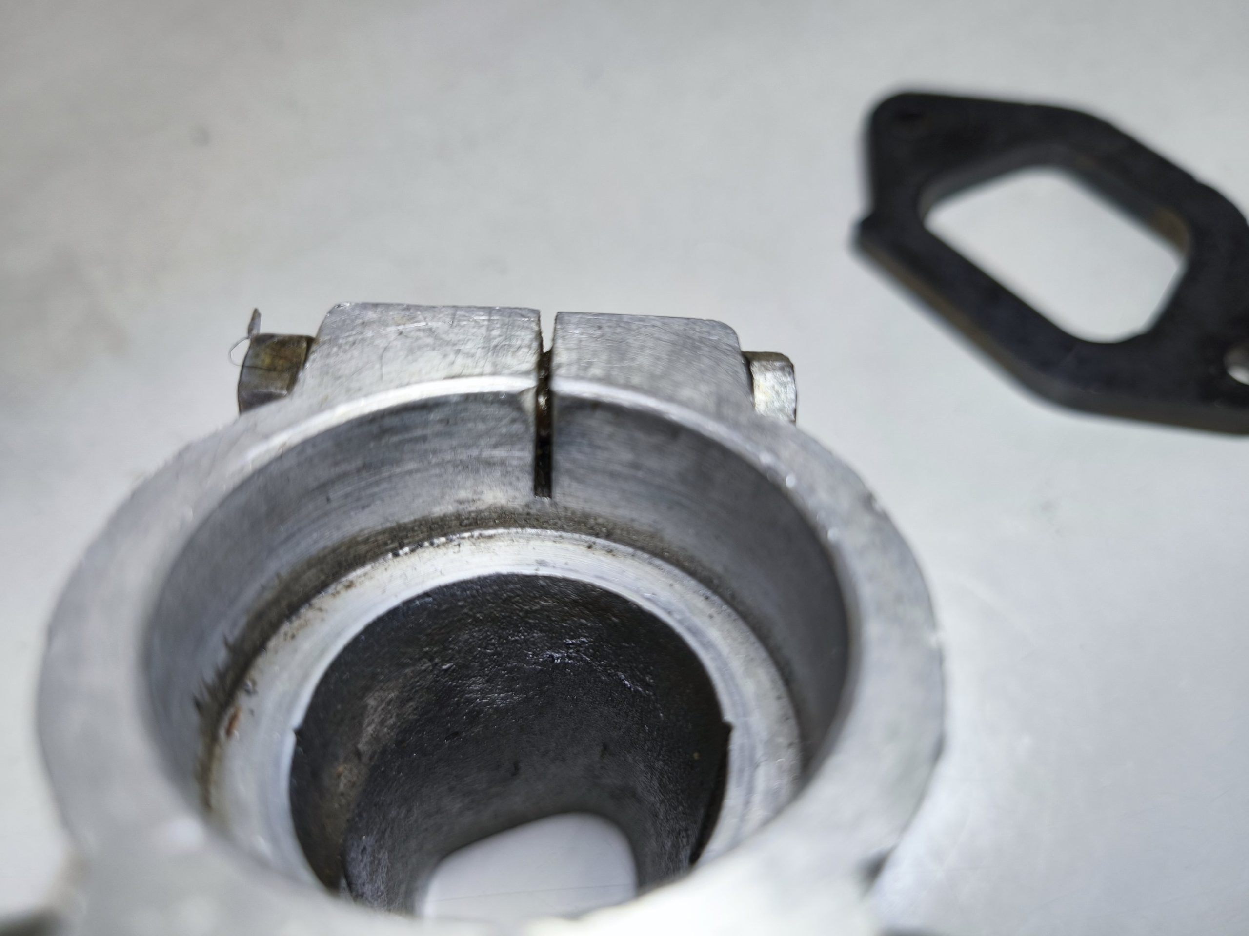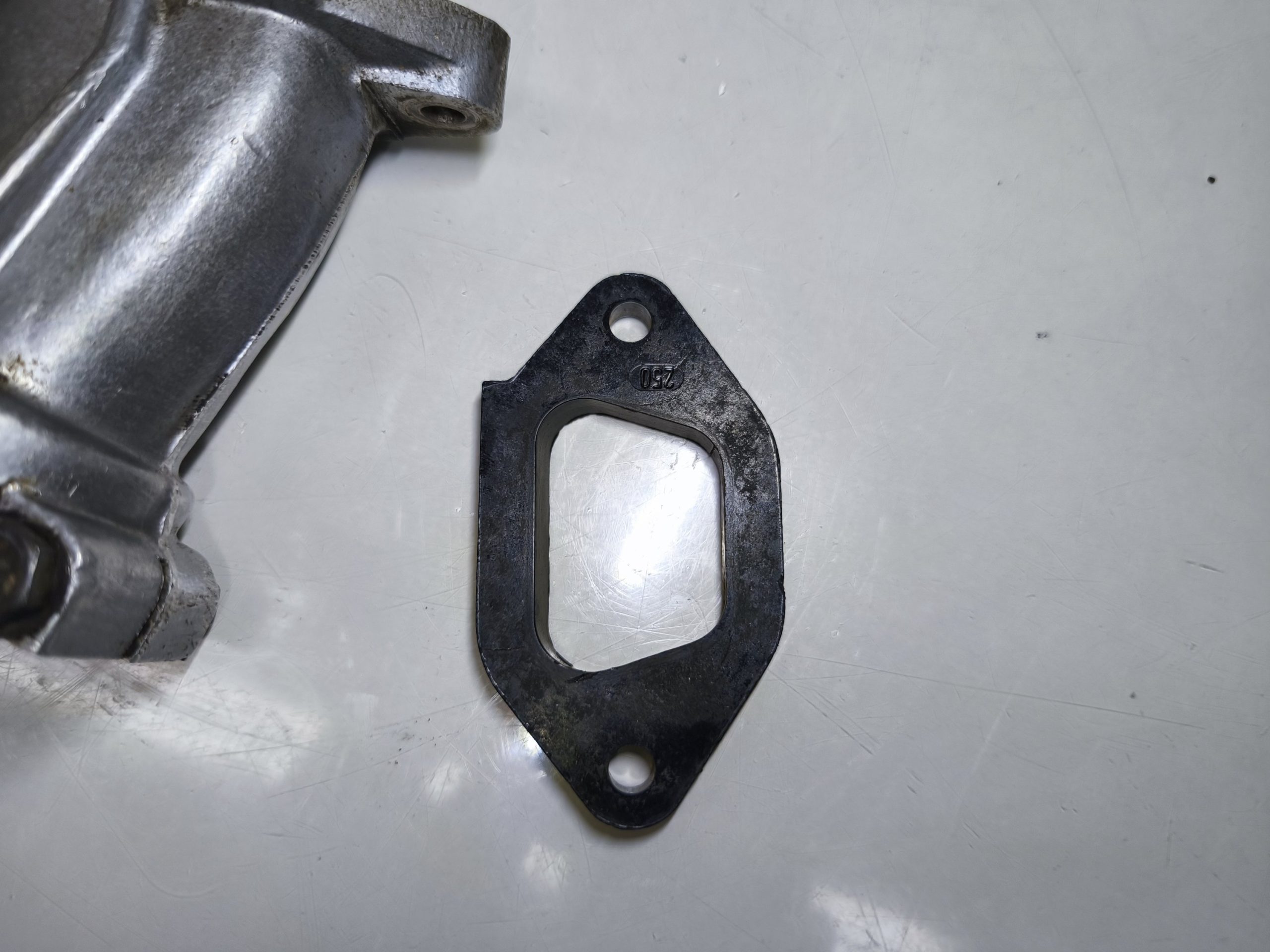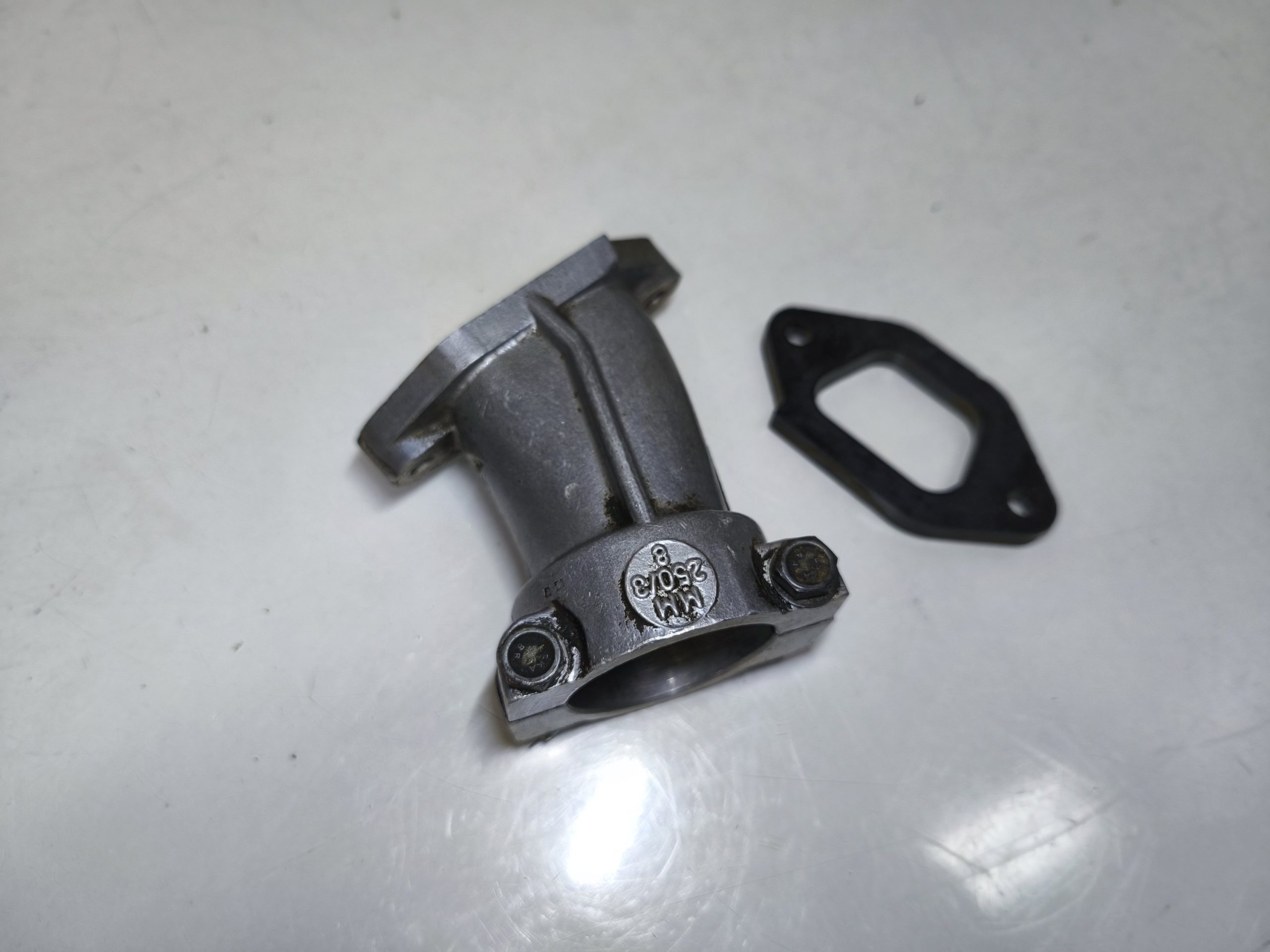 Króciec ssący gaźnika silnika MZ TS 250/1 250 śruby ESKA. Stan przyzwoity, standardowo lekkie mikro rysy przy mocowaniu gaźnika.
