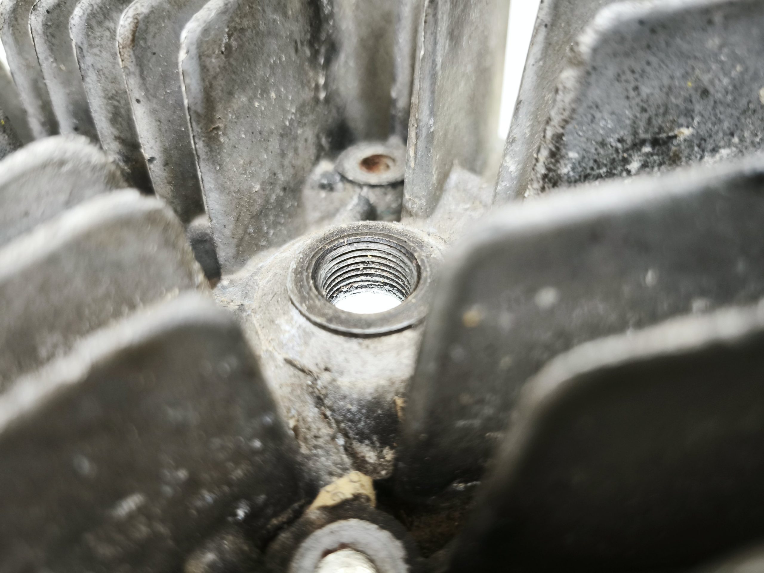 Głowica silnika MZ TS 125. Gwint świecy ładny stan. Żeberka całe.