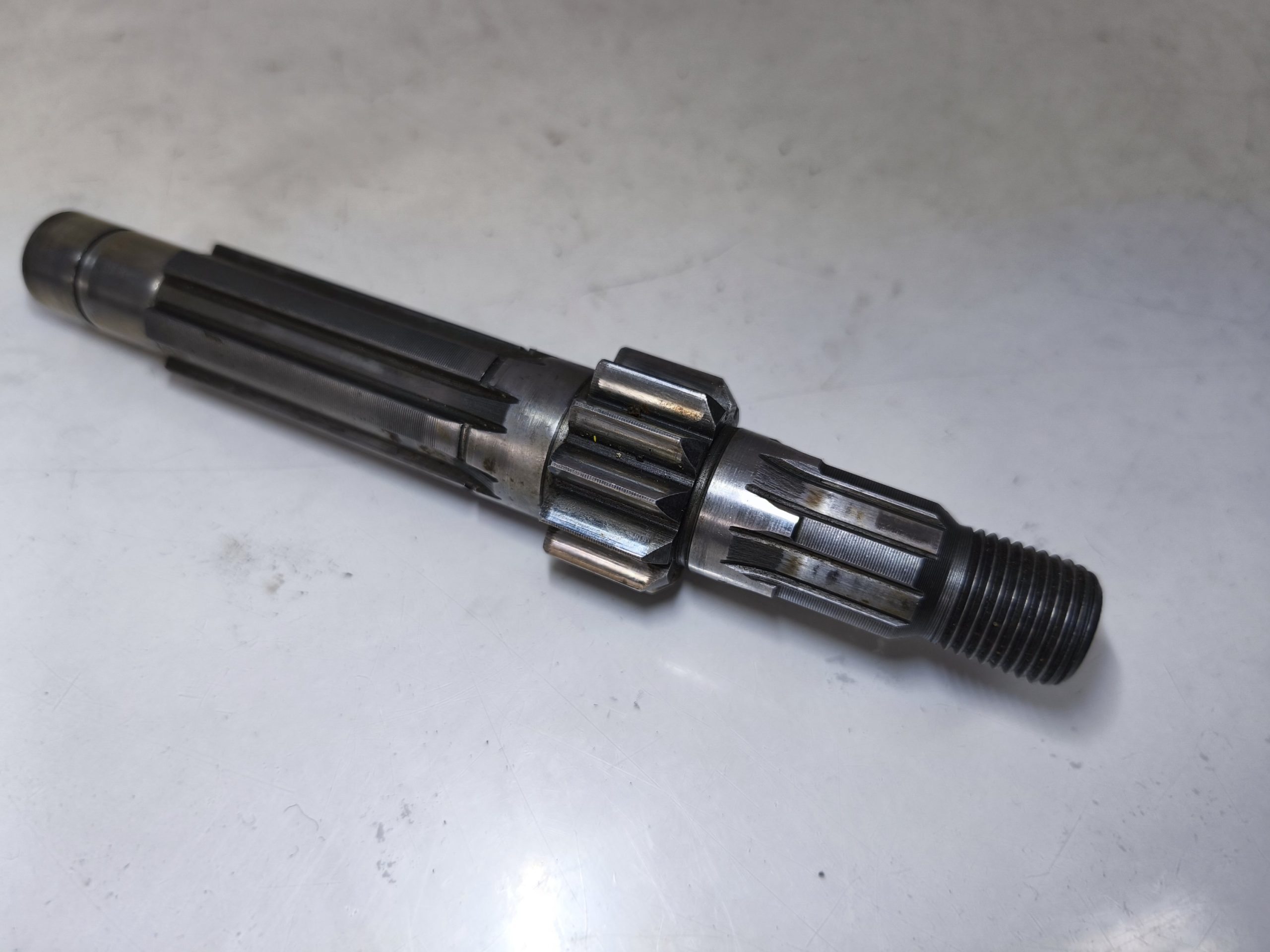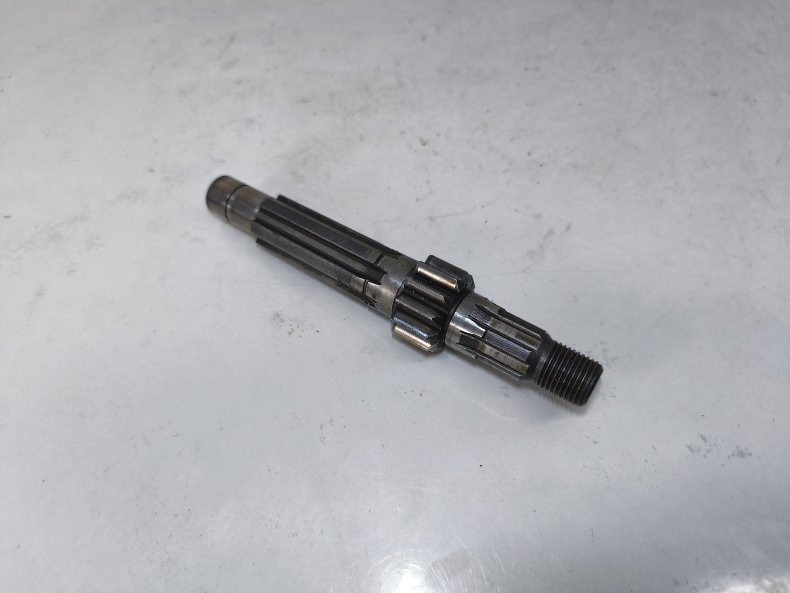 Wałek sprzęgłowy skrzyni biegów MZ ETZ 250 251 301 TS 250/1. Zęby ładne, frezy ładne. Gwint ok. Wałek bez większego przebiegu.