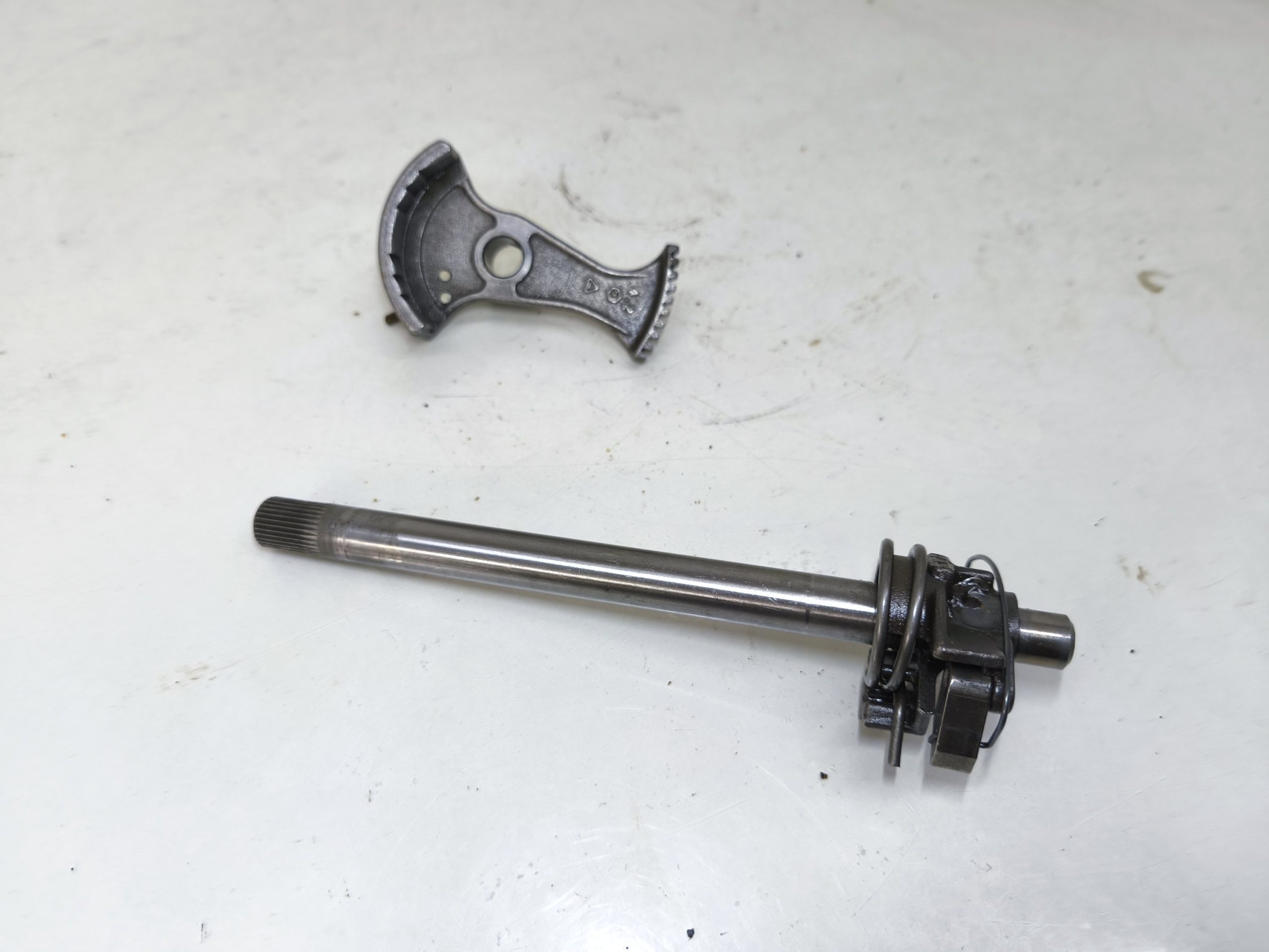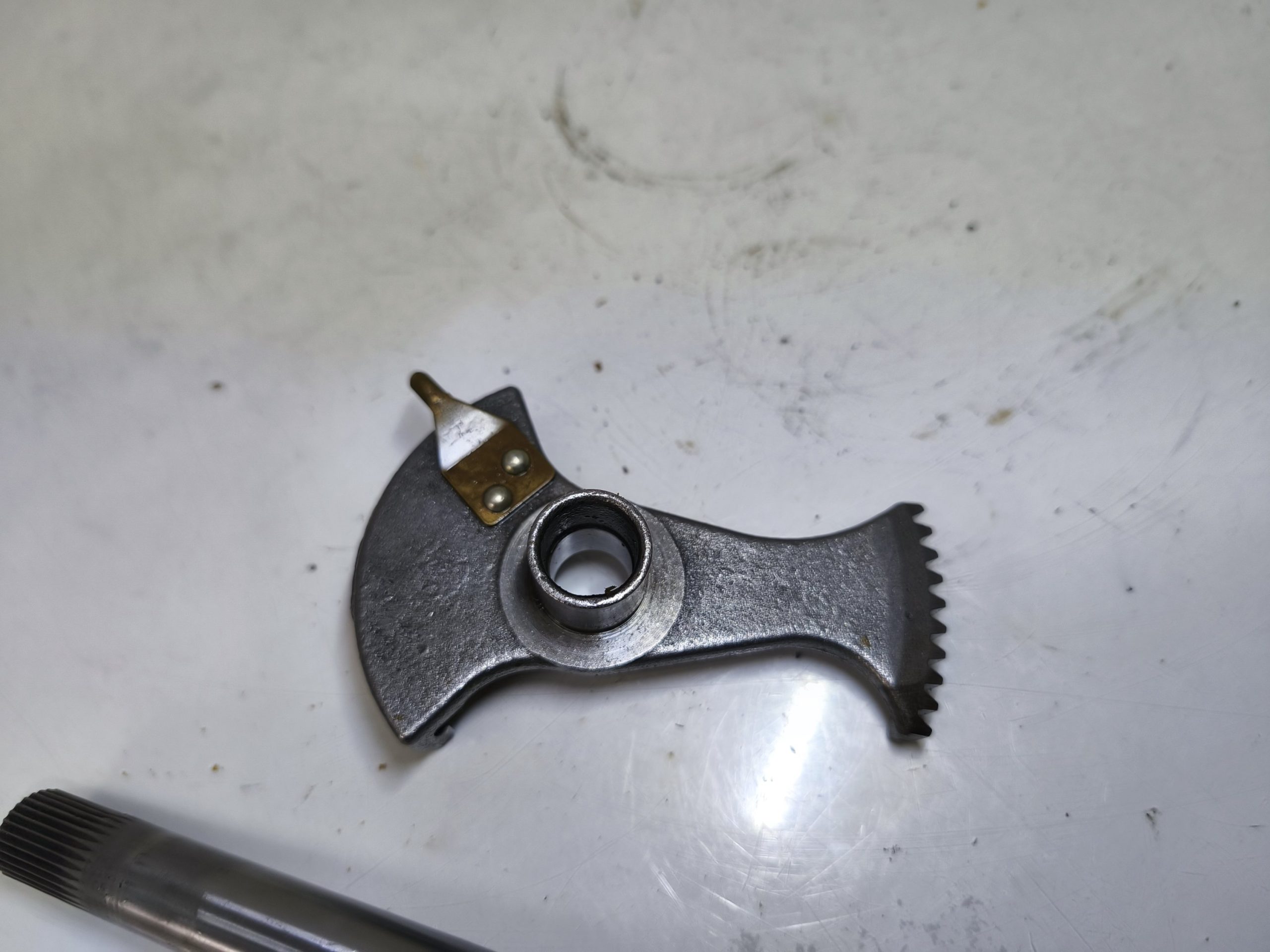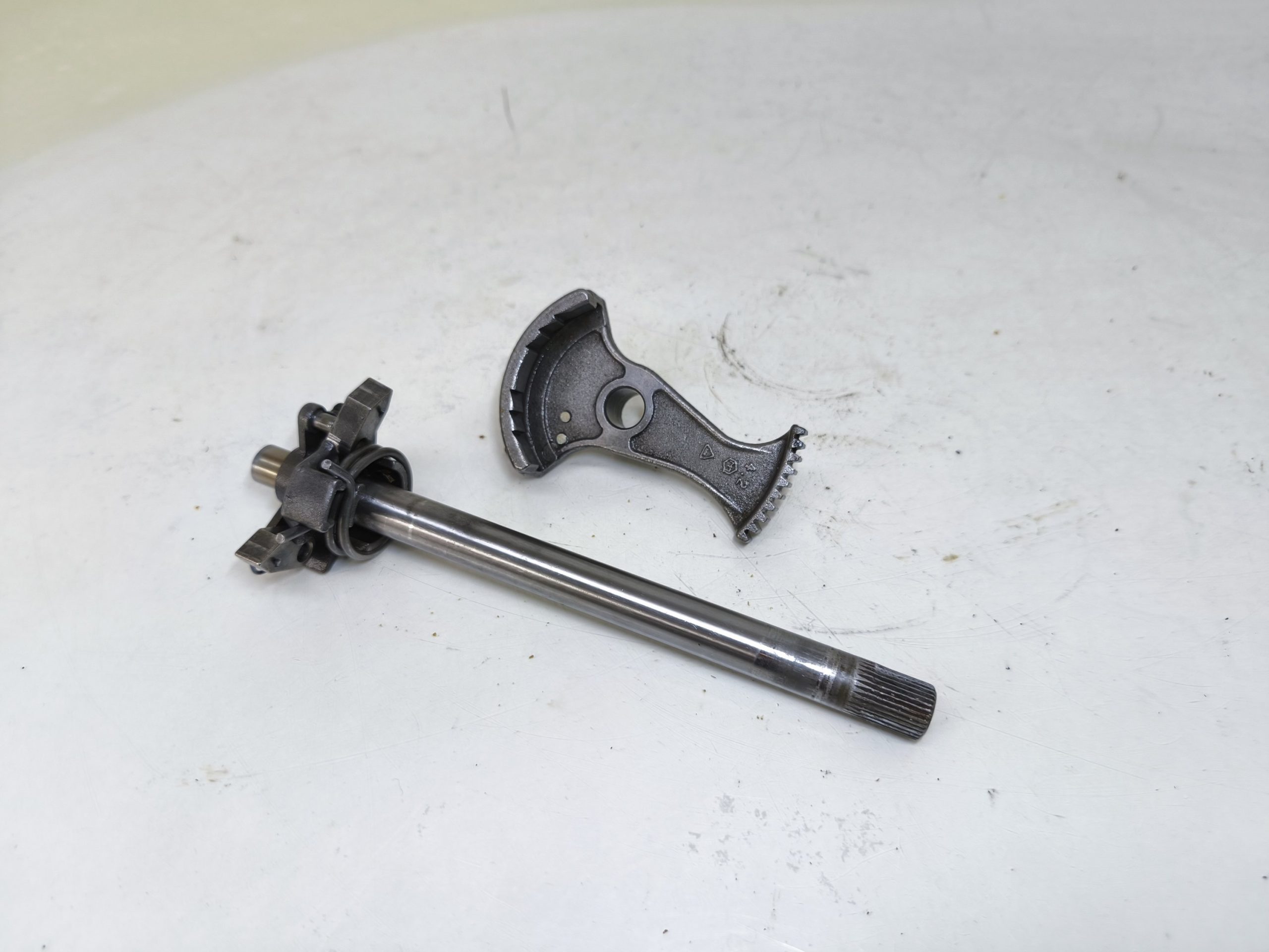 Wałek zmiany biegów MZ TS 250 250/2 Trophy. Wybierak dźwignia zmiany biegów – frez w dobrym stanie. Czujnik luzu położenia biegu jałowego w ładnym stanie.