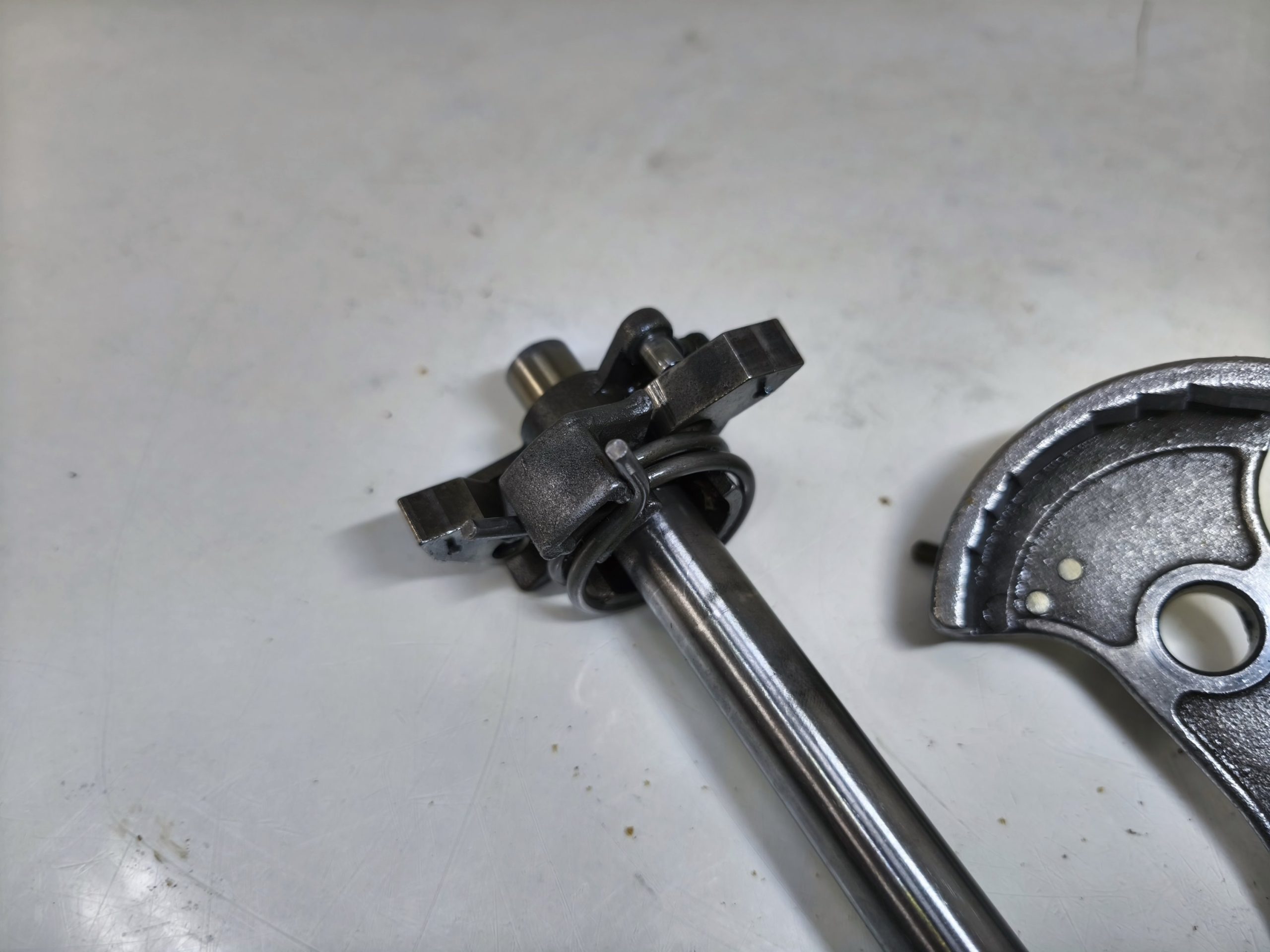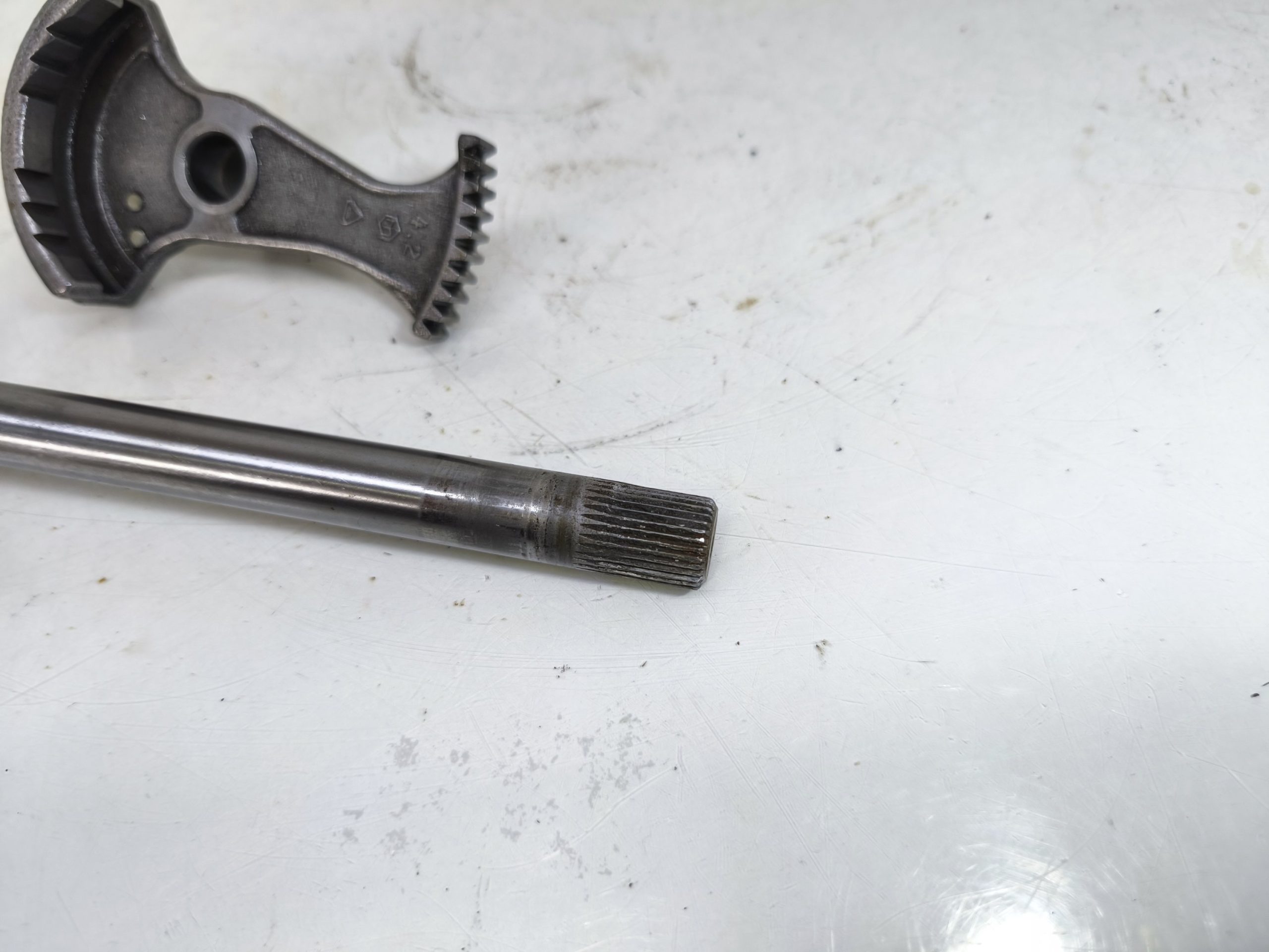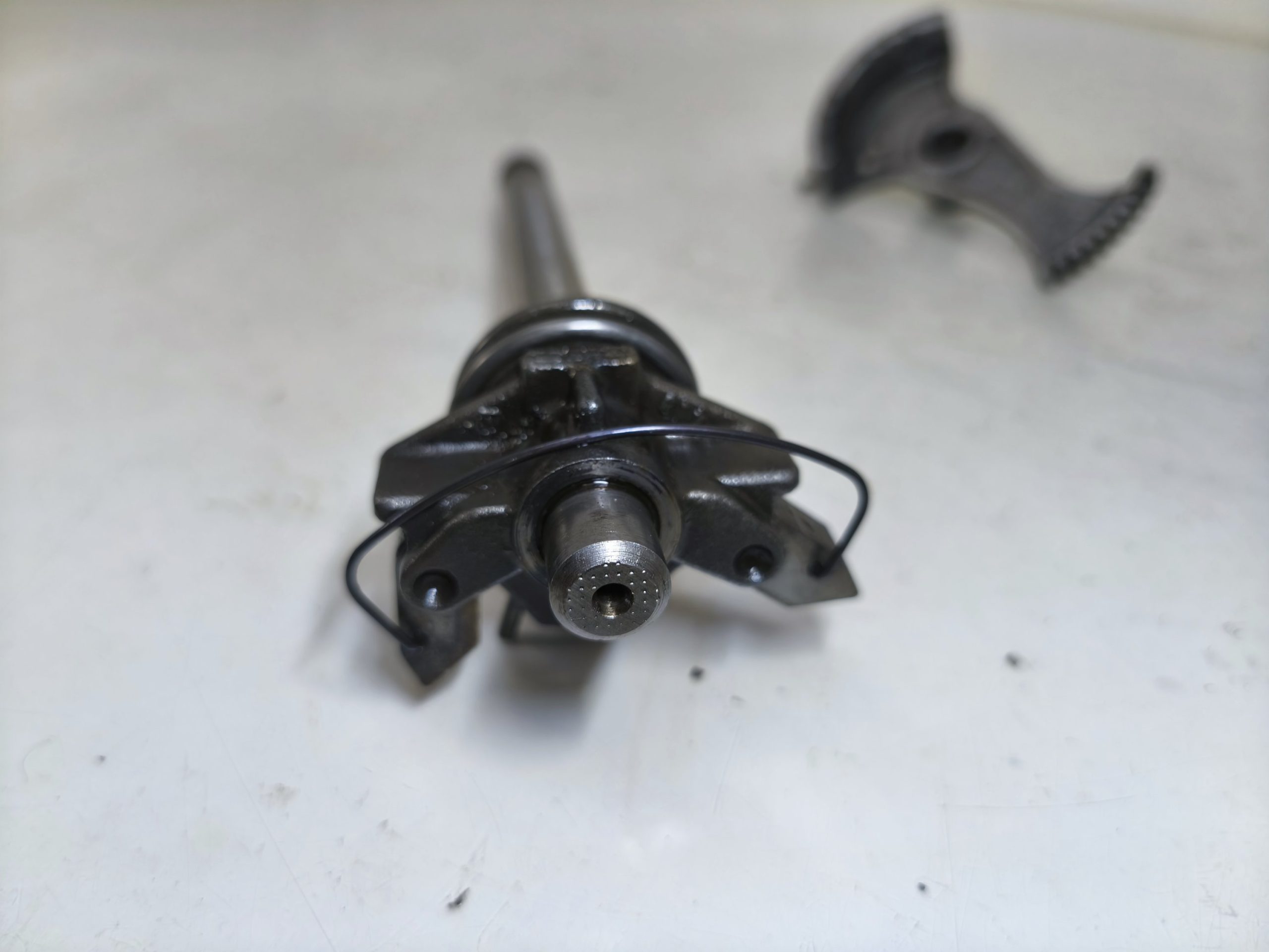 Wałek zmiany biegów MZ TS 250 250/2 Trophy. Wybierak dźwignia zmiany biegów – frez w dobrym stanie. Czujnik luzu położenia biegu jałowego w ładnym stanie.