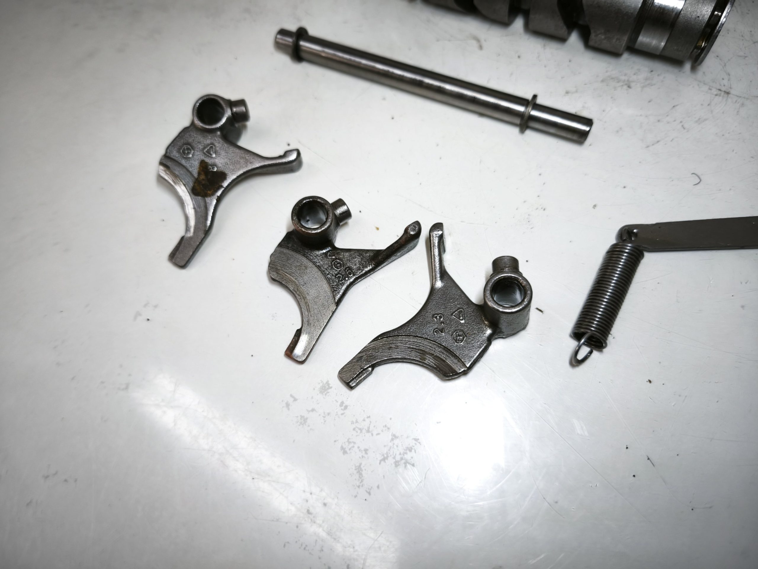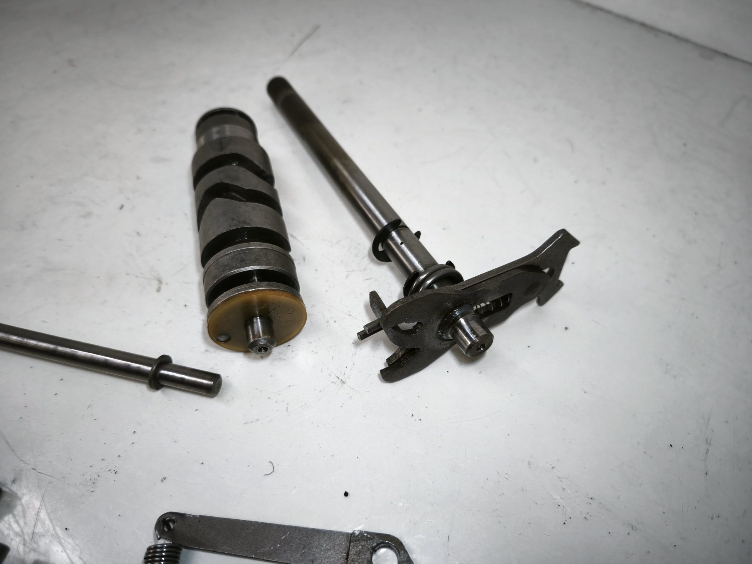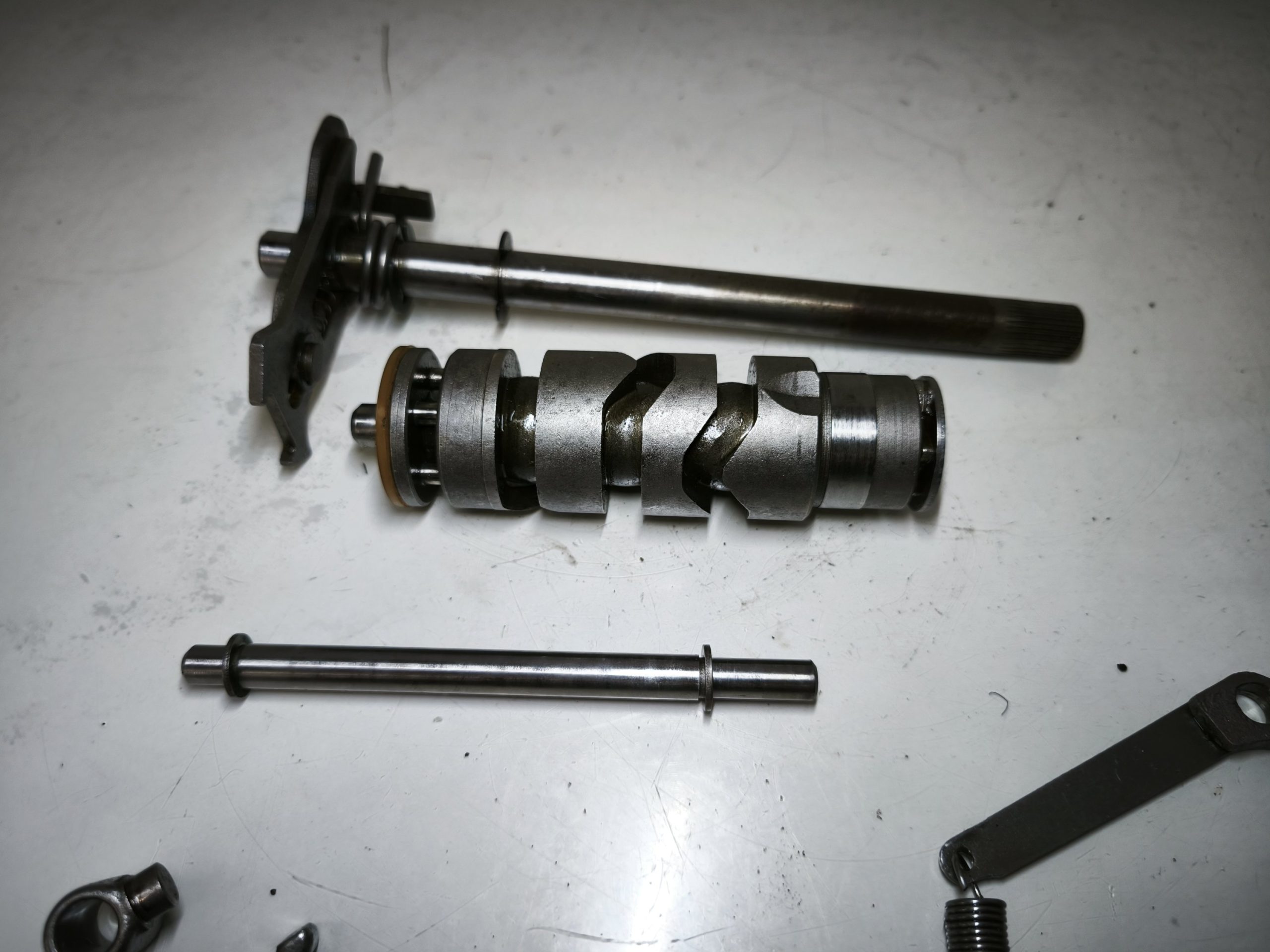 Wodziki skrzyni biegów 010 011 012 MZ ETZ 250 251 301 TS 250/1 wałek krzywkowy, zatrzask, dźwignia zmiany biegów – całość w ładnym stanie. Minimalne ślady zużycia.