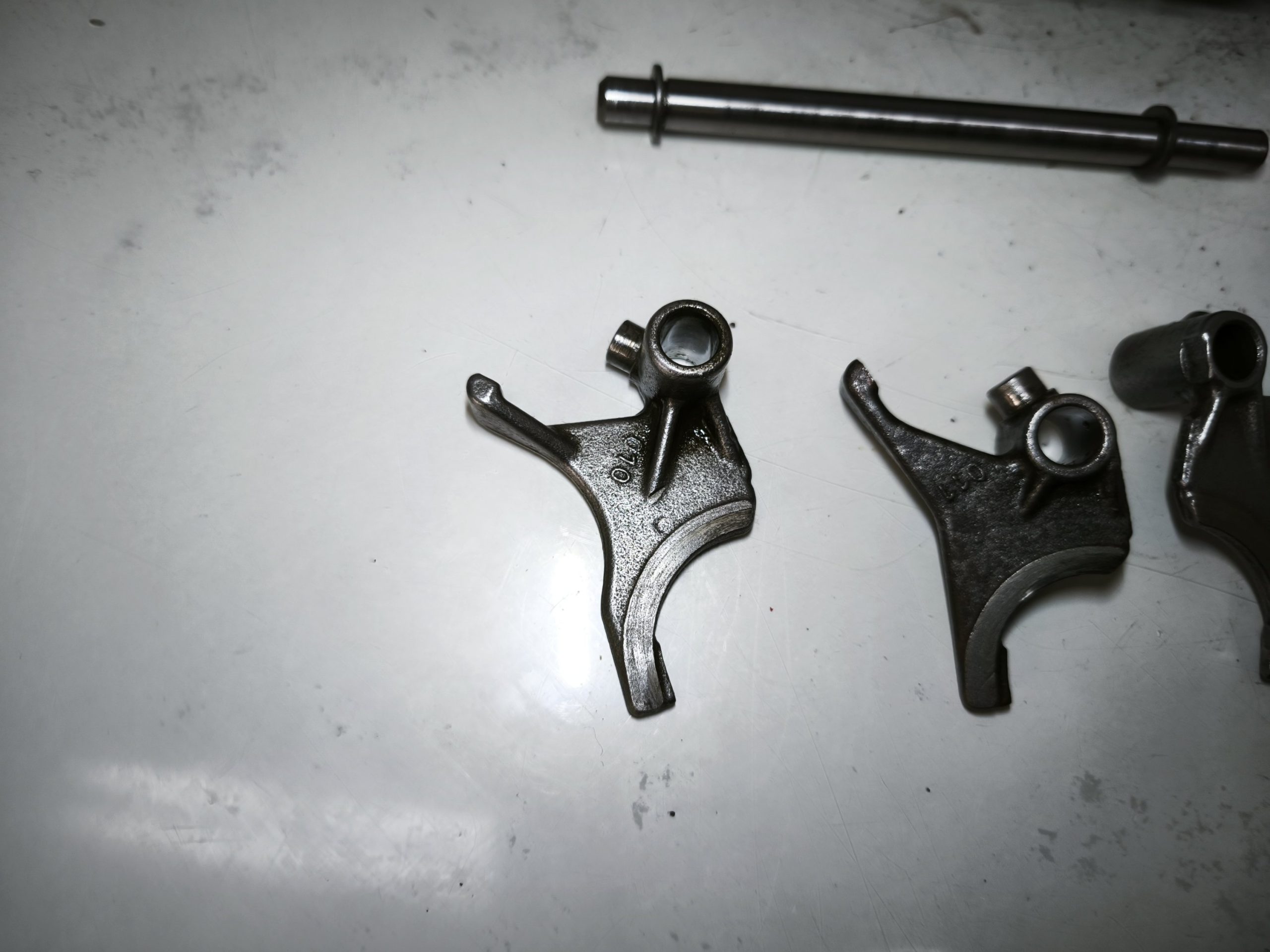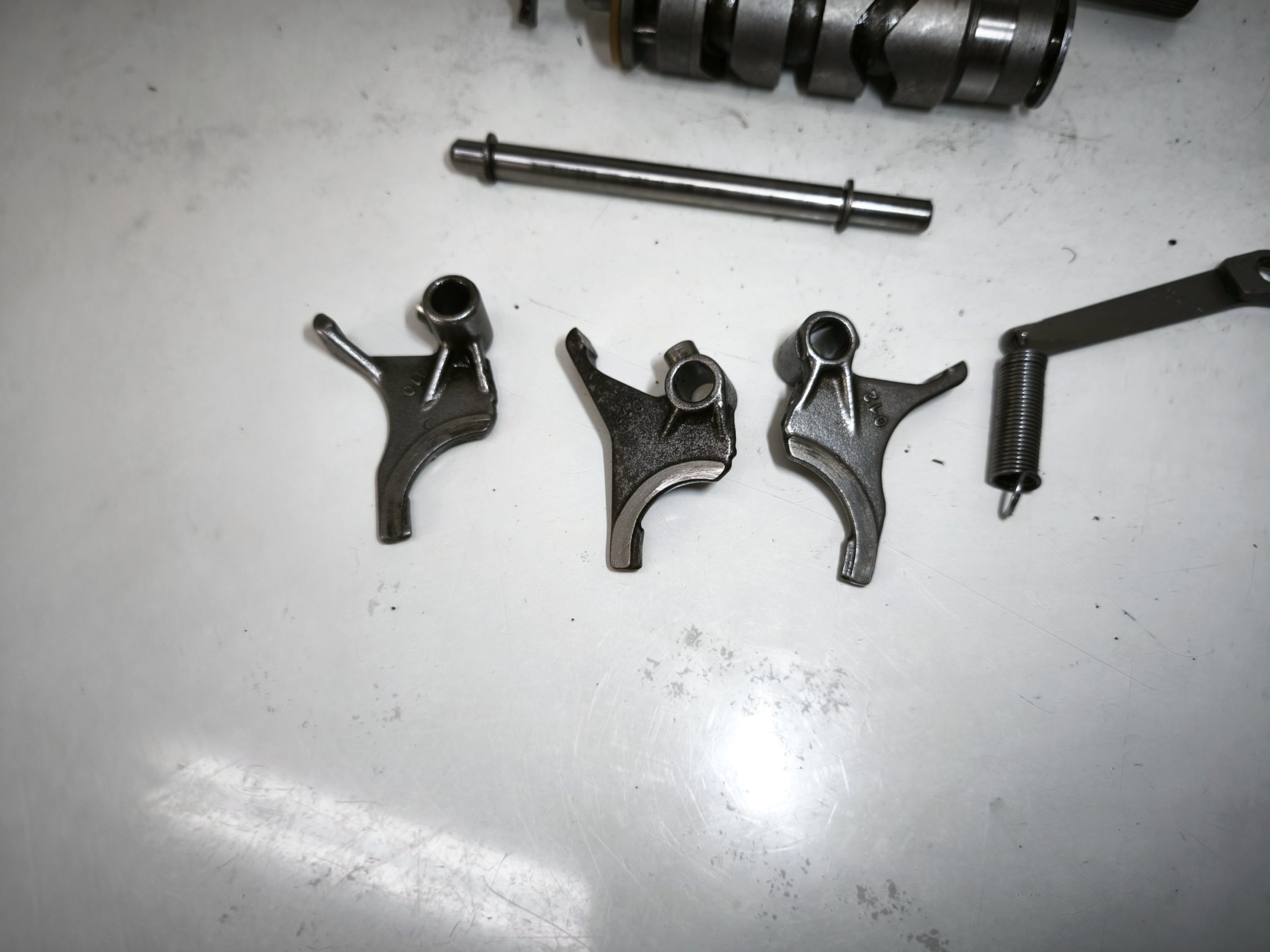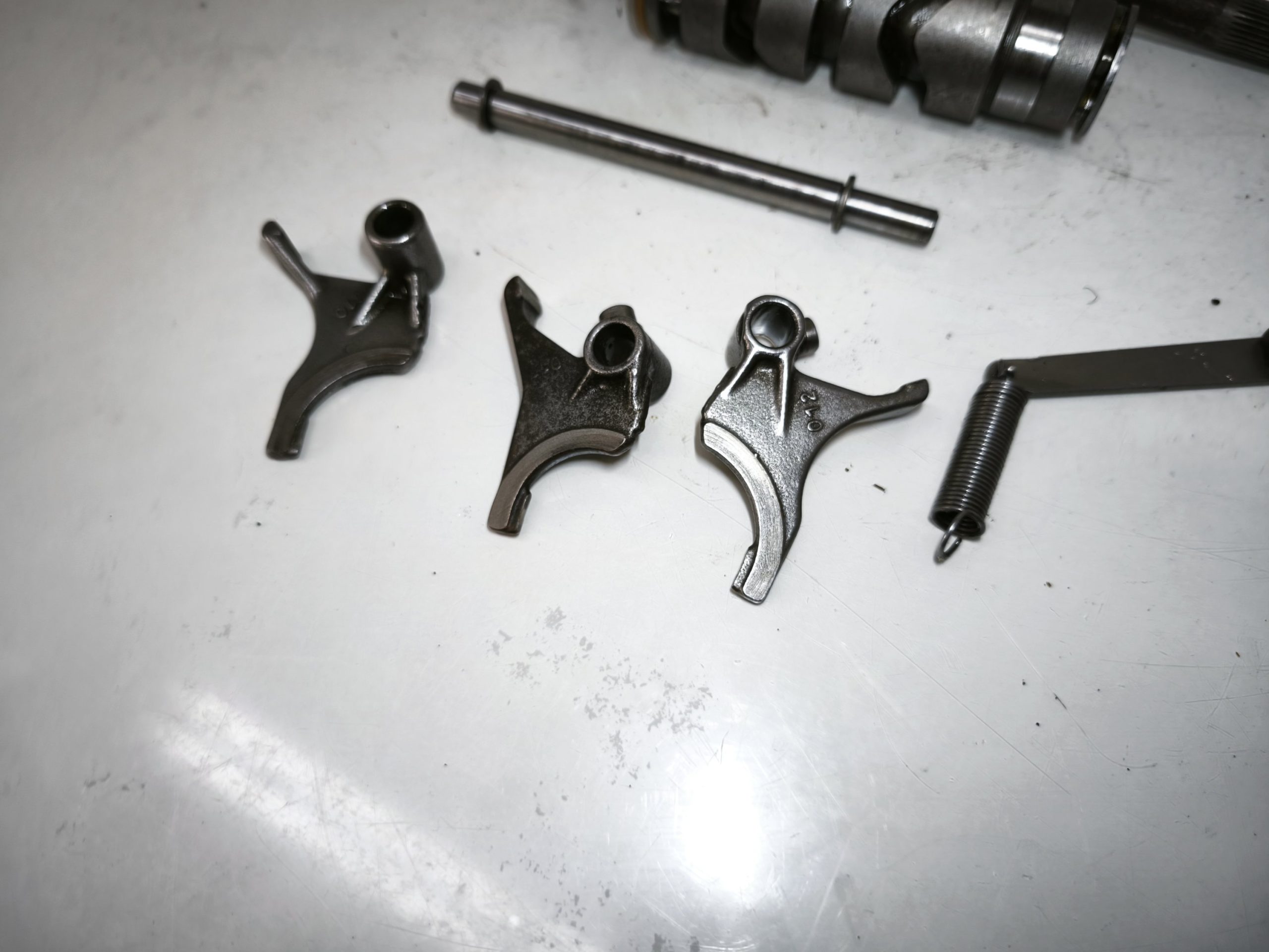 Wodziki skrzyni biegów 010 011 012 MZ ETZ 250 251 301 TS 250/1 wałek krzywkowy, zatrzask, dźwignia zmiany biegów – całość w ładnym stanie. Minimalne ślady zużycia.