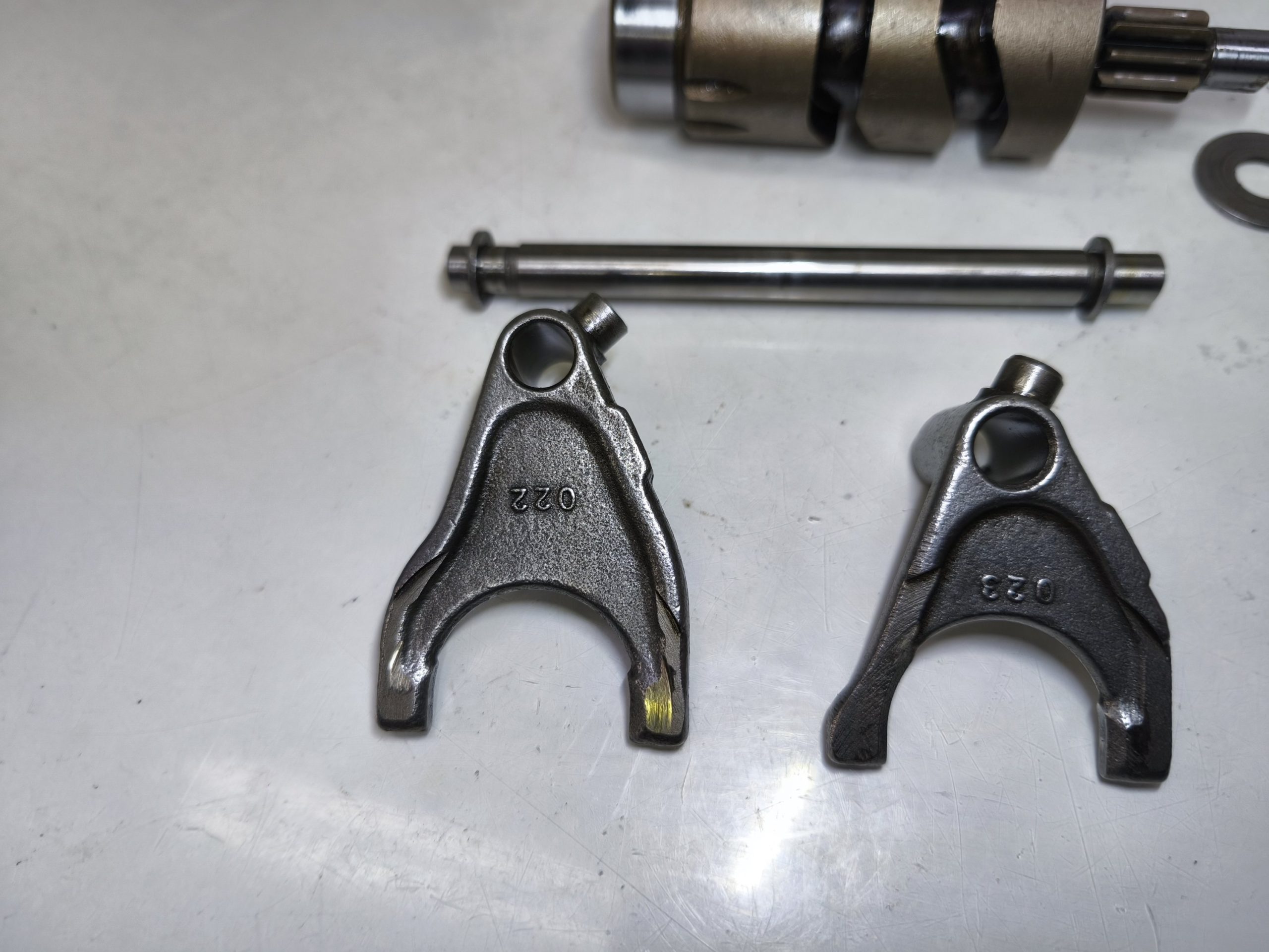 Wodziki skrzyni biegów 022, 023 MZ ES 250/1 Jaskółka, ES 250/2 Trophy TS 250 – wersja czterobiegowa. Minimalnie ślady zużycia.