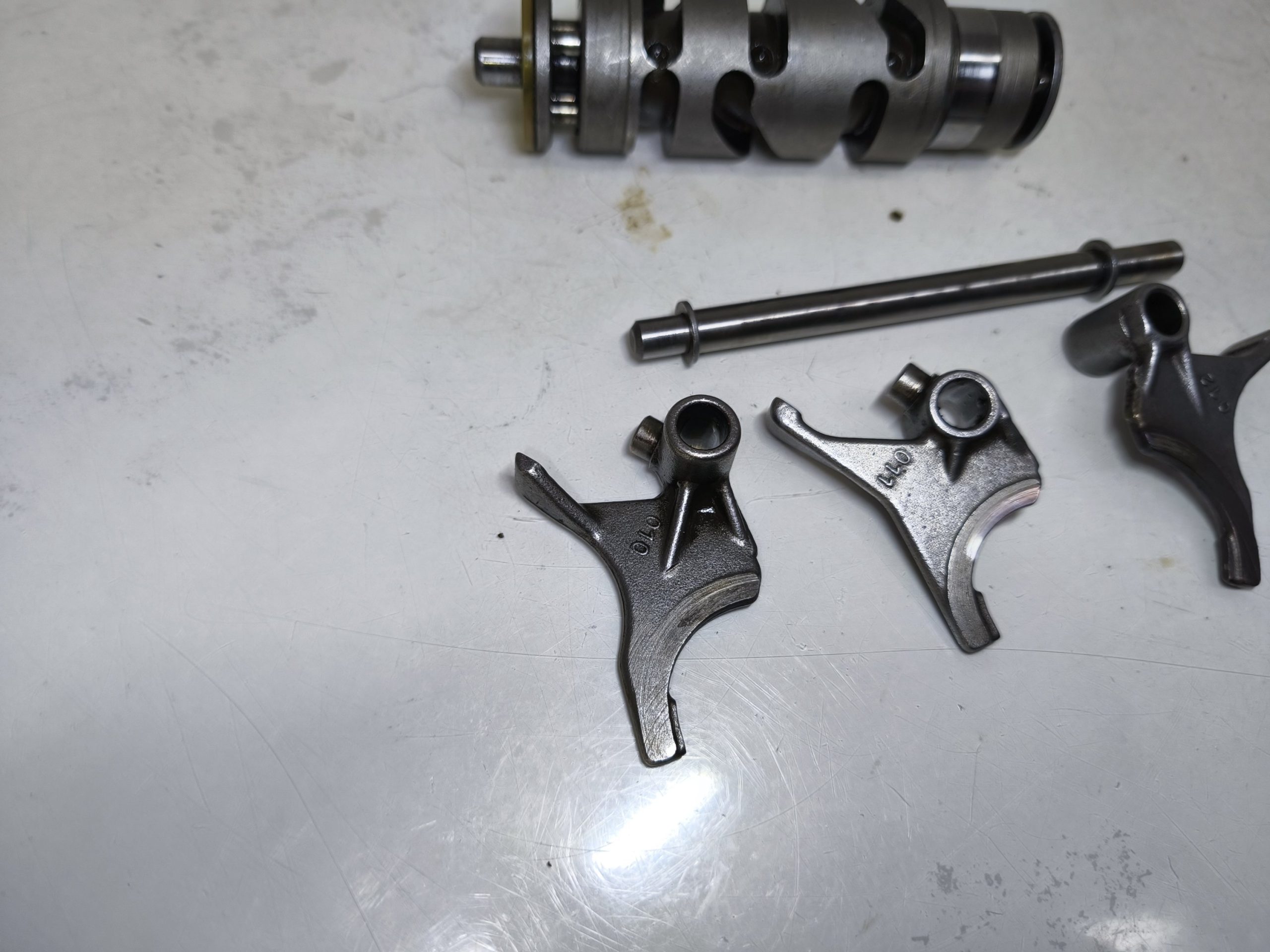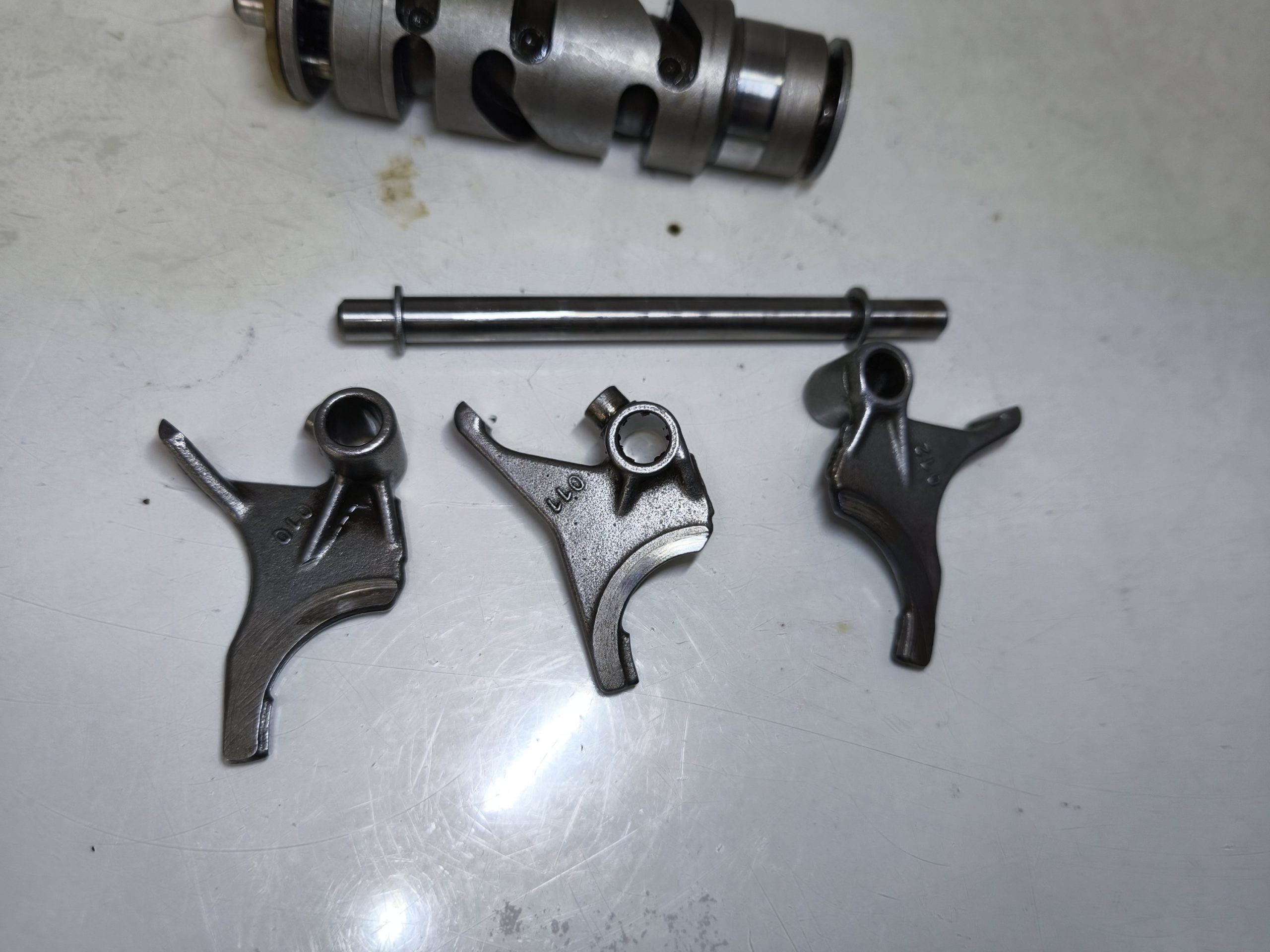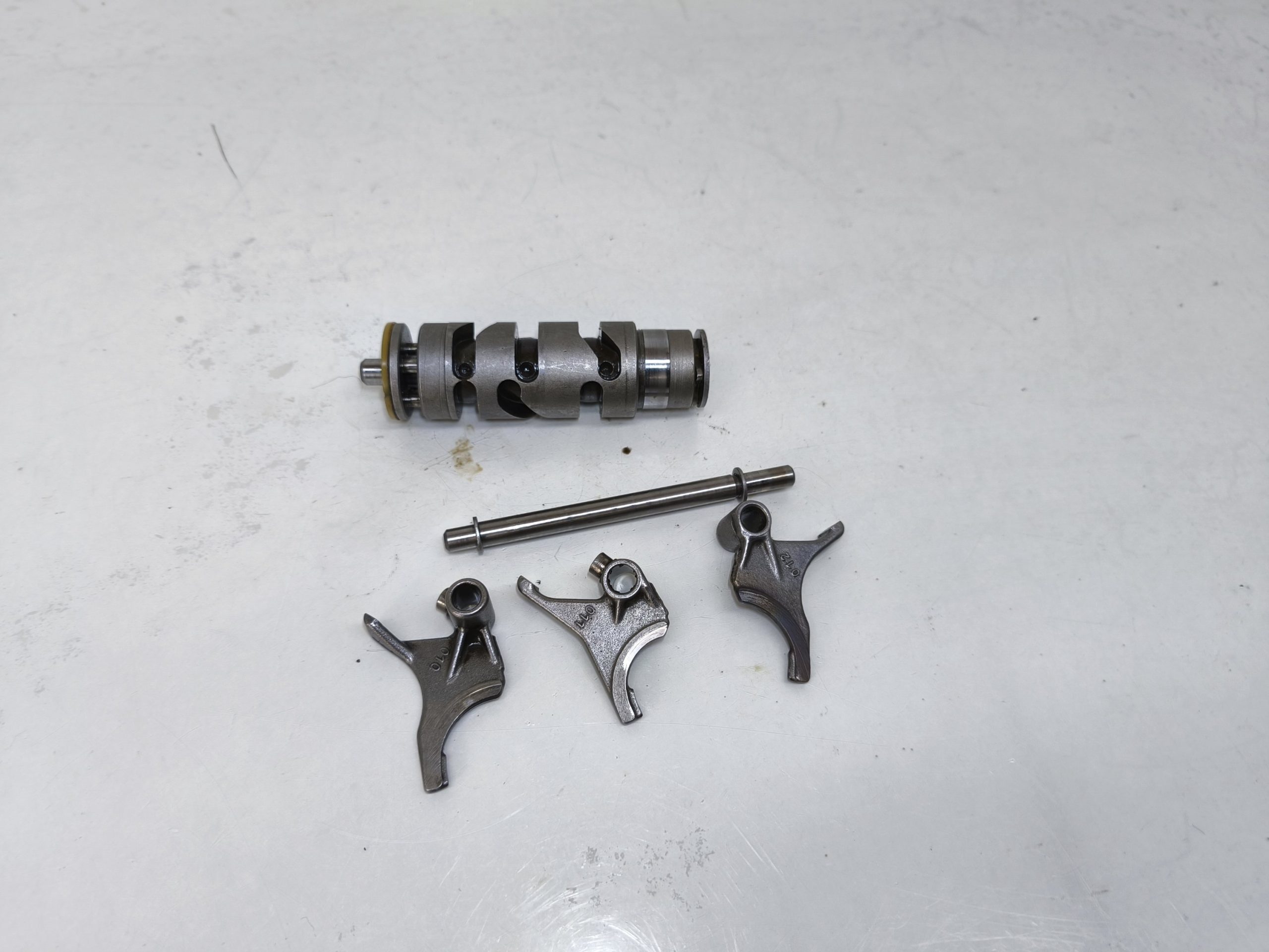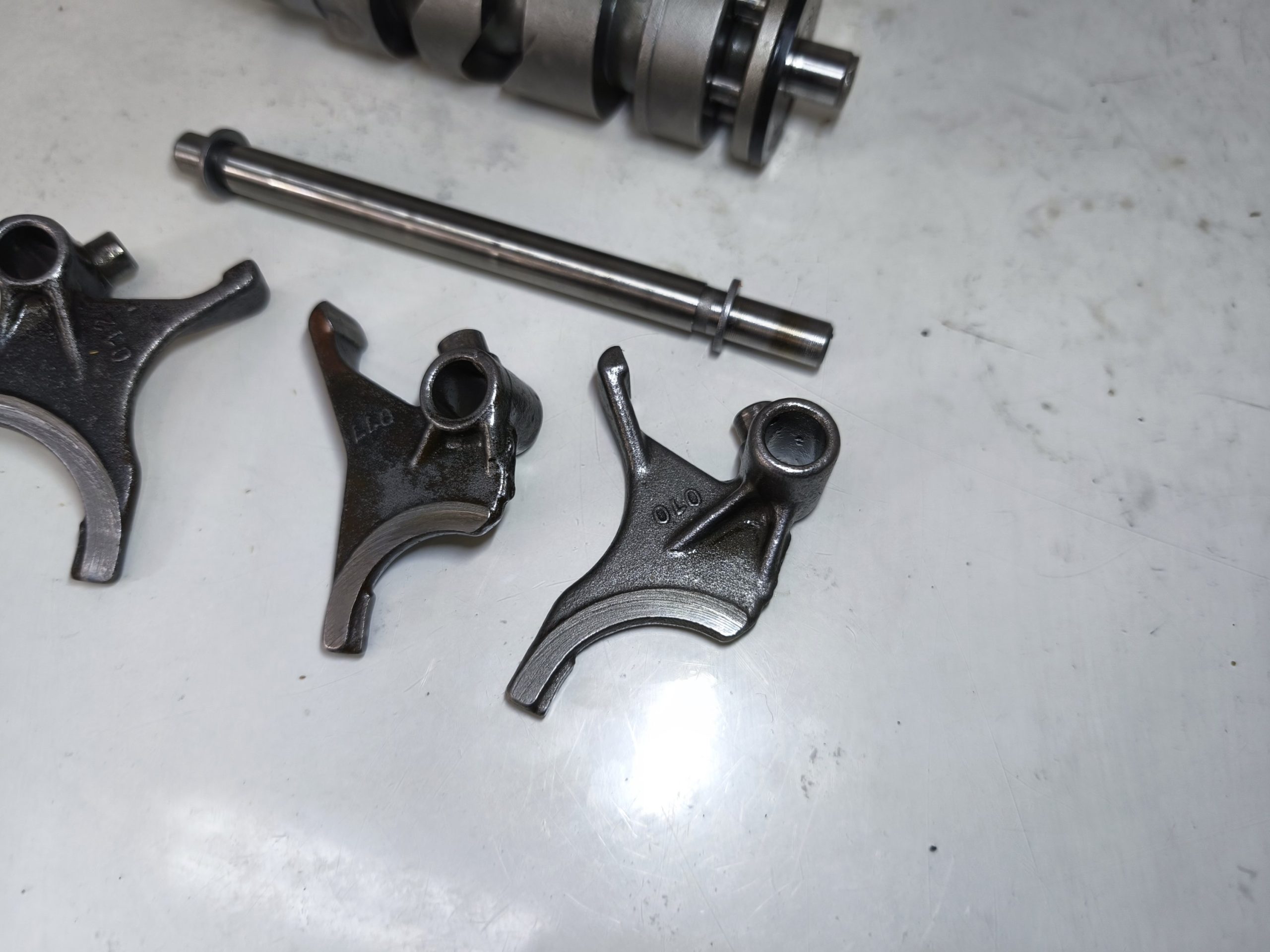 Wodziki skrzyni biegów wałek krzywkowy MZ ETZ 250 251 301 TS 250/1 wodzik 010 011 012 używany oryginał. Wodziki w dość przyzwoitym stanie – minimalne ślady zużycia. Walek krzywkowy ładny.