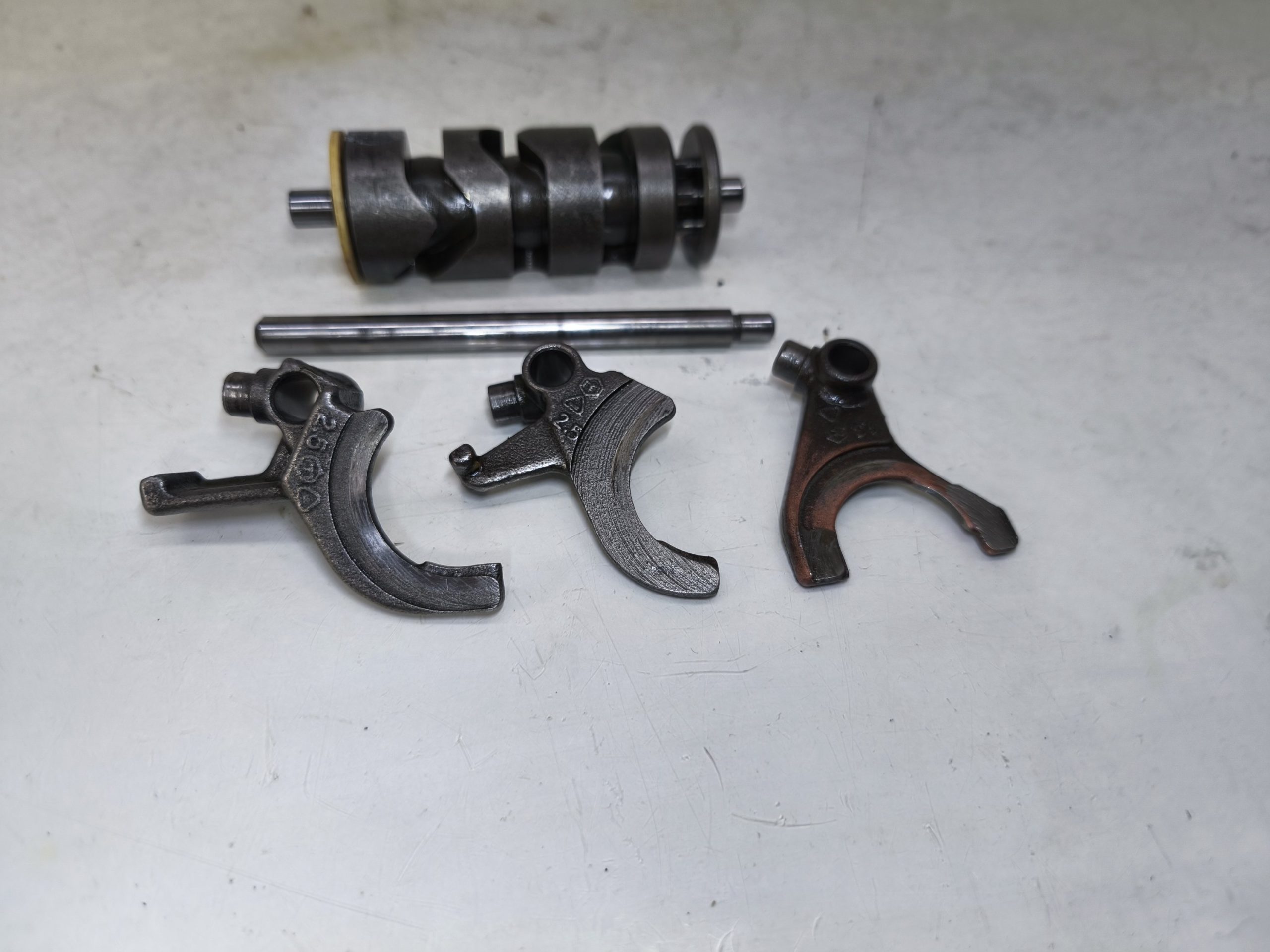 Wodziki, wałek krzywkowy, wałek prowadzący MZ ETZ 150 125. Wodziki oryginał w niezłym stanie. Cena za komplet ze zdjęć.