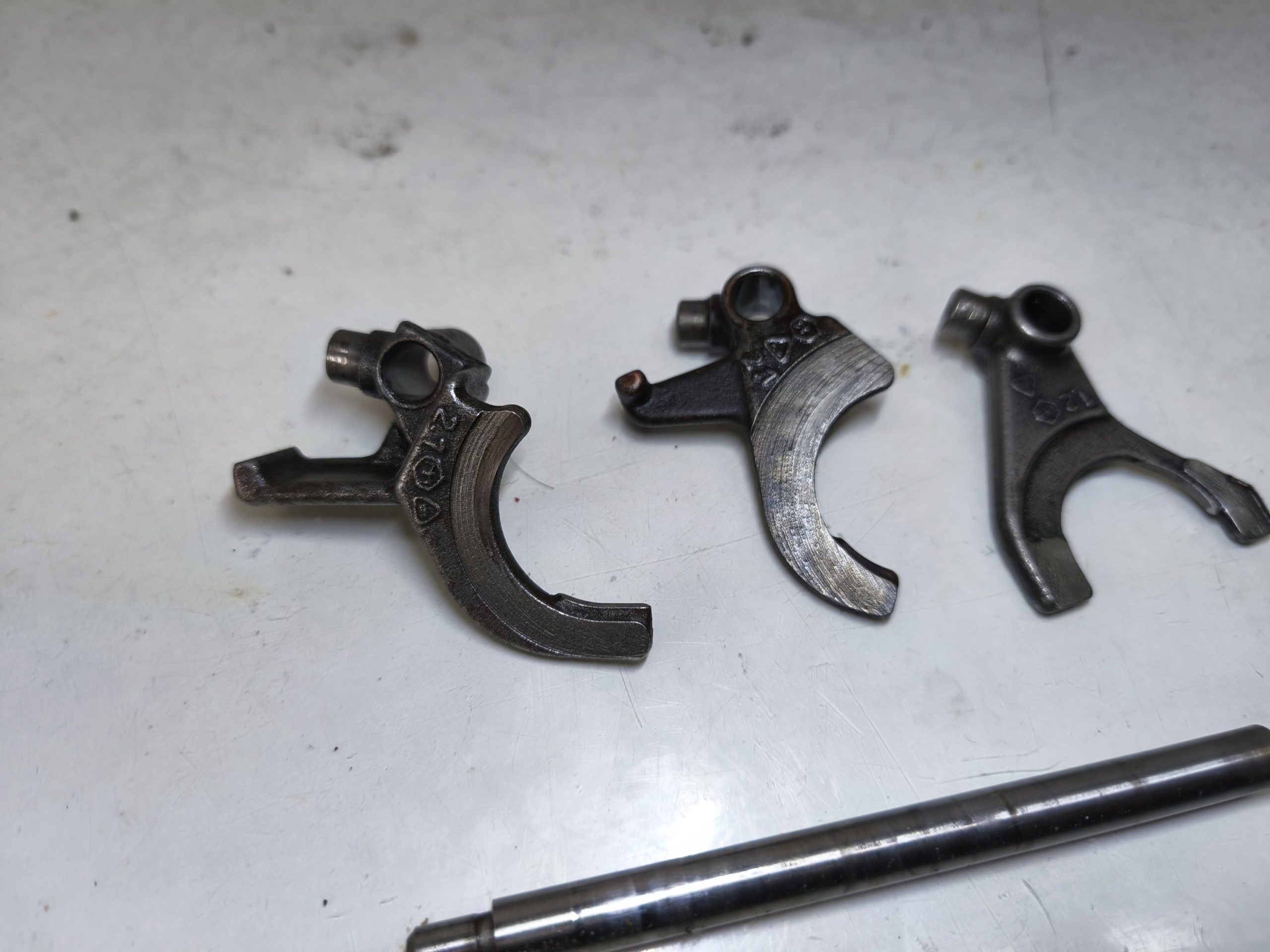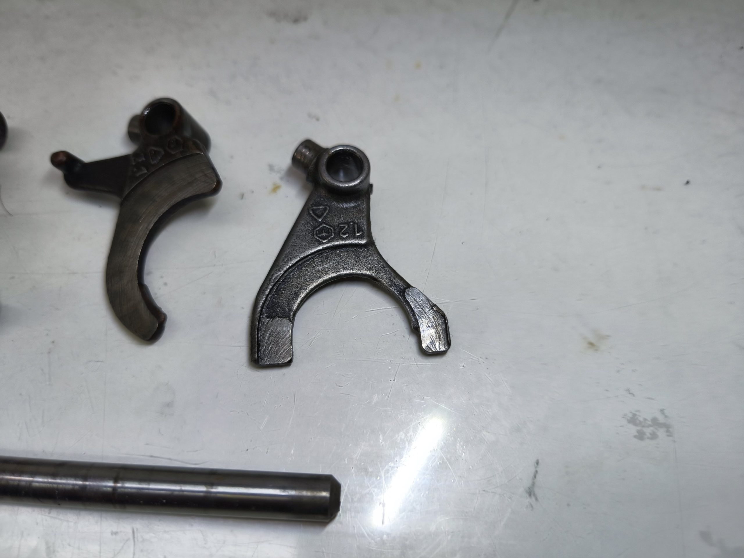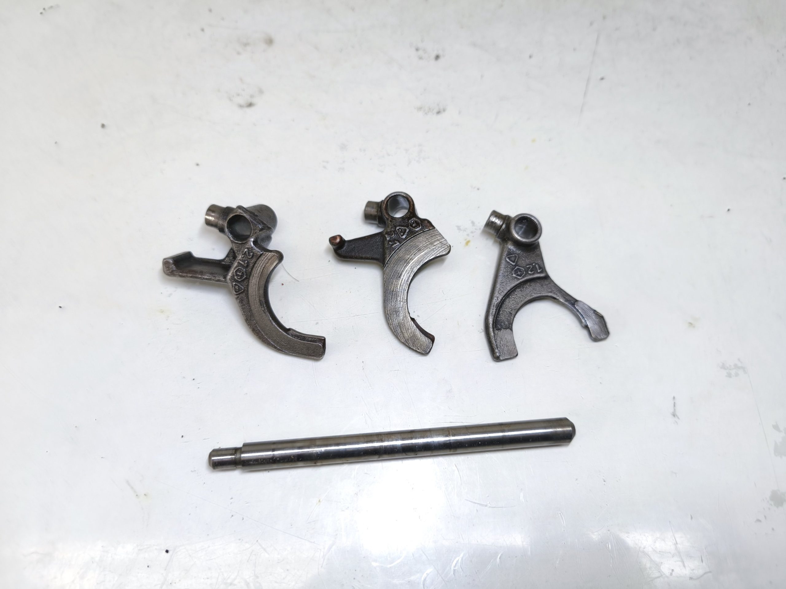 Wodziki z wałkiem prowadzącym skrzyni biegów MZ ETZ 150 125. W dość dobrym stanie.