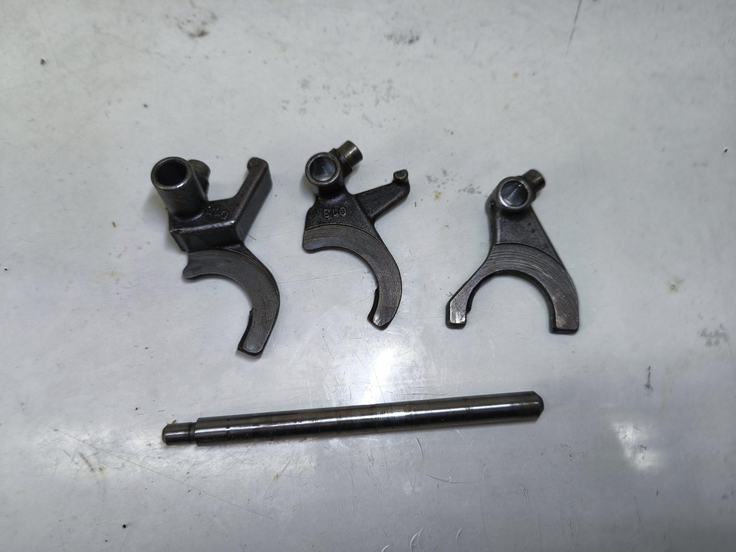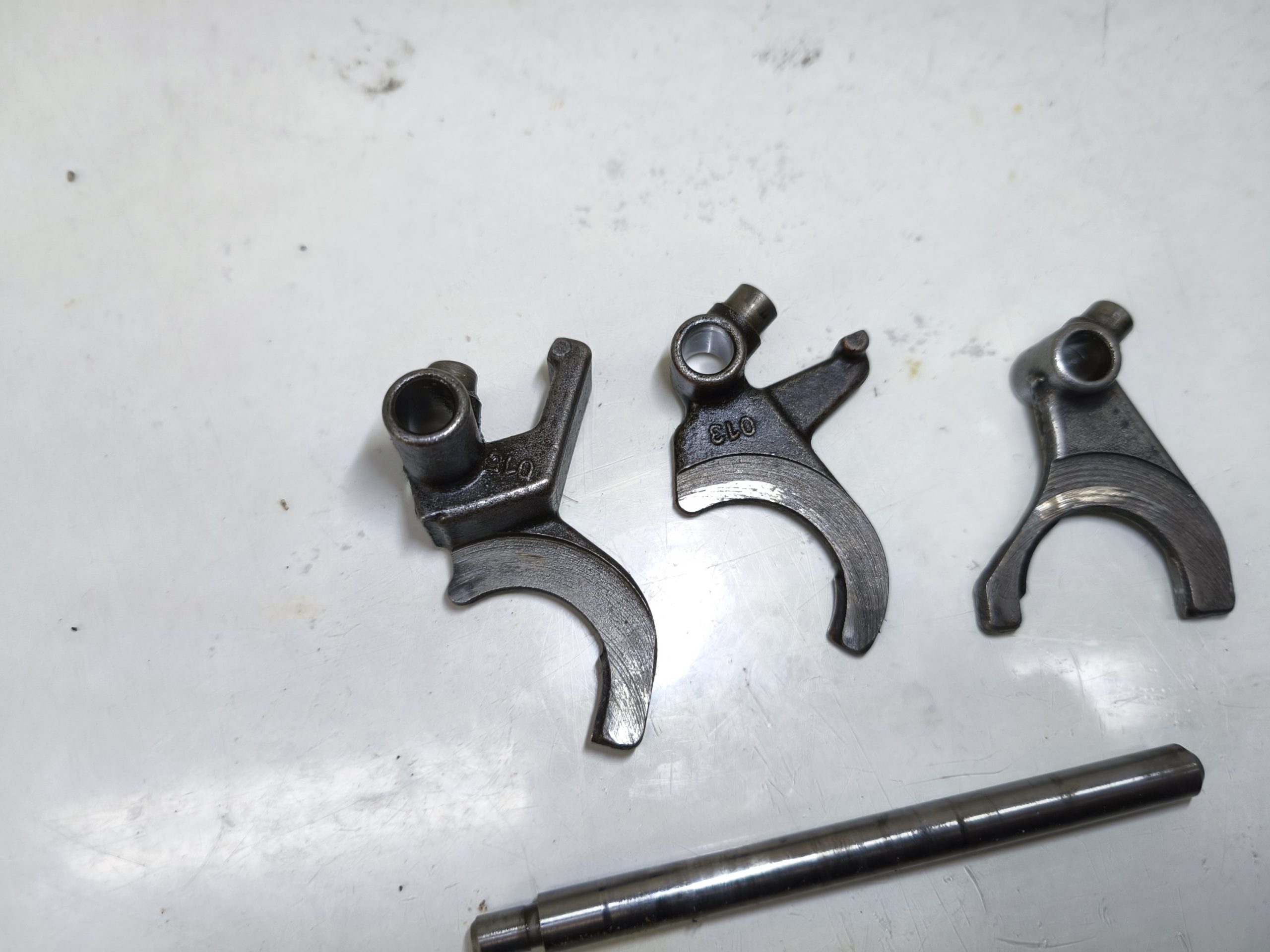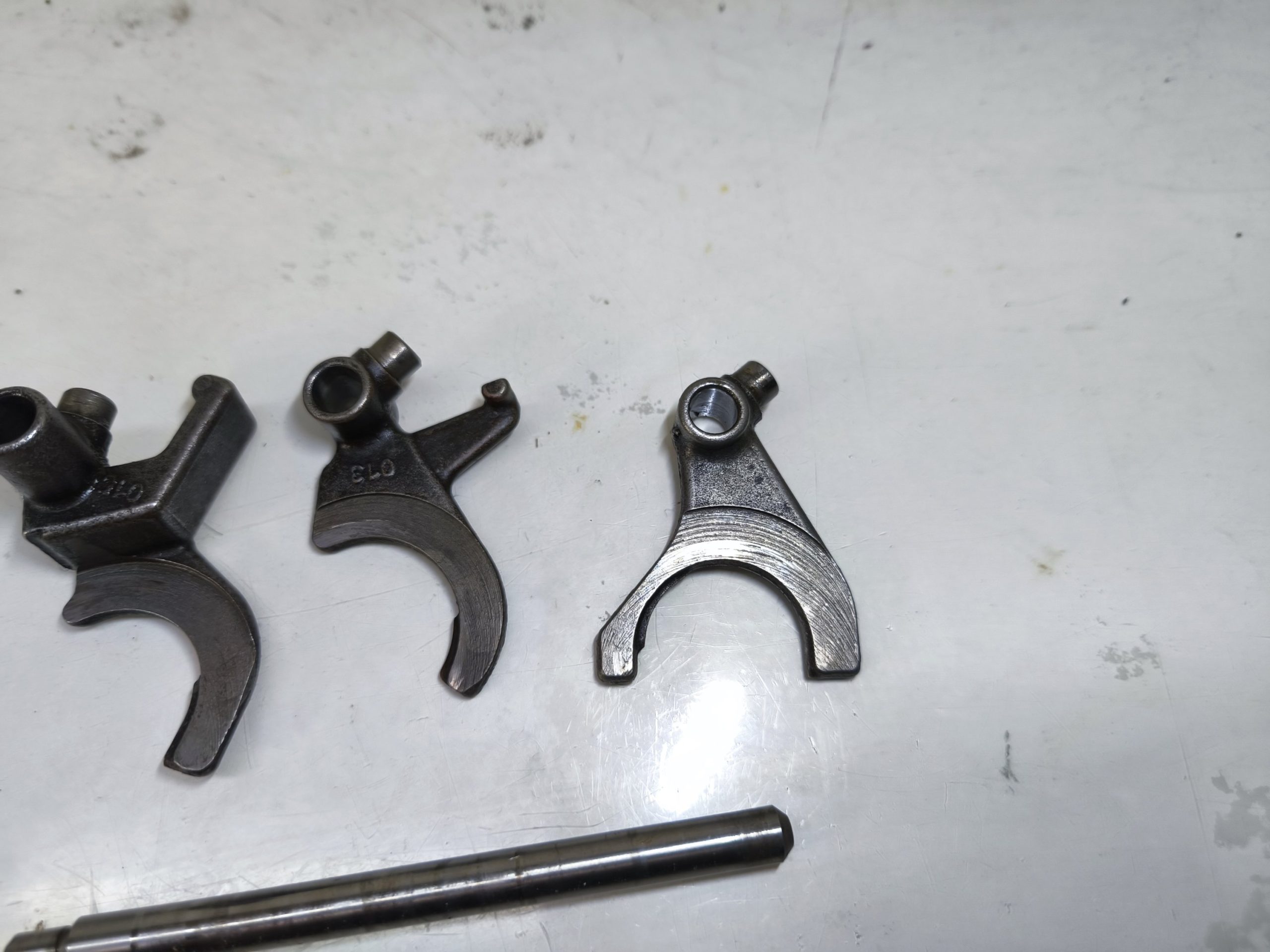 Wodziki z wałkiem prowadzącym skrzyni biegów MZ ETZ 150 125. W dość dobrym stanie.