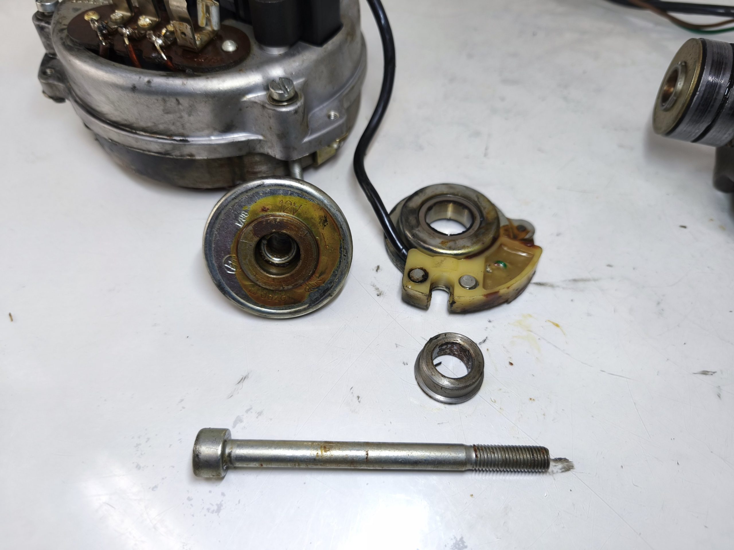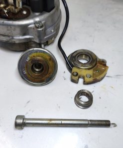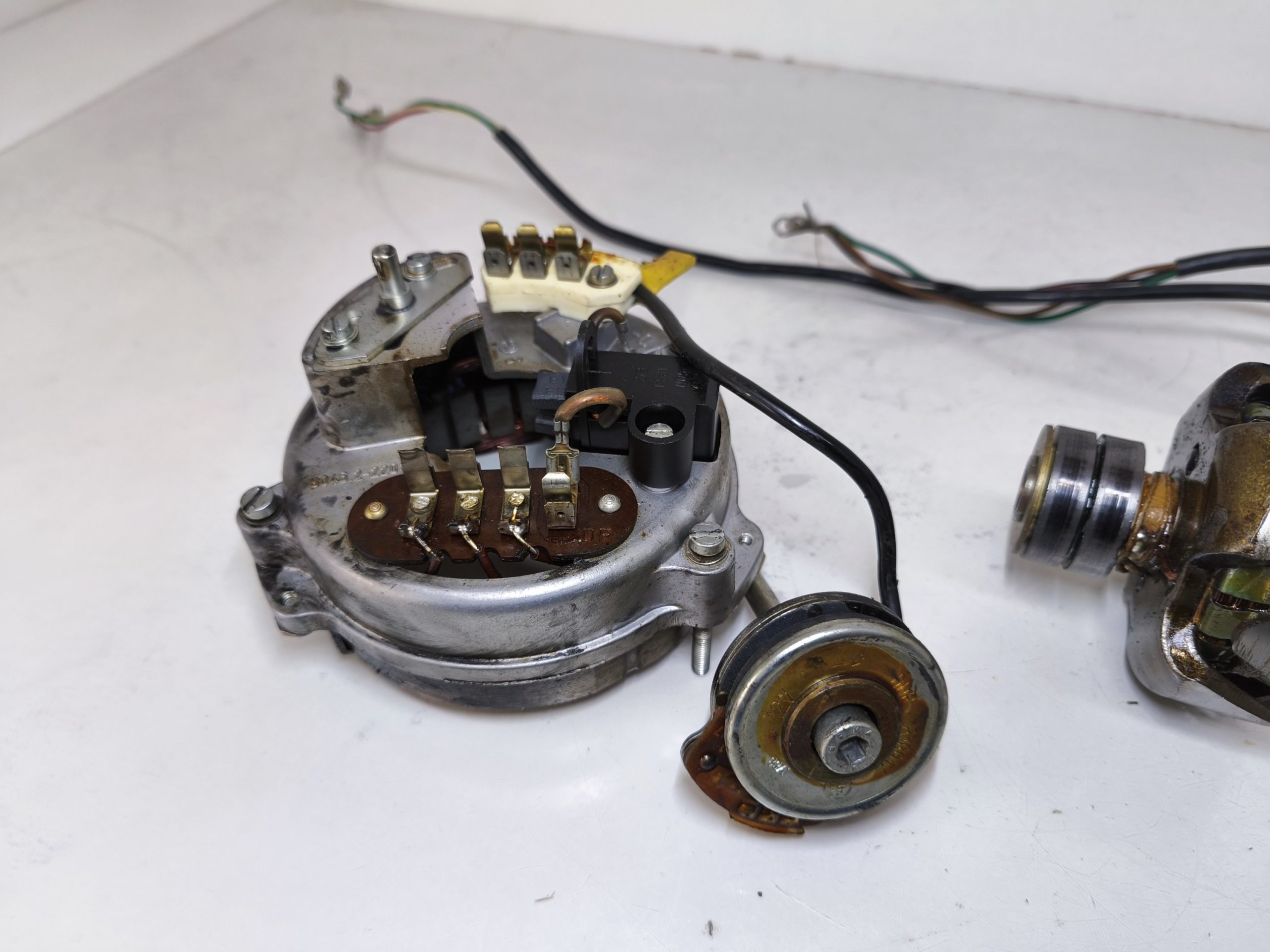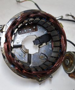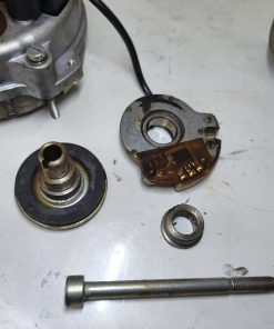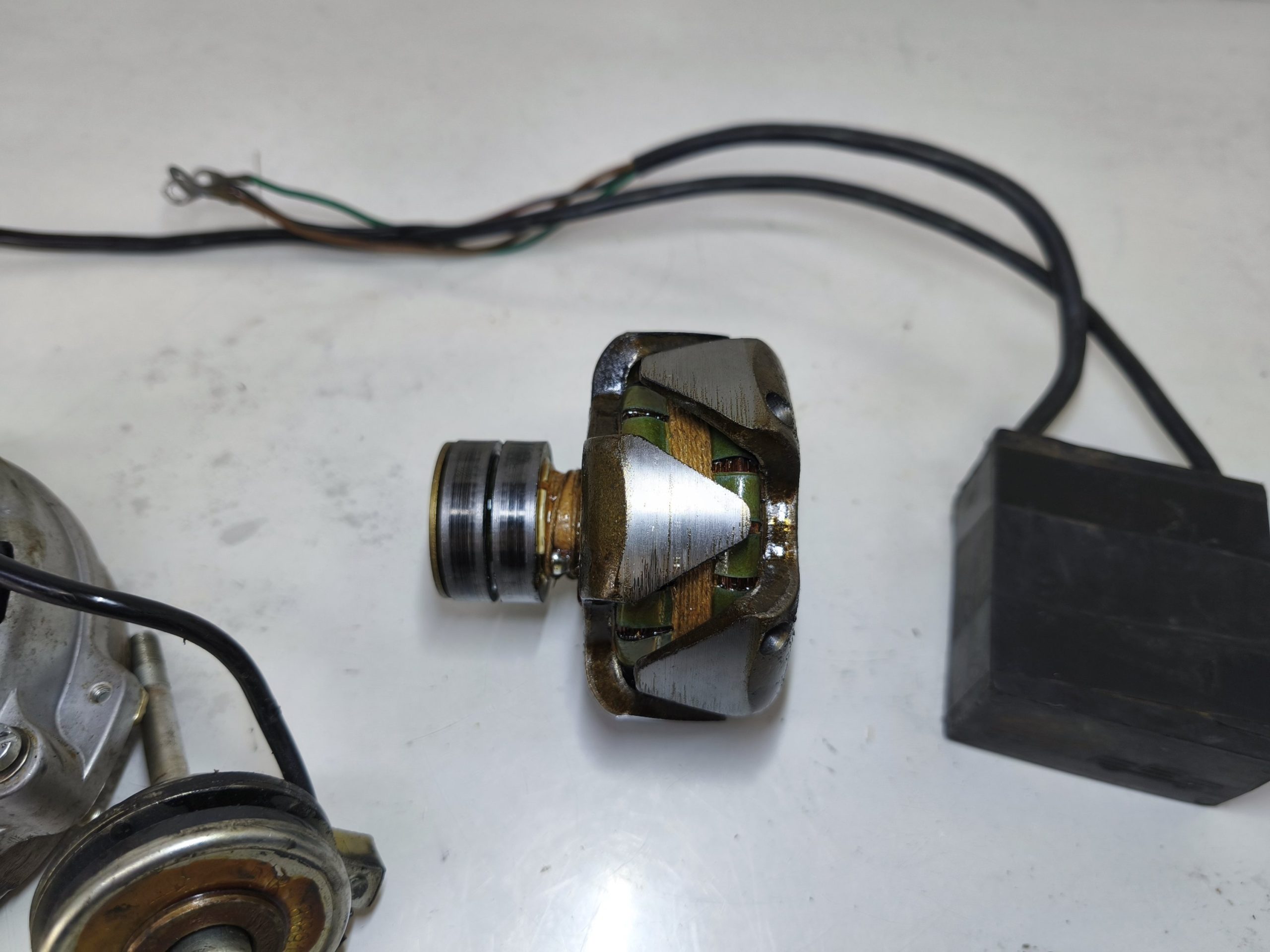 Zapłon elektroniczny MZ ETZ 250 251 125 150. Zestaw przed demontażem sprawny, dawał iskrę. Wirnik w ładnym stanie, gwint oraz mocowanie krzywki w dobrym stanie. Stojan w ładnym stanie. Czujnik Halla z ładnym magnesem. Całość wygląda na mało używany zestaw w bardzo ładnym stanie wizualnym.