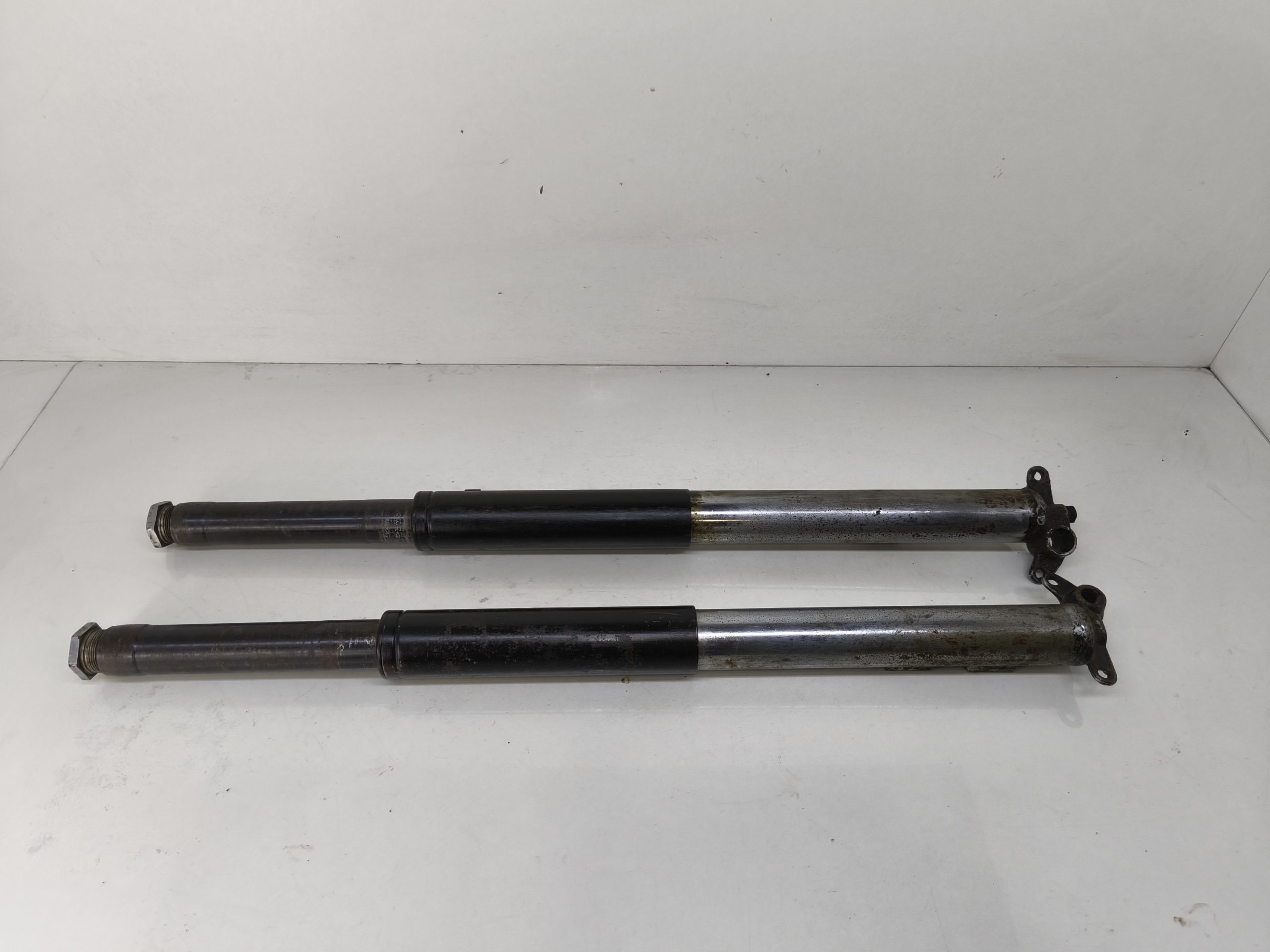 Zawieszenie przednie przód Awo Simson 425 Sport lagi golenie. Gwint ośki koła ok. Lagi są w fabrycznym stanie – nie były wcześniej poddawane renowacji. Sprzedaje z przeznaczeniem do pełniej regeneracji – wyglądają na w miarę proste. Mocowania ok.